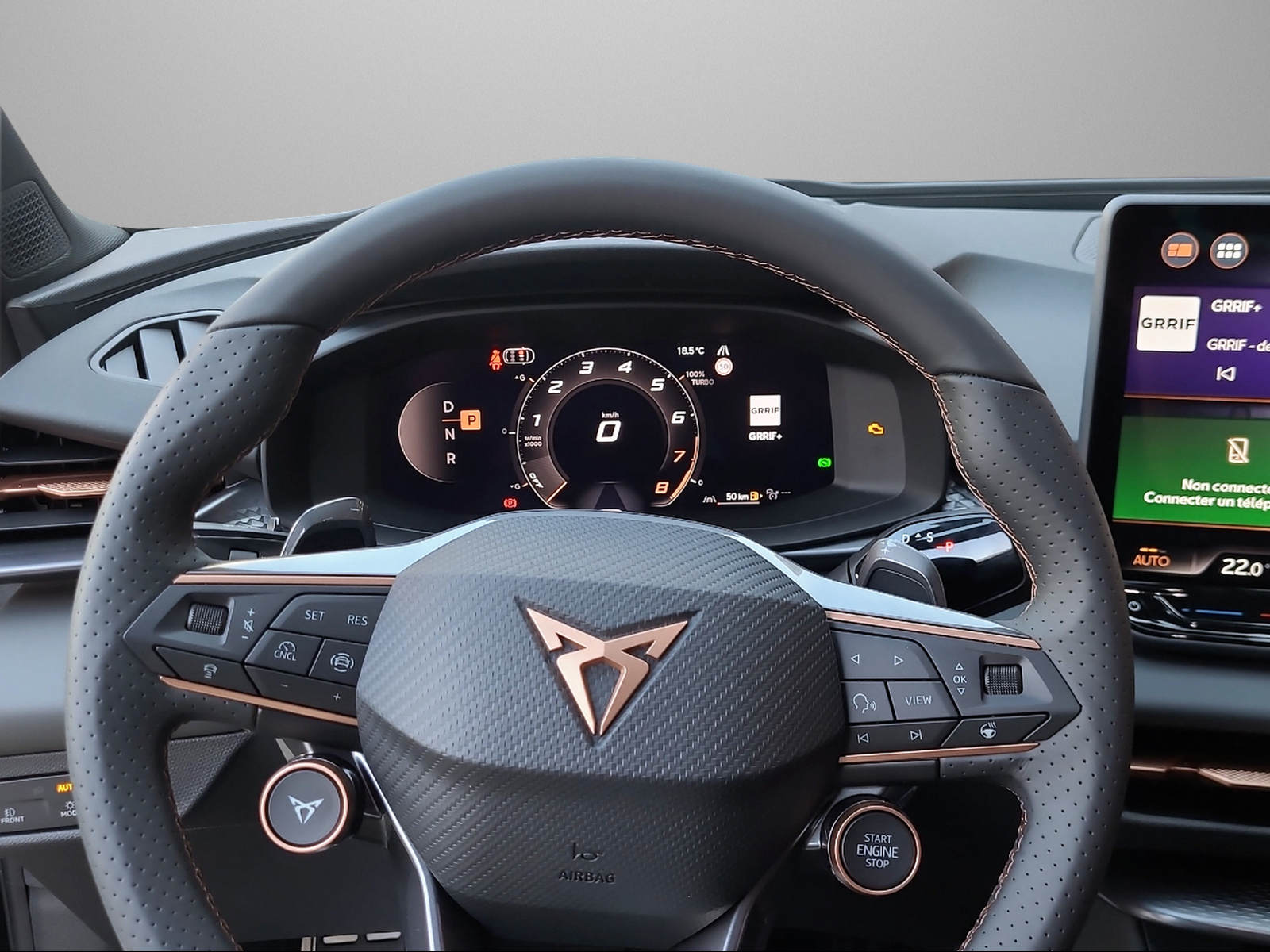 ABS, EBV répartiteur électronique de la force de freinage Accoudoir central à l'avant et à l'arrière Airbag conducteur et passager Airbag: Airbag passager désactivable Airbag: Airbags latéraux pour conducteur et passeggero Airbag: Airbags rideaux pour la tête AV et AR Alarmanlage mit Innenraumüberwachung Assist: Aide a l'évasion/assistant de virage Assist: Assistant au stationnement Assist: Contrôle de distance automatique ACC Assist: Détection de l'attention et de la somnolence (ADA) Assist: Fonction de freinage d'urgence en ville Assist: Frein de stationnement électronique avec fonction auto hold Assist: Freinage multi collision Assist: Lane assist (assistant au maintien de la trajectoire) Assist: Limiteurs de vitesse prédictifs Assist: Multifunktionskamera Assist: Systeme de surveillance environnementale "Front Assist" Assist: Traffic sign recognition (identification des panneaux de signalisation) Carrosserie entièrement galvanisée Ceintures de sécurité avec prétensionneurs pyrotechniques et limiteurs de tension Ceintures de sécurité à 3 points à toutes les places Clima: 3-Zonen Climatronic mit Fondraumbedienung Cockpit numérique complet 10.25" Direction assistée asservie à la vitesse Détecteur de luminosité et de pluie ESC avec EBA, DSR, XDS et système de contrôle de pression des pneus Essuie-glace AR intermittent avec lave-glace Fahrwerk: Progressivlenkung Fussmatten vorne und hinten Garantie: CUPRA Prolongation de garantie constructeur pour les 3ème, 4ème et 5ème années / Garantie: Cupra 12 ans de garantie contre perforation de la carrosserie Garantie: Cupra 3 ans de garantie pour la peinture Hayon à ouverture et fermeture électrique "Virtual Pedal" LLumière: Phares LED pour feux de croisement et feux de route Lumiere: Feu AR antibrouillard Lumiere: L'éclairage diurne à LED Lumière: 3ème feu de stop Lumière: Combinaison complète de feux arrière à LED dans tout le pays Lumière: Feux arriere a LED avec logo CUPRA 3D éclairé Lumière: Feux arrière LED avec clignotant dynamique Lumière: Phares LED antibrouillard avec fonction cornering Lumière: Réglage dynamique de la portée des phares Lève-vitres électriques à l'avant et à l'arrière, à commande confort et sécurité antipincements Media: 12,9" Infotainment (MIB3) Mèdias: 2 ports USB C arrière et front Mèdias: 8+1 Haut-parleurs Mèdias: CUPRA Connect Remote & Access / CUPRA Connect Safety & Services Mèdias: CUPRA Connectivity Box Mèdias: DAB+ (Digital Audio Broadcasting) Mèdias: Dispositif mains libres Bluetooth pour téléphone mobile Pare-soleil éclairé à gauche avec miroir dissimulé et languette, à droite avec miroir dissimulé Plancher de chargement variable Poignées couleur carrosserie Roues: Affichage du contrôle de la pression Roues: Aluminium 8,5J x 19", "COSMIC" usiné en Sport Black Matt & Silver Rétroviseur intérieur réglable jour/nuit Rétroviseurs extérieurs avec éclairage périphérique LED Rétroviseurs extérieurs dégivrants et rabattables, à commande électrique Sieges: 3 appuis-tete arriere réglables Sièges: Ancrage ISOFIX pour siège enfant à l'arrière Sièges: Dossier de banquette arriere rabattable en deux parties avec accoudoir central Sièges: Dossier de banquette rabattable séparément 1/3 - 2/3 Sièges: Sieges baquets sport CUPRA en textile, "DEEP OCEAN" "SEAQUAL" Sièges: Sièges avant réglables en hauteur avec soutien lombaire Stop / Start et système de récupération Suspension: Régulation adaptive du châssis DCC Suspension: Suspension sport CUPRA Système de commencement et de fermeture (KESSY Advance) Traction intégrale permanente Verrouillage centralisé avec télécommande radio, 2 clés radio Vitres teintées à l'arrière à partir des montants B Volant: Volant multifonction en cuir avec palettes de changement de vitesse, chauffant Éclairage d'ambiance LED Smart Wraparound, avec affichage des fonctions
