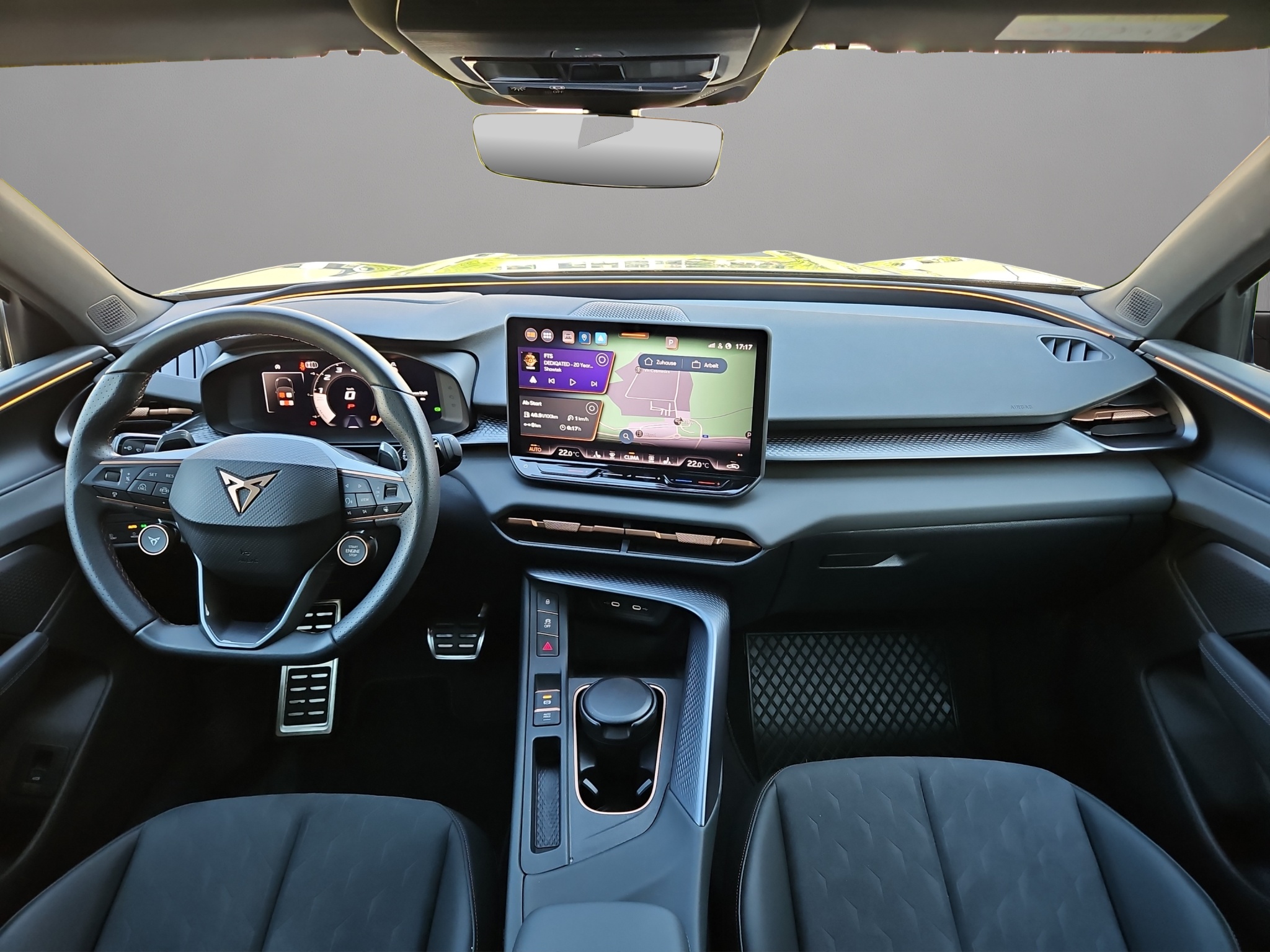 3-Punkt-Sicherheitsgurte auf allen Plätzen ABS, EBV elektronische Bremskraft-verteilung Abgedunkelte Scheiben ab B-Säule hinten Airbag: Airbag Beifahrer deaktivierbar Airbag: Airbag Fahrer und Beifahrer Airbag: Kopfairbags vorne und hinten Airbag: Seitenairbags für Fahrer und Beifahrer Alarmanlage mit Innenraumüberwachung Ambiente Innenraumbeleuchtung mit beleuchteten Türpanelen Assist: Aufmerksamkeits- und Müdigkeitserkennung (ADA) Assist: Ausweichunterstützung / Abbiegeassistent Assist: Automatische Distanzregelung ACC Assist: City Notbremsfunktion Assist: Einparkhilfe vorne und hinten mit Rückfahrkamera Assist: Elektronische Parkbremse mit Auto Hold Funktion Assist: Lane assist (Spurhalteassistent) Assist: Multifunktionskamera Assist: Multikollisionsbremse Assist: Prädiktive Speedlimiter Assist: Traffic sign recognition (Verkehrszeichenerkennung) Assist: Umfeldüberwachungssystem "Front-Assist" Aussenspiegel elektrisch einstell-, beheiz- und einklappbar Aussenspiegel mit LED-Umfeldbeleuchtung Beleuchtete Sonnenblende links mit abdeckbarem Spiegel und Lasche, rechts mit abdeckbarem Spiegel ESC mit EBA, DSR, XDS und Reifendruckkontrolle Einstiegsleisten beleuchtet Elektrische Fensterheber vorne und hinten mit Komfortschaltung und Einklemmschutz Fahrwerk: Adaptive Fahrwerksregelung DCC Fahrwerk: CUPRA Sportfahrwerk Fahrwerk: Progressivlenkung Fussmatten vorne und hinten Garantie: Cupra 12 Jahre Gewährleistung gegen Karosserie-Durchrostung Garantie: Cupra 3 Jahre Lack-Gewährleistung Garantie: Cupra Garantie 2 Jahre ohne Kilometerbegrenzung Heckklappe elektrisch öffnend und schliessend "Virtual Pedal" Heckscheiben-Wisch-/Waschanlage mit Intervall Innenspiegel automatisch abblendbar Klima: 3-Zonen Climatronic mit Fondraumbedienung Lackierung: Uni-Lackierung Lenkrad: Leder Multifunktionslenkrad mit Schaltwippen, beheizbar Licht: Drittes Bremslicht Licht: Durchgehende Full LED-Heckleuchten Licht: LED Heckleuchten mit beleuchtetem 3D CUPRA Logo Licht: LED-Heckleuchten mit dynamischem Blinklicht Licht: LED-Nebelscheinwerfer mit Cornering-Funktion Licht: LED-Scheinwerfer für Abblend- und Fernlicht Licht: Leuchtweitenregulierung dynamisch Licht: Nebelschlussleuchte Media: 12,9" Infotainment (MIB3) Media: 2 USB C Anschlüsse hinten und vorne Media: CUPRA Connect Online Infotainment Media: CUPRA Connect Remote & Access / CUPRA Connect Safety & Services Media: CUPRA Connectivity Box Media: DAB+ (Digital Audio Broadcasting) Media: Mobiltelefon Freisprechanlage Bluetooth Mittelarmlehne vorne und hinten Pyrotechnische Gurtstraffer und Gurtkraftbegrenzer Räder: Alufelgen 8.5J x 19", "COSMIC" Machined in Sport Black Matt & Silver Räder: Performance Reifen Räder: Reifendruckkontrollsystem Schlüsselloses Schliess- und Startsystem (KESSY Advance) Servolenkung mit geschwindigkeitsabhängiger Lenkkraftunterstützung Sitze: 3 verstellbare Kopfstützen hinten Sitze: CUPRA Sport Schalensitze in Textil, "DEEP OCEAN" "SEAQUAL" Sitze: Geteilt abklappbare Rücksitzlehne 1/3 - 2/3 Sitze: Geteilt abklappbare Rücksitzlehne mit Mittelarmlehne Sitze: Kindersitzverankerung ISOFIX hinten Sitze: Vordersitze höhenverstellbar mit Lendenwirbelstütze Stopp - Start- und Rekuperationssystem Wegfahrsperre elektronisch Zentralverriegelung mit Funkfernbedienung, 2 Funkschlüssel