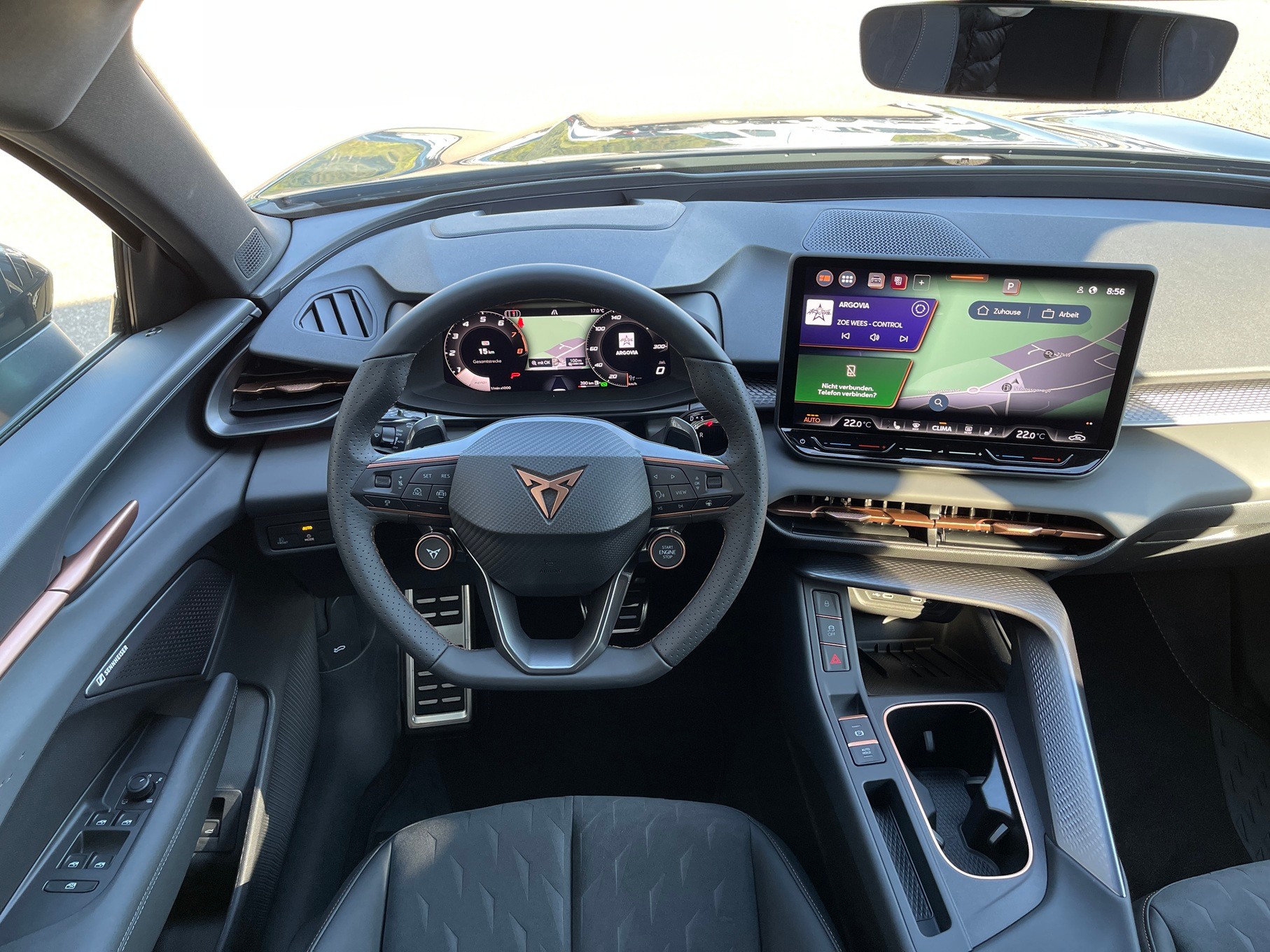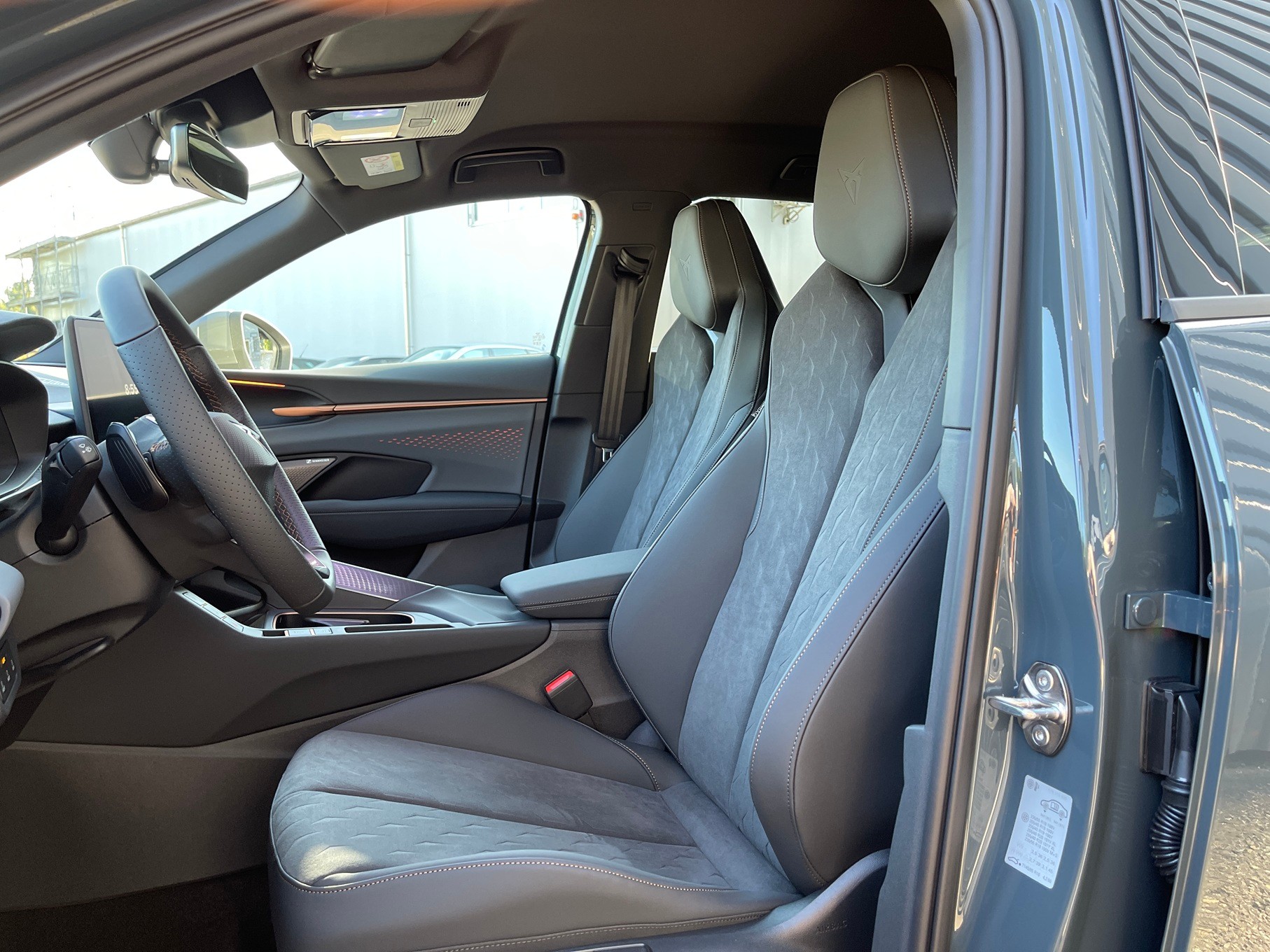 3-Punkt-Sicherheitsgurte auf allen Plätzen ABS, EBV elektronische Bremskraft-verteilung Abgedunkelte Scheiben ab B-Säule hinten Airbag: Airbag Beifahrer deaktivierbar Airbag: Airbag Fahrer und Beifahrer Airbag: Kopfairbags vorne und hinten Airbag: Seitenairbags für Fahrer und Beifahrer Alarmanlage mit Innenraumüberwachung Assist: Aufmerksamkeits- und Müdigkeitserkennung (ADA) Assist: Ausweichunterstützung / Abbiegeassistent Assist: Automatische Distanzregelung ACC Assist: City Notbremsfunktion Assist: Einparkhilfe vorne und hinten mit Rückfahrkamera Assist: Elektronische Parkbremse mit Auto Hold Funktion Assist: Lane assist (Spurhalteassistent) Assist: Multifunktionskamera Assist: Multikollisionsbremse Assist: Prädiktive Speedlimiter Assist: Traffic sign recognition (Verkehrszeichenerkennung) Assist: Umfeldüberwachungssystem "Front-Assist" Aussenspiegel elektrisch einstell-, beheiz- und einklappbar Aussenspiegel mit LED-Umfeldbeleuchtung Beleuchtete Sonnenblende links mit abdeckbarem Spiegel und Lasche, rechts mit abdeckbarem Spiegel ESC mit EBA, DSR, XDS und Reifendruckkontrolle Einstiegsleisten beleuchtet Elektrische Fensterheber vorne und hinten mit Komfortschaltung und Einklemmschutz Fahrwerk: Adaptive Fahrwerksregelung DCC Fahrwerk: CUPRA Sportfahrwerk Fahrwerk: Progressivlenkung Full Digital Cockpit 10.25" Fussmatten vorne und hinten Garantie: Cupra 12 Jahre Gewährleistung gegen Karosserie-Durchrostung Garantie: Cupra 3 Jahre Lack-Gewährleistung Garantie: Cupra Hersteller-Garantieverlängerung für das 3., 4. und 5. Jahr / max.100000 km Heckklappe elektrisch öffnend und schliessend "Virtual Pedal" Heckscheiben-Wisch-/Waschanlage mit Intervall Innenspiegel automatisch abblendbar Klima: 3-Zonen Climatronic mit Fondraumbedienung LED-Ambientebeleuchtung Smart Wraparound, inkl. Funktionsanzeige Lackierung: Uni-Lackierung Lenkrad: Leder Multifunktionslenkrad mit Schaltwippen, beheizbar Licht: Drittes Bremslicht Licht: Durchgehende Full LED-Heckleuchten Licht: LED Heckleuchten mit beleuchtetem 3D CUPRA Logo Licht: LED-Heckleuchten mit dynamischem Blinklicht Licht: LED-Nebelscheinwerfer mit Cornering-Funktion Licht: LED-Scheinwerfer für Abblend- und Fernlicht Licht: Leuchtweitenregulierung dynamisch Licht: Nebelschlussleuchte Media: 12,9" Infotainment (MIB3) Media: 2 USB C Anschlüsse hinten und vorne Media: CUPRA Connect Remote & Access / CUPRA Connect Safety & Services Media: CUPRA Connectivity Box Media: DAB+ (Digital Audio Broadcasting) Media: Mobiltelefon Freisprechanlage Bluetooth Mittelarmlehne vorne und hinten Pyrotechnische Gurtstraffer und Gurtkraftbegrenzer Räder: Alufelgen 8.5J x 19", "COSMIC" Machined in Sport Black Matt & Silver Räder: Performance Reifen Räder: Reifendruckkontrollsystem Schlüsselloses Schliess- und Startsystem (KESSY Advance) Servolenkung mit geschwindigkeitsabhängiger Lenkkraftunterstützung Sitze: 3 verstellbare Kopfstützen hinten Sitze: CUPRA Sport Schalensitze in Textil, "DEEP OCEAN" "SEAQUAL" Sitze: Geteilt abklappbare Rücksitzlehne 1/3 - 2/3 Sitze: Geteilt abklappbare Rücksitzlehne mit Mittelarmlehne Sitze: Kindersitzverankerung ISOFIX hinten Sitze: Vordersitze höhenverstellbar mit Lendenwirbelstütze Stopp - Start- und Rekuperationssystem Wegfahrsperre elektronisch Zentralverriegelung mit Funkfernbedienung, 2 Funkschlüssel