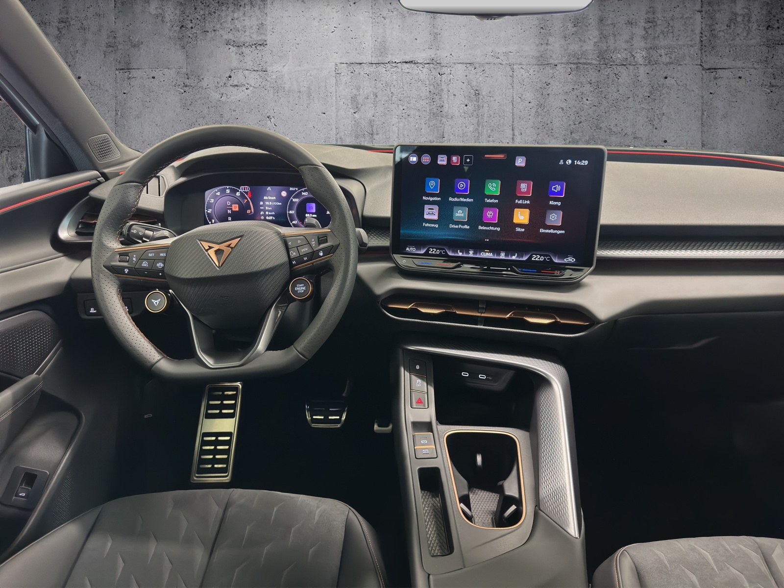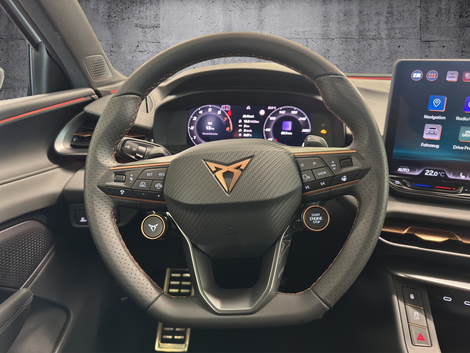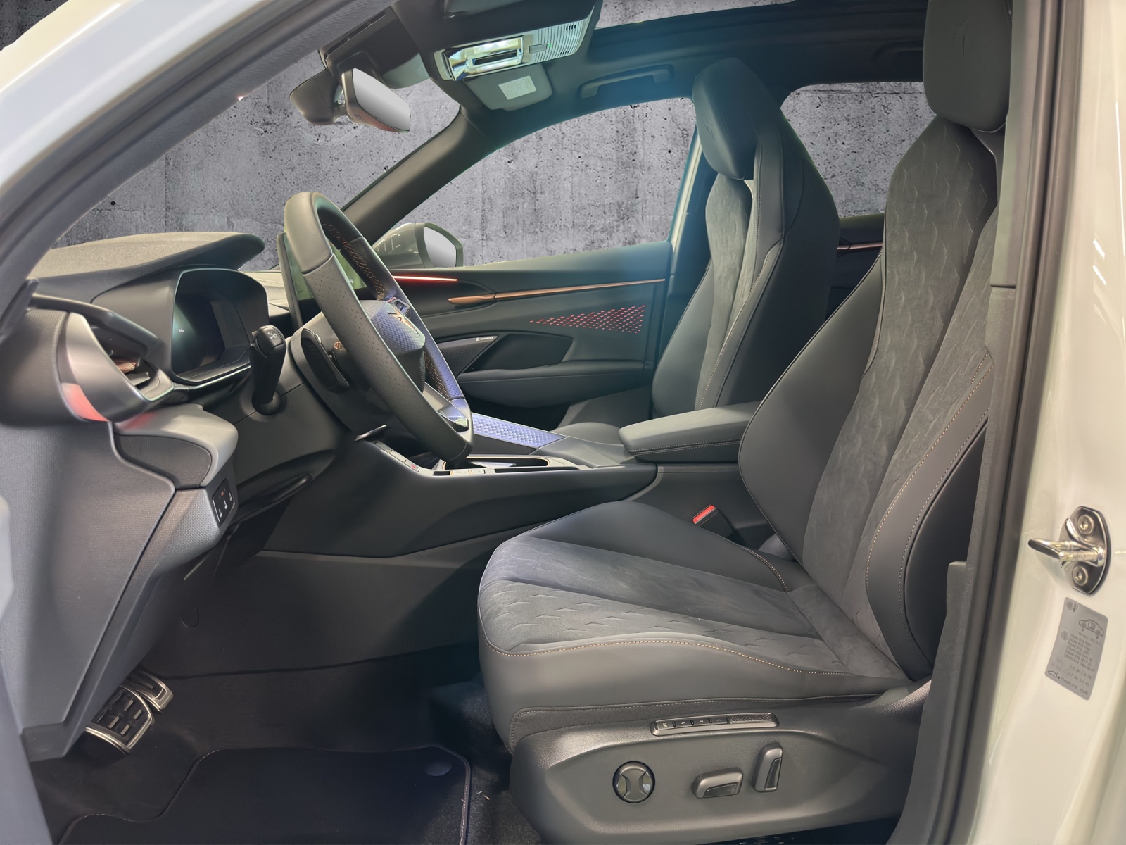 3-Punkt-Sicherheitsgurte auf allen Plätzen ABS, EBV elektronische Bremskraft-verteilung Abgedunkelte Scheiben ab B-Säule hinten Airbag: Airbag Beifahrer deaktivierbar Airbag: Airbag Fahrer und Beifahrer Airbag: Kopfairbags vorne und hinten Airbag: Seitenairbags für Fahrer und Beifahrer Alarmanlage mit Innenraumüberwachung Assist: Aufmerksamkeits- und Müdigkeitserkennung (ADA) Assist: Ausweichunterstützung / Abbiegeassistent Assist: Automatische Distanzregelung ACC Assist: City Notbremsfunktion Assist: Einparkhilfe vorne und hinten mit Rückfahrkamera Assist: Elektronische Parkbremse mit Auto Hold Funktion Assist: Lane assist (Spurhalteassistent) Assist: Multifunktionskamera Assist: Multikollisionsbremse Assist: Prädiktive Speedlimiter Assist: Traffic sign recognition (Verkehrszeichenerkennung) Assist: Umfeldüberwachungssystem "Front-Assist" Aussenspiegel elektrisch einstell-, beheiz- und einklappbar Aussenspiegel mit LED-Umfeldbeleuchtung Beleuchtete Sonnenblende links mit abdeckbarem Spiegel und Lasche, rechts mit abdeckbarem Spiegel ESC mit EBA, DSR, XDS und Reifendruckkontrolle Einstiegsleisten beleuchtet Elektrische Fensterheber vorne und hinten mit Komfortschaltung und Einklemmschutz Fahrwerk: Adaptive Fahrwerksregelung DCC pro Fahrwerk: CUPRA Sportfahrwerk Fahrwerk: Progressivlenkung Fussmatten vorne und hinten Garantie: Cupra 12 Jahre Gewährleistung gegen Karosserie-Durchrostung Garantie: Cupra 3 Jahre Lack-Gewährleistung Garantie: Cupra Garantie 2 Jahre Garantie: Cupra Hersteller-Garantieverlängerung für das 3., 4. und 5. Jahr / max.100’000 km Heckklappe elektrisch öffnend und schliessend "Virtual Pedal" Heckscheiben-Wisch-/Waschanlage mit Intervall Innenspiegel automatisch abblendbar Klima: 3-Zonen Climatronic mit Fondraumbedienung LED-Ambientebeleuchtung Smart Wraparound, inkl. Funktionsanzeige Lackierung: Uni-Lackierung Lenkrad: Leder Multifunktionslenkrad mit Schaltwippen, beheizbar Licht: Drittes Bremslicht Licht: Durchgehende Full LED-Heckleuchten Licht: LED Heckleuchten mit beleuchtetem 3D CUPRA Logo Licht: LED-Heckleuchten mit dynamischem Blinklicht Licht: LED-Nebelscheinwerfer mit Cornering-Funktion Licht: LED-Scheinwerfer für Abblend- und Fernlicht Licht: Leuchtweitenregulierung dynamisch Licht: Nebelschlussleuchte Media: 12,9" Infotainment (MIB3) Media: 2 USB C Anschlüsse hinten und vorne Media: CUPRA Connect Remote & Access / CUPRA Connect Safety & Services Media: CUPRA Connectivity Box Media: DAB+ (Digital Audio Broadcasting) Media: Mobiltelefon Freisprechanlage Bluetooth Mittelarmlehne vorne und hinten Pyrotechnische Gurtstraffer und Gurtkraftbegrenzer Räder: Alufelgen 8.5J x 19", "COSMIC" Machined in Sport Black Matt & Silver Räder: Performance Reifen Räder: Reifendruckkontrollsystem Schlüsselloses Schliess- und Startsystem (KESSY Advance) Servolenkung mit geschwindigkeitsabhängiger Lenkkraftunterstützung Sitze: 3 verstellbare Kopfstützen hinten Sitze: CUPRA Sport Schalensitze in Textil, "DEEP OCEAN" "SEAQUAL" Sitze: Geteilt abklappbare Rücksitzlehne 1/3 - 2/3 Sitze: Geteilt abklappbare Rücksitzlehne mit Mittelarmlehne Sitze: Kindersitzverankerung ISOFIX hinten Sitze: Vordersitze höhenverstellbar mit Lendenwirbelstütze Stopp - Start- und Rekuperationssystem Wegfahrsperre elektronisch Zentralverriegelung mit Funkfernbedienung, 2 Funkschlüssel