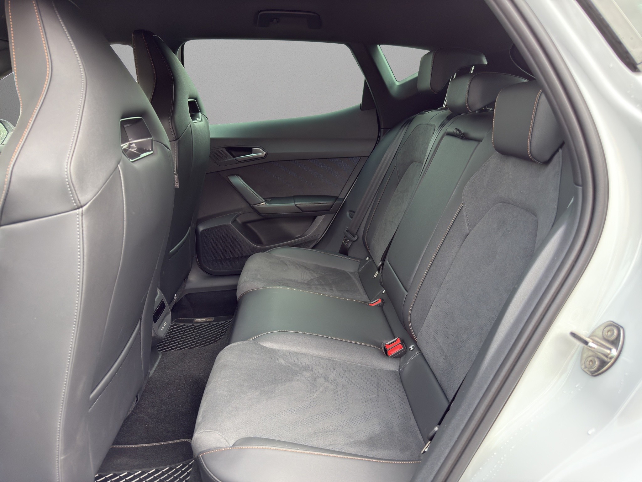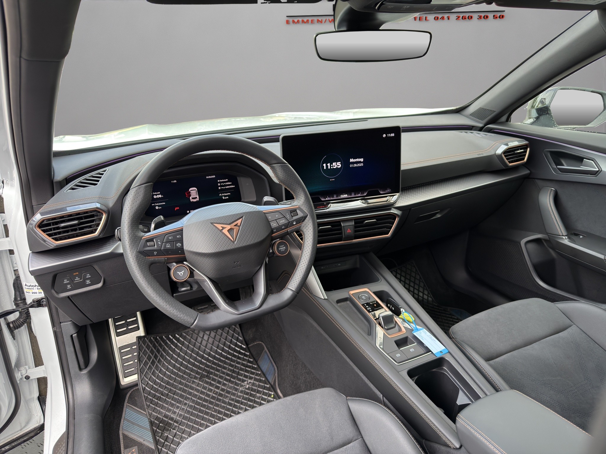 3-Punkt-Sicherheitsgurte auf allen Plätzen ABS, EBV elektronische Bremskraft-verteilung Abgedunkelte Scheiben ab B-Säule hinten Airbag: Airbag Beifahrer deaktivierbar Airbag: Airbag Fahrer und Beifahrer Airbag: Kopfairbags vorne und hinten Airbag: Seitenairbags für Fahrer und Beifahrer Assist: Aufmerksamkeits- und Müdigkeitserkennung (ADA) Assist: Ausweichunterstützung / Abbiegeassistent Assist: Automatische Distanzregelung ACC Assist: City Notbremsfunktion Assist: Einparkhilfe vorne und hinten mit Rückfahrkamera Assist: Elektronische Parkbremse mit Auto Hold Funktion Assist: Lane assist (Spurhalteassistent) Assist: Multifunktionskamera Assist: Multikollisionsbremse Assist: Prädiktive Speedlimiter Assist: Regen-/Lichtsensor Assist: Traction Control (TCS) Assist: Traffic sign recognition (Verkehrszeichenerkennung) Assist: Umfeldbeobachtung Front-Assist Aussenspiegel mit Beifahrerspiegelabsenkung Aussenspiegel mit LED-Umfeldbeleuchtung Automatisch abblendender Innenrückspiegel Beleuchtete Sonnenblende links mit abdeckbarem Spiegel und Lasche, rechts mit abdeckbarem Spiegel ESC mit EBA, DSR, XDS und Reifendruckkontrolle Elektrische Fensterheber vorne und hinten mit Komfortschaltung und Einklemmschutz Fahrwerk: Adaptive Fahrwerksregelung DCC Fahrwerk: Progressivlenkung Fussmatten vorne und hinten Garantie: Cupra 12 Jahre Gewährleistung gegen Karosserie-Durchrostung Garantie: Cupra 3 Jahre Lack-Gewährleistung Garantie: Cupra Garantie 2 Jahre ohne Kilometerbegrenzung Heckscheiben-Wisch-/Waschanlage mit Intervall Kindersitzverankerung ISOFIX (äussere Plätze hinten) Klima: 3-Zonen Climatronic mit Fondraumbedienung Lackierung: Uni-Lackierung Ladekabel für Haushaltssteckdose (Mode 2) Lenkrad: Supersportlenkrad mit Start-/ Drive Profile-Knopfsystem und Schaltwippen, beheizbar Licht: Coming-home-Funktion Licht: Drittes Bremslicht Licht: Durchgehende Full LED-Heckleuchten Licht: Fernlicht-Assistent Licht: LED Heckleuchten mit beleuchtetem 3D CUPRA Logo Licht: LED-Heckleuchten mit dynamischem Blinklicht Licht: LED-Nebelscheinwerfer mit Cornering-Funktion Licht: LED-Scheinwerfer für Abblend- und Fernlicht Licht: Leuchtweitenregulierung dynamisch Licht: Nebelschlussleuchte Media: 12,9" Infotainment (MIB3) Media: 2 USB C Anschlüsse hinten und vorne Media: CUPRA Connect Online Infotainment Media: CUPRA Connect Remote & Access Media: CUPRA Connect Safety & Services Media: CUPRA Connectivity Box Media: DAB+ (Digital Audio Broadcasting) Media: Mobiltelefon Freisprechanlage Bluetooth Pyrotechnische Gurtstraffer und Gurtkraftbegrenzer Räder: Alufelgen 8J x 19", "SANDSTORM" Machined in Silver Räder: Reifendruckkontrollsystem Räder: Reifenreparatur-Set (Tire Fit) Servolenkung mit geschwindigkeitsabhängiger Lenkkraftunterstützung Sitze: 3 verstellbare Kopfstützen hinten Sitze: Geteilt abklappbare Rücksitzlehne 1/3 - 2/3 Sitze: Kopfstützen vorne (integrierte) Sitze: Mittelarmlehne hinten Sitze: Mittelarmlehne vorne Sitze: Schublade unter dem rechten Vordersitz Sitze: Sitzheizung für Vordersitze, getrennt regelbar Sitze: Vordersitze höhenverstellbar mit Lendenwirbelstütze Stopp - Start- und Rekuperationssystem Wegfahrsperre elektronisch Zentralverriegelung mit Funkfernbedienung, 2 Funkschlüssel