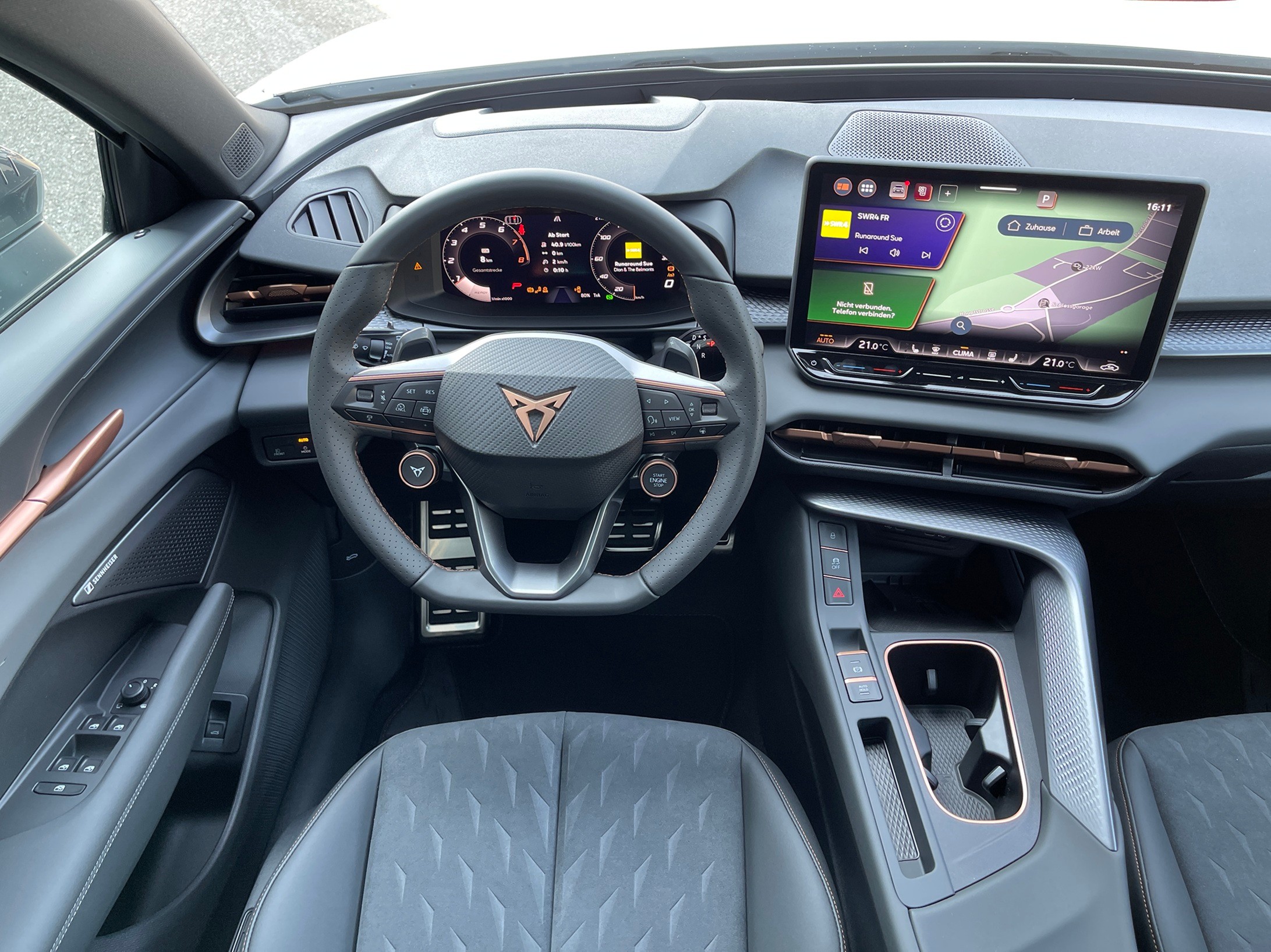 Lackierung: Metallic-Lackierung Media: IMMERSIVE by SENNHEISER Räder: Alufelgen 8.5J x 20", "HADRON COPPER" Machined in Sport Black Matt & Copper
