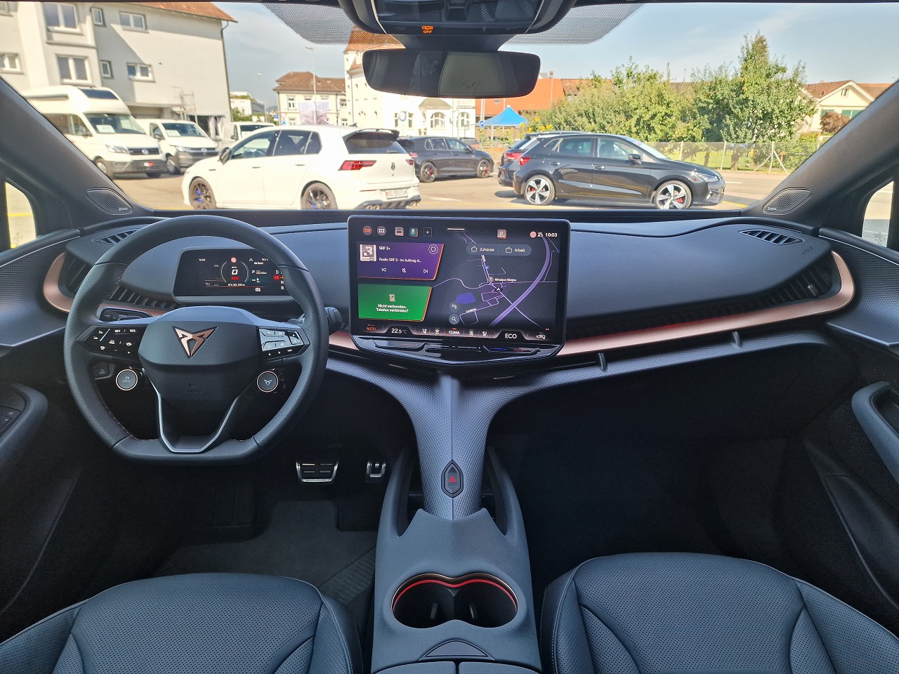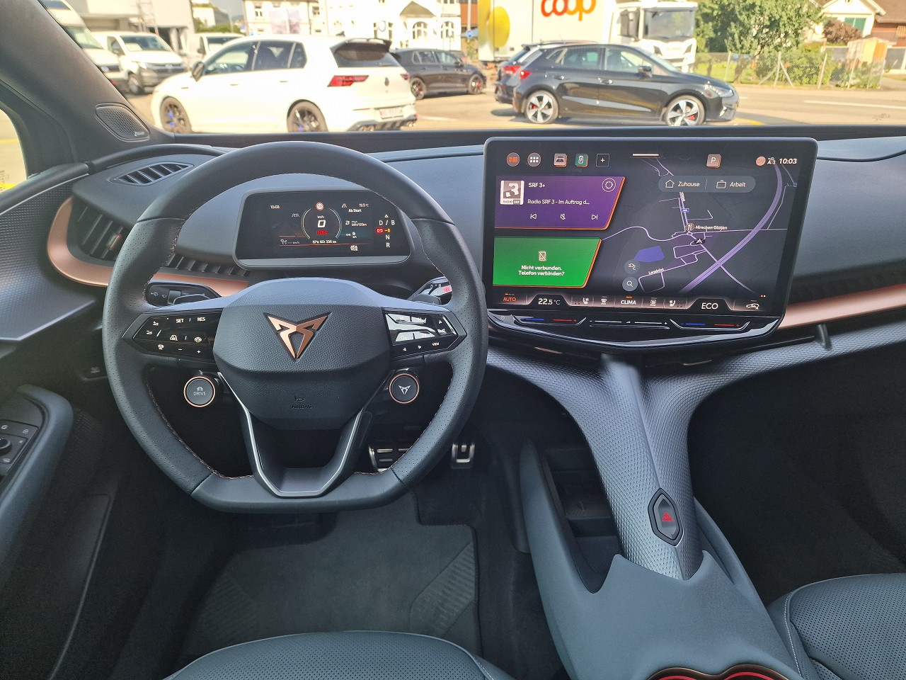5.3" Full Digital Cockpit Abgedunkelte Scheiben ab B-Säule hinten Airbag: Airbag Beifahrer deaktivierbar Airbag: Airbag Fahrer und Beifahrer Airbag: Seitenairbags für Fahrer und Beifahrer Alarmanlage mit Innenraumüberwachung Assist: Aufmerksamkeits- und Müdigkeitserkennung (ADA) Assist: Ausweichunterstützung / Abbiegeassistent Assist: Exit Assist (Ausparkassistent) Assist: Exit Warning (Ausstiegswarner) Assist: Intelligenter Geschwindigkeitsassistent Assist: Parklenkassistent RPA (Remote Park Assist) Assist: PreCrash Sicherheitssystem Assist: Prädiktive automatische Distanzregelung ACC Assist: Regen-/Lichtsensor Assist: Side Assist (Spurwechselassistent) Assist: Top View Camera (Rundumblick) Assist: Traction Control (TCS) Assist: Traffic sign recognition (Verkehrszeichenerkennung) Assist: eCall Notruffunktion Augmented Reality Head-up-Display Aussenspiegel elektrisch einstell-, beheiz- und einklappbar mit Beifahrerabsenkfunktion- Automatisch abblendender Innenrückspiegel Dreipunkt-Automatiksicherheitsgurte auf allen Plätzen Einstiegsleisten beleuchtet Elektrische Fensterheber vorne und hinten mit Komfortschaltung und Einklemmschutz Elektronisches Stabilitäts-Programm (ESP) Fahrwerk: Adaptive Fahrwerksregelung DCC Garantie: Cupra 12 Jahre Gewährleistung gegen Karosserie-Durchrostung Garantie: Cupra 3 Jahre Lack-Gewährleistung Garantie: Cupra Garantie 2 Jahre ohne Kilometerbegrenzung Getriebe: 1-Gang Automatik Heckklappe elektrisch öffnend und schliessend "Virtual Pedal" Klima: 3-Zonen Climatronic mit Fondraumbedienung LED Ambientebeleuchtung "IMMERSIVE" Lackierung: Uni-Lackierung Lenkrad: Supersportlenkrad mit Drive Profile-Knopfsystem,beheizbar Licht: Drittes Bremslicht Licht: LED Heckleuchten mit beleuchtetem 3D CUPRA Logo Licht: Matrix LED Fernlicht Licht: Matrix LED Scheinwerfer Licht: Nebelschlussleuchte Media: 15" Infotainment (MIB3) Media: 2 USB C Anschlüsse hinten und vorne Media: Bluetooth-Freisprecheinrichtung Media: CUPRA Connect Online Infotainment Media: CUPRA Connect Remote & Access Media: CUPRA Connect Safety & Services Media: CUPRA Navigationssystem Media: DAB+ (Digital Audio Broadcasting) Media: SENNHEISER Sound System mit 12 High-End-Lautsprecher inkl. 300 Watt Subwoofer Media: Wireless Charger zur induktiven Smartphone Ladung Räder: Alufelgen 9J x 21", "Etna" Machined Sport in Black/Copper Räder: Reifendruckkontrollsystem Schlüsselloses Schliess- und Startsystem (KESSY Advance) Servolenkung geschwindigkeitsabhängig Sitze: CUPRA CUPBucket Sportschalensitze in Leder "Enceladus Grey" Sitze: Elektrische Sitzverstellung mit Memory-Funktion für Fahrer- und Beifahrerseite Sitze: Geteilt abklappbare Rücksitzlehne mit Mittelarmlehne und Durchlademöglichkeit Sitze: Kindersitzbefestigungssystem ISOFIX Sitze: Kopfstützen hinten höhenverstellbar Sitze: Kopfstützen vorne (integrierte) Sitze: Lendenwirbelstütze Fahrer- und Beifahrerseite elektrisch einstellbar Sitze: Sitzbelüftung für Vordersitze Sitze: Sitzheizung für Vorder- und Rücksitze, getrennt regelbar Sitze: Vordersitze höhenverstellbar Vorbereitung für Anhängevorrichtung Wegfahrsperre elektronisch Zentralverriegelung mit Fernbedienung