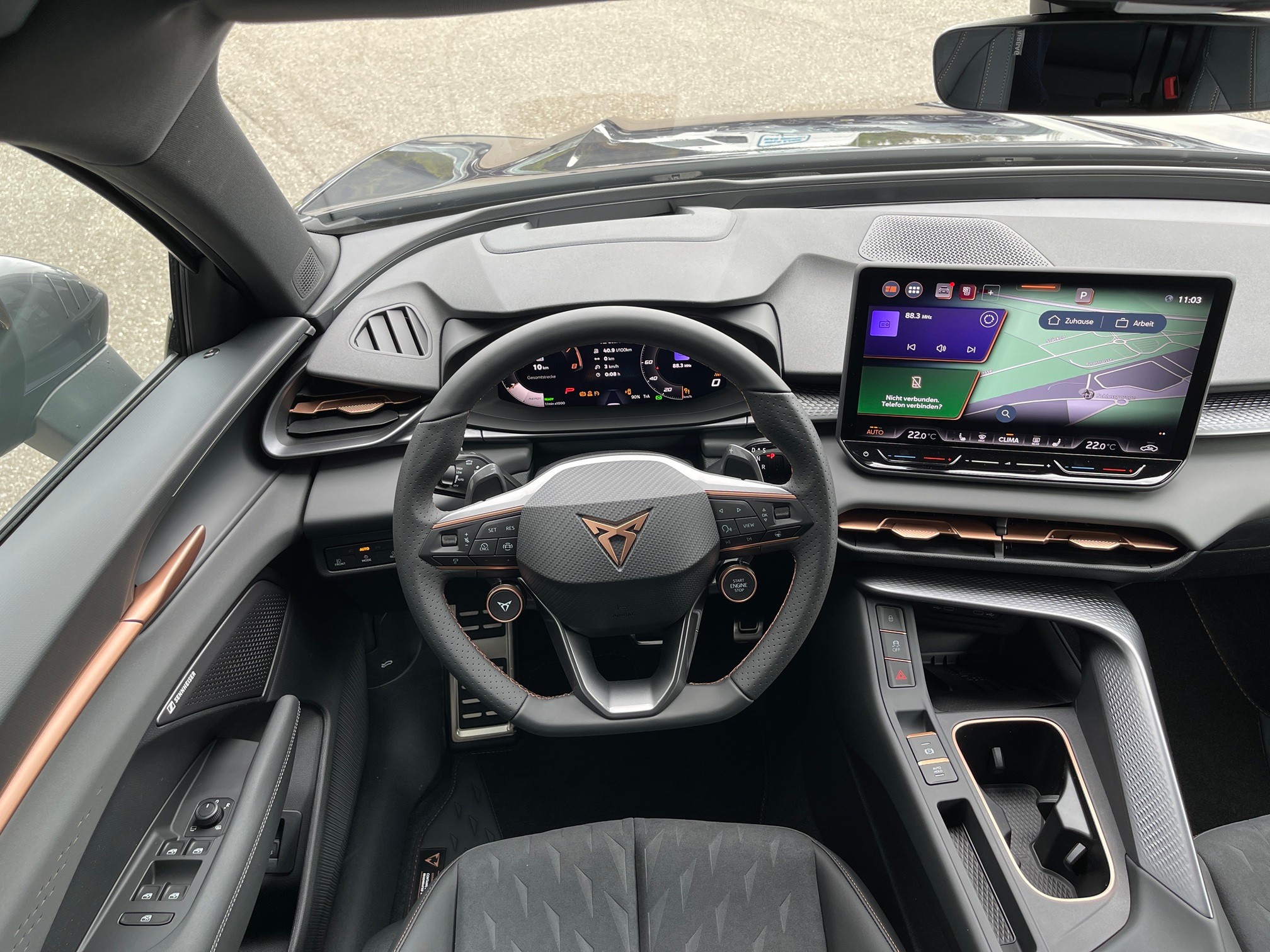 3-Punkt-Sicherheitsgurte auf allen Plätzen ABS, EBV elektronische Bremskraft-verteilung Airbag: Airbag Beifahrer deaktivierbar Airbag: Airbag Fahrer und Beifahrer Airbag: Kopfairbags vorne und hinten Airbag: Seitenairbags für Fahrer und Beifahrer Assist: Aufmerksamkeits- und Müdigkeitserkennung (ADA) Assist: Ausweichunterstützung / Abbiegeassistent Assist: Automatische Distanzregelung ACC Assist: City Notbremsfunktion Assist: Einparkhilfe vorne und hinten Assist: Elektronische Parkbremse mit Auto Hold Funktion Assist: Lane assist (Spurhalteassistent) Assist: Multifunktionskamera Assist: Multikollisionsbremse Assist: Prädiktive Speedlimiter Assist: Traffic sign recognition (Verkehrszeichenerkennung) Assist: Umfeldüberwachungssystem "Front-Assist" Aussenspiegel elektrisch einstell-, beheizbar Aussenspiegel mit LED-Umfeldbeleuchtung Beleuchtete Sonnenblende links mit abdeckbarem Spiegel und Lasche, rechts mit abdeckbarem Spiegel ESC mit EBA, DSR, XDS und Reifendruckkontrolle Elektrische Fensterheber vorne und hinten mit Komfortschaltung und Einklemmschutz Fahrwerk: CUPRA Sportfahrwerk Fahrwerk: Progressivlenkung Full Digital Cockpit 10.25" Fussmatten vorne und hinten Garantie: Cupra 12 Jahre Gewährleistung gegen Karosserie-Durchrostung Garantie: Cupra 3 Jahre Lack-Gewährleistung Garantie: Cupra Hersteller-Garantieverlängerung für das 3., 4. und 5. Jahr / max.100000 km Heckscheiben-Wisch-/Waschanlage mit Intervall Innenspiegel automatisch abblendbar Lackierung: Uni-Lackierung Lenkrad: Leder Multifunktionslenkrad mit Schaltwippen Licht: Drittes Bremslicht Licht: Durchgehende Full LED-Heckleuchten Licht: LED Heckleuchten mit beleuchtetem 3D CUPRA Logo Licht: LED-Heckleuchten mit dynamischem Blinklicht Licht: LED-Nebelscheinwerfer mit Cornering-Funktion Licht: LED-Scheinwerfer für Abblend- und Fernlicht Licht: Leuchtweitenregulierung dynamisch Licht: Nebelschlussleuchte Media: 12,9" Infotainment (MIB3) Media: 2 USB C Anschlüsse hinten und vorne Media: CUPRA Connect Remote & Access / CUPRA Connect Safety & Services Media: CUPRA Connectivity Box Media: DAB+ (Digital Audio Broadcasting) Media: Mobiltelefon Freisprechanlage Bluetooth Mittelarmlehne vorne und hinten Pyrotechnische Gurtstraffer und Gurtkraftbegrenzer Räder: Alufelgen 8J x 18", "ATOMIC DARK" Machined in Dark Shadow Räder: Reifendruckkontrollsystem Servolenkung mit geschwindigkeitsabhängiger Lenkkraftunterstützung Sitze: 3 verstellbare Kopfstützen hinten Sitze: CUPRA Sport Schalensitze in Textil, "DEEP OCEAN" "SEAQUAL" Sitze: Geteilt abklappbare Rücksitzlehne 1/3 - 2/3 Sitze: Kindersitzverankerung ISOFIX hinten Sitze: Vordersitze höhenverstellbar mit Lendenwirbelstütze Stopp - Start- und Rekuperationssystem Wegfahrsperre elektronisch Zentralverriegelung "Keyless-Go" Zentralverriegelung mit Funkfernbedienung, 2 Funkschlüssel