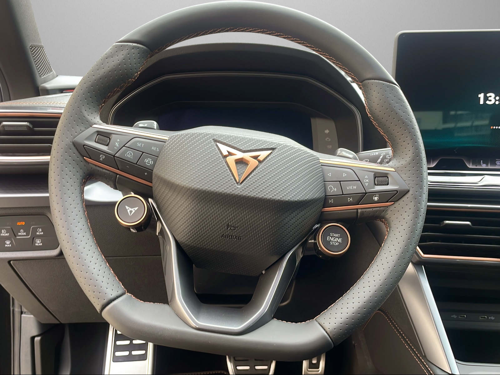 ABS, EBV elektronische Bremskraft-verteilung Abgedunkelte Scheiben ab B-Säule hinten Airbag: Airbag Fahrer und Beifahrer Airbag: Airbag passager désactivable Airbag: Kopfairbags vorne und hinten Airbag: Seitenairbags für Fahrer und Beifahrer Alarme avec surveillance intérieure Ancrage de siège enfant ISOFIX (sièges arrières ext.) Assist: Aufmerksamkeits- und Müdigkeitserkennung (ADA) Assist: Ausweichunterstützung / Abbiegeassistent Assist: Automatische Distanzregelung ACC Assist: City Notbremsfunktion Assist: Détecteur de pluie et de lumière Assist: Einparkhilfe vorne und hinten Assist: Elektronische Parkbremse mit Auto Hold Funktion Assist: Lane assist (Spurhalteassistent) Assist: Multifunktionskamera Assist: Multikollisionsbremse Assist: Prädiktive Speedlimiter Assist: Système de surveillance de l'environneme Front Assist Assist: Traction Control (TCS) Assist: Traffic sign recognition (Verkehrszeichenerkennung) Aussenspiegel elektrisch einstell-, beheiz- und einklappbar Aussenspiegel mit LED-Umfeldbeleuchtung Beleuchtete Sonnenblende links mit abdeckbarem Spiegel und Lasche, rechts mit abdeckbarem Spiegel Ceintures de sécurité à 3 points à toutes les places Cockpit numérique complet ESC mit EBA, DSR, XDS und Reifendruckkontrolle Elektrische Fensterheber vorne und hinten mit Komfortschaltung und Einklemmschutz Fahrwerk: Progressivlenkung Garantie: CUPRA Prolongation de garantie constructeur pour les 3ème, 4ème et 5ème années / Garantie: Cupra 12 ans de garantie contre perforation de la carrosserie Garantie: Cupra 3 ans de garantie pour la peinture Garantie: Garantie Cupra 2 ans Heckscheiben-Wisch-/Waschanlage mit Intervall Klima: 3-Zonen Climatronic mit Fondraumbedienung Licht: Durchgehende Full LED-Heckleuchten Licht: LED Heckleuchten mit beleuchtetem 3D CUPRA Logo Licht: LED-Heckleuchten mit dynamischem Blinklicht Licht: LED-Scheinwerfer für Abblend- und Fernlicht Licht: Leuchtweitenregulierung dynamisch Lumiere: feux de jour a LED Lumière: 3ème feu de stop Lumière: Assistance aux feux de route Lumière: Feu AR antibrouillard Lumière: Fonction Coming-home Lumière: Phares antibrouillard LED avec Cornering Funktion Media: 12,9" Infotainment (MIB3) Media: 2 USB C Anschlüsse hinten und vorne Media: CUPRA Connect Remote & Access Media: Mobiltelefon Freisprechanlage Bluetooth Medias: Système commande vocale Mèdias: CUPRA Connect Safety & Services Mèdias: CUPRA Connectivity Box Mèdias: DAB+ (Digital Audio Broadcasting) Poignées de porte dans la couleur du corps Profil de conduite de la CUPRA Pyrotechnische Gurtstraffer und Gurtkraftbegrenzer Roues: Jantes aluminium 8J x 18", "TEMPEST" usinées argent Roues: Set de réparation pour les pneus Roues: Système de contrôle de la pression des pneus Rétroviseur intérieur à position jour/nuit automatique Rétroviseurs extérieurs avec rétroviseur du passager avant abaissable Servolenkung mit geschwindigkeitsabhängiger Lenkkraftunterstützung Sieges: Appuie-tete avant (intégrés) Sitze: 3 verstellbare Kopfstützen hinten Sitze: Geteilt abklappbare Rücksitzlehne 1/3 - 2/3 Sitze: Vordersitze höhenverstellbar mit Lendenwirbelstütze Sièges: Accoudoir central AR Sièges: Accoudoir central AV Sièges: CUPRA Sportsitze in "Sharp Textil schwarz" Sièges: Sièges avant chauffants, réglables séparément Stopp - Start- und Rekuperationssystem Tapis de sol avant et arrière Verrouillage centralisé "Keyless-Go" Volant: Volant super sport avec système de bouton Start / Drive Profile et palettes de changement Zentralverriegelung mit Funkfernbedienung, 2 Funkschlüssel Éclairage de l'habitacle LED avec Eclairage d'ambiance"Monochrom"