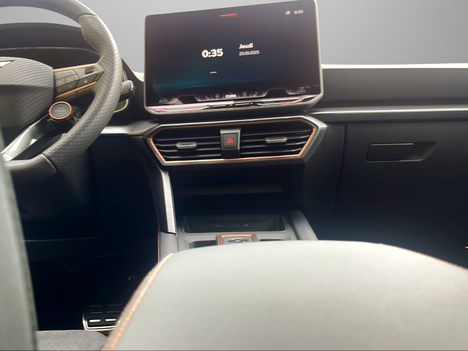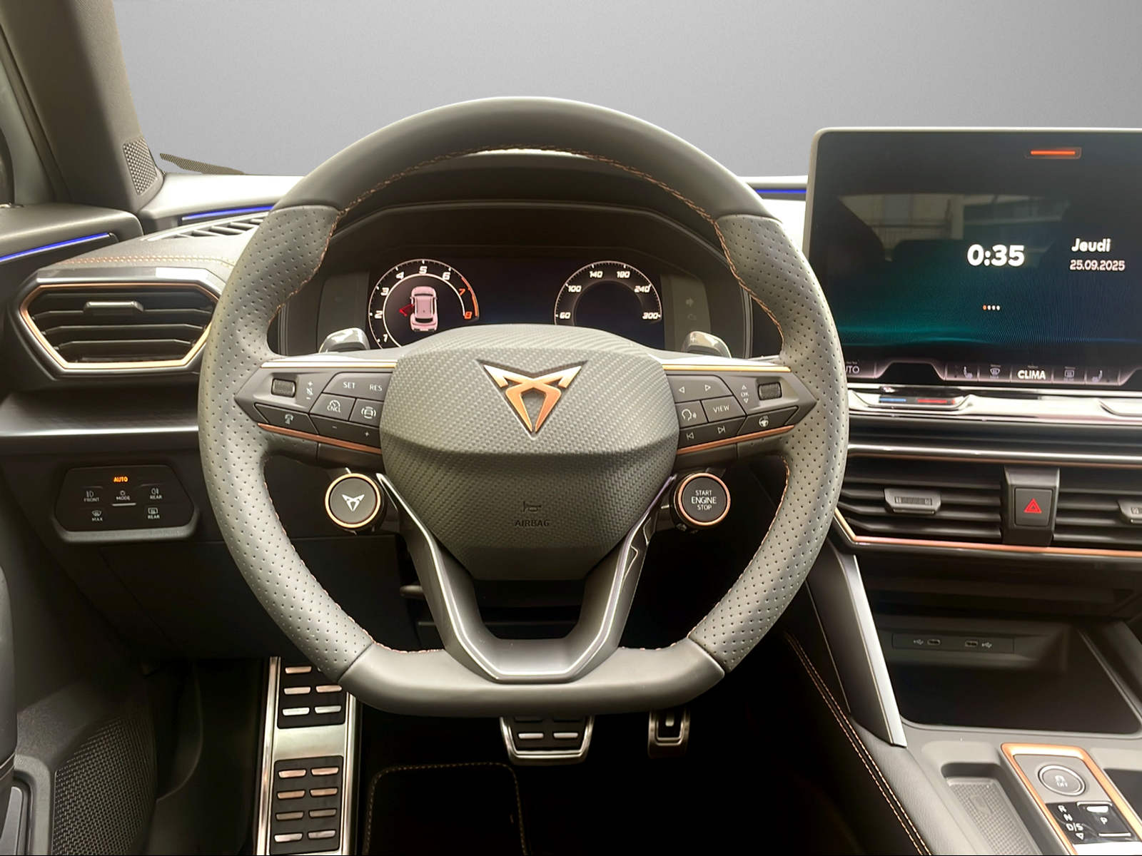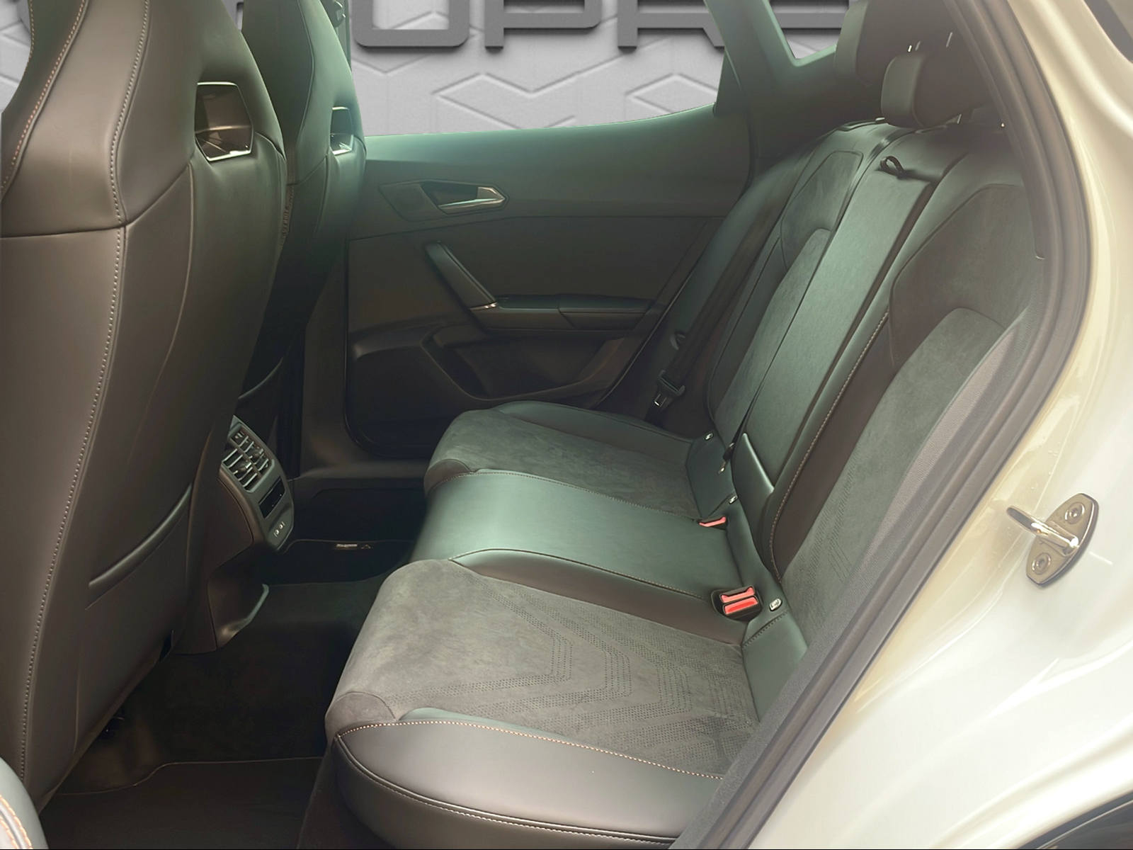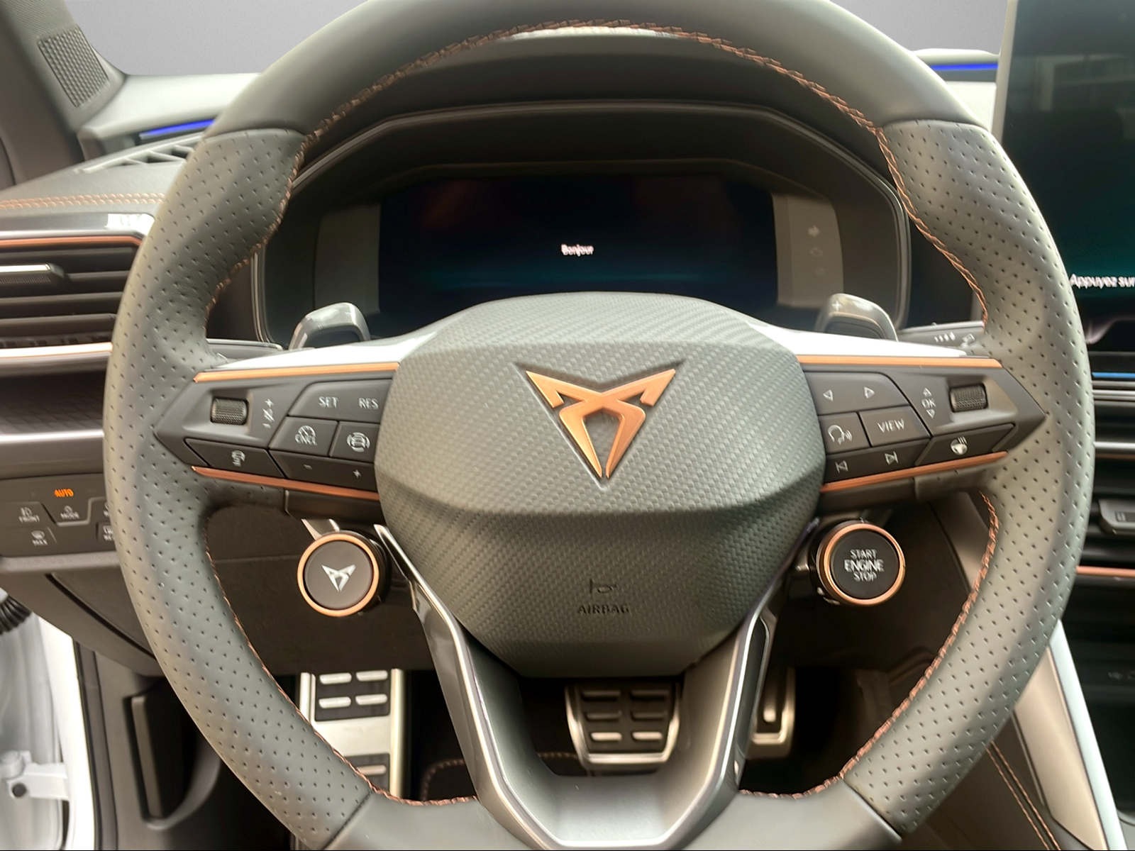 3-Punkt-Sicherheitsgurte auf allen Plätzen ABS, EBV elektronische Bremskraft-verteilung Abgedunkelte Scheiben ab B-Säule hinten Airbag: Airbag Beifahrer deaktivierbar Airbag: Airbag Fahrer und Beifahrer Airbag: Kopfairbags vorne und hinten Airbag: Seitenairbags für Fahrer und Beifahrer Alarme avec surveillance intérieure Ancrage de siège enfant ISOFIX (sièges arrières ext.) Assist: Aufmerksamkeits- und Müdigkeitserkennung (ADA) Assist: Ausweichunterstützung / Abbiegeassistent Assist: Automatische Distanzregelung ACC Assist: City Notbremsfunktion Assist: Einparkhilfe vorne und hinten Assist: Elektronische Parkbremse mit Auto Hold Funktion Assist: Lane assist (Spurhalteassistent) Assist: Multifunktionskamera Assist: Multikollisionsbremse Assist: Prädiktive Speedlimiter Assist: Regen-/Lichtsensor Assist: Système de surveillance de l'environneme Front Assist Assist: Traction Control (TCS) Assist: Traffic sign recognition (Verkehrszeichenerkennung) Aussenspiegel elektrisch einstell-, beheiz- und einklappbar Aussenspiegel mit LED-Umfeldbeleuchtung Automatisch abblendender Innenrückspiegel Beleuchtete Sonnenblende links mit abdeckbarem Spiegel und Lasche, rechts mit abdeckbarem Spiegel Cockpit numérique complet ESC mit EBA, DSR, XDS und Reifendruckkontrolle Elektrische Fensterheber vorne und hinten mit Komfortschaltung und Einklemmschutz Fahrwerk: Progressivlenkung Garantie: CUPRA Prolongation de garantie constructeur pour les 3ème, 4ème et 5ème années / Garantie: Cupra 12 ans de garantie contre perforation de la carrosserie Garantie: Cupra 2 ans de garantie, kilométrage illimité Garantie: Cupra 3 ans de garantie pour la peinture Garantie: Garantie Cupra 2 ans Heckscheiben-Wisch-/Waschanlage mit Intervall Klima: 3-Zonen Climatronic mit Fondraumbedienung Lackierung: Uni-Lackierung Licht: Coming-home-Funktion Licht: Drittes Bremslicht Licht: Durchgehende Full LED-Heckleuchten Licht: Fernlicht-Assistent Licht: LED Heckleuchten mit beleuchtetem 3D CUPRA Logo Licht: LED-Heckleuchten mit dynamischem Blinklicht Licht: LED-Nebelscheinwerfer mit Cornering-Funktion Licht: LED-Scheinwerfer für Abblend- und Fernlicht Licht: Leuchtweitenregulierung dynamisch Licht: Nebelschlussleuchte Media: 12,9" Infotainment (MIB3) Media: 2 USB C Anschlüsse hinten und vorne Media: CUPRA Connect Online Infotainment Media: CUPRA Connect Remote & Access Media: DAB+ (Digital Audio Broadcasting) Media: Mobiltelefon Freisprechanlage Bluetooth Mèdias: CUPRA Connect Safety & Services Mèdias: CUPRA Connectivity Box Pyrotechnische Gurtstraffer und Gurtkraftbegrenzer Roues: Jantes aluminium 8J x 18", "TEMPEST" usinées argent Räder: Reifendruckkontrollsystem Räder: Reifenreparatur-Set (Tire Fit) Rétroviseurs extérieurs avec rétroviseur du passager avant abaissable Servolenkung mit geschwindigkeitsabhängiger Lenkkraftunterstützung Sitze: 3 verstellbare Kopfstützen hinten Sitze: Geteilt abklappbare Rücksitzlehne 1/3 - 2/3 Sitze: Kopfstützen vorne (integrierte) Sitze: Mittelarmlehne hinten Sitze: Mittelarmlehne vorne Sitze: Sitzheizung für Vordersitze, getrennt regelbar Sitze: Vordersitze höhenverstellbar mit Lendenwirbelstütze Sièges: Les sieges sportifs de Cupra dans "Sharp Textil noir" Stopp - Start- und Rekuperationssystem Tapis de sol avant et arrière Verrouillage centralisé "Keyless-Go" Volant: Volant Supersport avec système de bouton de démarrage-/ Drive Profile et Wegfahrsperre elektronisch Zentralverriegelung mit Funkfernbedienung, 2 Funkschlüssel Éclairage de l'habitacle LED avec Eclairage d'ambiance"Monochrom"