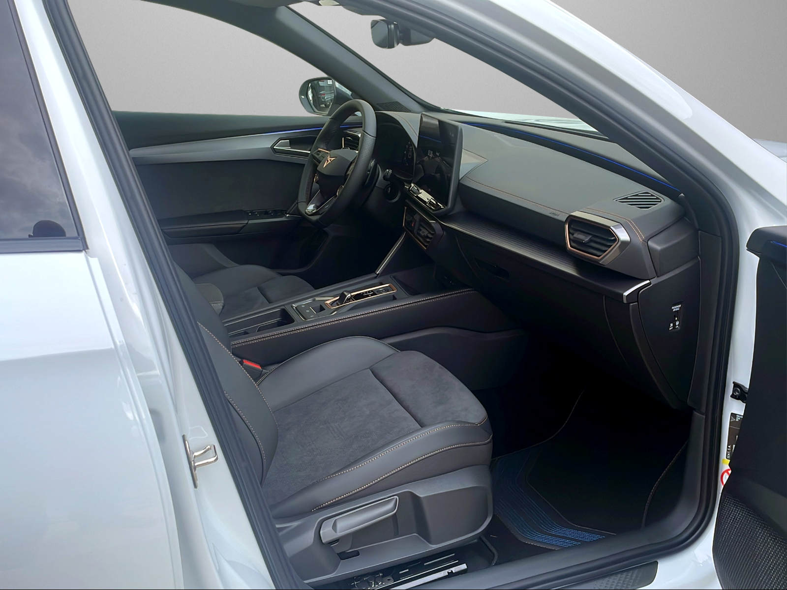 ABS, EBV elektronische Bremskraft-verteilung Abgedunkelte Scheiben ab B-Säule hinten Airbag: Airbag Fahrer und Beifahrer Airbag: Airbag passager désactivable Airbag: Kopfairbags vorne und hinten Airbag: Seitenairbags für Fahrer und Beifahrer Alarme avec surveillance intérieure Ancrage de siège enfant ISOFIX (sièges arrières ext.) Assist: Aufmerksamkeits- und Müdigkeitserkennung (ADA) Assist: Ausweichunterstützung / Abbiegeassistent Assist: Automatische Distanzregelung ACC Assist: City Notbremsfunktion Assist: Détecteur de pluie et de lumière Assist: Einparkhilfe vorne und hinten Assist: Elektronische Parkbremse mit Auto Hold Funktion Assist: Lane assist (Spurhalteassistent) Assist: Multifunktionskamera Assist: Multikollisionsbremse Assist: Prädiktive Speedlimiter Assist: Système de surveillance de l'environneme Front Assist Assist: Traction Control (TCS) Assist: Traffic sign recognition (Verkehrszeichenerkennung) Aussenspiegel elektrisch einstell-, beheiz- und einklappbar Aussenspiegel mit LED-Umfeldbeleuchtung Beleuchtete Sonnenblende links mit abdeckbarem Spiegel und Lasche, rechts mit abdeckbarem Spiegel Ceintures de sécurité à 3 points à toutes les places Cockpit numérique complet ESC mit EBA, DSR, XDS und Reifendruckkontrolle Elektrische Fensterheber vorne und hinten mit Komfortschaltung und Einklemmschutz Fahrwerk: Progressivlenkung Garantie: CUPRA Prolongation de garantie constructeur pour les 3ème, 4ème et 5ème années / Garantie: Cupra 12 ans de garantie contre perforation de la carrosserie Garantie: Cupra 3 ans de garantie pour la peinture Garantie: Garantie Cupra 2 ans Heckscheiben-Wisch-/Waschanlage mit Intervall Klima: 3-Zonen Climatronic mit Fondraumbedienung Licht: Durchgehende Full LED-Heckleuchten Licht: LED Heckleuchten mit beleuchtetem 3D CUPRA Logo Licht: LED-Heckleuchten mit dynamischem Blinklicht Licht: LED-Scheinwerfer für Abblend- und Fernlicht Licht: Leuchtweitenregulierung dynamisch Lumiere: feux de jour a LED Lumière: 3ème feu de stop Lumière: Assistance aux feux de route Lumière: Feu AR antibrouillard Lumière: Fonction Coming-home Lumière: Phares antibrouillard LED avec Cornering Funktion Media: 12,9" Infotainment (MIB3) Media: 2 USB C Anschlüsse hinten und vorne Media: CUPRA Connect Remote & Access Media: Mobiltelefon Freisprechanlage Bluetooth Medias: Système commande vocale Mèdias: CUPRA Connect Safety & Services Mèdias: CUPRA Connectivity Box Mèdias: DAB+ (Digital Audio Broadcasting) Poignées de porte dans la couleur du corps Profil de conduite de la CUPRA Pyrotechnische Gurtstraffer und Gurtkraftbegrenzer Roues: Jantes aluminium 8J x 18", "TEMPEST" usinées argent Roues: Set de réparation pour les pneus Roues: Système de contrôle de la pression des pneus Rétroviseur intérieur à position jour/nuit automatique Rétroviseurs extérieurs avec rétroviseur du passager avant abaissable Servolenkung mit geschwindigkeitsabhängiger Lenkkraftunterstützung Sieges: Appuie-tete avant (intégrés) Sitze: 3 verstellbare Kopfstützen hinten Sitze: Geteilt abklappbare Rücksitzlehne 1/3 - 2/3 Sitze: Vordersitze höhenverstellbar mit Lendenwirbelstütze Sièges: Accoudoir central AR Sièges: Accoudoir central AV Sièges: CUPRA Sportsitze in "Sharp Textil schwarz" Sièges: Sièges avant chauffants, réglables séparément Stopp - Start- und Rekuperationssystem Tapis de sol avant et arrière Verrouillage centralisé "Keyless-Go" Volant: Volant super sport avec système de bouton Start / Drive Profile et palettes de changement Zentralverriegelung mit Funkfernbedienung, 2 Funkschlüssel Éclairage de l'habitacle LED avec Eclairage d'ambiance"Monochrom"