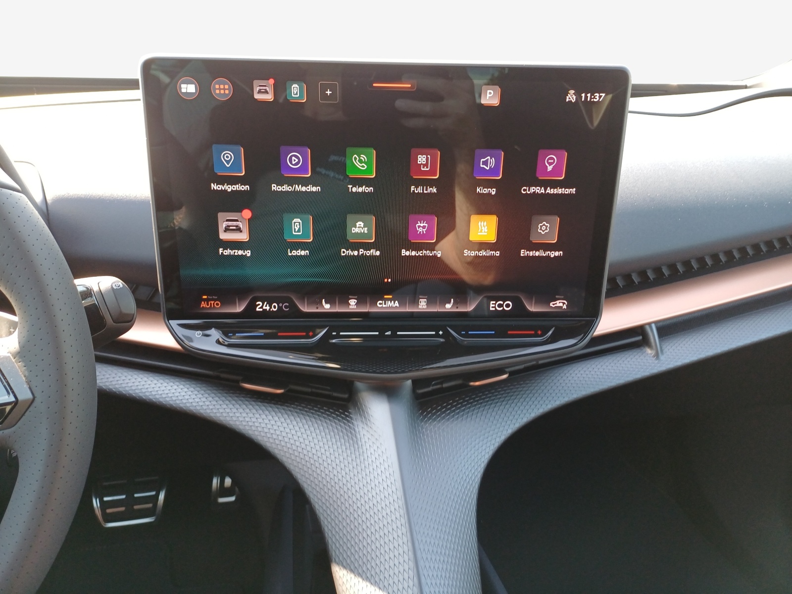 5.3" Full Digital Cockpit Airbag: Airbag Beifahrer deaktivierbar Airbag: Airbag Fahrer und Beifahrer Airbag: Seitenairbags für Fahrer und Beifahrer Alzacristalli elettrici anteriori e posteriori con funzione confort e blocco di sicurezza Assetto: Regolazione adattiva dell'assetto DCC Assist: Assistente al parcheggio RPA (Remote Park Assist) Assist: Assistente di velocita intelligente Assist: Aufmerksamkeits- und Müdigkeitserkennung (ADA) Assist: Ausweichunterstützung / Abbiegeassistent Assist: Exit Assist (Ausparkassistent) Assist: Exit Warning (Ausstiegswarner) Assist: PreCrash Sicherheitssystem Assist: Regen-/Lichtsensor Assist: Regolazione automatica della distanza predittivo ACC Assist: Side Assist (Spurwechselassistent) Assist: Telecamera con vista dall'alto (a 360°) Assist: Traction Control (TCS) Assist: Traffic sign recognition (Verkehrszeichenerkennung) Assist: eCall Notruffunktion Automatisch abblendender Innenrückspiegel Chiusura delle porte centralizzata con comando a distanza Clima: Climatronic a 3 zone con controlli dai posti posteriori Dreipunkt-Automatiksicherheitsgurte auf allen Plätzen Elektronisches Stabilitäts-Programm (ESP) Garanzia: CUPRA Estensione di garanzia di fabbrica per il 3, 4 e 5 anno / max. 100000 km Garanzia: Cupra 12 anni di garanzia contro la corrosione della carrozzeria Garanzia: Cupra 2 anni di garanzia senza limitazione di chilometraggio Garanzia: Cupra 3 anni di garanzia contro i danni alla vernice Getriebe: 1-Gang Automatik Head-up display a realtà aumentata Illuminazione ambientale a LED "IMMERSIVE" Impianto d'allarme con sensore del movimento interno Lackierung: Uni-Lackierung Licht: Drittes Bremslicht Licht: LED Heckleuchten mit beleuchtetem 3D CUPRA Logo Licht: Nebelschlussleuchte Luce: Abbagliante Matrix LED Media: 15" Infotainment (MIB3) Media: 2 USB C Anschlüsse hinten und vorne Media: Bluetooth-Freisprecheinrichtung Media: CUPRA Connect Online Infotainment Media: CUPRA Connect Remote & Access Media: CUPRA Connect Safety & Services Media: DAB+ (Digital Audio Broadcasting) Media: Sistema audio SENNHEISER con 12 altoparlanti di fascia alta incluso subwoofer da 300 Watt Media: Sistema di navigazione CUPRA Media: Wireless Charger zur induktiven Smartphone Ladung Piano di carico variabile Portellone ad apertura e chiusura elettrica con "Virtual Pedal" Ruote: Cerchi in alluminio 8J x 20", "Heckla" Machined Sport in nero/argento Ruote: Cerchi in alluminio 9J x 21", "Katla" Machined Sport in nero/rame Räder: Reifendruckkontrollsystem Schlüsselloses Schliess- und Startsystem (KESSY Advance) Sedili: Regolazione elettrica del sedile con funzione memory per lato conducente e passeggero Sedili: Riscaldamento dei sedili anteriori e posteriori, regolabile separatamente Sedili: Schienale del sedile posteriore ribaltabile in due parti con bracciolo centrale e possibilit Sedili: Supporto lombare lato conducente e passeggero regolabile elettricamente Servolenkung geschwindigkeitsabhängig Sitze: Kindersitzbefestigungssystem ISOFIX Sitze: Kopfstützen hinten höhenverstellbar Sitze: Kopfstützen vorne (integrierte) Sitze: Vordersitze höhenverstellbar Speccietti retrovisori esterni ripiegabili elettricamente, riscaldata con funzione cordolo- Tappezzeria: Coprisedili in Dinamica "Dark Night" Tetto panoramico scorrevole in vetro Vetri oscurati dal montante B Volante: Volante supersportivo con sistema di pulsanti Drive Profile, riscaldato Vorbereitung für Anhängevorrichtung Wegfahrsperre elektronisch