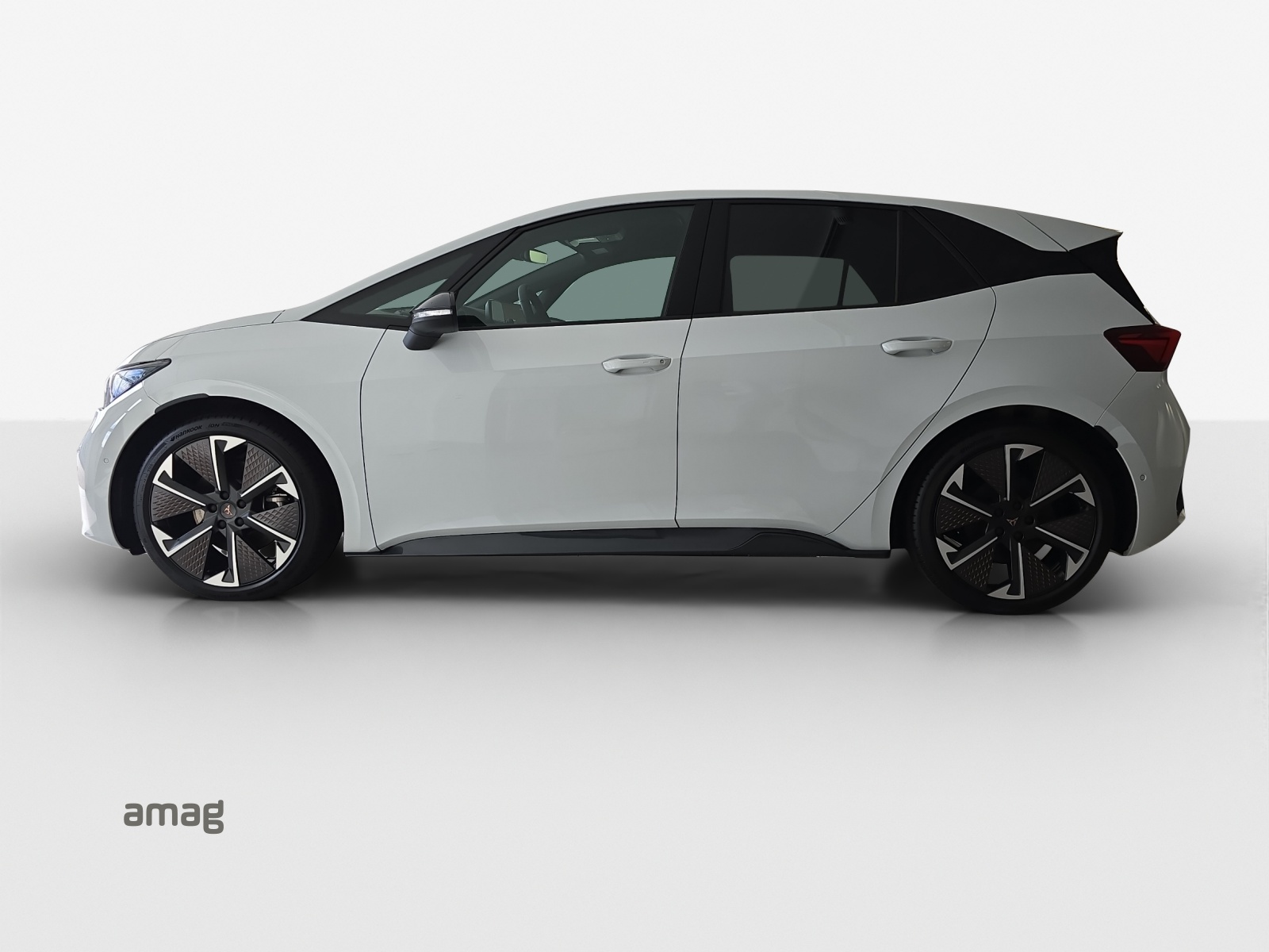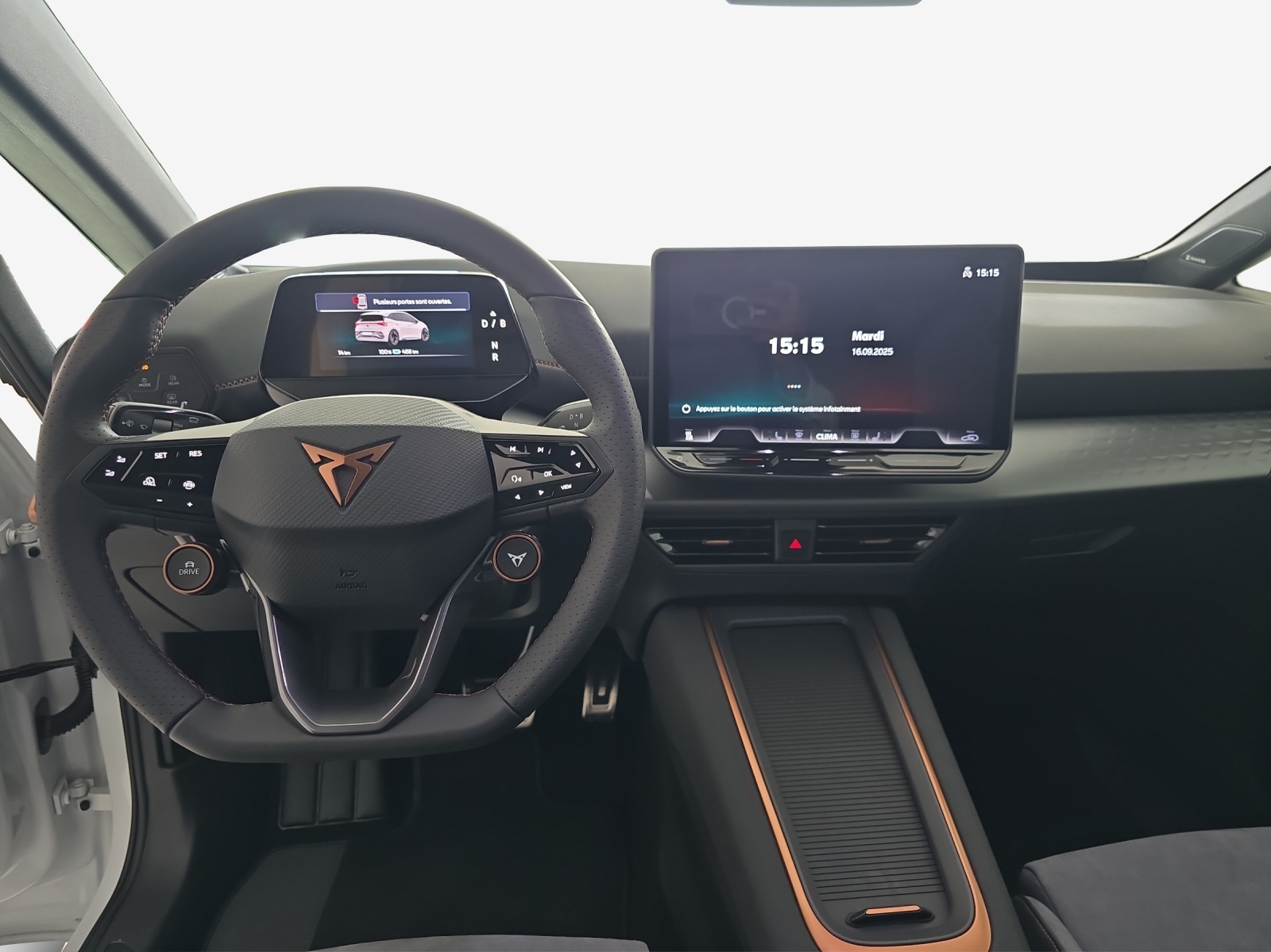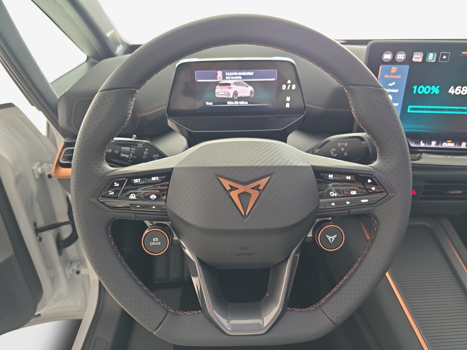 5.3" Full Digital Cockpit ABS, EBV répartiteur électronique de la force de freinage Airbag: Airbag Beifahrer deaktivierbar Airbag: Airbag Fahrer und Beifahrer Airbag: Kopfairbags vorne und hinten Airbag: Seitenairbags für Fahrer und Beifahrer Assist: Aufmerksamkeits- und Müdigkeitserkennung (ADA) Assist: Ausweichunterstützung / Abbiegeassistent Assist: Einparkhilfe vorne und hinten mit optischer Anzeige Assist: Lane assist (assistant au maintien de la trajectoire) Assist: Regen-/Lichtsensor Assist: Traction Control (TCS) Assist: Verkehrszeichenerkennung CUPRA Drive Profile avec "driving experience button" Range, Comfort, Performance, CUPRA, Individual Clima: Chauffage supplémentaire électrique à air Direction assistée asservie à la vitesse Dreipunkt-Automatiksicherheitsgurte auf allen Plätzen Eclairage d'ambiance intérieur "Multicolore" avec 6 couleurs Garantie: CUPRA Prolongation de garantie constructeur pour les 3ème, 4ème et 5ème années / Garantie: Cupra 12 ans de garantie contre perforation de la carrosserie Garantie: Cupra 2 ans de garantie, kilométrage illimité Garantie: Cupra 3 ans de garantie pour la peinture Garantie: Garantie Cupra Garantie de la batterie 8 ans ou 160 000 KM sur Getriebe: 1-Gang Automatik Heckscheiben-Wisch-/Waschanlage mit Intervall Klima: 2-Zonen Climatronic Lackierung: Uni-Lackierung Licht: Drittes Bremslicht Licht: LED-Nebelscheinwerfer Lumière: Combinaison complète de feux arrière à LED dans tout le pays Lumière: Phares entierement a LED pour feux de croisement et feux de route et fonction de retour Lève-vitres électriques à l'avant et à l'arrière, à commande confort et sécurité antipincements Media: 12,9" Infotainment (MIB3) Media: 2 USB C Anschlüsse hinten und vorne Media: Bluetooth-Freisprecheinrichtung Media: DAB+ (Digital Audio Broadcasting) Mèdias: CUPRA Connect Online Infotainment pour navigation Mèdias: CUPRA Connect Safety & Services pour le systeme de navigation Pollenfilter (Staubfilter) Programme électronique de la stabilité Roues: Jantes en Alu 7.5J x 19", "TYPHOON" 31/2 en Glossy Black / Copper Roues: Jantes en Alu 7.5J x 20", "HURRICANE" 31/3 en Sport Black "e-racer" Räder: Reifendruckkontrollsystem Rétroviseur intérieur photochromatique automatique Rétroviseurs extérieurs en Cosmo Grey, poignées de porte dans la couleur de la carrosserie Rétroviseurs extérieurs rétractables électriquement, chauffée avec fonction d'abaissement passager Sitze: Fahrersitz höhenverstellbar Sitze: Geteilt abklappbare Rücksitzlehne 1/3 - 2/3 Sitze: Kindersitzbefestigungssystem ISOFIX Sitze: Mittelarmlehne vorne Sièges: Sieges baquets sport CUPRA en textile, noir "SEAQUAL" Verrouillage centralisé "Keyless-Go" Volant: Volant cuir multifonction, chauffant Wegfahrsperre elektronisch masquer soleil conducteur et passager