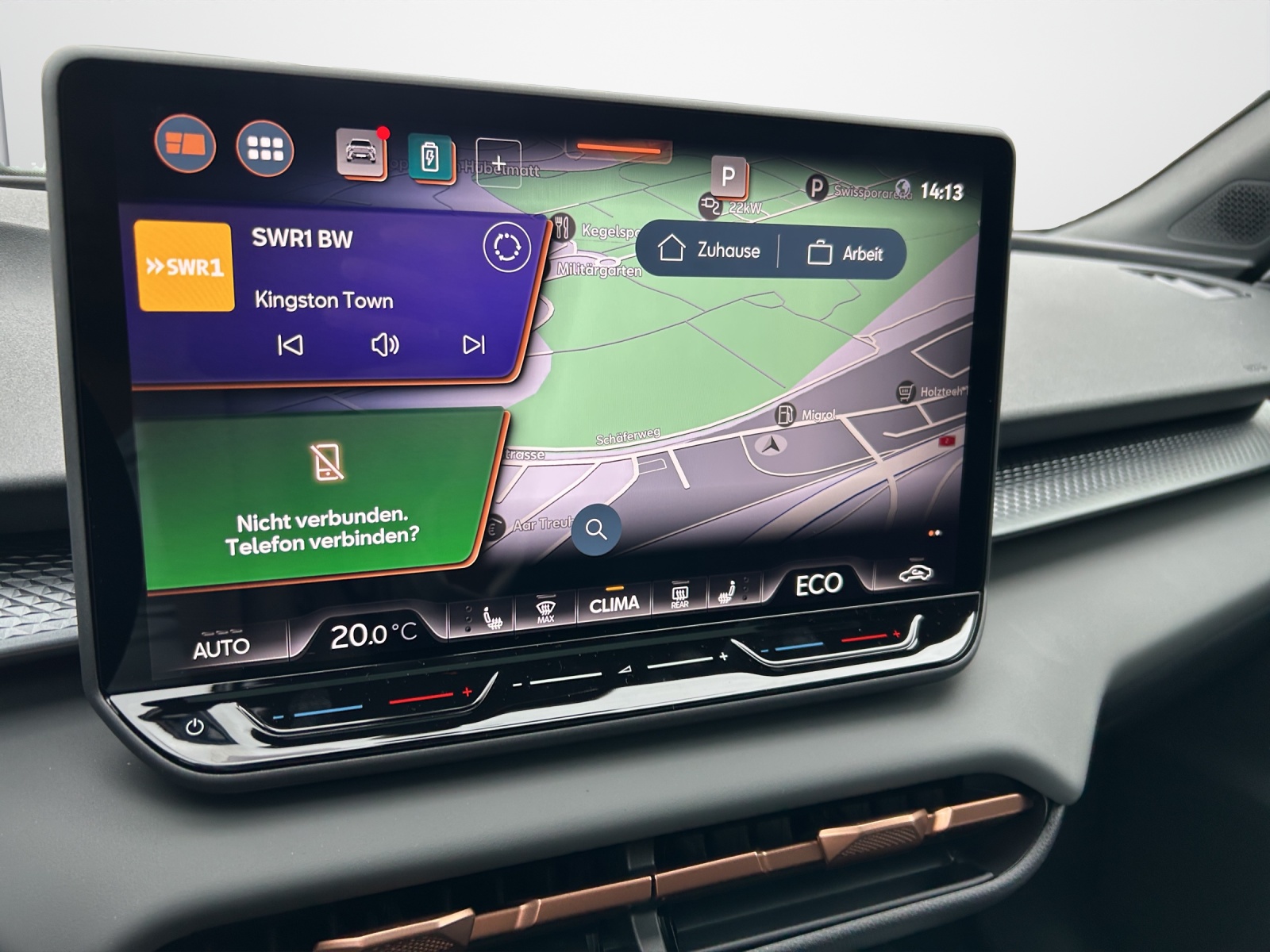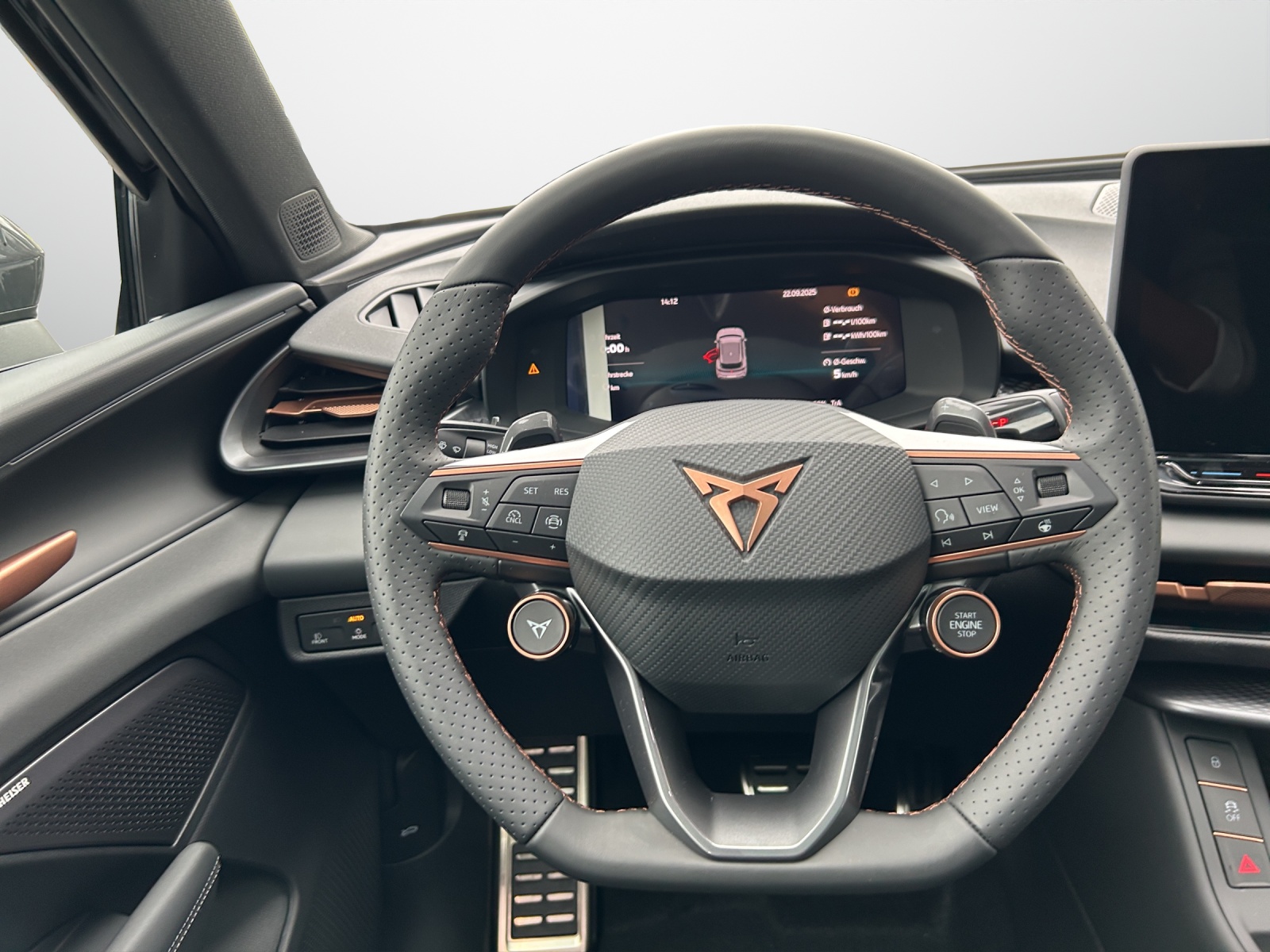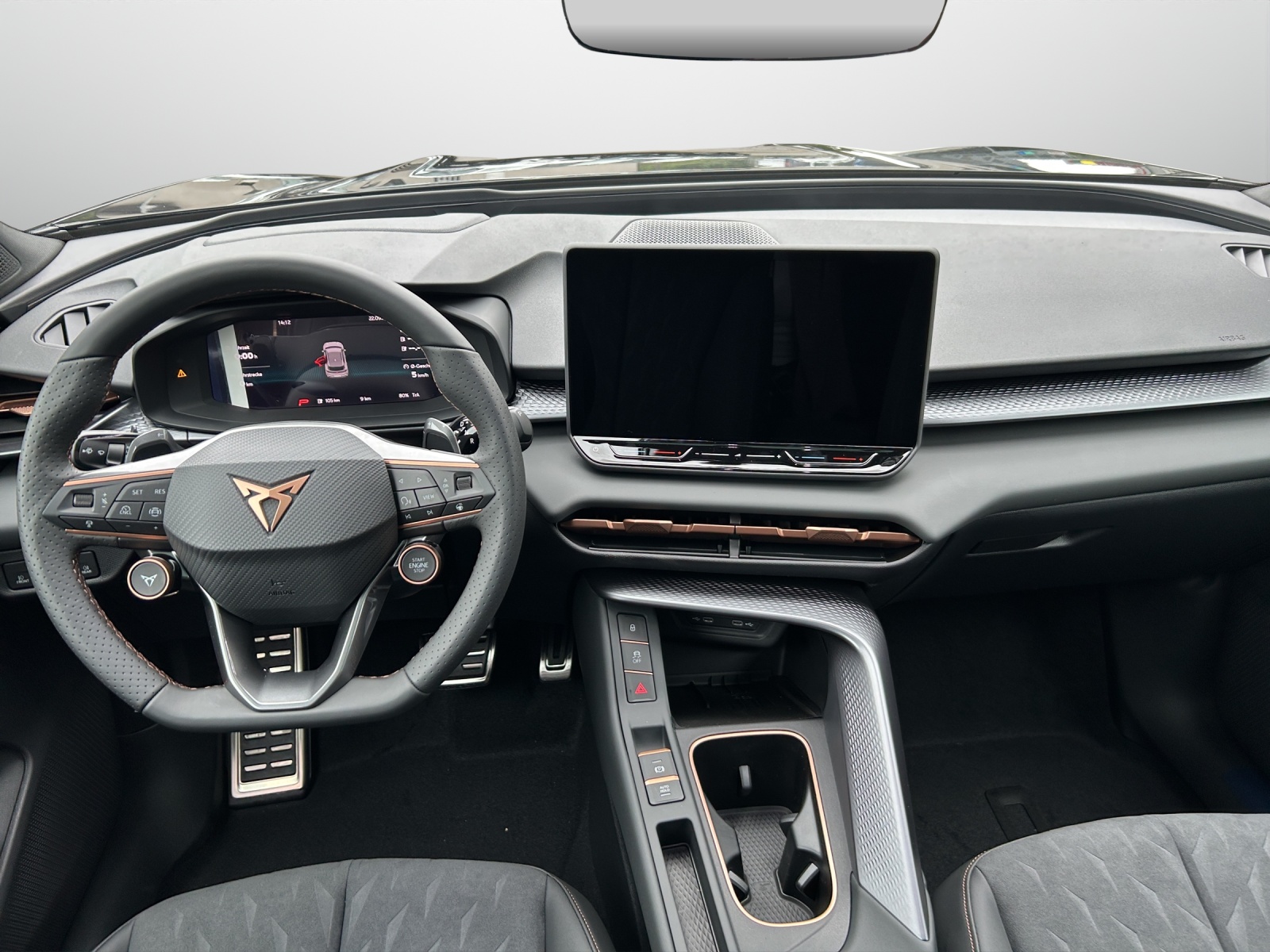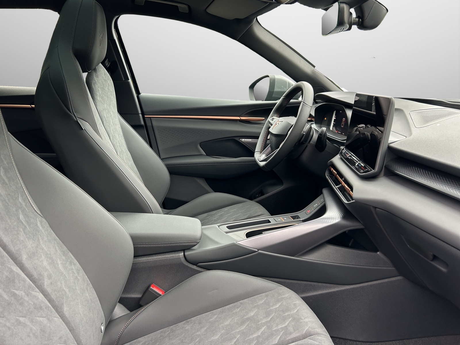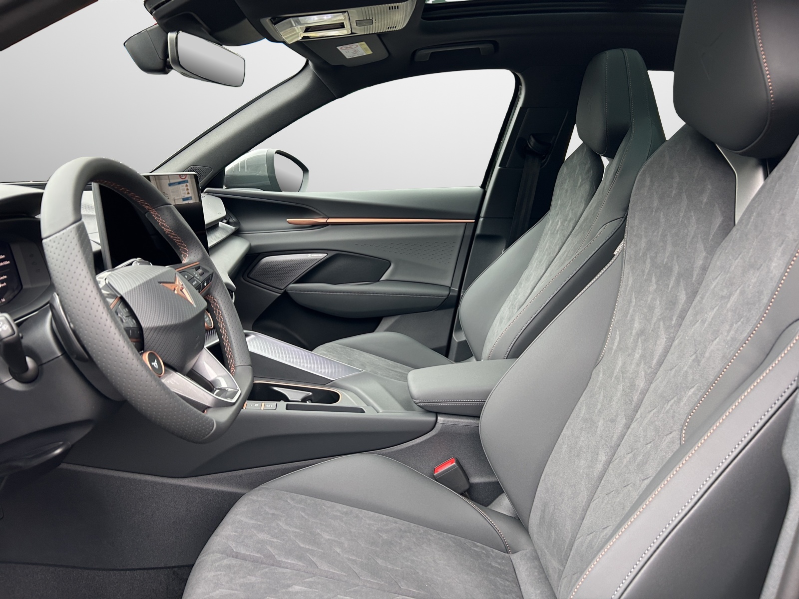 3-Punkt-Sicherheitsgurte auf allen Plätzen ABS, EBV elektronische Bremskraft-verteilung Airbag: Airbag Beifahrer deaktivierbar Airbag: Airbag Fahrer und Beifahrer Airbag: Kopfairbags vorne und hinten Airbag: Seitenairbags für Fahrer und Beifahrer Assist: Aufmerksamkeits- und Müdigkeitserkennung (ADA) Assist: Ausweichunterstützung / Abbiegeassistent Assist: Automatische Distanzregelung ACC Assist: City Notbremsfunktion Assist: Einparkhilfe vorne und hinten Assist: Elektronische Parkbremse mit Auto Hold Funktion Assist: Lane assist (Spurhalteassistent) Assist: Multifunktionskamera Assist: Multikollisionsbremse Assist: Prädiktive Speedlimiter Assist: Traffic sign recognition (Verkehrszeichenerkennung) Assist: Umfeldüberwachungssystem "Front-Assist" Aussenspiegel elektrisch einstell-, beheizbar Aussenspiegel mit LED-Umfeldbeleuchtung Beleuchtete Sonnenblende links mit abdeckbarem Spiegel und Lasche, rechts mit abdeckbarem Spiegel ESC mit EBA, DSR, XDS und Reifendruckkontrolle Elektrische Fensterheber vorne und hinten mit Komfortschaltung und Einklemmschutz Fahrwerk: CUPRA Sportfahrwerk Fahrwerk: Progressivlenkung Fussmatten vorne und hinten Garantie: Cupra 12 Jahre Gewährleistung gegen Karosserie-Durchrostung Garantie: Cupra 3 Jahre Lack-Gewährleistung Garantie: Cupra Garantie Batterie- Gewährleistung 8 Jahre oder 160000 KM auf 70% Batterieleistung. Garantie: Cupra Hersteller-Garantieverlängerung für das 3., 4. und 5. Jahr / max.100000 km Heckscheiben-Wisch-/Waschanlage mit Intervall Innenspiegel automatisch abblendbar Klima: 3-Zonen Climatronic mit Fondraumbedienung Lackierung: Uni-Lackierung Ladekabel für Haushaltssteckdose (Mode 2) Lenkrad: Leder Multifunktionslenkrad mit Schaltwippen Licht: Drittes Bremslicht Licht: Durchgehende Full LED-Heckleuchten Licht: LED Heckleuchten mit beleuchtetem 3D CUPRA Logo Licht: LED-Heckleuchten mit dynamischem Blinklicht Licht: LED-Nebelscheinwerfer mit Cornering-Funktion Licht: LED-Scheinwerfer für Abblend- und Fernlicht Licht: Leuchtweitenregulierung dynamisch Licht: Nebelschlussleuchte Media: 12,9" Infotainment (MIB3) Media: 2 USB C Anschlüsse hinten und vorne Media: CUPRA Connect Remote & Access / CUPRA Connect Safety & Services Media: CUPRA Connectivity Box Media: DAB+ (Digital Audio Broadcasting) Media: Mobiltelefon Freisprechanlage Bluetooth Mittelarmlehne vorne und hinten Pyrotechnische Gurtstraffer und Gurtkraftbegrenzer Räder: Alufelgen 8J x 18", "ATOMIC" Machined in Sport Black Matt Räder: Reifendruckkontrollsystem Servolenkung mit geschwindigkeitsabhängiger Lenkkraftunterstützung Sitze: 3 verstellbare Kopfstützen hinten Sitze: CUPRA Sport Schalensitze in Textil, "DEEP OCEAN" "SEAQUAL" Sitze: Geteilt abklappbare Rücksitzlehne 1/3 - 2/3 Sitze: Kindersitzverankerung ISOFIX hinten Sitze: Vordersitze höhenverstellbar mit Lendenwirbelstütze Stopp - Start- und Rekuperationssystem Wegfahrsperre elektronisch Zentralverriegelung "Keyless-Go" Zentralverriegelung mit Funkfernbedienung, 2 Funkschlüssel