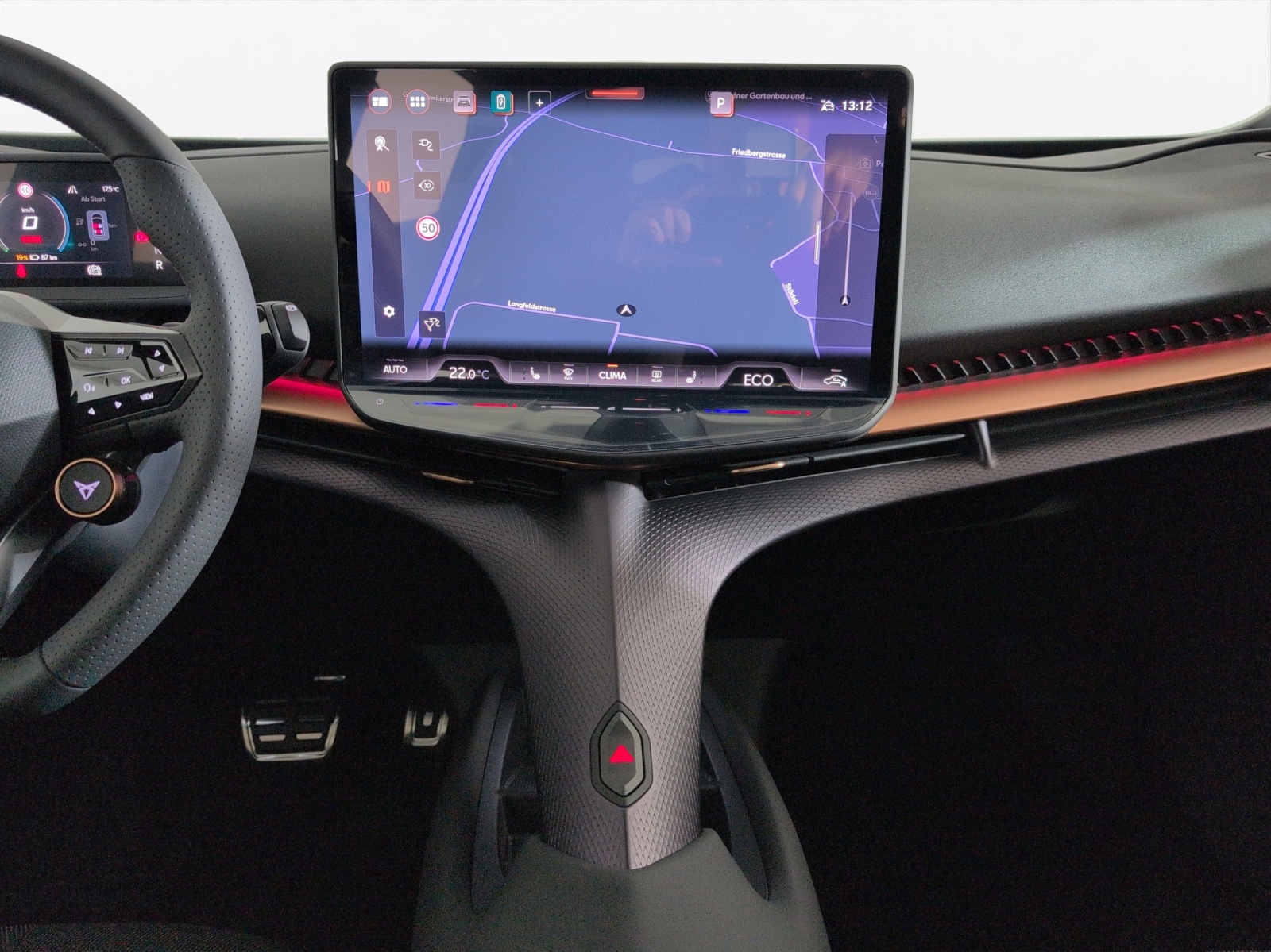 5.3" Full Digital Cockpit Airbag: Airbag conducente e passeggero Airbag: Airbag laterali per conducente e passeggero anteriore Airbag: Airbag passeggero desattivabile Alzacristalli elettrici anteriori e posteriori con funzione confort e blocco di sicurezza Assetto: Regolazione adattiva dell’assetto DCC Assist: Assistente al parcheggio RPA (Remote Park Assist) Assist: Assistente di velocita intelligente Assist: Détection de l'attention et de la somnolence (ADA) Assist: Exit Assist (Assistente al parcheggio) Assist: Exit Warning (Avviso di uscita) Assist: Funzione di chiamata di emergenza eCall Assist: Regolazione automatica della distanza predittivo ACC Assist: Sensore piogga e luce Assist: Side Assist (Assitente di cambio corsia) Assist: Supporto maovre di schivamento / assistente di svolta Assist: Telecamera per retromarcia Assist: Traction Control (TCS) Assist: Traffic sign recognition (identificazione della segnalazione stradale) Cavo di ricarica (modalità 3) Chiusura delle porte centralizzata con telecomando Cinture di sicurezza automatiche a 3 punti per tutti i posti Clima: Climatronic a 3 zone con controlli dai posti posteriori Direzione assistita dipendente dalla velocità Garanzia: Cupra 12 anni di garanzia contro la corrosione della carrozzeria Garanzia: Cupra 2 anni di garanzia senza limitazione di chilometraggio Garanzia: Cupra 3 anni di garanzia contro i danni alla vernice Illuminazione ambientale a LED "PURE" Impianto d'allarme con sensore del movimento interno Luce posteriore antinebbia Luce: Abbagliante Matrix LED Luce: Luci posteriori a LED con logo CUPRA 3D illuminato Media: 15" Infotainment (MIB3) Media: 2 prese USB C posteriore e fronte Media: CUPRA Connect Online Infotainment Media: CUPRA Connect Remote & Access Media: CUPRA Connect Safety & Services Media: Caricabatterie wireless per la ricarica induttiva dello smartphone Media: DAB+ (Digital Audio Broadcasting) Media: Kit vivavoce per auto Bluetooth Media: Sistema di navigazione CUPRA Portellone ad apertura e chiusura elettrica con "Virtual Pedal" Predisposizione attacco per rimorchio Programma elettronico di stabilità ESP Ruote: Cerchi in alluminio 8J x 20", "Heckla" Machined Sport in nero/argento Ruote: Sistema di controllo della pressione degli pneumatici Sedili anteriori regolabili in altezza Sedili: Poggiatesta anteriori (integrati) Sedili: Poggiatesta posteriori regolabili in altezza Sedili: Schienale posteriore ribaltabile separatamente 1/3 - 2/3 Sedili: Sedili anteriori riscaldabili separatamente Sedili: Sistema di fissaggio del seggiolino per bambini ISOFIX Sistema d'inizio e di chiusura (KESSY Advance) Specchietti retrovisori esterni riscaldabili, regolabili e ripiegabili elettricamente Specchietto retrovisore interno ad oscuramento automatico Tappezzeria: Coprisedili in tessuto "Soul Black" Trazione integrale permanente Vetri oscurati dal montante B Volante: Volante supersportivo con sistema di pulsanti Drive Profile, riscaldato