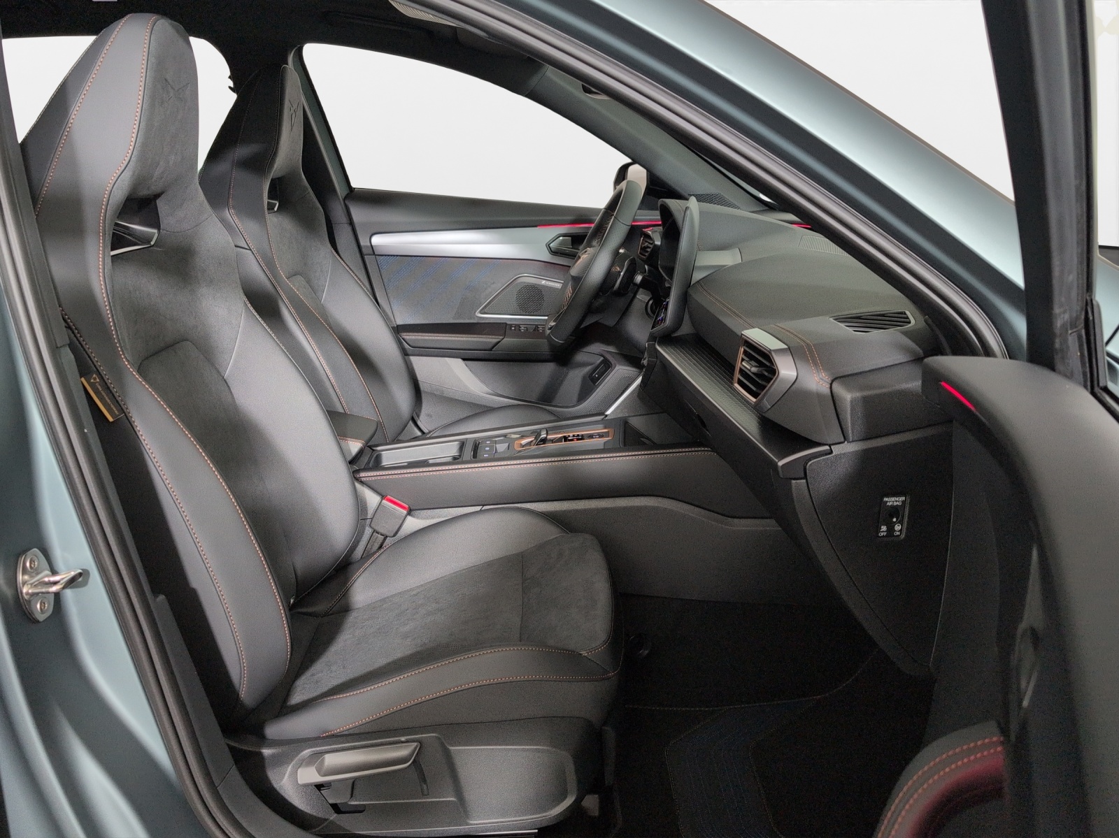 ABS, EBV ripartizione elettronica della forza frenante Abbassamento dello specchietto retrovisore esterno sul lato del passeggero Airbag: Airbag conducente e passeggero Airbag: Airbag laterali per conducente e passeggero anteriore Airbag: Airbag passeggero desattivabile Airbag: Airbag per la testa anteriori e posteriori Alzacristalli elettrici anteriori e posteriori con funzione confort e blocco di sicurezza Ancoraggio per seggiolino per bambini ISOFIX (sedili posteriori esterni) Apriporte colore carrozzeria Assist: Controllo automatico della distanza ACC Assist: Controllo per la distanza di parcheggio anteriore e posteriore Assist: Détection de l'attention et de la somnolence (ADA) Assist: Frenata d'emergenza City Assist: Freno di stazionamento elettronico con funzione Auto-Hold Assist: Freno multicollisione Assist: Lane assist (assistenza al mantenimento di corsia) Assist: Limitatori di velocita predittivi Assist: Multifunktionskamera Assist: Sensore piogga e luce Assist: Sistema di assistenza alla guida Front Assist Assist: Supporto maovre di schivamento / assistente di svolta Assist: Traction Control (TCS) Assist: Traffic sign recognition (identificazione della segnalazione stradale) Cabina di guida digitale completa Carrozzeria completamente zincata Chiusura centralizzata "Keyless-Go" Chiusura centralizzata con radiotelecomando, 2 radiochiavi Cinture di sicurezza a 3 punti Clima: Climatronic a 3 zone con controlli dai posti posteriori ESC con EBA, DSR, XDS e sistema di controllo della pressione dei pneumatici Garanzia: CUPRA Estensione di garanzia di fabbrica per il 3, 4 e 5 anno / max. 100’000 km Garanzia: Cupra 12 anni di garanzia contro la corrosione della carrozzeria Garanzia: Cupra 2 anni di garanzia senza limitazione di chilometraggio Garanzia: Cupra 3 anni di garanzia contro i danni alla vernice Illuminazione interna LED e Luce diffusa "Monochrom" Impianto d'allarme con sensore del movimento interno Luce posteriore antinebbia Luce: Assistente fari abbaglianti Luce: Fanali posteriori a LED a combinazione completa in tutto Luce: Fari LED fendinebbia anteriori con funzione coornering Luce: Fari LED per luci anabbaglianti e abbaglianti Luce: Funzione Coming-home Luce: Luci posteriori LED con lampeggiatore di direzione dinamico Luce: Luci posteriori a LED con logo CUPRA 3D illuminato Luce: Regolazione della portata dell'illumina anteriori Media: 12,9" Infotainment (MIB3) Media: 2 prese USB C posteriore e fronte Media: CUPRA Connect Remote & Access Media: CUPRA Connect Safety & Services Media: CUPRA Connectivity Box Media: DAB+ (Digital Audio Broadcasting) Media: Dispositivo vivavoce Bluetooth Parasole sinistro illuminato con specchietto copribile e con linguetta, destro con specchietto copri Piano di carico variabile Pretensionatori ad azionamento pirotecnico e limitatore di forza Route: Set riparazione pneumatici (Tire Fit) Ruote: Cerchi in alluminio 8J x 18", "TEMPEST" lavorati in argento Ruote: Sistema di controllo della pressione degli pneumatici Sedili: 3 poggiatesta posteriori regolabili Sedili: Bracciolo centrale anteriore Sedili: Bracciolo centrale posteriore Sedili: CUPRA Sportsitze in "Sharp Textil schwarz" Sedili: Cassetto sotto il sedile anteriore destro Sedili: Poggiatesta anteriori (integrati) Sedili: Schienale posteriore ribaltabile separatamente 1/3 - 2/3 Sedili: Sedili anteriori regolabili in altezza con sostegno lombare Sedili: Sedili anteriori riscaldabili separatamente Servosterzo con servoassistenza in funzione della velocità Specchietti retrovisori esterni riscaldabili, regolabili e ripiegabili elettricamente Specchietto retrovisore interno ad oscuramento automatico Specchio esterno con illuminazione a LED Stop/start e sistema di recupero dell'energia Tappetini anteriori e posteriori Tergicristallo posteriore intermittente con lavavetro Trazione integrale permanente Vetri oscurati dal montante B Volante: Volante supersportivo con sistema di pulsanti di avviamento-/ Drive Profile e