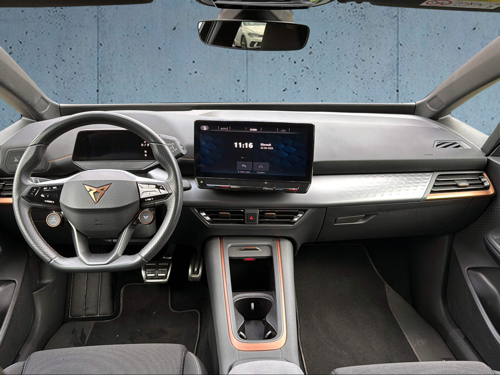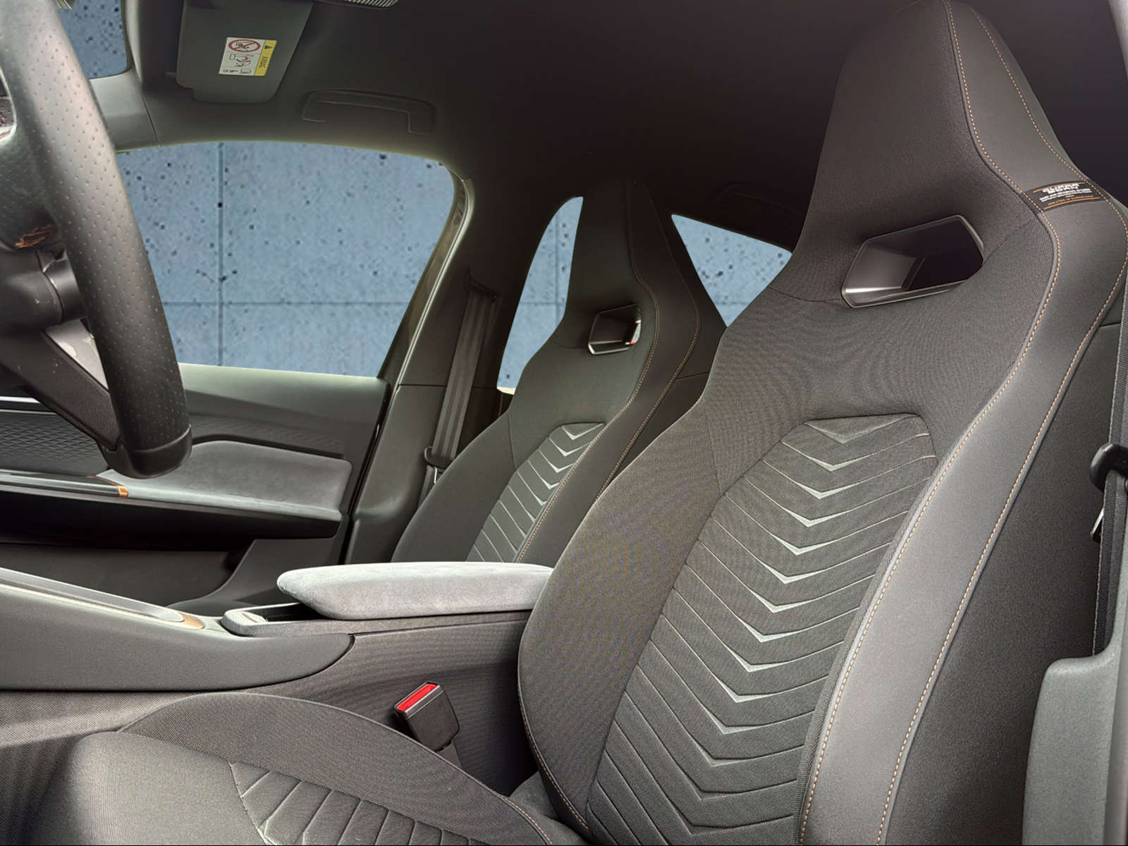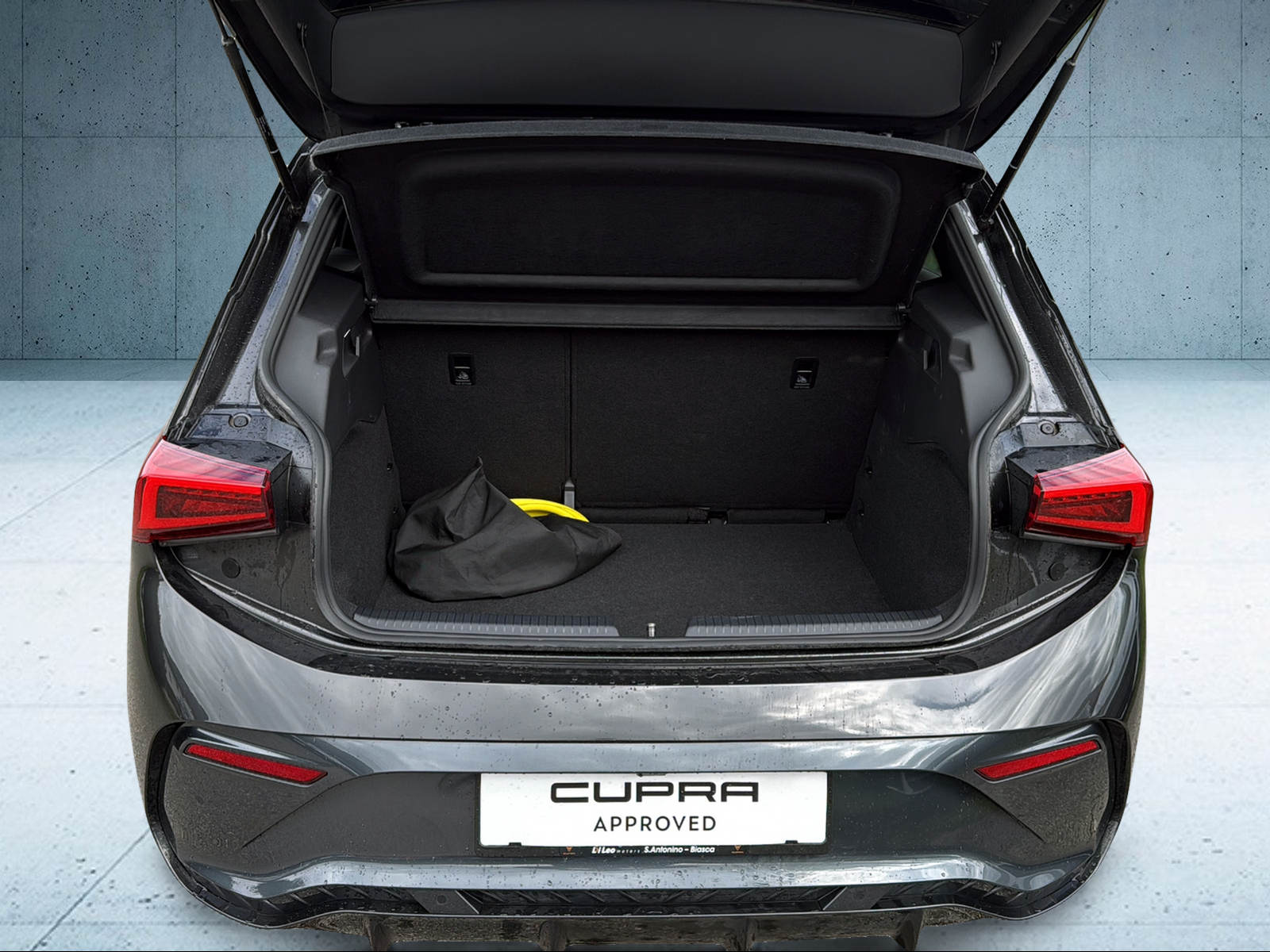 5.3" Full Digital Cockpit ABS, EBV ripartizione elettronica della forza frenante Airbag: Airbag conducente e passeggero Airbag: Airbag laterali per conducente e passeggero anteriore Airbag: Airbag passeggero desattivabile Airbag: Airbag per la testa anteriori e posteriori Alzacristalli elettrici anteriori e posteriori con funzione confort e blocco di sicurezza Assist: Controllo per la distanza di parcheggio ant. e post. con contr. ottico Assist: Lane assist (assistenza al mantenimento di corsia) Assist: Sensore piogga e luce Assist: Supporto maovre di schivamento / assistente di svolta Assist: Tiredness detection (Sistema di rilevamento della stanchezza) Assist: Traction Control (TCS) CUPRA Drive Profile con pulsante "driving experience" Range, Comfort, Performance, CUPRA, Individual Cavo di ricarica (Mode 3) Cavo di ricarica per presa domestica (modalità 2) Chiusura centralizzata "Keyless-Go" Cinture di sicurezza automatiche a 3 punti per tutti i posti Clima: Climatronic a 2 zone Clima: Riscaldamento supplementare ad aria elettrico Filtro antipolline (filtro a polvere) Garanzia: Cupra 12 anni di garanzia contro la corrosione della carrozzeria Garanzia: Cupra 2 anni di garanzia senza limitazione di chilometraggio Garanzia: Cupra 3 anni di garanzia contro i danni alla vernice Garanzia: Garanzia Cupra Garanzia batteria 8 anni o 160.000 KM con batteria al 70%. Illuminazione interna ambiente "Multicolor" con 6 colori Immobilizzatore elettronico Luce fendinebbia posteriore Luce: Fanali posteriori a LED a combinazione completa in tutto Luce: Fari full LED per anabbaglianti e abbaglianti e funzione di ritorno a casa inclusa Luce: Luci posteriori LED Media: 12" Infotainment (MIB3) Media: 2 prese USB C posteriore e fronte Media: CUPRA Connect Online Infotainment per navigazione Media: CUPRA Connect Safety & Services per il sistema di navigazione Media: DAB+ (Digital Audio Broadcasting) Media: Dispositivo vivavoce Bluetooth Nascondi sole del conducente e del Programma elettronico della stabilità Retrovisore interno regolabile giorno notte automatico Riscaldamento per lunotto Route: Tool Kit 19'' & 20'' Ruote: Cerchioni in lega 7.5J x 19", "TYPHOON" 31/1 Machined in Sport Black Sedili: Ancoraggio ISOFIX per seggiolini bambini, posteriore Sedili: Bracciolo centrale anteriore Sedili: Bracciolo centrale posteriore Sedili: Schienale posteriore ribaltabile separatamente 1/3 - 2/3 Sedili: Sedile conducente regolabile in altezza Sedili: Sedili sportivi a guscio CUPRA in tessuto, neri "SEAQUAL" Servosterzo dipendente dalla velocità Specchietti esterni in Cosmo Grey, maniglie delle portiere in tinta con la carrozzeria Speccietti retrovisori esterni ripiegabili elettricamente, riscaldata con funzione cordolo Tergicristallo posteriore intermittente con lavavetro Verniciatura: Verniciatura Uni Volante: Volante multifunzionale in pelle, riscaldabile Volante: Volante supersportivo con sistema a pulsanti profilo start/drive, riscaldabile