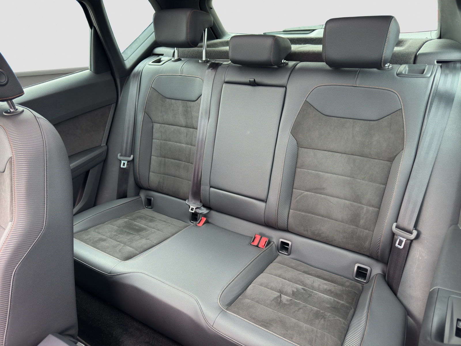 2 Schlüssel mit Fernbedienung 2 USB Anschlüsse in der hinteren 3-Punkt-Sicherheitsgurte auf allen Plätzen 8'' Farbdisplay (Touchscreen) ABS, EBV elektronische Bremskraft-verteilung Abgedunkeltes Scheibenglas (ab B-Säule) Airbag: Airbag Beifahrer deaktivierbar Airbag: Airbag Fahrer und Beifahrer Airbag: Knie-Airbag für Fahrer Airbag: Seitenairbag für Fahrer und Beifahrer Airbag: Window-Kopfairbags Ambientebeleuchtung Multi-Colour Assist: Auto-Hold-Funktion Assist: Automatische Distanzregelung ACC Assist: Berganfahrhilfe (Hill Holder) Assist: Einparkhilfe vorne und hinten mit optischer Anzeige Assist: Multikollisionsbremse Assist: Müdigkeitserkennung Assist: Parklenkassistent Assist: Top View Camera (Rundumblick) Assist: Umfeldbeobachtung 'Front-Assist' mit City-Notbremsfunktion Assist: Umfeldbeobachtung Front-Assist Auspuffanlage mit 4 Endrohren Aussenspiegel elektrisch einklappbar mit Bodenbeleuchtung und Beifahrerspiegelabsenkung Aussenspiegel rechts und links beheizt,elektrisch verstell- / und einklappbar Aussenspiegel und Türgriffe in Wagenfarbe Beleuchtetes Einstiegssystem mit Umfeldbeleuchtung Bremsenergie-Rückgewinnung Dekor: Black pack CUPRA- Dekorblenden in Glanzschwarz Dekor: Black pack CUPRA- Umrandung der Türgriffe und Schalttafel in Glanzschwarz Einstiegsleisten in Aluminium Elektrische Fensterheber vorne + hinten Elektronische Differentialsperre (XDS) Elektronisches Stabilitäts-Programm Fahrwerk: Adaptive Fahrwerksregelung DCC Fahrwerk: Progressivlenkung Fensterschachtzierleisten in Aluminium Getriebe: Sequentielles 7-Gang-Getriebe mit Automatikfunktion Heckscheiben-Wisch-/Waschanlage mit Intervall Höhenverstellbare Gurten vorne Innenspiegel automatisch abblendbar Klima: 2-Zonen-Klimaautomatik Lackierung: Uni-Lackierung Leichtmetallfelgen 19J mit Pneu Lenkrad und Schalthebelgriff in Leder Lenkrad: Multifunktionslenkrad mit Schaltwippen Licht: Coming-home-Funktion Media: DAB+ (Digital Audio Broadcasting) Media: Kartenmaterial ''Europa'' Media: Mobiltelefon Freisprecheinrichtung Bluetooth Media: Radiovorbereitung, Antenne, Entstörung und 8 LS Pollenfilter (Staubfilter) Polster : Alcantara-Ausstattung Radlaufblenden in Wagenfarbe Räder: Reifenreparatur-Set (Tire Fit) Rücksitzlehne geteilt abklappbar Scheibenwaschdüsen beheizt Scheinwerferreinigungsanlage Schlüsselloses Schliess- und Startsystem (KESSY) Seat Garantie: 2 Jahre ohne Kilometerbe- Servolenkung geschwindigkeitsabhängig Sitze: Easy-Entry Lehnenentriegelung Sitze: Einstellbare Lendenwirbelstütze für den Fahrer und Beifahrer Sitze: Gurtstraffer vorne Sitze: ISOFIX Kindersitzvorrichtung Sitze: Kopfstützen vorne höhenverstellbar Sitze: Mittelarmlehne hinten Sitze: Mittelarmlehne vorne Sitze: Schublade unter Fahrersitz Sonnenblende Fahrer und Beifahrerseite Teppichfussmatten vorne und hinten Vordersitze höhenverstellbar Wegfahrsperre elektronisch Zentralverriegelung mit Fernbedienung