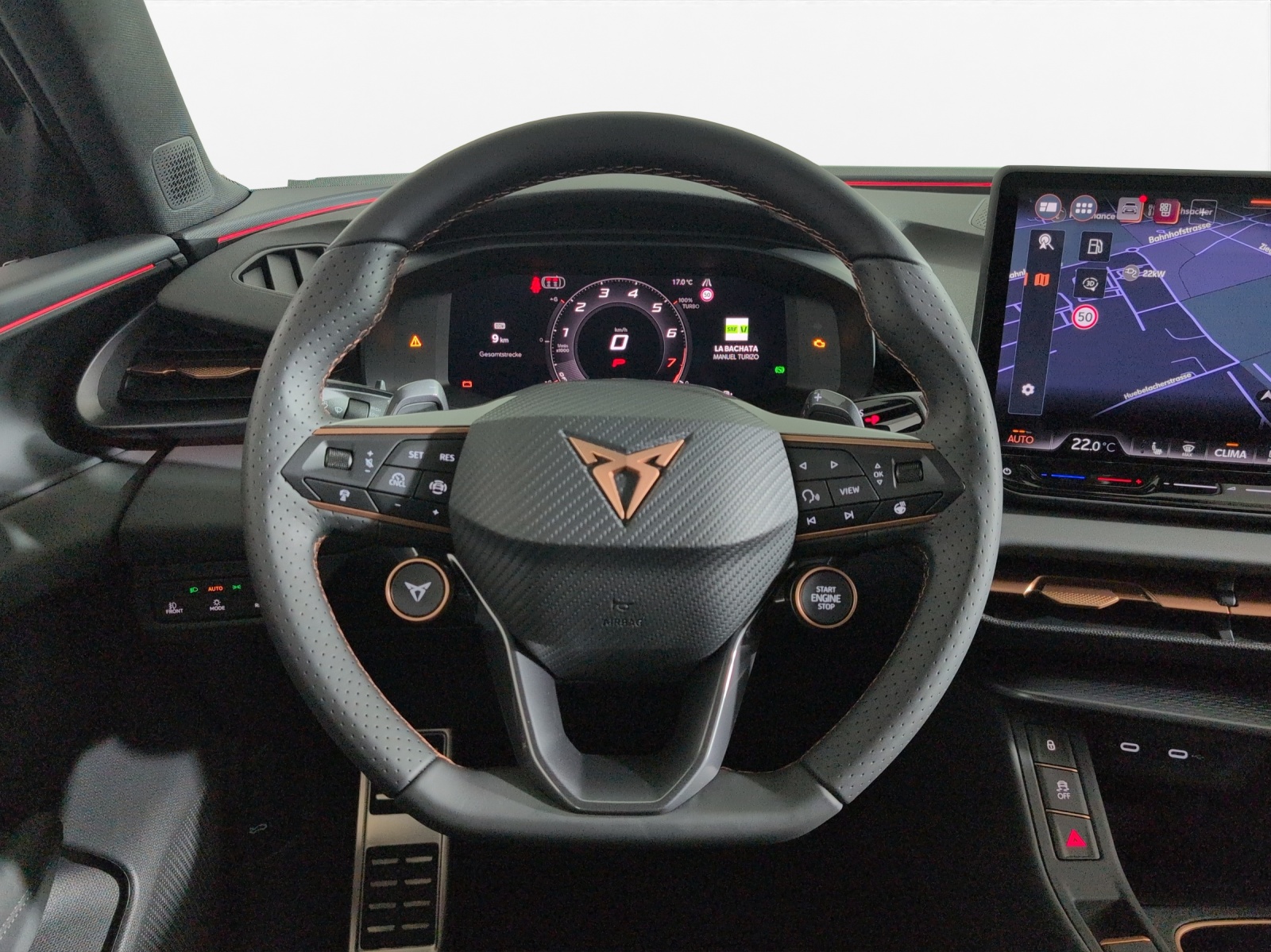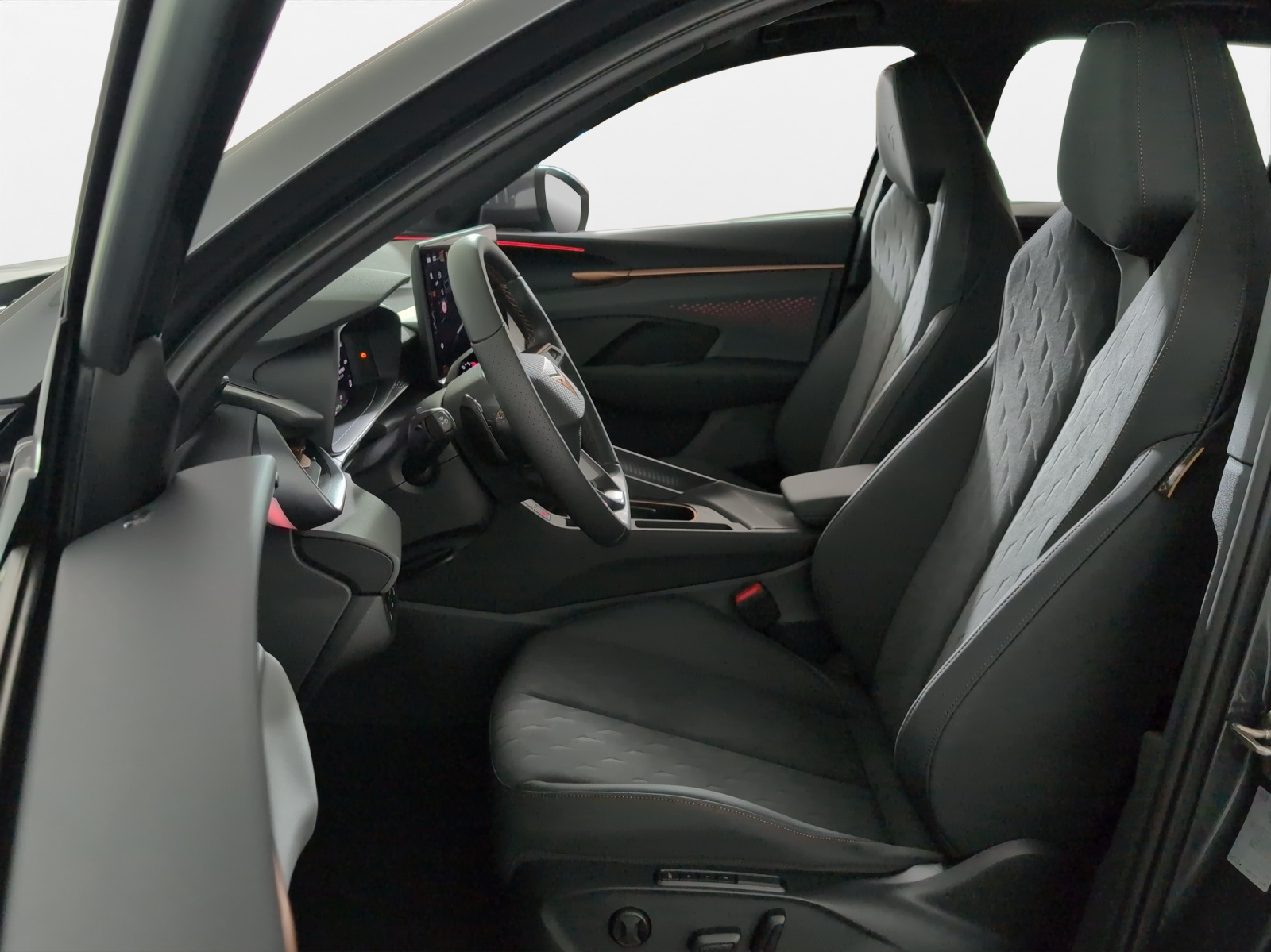 3-Punkt-Sicherheitsgurte auf allen Plätzen ABS, EBV elektronische Bremskraft-verteilung Airbag: Airbag Beifahrer deaktivierbar Airbag: Airbag Fahrer und Beifahrer Airbag: Kopfairbags vorne und hinten Airbag: Seitenairbags für Fahrer und Beifahrer Assist: Aufmerksamkeits- und Müdigkeitserkennung (ADA) Assist: Ausweichunterstützung / Abbiegeassistent Assist: Automatische Distanzregelung ACC Assist: City Notbremsfunktion Assist: Einparkhilfe vorne und hinten Assist: Elektronische Parkbremse mit Auto Hold Funktion Assist: Lane assist (Spurhalteassistent) Assist: Multifunktionskamera Assist: Multikollisionsbremse Assist: Prädiktive Speedlimiter Assist: Traffic sign recognition (Verkehrszeichenerkennung) Assist: Umfeldüberwachungssystem "Front-Assist" Aussenspiegel mit LED-Umfeldbeleuchtung Beleuchtete Sonnenblende links mit abdeckbarem Spiegel und Lasche, rechts mit abdeckbarem Spiegel ESC mit EBA, DSR, XDS und Reifendruckkontrolle Elektrische Fensterheber vorne und hinten mit Komfortschaltung und Einklemmschutz Fahrwerk: CUPRA Sportfahrwerk Fahrwerk: Progressivlenkung Fussmatten vorne und hinten Garantie: Cupra 12 Jahre Gewährleistung gegen Karosserie-Durchrostung Garantie: Cupra 3 Jahre Lack-Gewährleistung Garantie: Cupra Garantie 2 Jahre ohne Kilometerbegrenzung Garantie: Cupra Hersteller-Garantieverlängerung für das 3., 4. und 5. Jahr / max.100’000 km Heckscheiben-Wisch-/Waschanlage mit Intervall Innenspiegel automatisch abblendbar Lackierung: Uni-Lackierung Licht: Drittes Bremslicht Licht: Durchgehende Full LED-Heckleuchten Licht: LED Heckleuchten mit beleuchtetem 3D CUPRA Logo Licht: LED-Heckleuchten mit dynamischem Blinklicht Licht: LED-Nebelscheinwerfer mit Cornering-Funktion Licht: LED-Scheinwerfer für Abblend- und Fernlicht Licht: Leuchtweitenregulierung dynamisch Licht: Nebelschlussleuchte Media: 12,9" Infotainment (MIB3) Media: 2 USB C Anschlüsse hinten und vorne Media: CUPRA Connect Online Infotainment Media: CUPRA Connect Remote & Access / CUPRA Connect Safety & Services Media: CUPRA Connectivity Box Media: DAB+ (Digital Audio Broadcasting) Media: Mobiltelefon Freisprechanlage Bluetooth Mittelarmlehne vorne und hinten Pyrotechnische Gurtstraffer und Gurtkraftbegrenzer Räder: Alufelgen 8J x 18", "ATOMIC" Machined in Sport Black Matt Räder: Reifendruckkontrollsystem Servolenkung mit geschwindigkeitsabhängiger Lenkkraftunterstützung Sitze: 3 verstellbare Kopfstützen hinten Sitze: CUPRA Sport Schalensitze in Textil, "DEEP OCEAN" "SEAQUAL" Sitze: Geteilt abklappbare Rücksitzlehne 1/3 - 2/3 Sitze: Kindersitzverankerung ISOFIX hinten Sitze: Vordersitze höhenverstellbar mit Lendenwirbelstütze Stopp - Start- und Rekuperationssystem Wegfahrsperre elektronisch Zentralverriegelung "Keyless-Go" Zentralverriegelung mit Funkfernbedienung, 2 Funkschlüssel