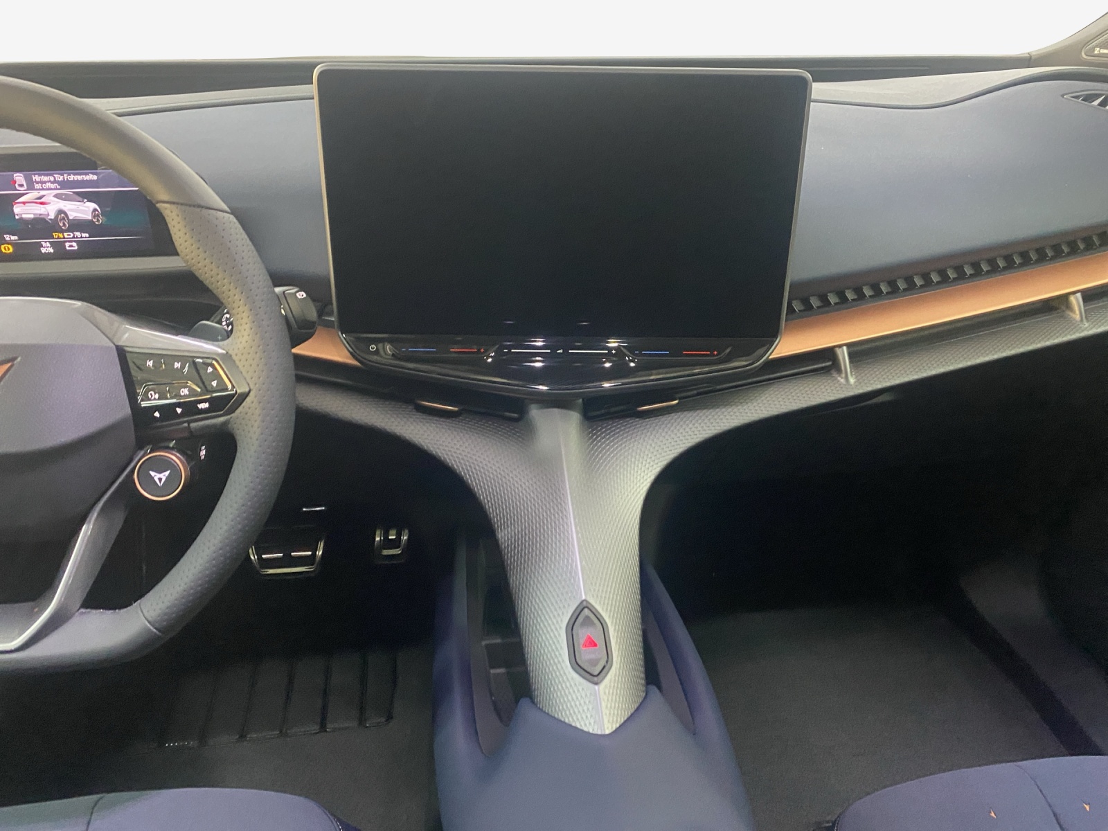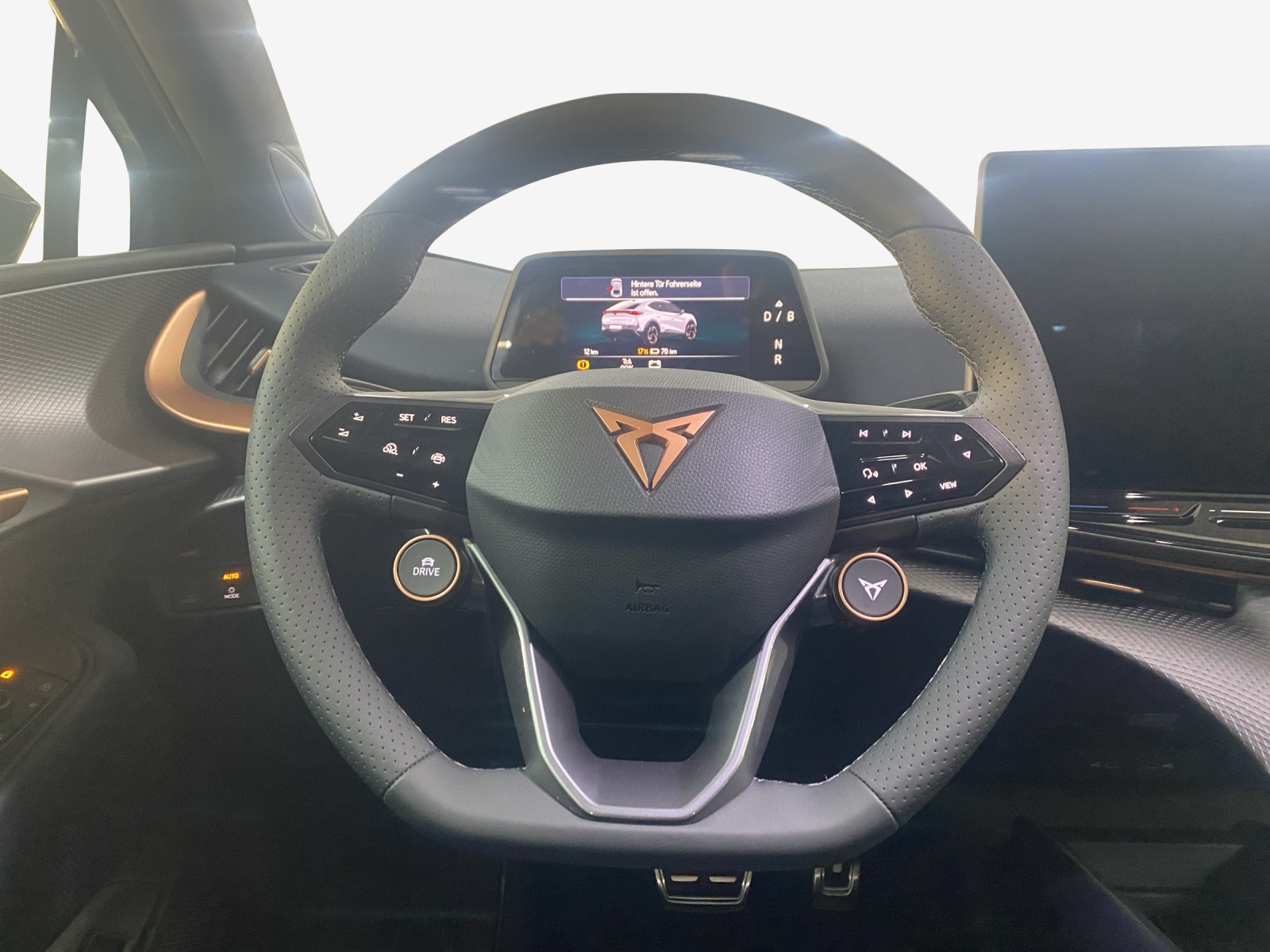 5.3" Full Digital Cockpit Abgedunkelte Scheiben ab B-Säule hinten Airbag: Airbag Beifahrer deaktivierbar Airbag: Airbag Fahrer und Beifahrer Airbag: Seitenairbags für Fahrer und Beifahrer Alarmanlage mit Innenraumüberwachung Assist: Aufmerksamkeits- und Müdigkeitserkennung (ADA) Assist: Ausweichunterstützung / Abbiegeassistent Assist: Exit Assist (Ausparkassistent) Assist: Exit Warning (Ausstiegswarner) Assist: Intelligenter Geschwindigkeitsassistent Assist: Parklenkassistent RPA (Remote Park Assist) Assist: PreCrash Sicherheitssystem Assist: Prädiktive automatische Distanzregelung ACC Assist: Regen-/Lichtsensor Assist: Side Assist (Spurwechselassistent) Assist: Top View Camera (Rundumblick) Assist: Traction Control (TCS) Assist: Traffic sign recognition (Verkehrszeichenerkennung) Assist: eCall Notruffunktion Augmented Reality Head-up-Display Aussenspiegel elektrisch einstell-, beheiz- und einklappbar mit Beifahrerabsenkfunktion- Automatisch abblendender Innenrückspiegel Dreipunkt-Automatiksicherheitsgurte auf allen Plätzen Einstiegsleisten beleuchtet Elektrische Fensterheber vorne und hinten mit Komfortschaltung und Einklemmschutz Elektronisches Stabilitäts-Programm (ESP) Fahrwerk: Adaptive Fahrwerksregelung DCC Garantie: Cupra 12 Jahre Gewährleistung gegen Karosserie-Durchrostung Garantie: Cupra 3 Jahre Lack-Gewährleistung Garantie: Cupra Garantie 2 Jahre ohne Kilometerbegrenzung Garantie: Cupra Hersteller-Garantieverlängerung für das 3., 4. und 5. Jahr / max.100’000 km Getriebe: 1-Gang Automatik Heckklappe elektrisch öffnend und schliessend "Virtual Pedal" Klima: 3-Zonen Climatronic mit Fondraumbedienung LED Ambientebeleuchtung "IMMERSIVE" Lackierung: Uni-Lackierung Lenkrad: Supersportlenkrad mit Drive Profile-Knopfsystem,beheizbar Licht: Drittes Bremslicht Licht: LED Heckleuchten mit beleuchtetem 3D CUPRA Logo Licht: Matrix LED Fernlicht Licht: Matrix LED Scheinwerfer Licht: Nebelschlussleuchte Media: 15" Infotainment (MIB3) Media: 2 USB C Anschlüsse hinten und vorne Media: Bluetooth-Freisprecheinrichtung Media: CUPRA Connect Online Infotainment Media: CUPRA Connect Remote & Access Media: CUPRA Connect Safety & Services Media: CUPRA Navigationssystem Media: DAB+ (Digital Audio Broadcasting) Media: SENNHEISER Sound System mit 12 High-End-Lautsprecher inkl. 300 Watt Subwoofer Media: Wireless Charger zur induktiven Smartphone Ladung Polster: Sitzbezüge in Dinamica "Dark Night" Räder: Alufelgen 9J x 21", "Katla" Machined Sport in Black/Copper Räder: Reifendruckkontrollsystem Schlüsselloses Schliess- und Startsystem (KESSY Advance) Servolenkung geschwindigkeitsabhängig Sitze: Elektrische Sitzverstellung mit Memory-Funktion für Fahrer- und Beifahrerseite Sitze: Geteilt abklappbare Rücksitzlehne mit Mittelarmlehne und Durchlademöglichkeit Sitze: Kindersitzbefestigungssystem ISOFIX Sitze: Kopfstützen hinten höhenverstellbar Sitze: Kopfstützen vorne (integrierte) Sitze: Lendenwirbelstütze Fahrer- und Beifahrerseite elektrisch einstellbar Sitze: Sitzheizung für Vorder- und Rücksitze, getrennt regelbar Sitze: Vordersitze höhenverstellbar Vorbereitung für Anhängevorrichtung Wegfahrsperre elektronisch Zentralverriegelung mit Fernbedienung