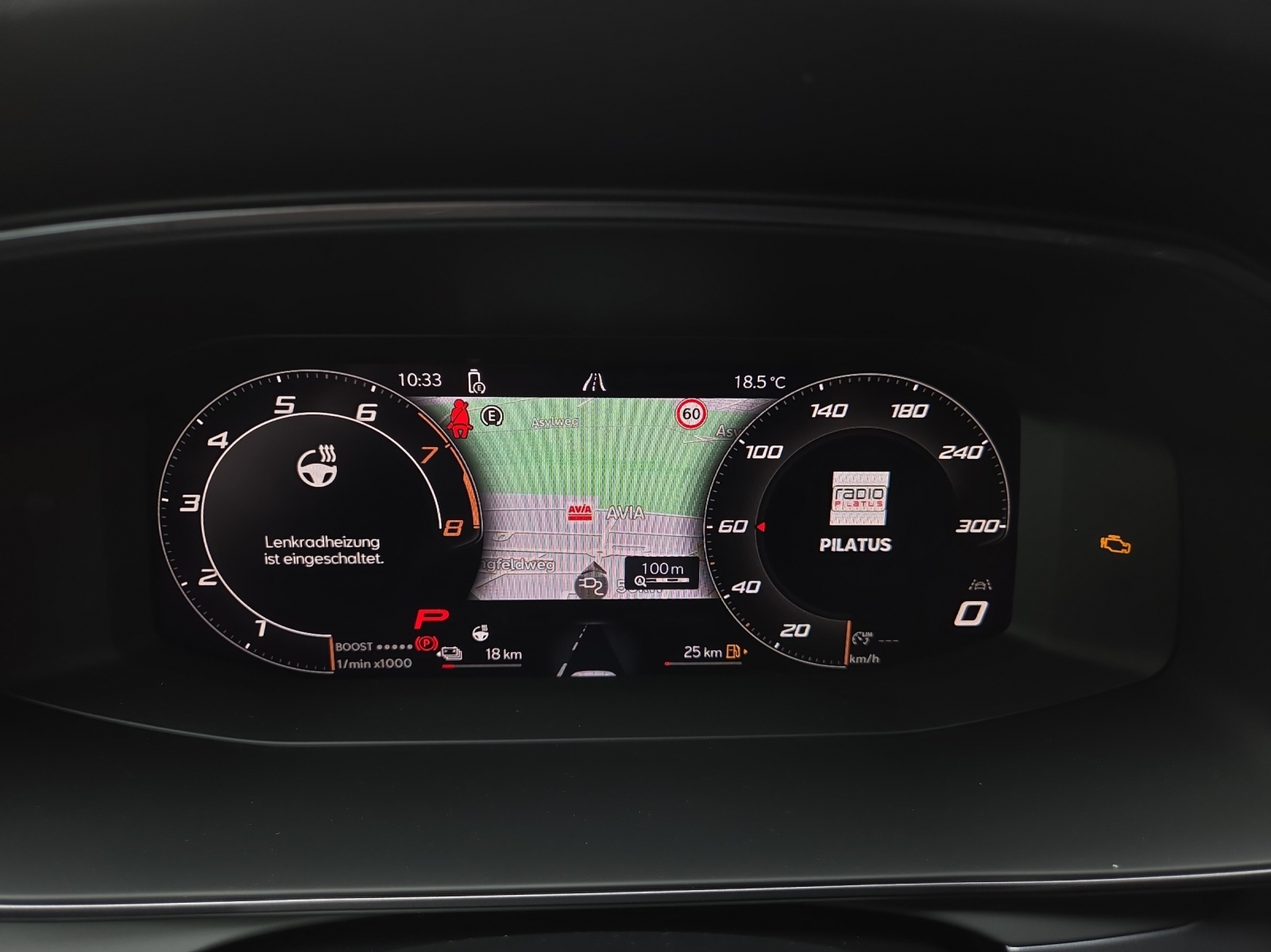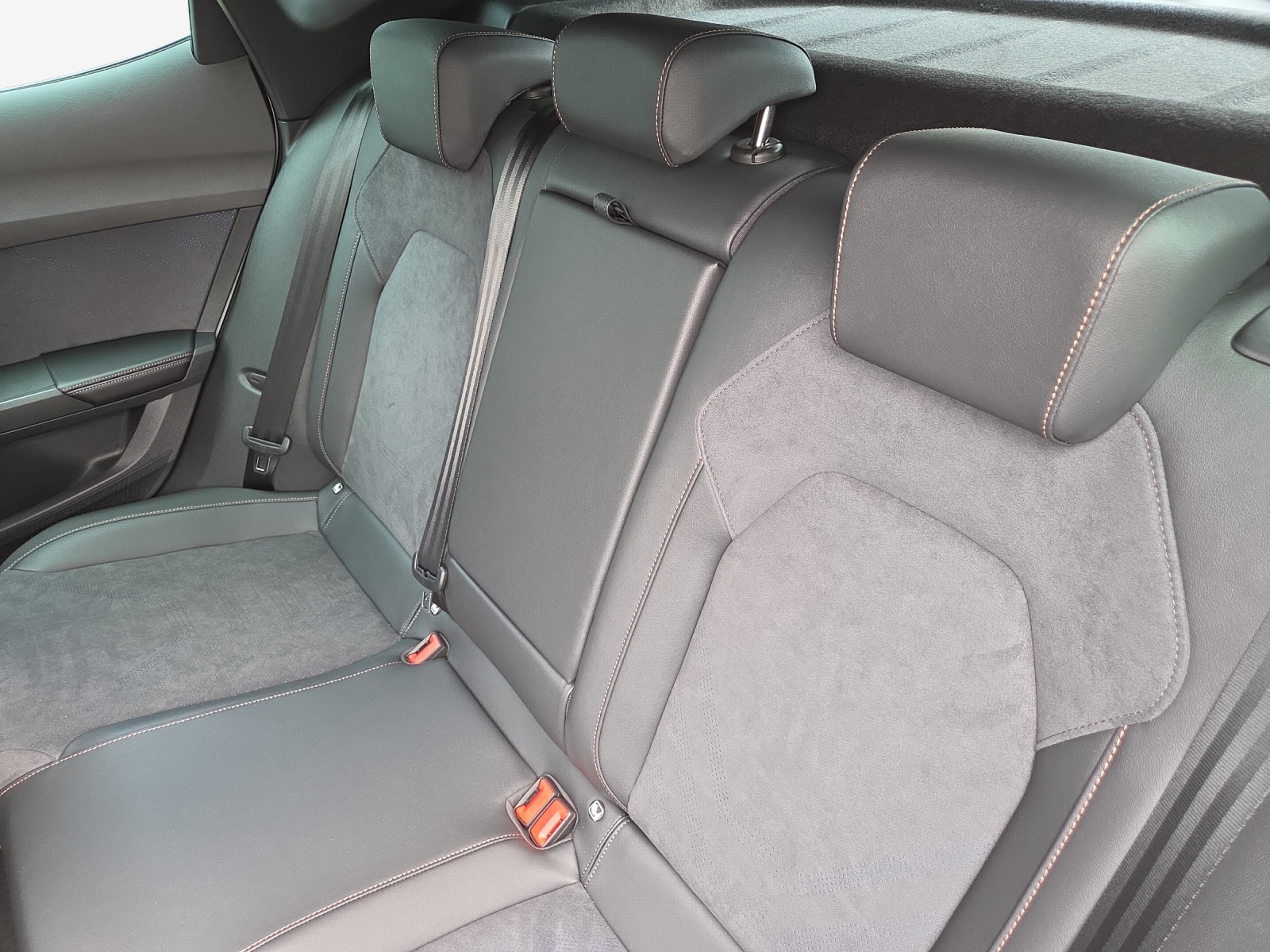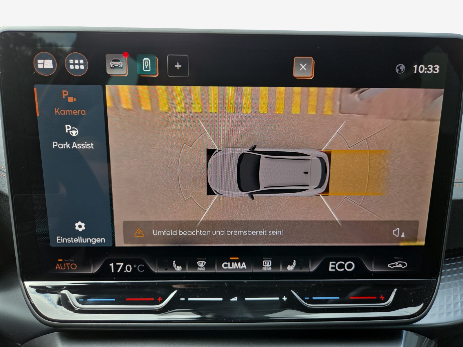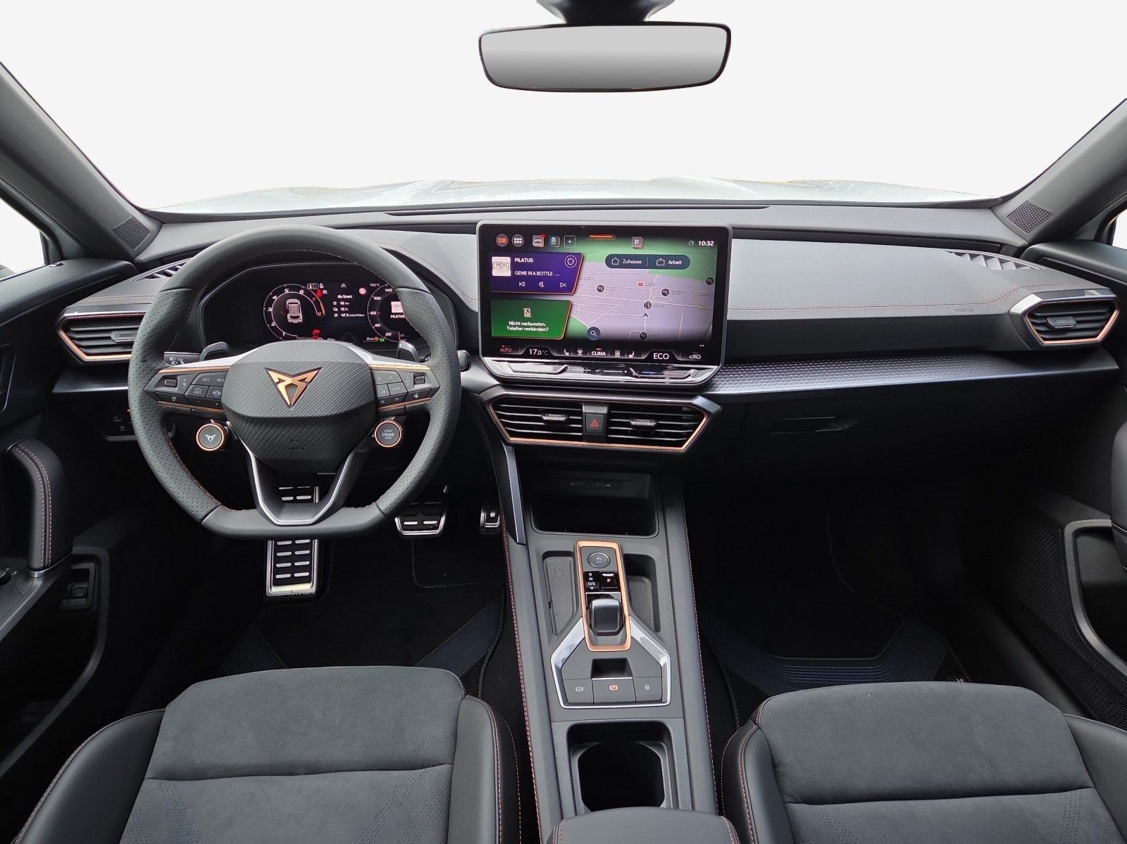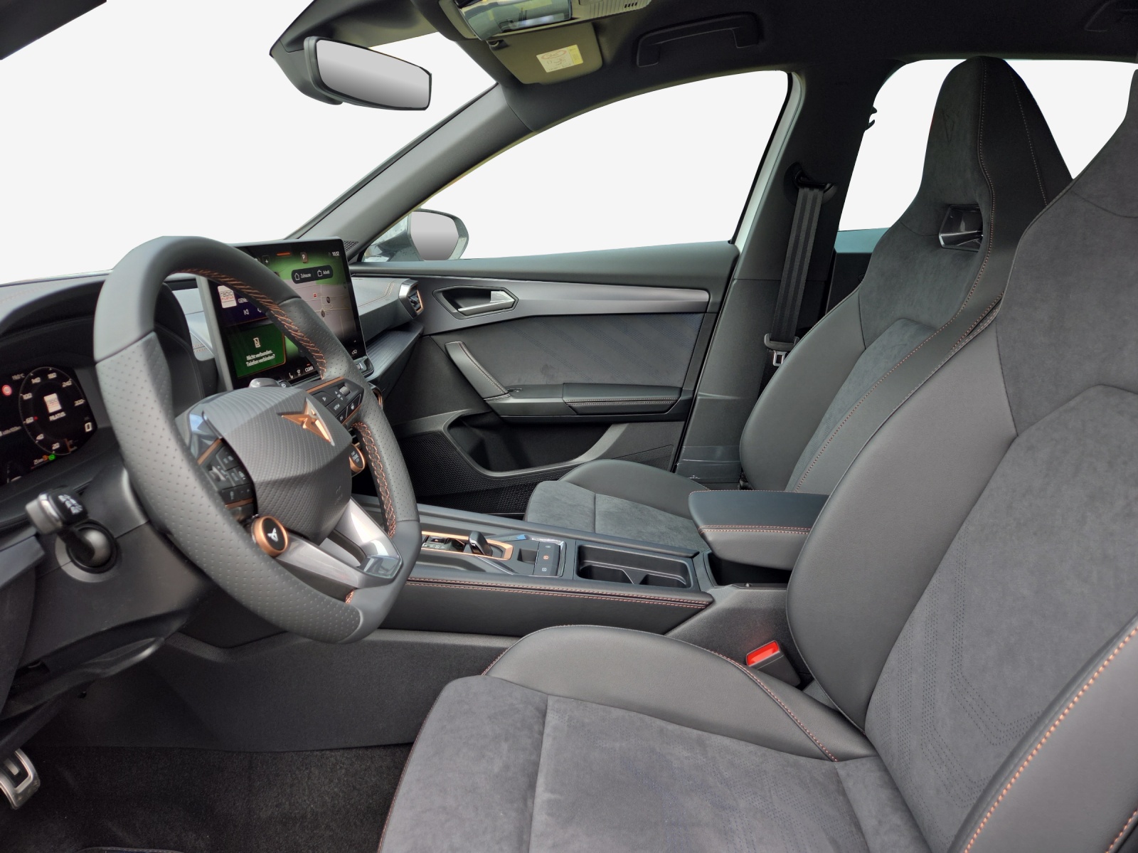 3-Punkt-Sicherheitsgurte auf allen Plätzen ABS, EBV elektronische Bremskraft-verteilung Abgedunkelte Scheiben ab B-Säule hinten Airbag: Airbag Beifahrer deaktivierbar Airbag: Airbag Fahrer und Beifahrer Airbag: Kopfairbags vorne und hinten Airbag: Seitenairbags für Fahrer und Beifahrer Alarmanlage mit Innenraumüberwachung Assist: Aufmerksamkeits- und Müdigkeitserkennung (ADA) Assist: Ausweichunterstützung / Abbiegeassistent Assist: Automatische Distanzregelung ACC Assist: City Notbremsfunktion Assist: Einparkhilfe vorne und hinten Assist: Elektronische Parkbremse mit Auto Hold Funktion Assist: Lane assist (Spurhalteassistent) Assist: Multifunktionskamera Assist: Multikollisionsbremse Assist: Prädiktive Speedlimiter Assist: Regen-/Lichtsensor Assist: Traction Control (TCS) Assist: Traffic sign recognition (Verkehrszeichenerkennung) Assist: Umfeldbeobachtung Front-Assist Aussenspiegel elektrisch einstell-, beheiz- und einklappbar Aussenspiegel mit Beifahrerspiegelabsenkung Aussenspiegel mit LED-Umfeldbeleuchtung Automatisch abblendender Innenrückspiegel Beleuchtete Sonnenblende links mit abdeckbarem Spiegel und Lasche, rechts mit abdeckbarem Spiegel ESC mit EBA, DSR, XDS und Reifendruckkontrolle Elektrische Fensterheber vorne und hinten mit Komfortschaltung und Einklemmschutz Fahrwerk: Progressivlenkung Fussmatten vorne und hinten Garantie: Cupra 12 Jahre Gewährleistung gegen Karosserie-Durchrostung Garantie: Cupra 3 Jahre Lack-Gewährleistung Garantie: Cupra Garantie 2 Jahre Garantie: Cupra Garantie Batterie- Gewährleistung 8 Jahre oder 160’000 KM auf 70% Batterieleistung. Garantie: Cupra Hersteller-Garantieverlängerung für das 3., 4. und 5. Jahr / max.100’000 km Heckscheiben-Wisch-/Waschanlage mit Intervall Kindersitzverankerung ISOFIX (äussere Plätze hinten) Klima: 3-Zonen Climatronic mit Fondraumbedienung LED-Innenraumbeleuchtung mit Ambientebeleuchtung"Monochrom" Lackierung: Uni-Lackierung Ladekabel für Haushaltssteckdose (Mode 2) Lenkrad: Supersportlenkrad mit Start-/ Drive Profile-Knopfsystem und Schaltwippen, beheizbar Licht: Coming-home-Funktion Licht: Drittes Bremslicht Licht: Durchgehende Full LED-Heckleuchten Licht: Fernlicht-Assistent Licht: LED Heckleuchten mit beleuchtetem 3D CUPRA Logo Licht: LED-Heckleuchten mit dynamischem Blinklicht Licht: LED-Nebelscheinwerfer mit Cornering-Funktion Licht: LED-Scheinwerfer für Abblend- und Fernlicht Licht: Leuchtweitenregulierung dynamisch Licht: Nebelschlussleuchte Media: 12,9" Infotainment (MIB3) Media: 2 USB C Anschlüsse hinten und vorne Media: CUPRA Connect Remote & Access Media: CUPRA Connect Safety & Services Media: CUPRA Connectivity Box Media: DAB+ (Digital Audio Broadcasting) Media: Mobiltelefon Freisprechanlage Bluetooth Pyrotechnische Gurtstraffer und Gurtkraftbegrenzer Räder: Alufelgen 8J x 18", "TEMPEST" Machined in Silver Räder: Reifendruckkontrollsystem Räder: Reifenreparatur-Set (Tire Fit) Servolenkung mit geschwindigkeitsabhängiger Lenkkraftunterstützung Sitze: 3 verstellbare Kopfstützen hinten Sitze: CUPRA Sportsitze in "Sharp Textil schwarz" Sitze: Geteilt abklappbare Rücksitzlehne 1/3 - 2/3 Sitze: Kopfstützen vorne (integrierte) Sitze: Mittelarmlehne hinten Sitze: Mittelarmlehne vorne Sitze: Schublade unter dem rechten Vordersitz Sitze: Sitzheizung für Vordersitze, getrennt regelbar Sitze: Vordersitze höhenverstellbar mit Lendenwirbelstütze Stopp - Start- und Rekuperationssystem Wegfahrsperre elektronisch Zentralverriegelung "Keyless-Go" Zentralverriegelung mit Funkfernbedienung, 2 Funkschlüssel