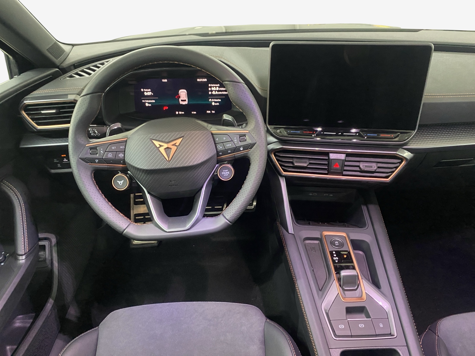 ABS, EBV elektronische Bremskraft-verteilung Abgedunkelte Scheiben ab B-Säule hinten Airbag: Airbag Beifahrer deaktivierbar Airbag: Airbag Fahrer und Beifahrer Airbag: Seitenairbags vorne mit Kopfairbag und Interaktionsairbag vorne Assist: Aufmerksamkeits- und Müdigkeitserkennung (ADA) Assist: Ausweichunterstützung / Abbiegeassistent Assist: Automatische Distanzregelung ACC Assist: Einparkhilfe vorne und hinten Assist: Elektronische Parkbremse mit Auto Hold Funktion Assist: Lane assist (Spurhalteassistent) Assist: Multifunktionskamera Assist: Multikollisionsbremse Assist: Prädiktive Speedlimiter Assist: Regen-/Lichtsensor Assist: Traction Control (TCS) Assist: Traffic sign recognition (Verkehrszeichenerkennung) Aussenspiegel elektrisch einstell-, beheiz- und einklappbar mit Beifahrerabsenkfunktion CUPRA Drive Profile mit "driving experience button" Comfort, Performance, Drift, Individual Dekor: Dekorblenden in Copper Dreipunkt-Automatiksicherheitsgurte auf allen Plätzen ESC mit EBA, DSR und Reifendruckkontrolle Elektrische Fensterheber vorne und hinten mit Komfortschaltung und Einklemmschutz Fussmatten vorne und hinten Garantie: Cupra 12 Jahre Gewährleistung gegen Karosserie-Durchrostung Garantie: Cupra 3 Jahre Lack-Gewährleistung Garantie: Cupra Garantie 2 Jahre Garantie: Cupra Hersteller-Garantieverlängerung für das 3., 4. und 5. Jahr / max.100’000 km Heckscheiben-Wisch-/Waschanlage mit Intervall Innenspiegel automatisch abblendbar Klima: 3-Zonen Climatronic mit Fondraumbedienung LED-Innenraumbeleuchtung mit Ambientebeleuchtung"Monochrom" Lackierung: Uni-Lackierung Lenkrad: Supersportlenkrad mit Start-/ Drive Profile-Knopfsystem und Schaltwippen, beheizbar Licht: Coming Leaving Home Funktion Licht: Drittes Bremslicht Licht: Durchgehende Full LED-Heckleuchten Licht: Dynamische LED-Blinker Licht: Fernlicht-Assistent Licht: LED Heckleuchten mit beleuchtetem 3D CUPRA Logo Licht: LED-Nebelscheinwerfer mit Cornering-Funktion Licht: LED-Scheinwerfer für Abblend- und Fernlicht Licht: Leuchtweitenregulierung Licht: Nebelschlussleuchte Media: 12,9" Infotainment (MIB3) Media: 2 USB C Anschlüsse hinten und vorne Media: CUPRA Connect Remote & Access Media: CUPRA Connect Safety & Services Media: CUPRA Connectivity Box Media: DAB+ (Digital Audio Broadcasting) Media: Mobiltelefon Freisprechanlage Bluetooth Pyrotechnische Gurtstraffer und Gurtkraftbegrenzer vorne Räder: Alufelgen 7,5J x 18", "GARBI" Machined in Sport Black Silver Räder: Reifenreparatur-Set (Tire Fit) Schlüsselloses Schliess- und Startsystem (KESSY) Servolenkung mit geschwindigkeitsabhängiger Lenkkraftunterstützung Sicherheitsgurtkontrolle für alle Sitze Sitze: 2 verstellbare Kopfstützen vorne und 3 hinten Sitze: CUPRA Sport Schalensitze in "Sharp Textil schwarz" Sitze: Fahrer- und Beifahrersitz mit Lendenwirbelstütze Sitze: Geteilt abklappbare Rücksitzlehne 1/3 - 2/3 Sitze: Kindersitzverankerung ISOFIX hinten Sitze: Kopfstützen vorne (integrierte) Sitze: Lendenwirbelstütze in den Vordersitzlehnen Sitze: Mittelarmlehne hinten Sitze: Mittelarmlehne vorne Sitze: Sitzheizung für Vordersitze, getrennt regelbar Sitze: Vordersitze höhenverstellbar Sonnenblende Fahrer und Beifahrerseite Stopp - Start- und Rekuperationssystem Wegfahrsperre elektronisch Zentralverriegelung mit Funkfernbedienung, 2 Funkschlüssel