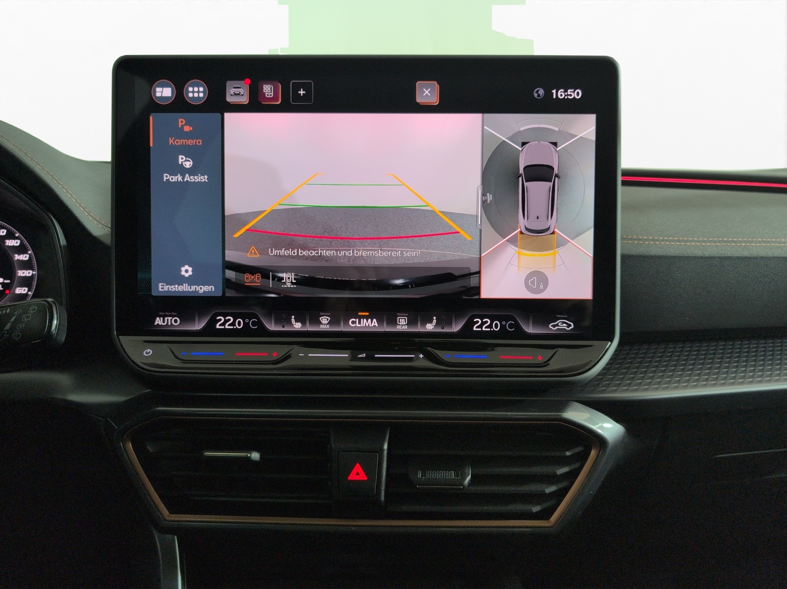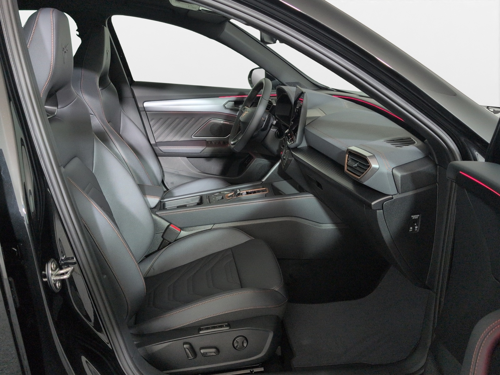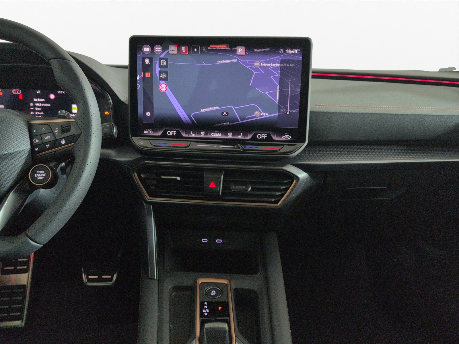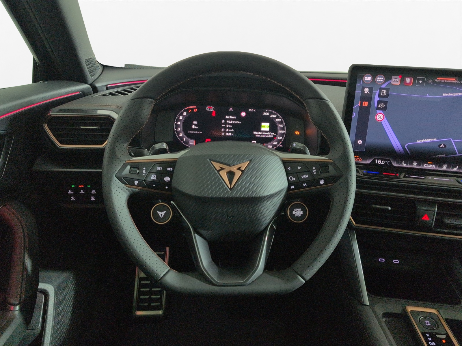 3-Punkt-Sicherheitsgurte auf allen Plätzen ABS, EBV elektronische Bremskraft-verteilung Abgedunkelte Scheiben ab B-Säule hinten Airbag: Airbag Beifahrer deaktivierbar Airbag: Airbag Fahrer und Beifahrer Airbag: Kopfairbags vorne und hinten Airbag: Seitenairbags für Fahrer und Beifahrer Assist: Aufmerksamkeits- und Müdigkeitserkennung (ADA) Assist: Ausweichunterstützung / Abbiegeassistent Assist: Automatische Distanzregelung ACC Assist: City Notbremsfunktion Assist: Einparkhilfe vorne und hinten mit Rückfahrkamera Assist: Elektronische Parkbremse mit Auto Hold Funktion Assist: Lane assist (Spurhalteassistent) Assist: Multifunktionskamera Assist: Multikollisionsbremse Assist: Prädiktive Speedlimiter Assist: Regen-/Lichtsensor Assist: Traction Control (TCS) Assist: Traffic sign recognition (Verkehrszeichenerkennung) Assist: Umfeldbeobachtung Front-Assist Aussenspiegel mit Beifahrerspiegelabsenkung Aussenspiegel mit LED-Umfeldbeleuchtung Automatisch abblendender Innenrückspiegel Beleuchtete Sonnenblende links mit abdeckbarem Spiegel und Lasche, rechts mit abdeckbarem Spiegel ESC mit EBA, DSR, XDS und Reifendruckkontrolle Elektrische Fensterheber vorne und hinten mit Komfortschaltung und Einklemmschutz Fahrwerk: Adaptive Fahrwerksregelung DCC Fahrwerk: Progressivlenkung Fussmatten vorne und hinten Garantie: Cupra 12 Jahre Gewährleistung gegen Karosserie-Durchrostung Garantie: Cupra 3 Jahre Lack-Gewährleistung Garantie: Cupra Garantie 2 Jahre Garantie: Cupra Hersteller-Garantieverlängerung für das 3., 4. und 5. Jahr / max.100’000 km Heckscheiben-Wisch-/Waschanlage mit Intervall Kindersitzverankerung ISOFIX (äussere Plätze hinten) Klima: 3-Zonen Climatronic mit Fondraumbedienung Lackierung: Uni-Lackierung Lenkrad: Supersportlenkrad mit Start-/ Drive Profile-Knopfsystem und Schaltwippen, beheizbar Licht: Coming-home-Funktion Licht: Drittes Bremslicht Licht: Durchgehende Full LED-Heckleuchten Licht: Fernlicht-Assistent Licht: LED Heckleuchten mit beleuchtetem 3D CUPRA Logo Licht: LED-Heckleuchten mit dynamischem Blinklicht Licht: LED-Nebelscheinwerfer mit Cornering-Funktion Licht: LED-Scheinwerfer für Abblend- und Fernlicht Licht: Leuchtweitenregulierung dynamisch Licht: Nebelschlussleuchte Media: 12,9" Infotainment (MIB3) Media: 2 USB C Anschlüsse hinten und vorne Media: CUPRA Connect Remote & Access Media: CUPRA Connect Safety & Services Media: CUPRA Connectivity Box Media: DAB+ (Digital Audio Broadcasting) Media: Mobiltelefon Freisprechanlage Bluetooth Pyrotechnische Gurtstraffer und Gurtkraftbegrenzer Räder: Alufelgen 8J x 19", "SANDSTORM" Machined in Silver Räder: Reifendruckkontrollsystem Räder: Reifenreparatur-Set (Tire Fit) Servolenkung mit geschwindigkeitsabhängiger Lenkkraftunterstützung Sitze: 3 verstellbare Kopfstützen hinten Sitze: Geteilt abklappbare Rücksitzlehne 1/3 - 2/3 Sitze: Kopfstützen vorne (integrierte) Sitze: Mittelarmlehne hinten Sitze: Mittelarmlehne vorne Sitze: Schublade unter dem rechten Vordersitz Sitze: Sitzheizung für Vordersitze, getrennt regelbar Sitze: Vordersitze höhenverstellbar mit Lendenwirbelstütze Stopp - Start- und Rekuperationssystem Wegfahrsperre elektronisch Zentralverriegelung mit Funkfernbedienung, 2 Funkschlüssel