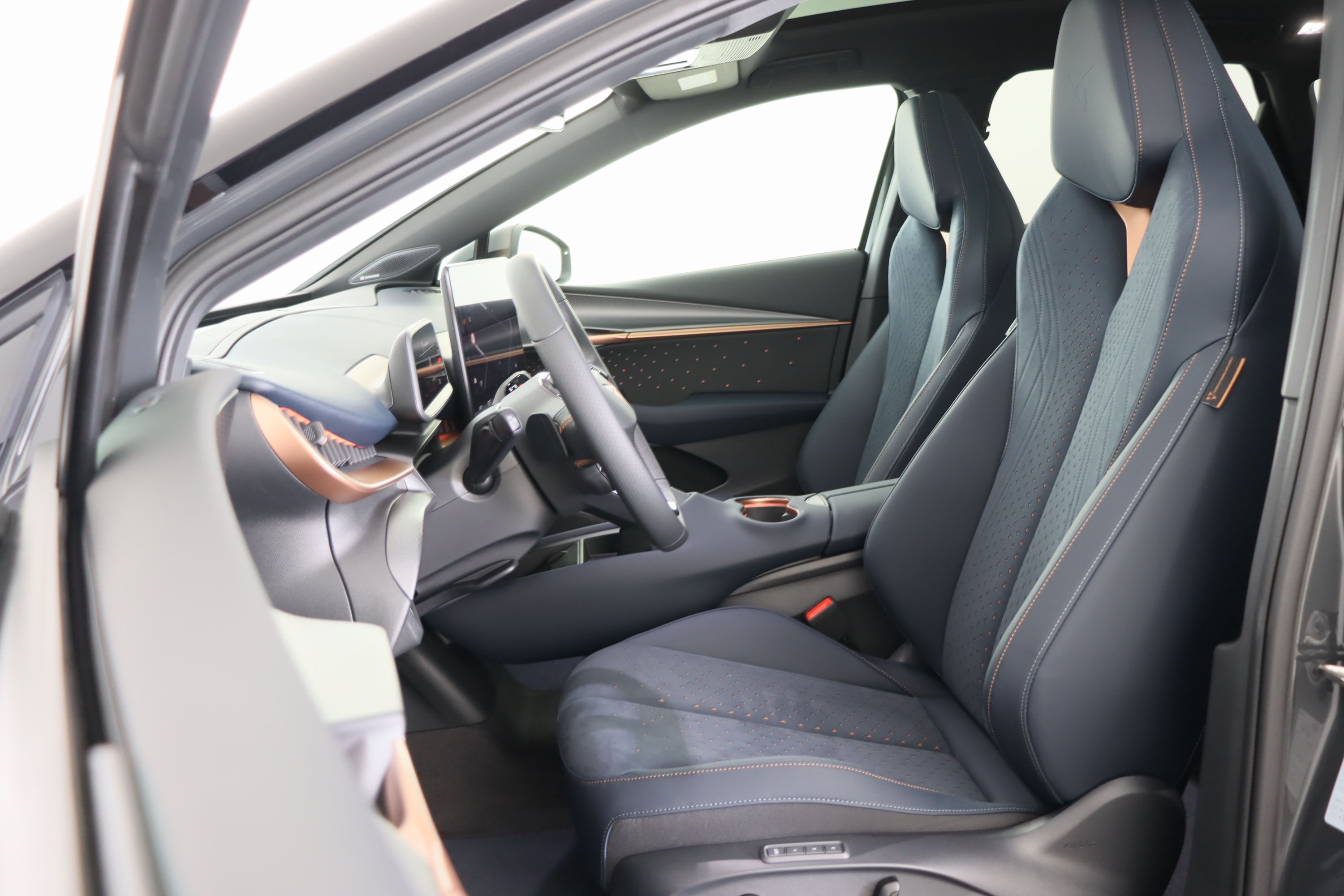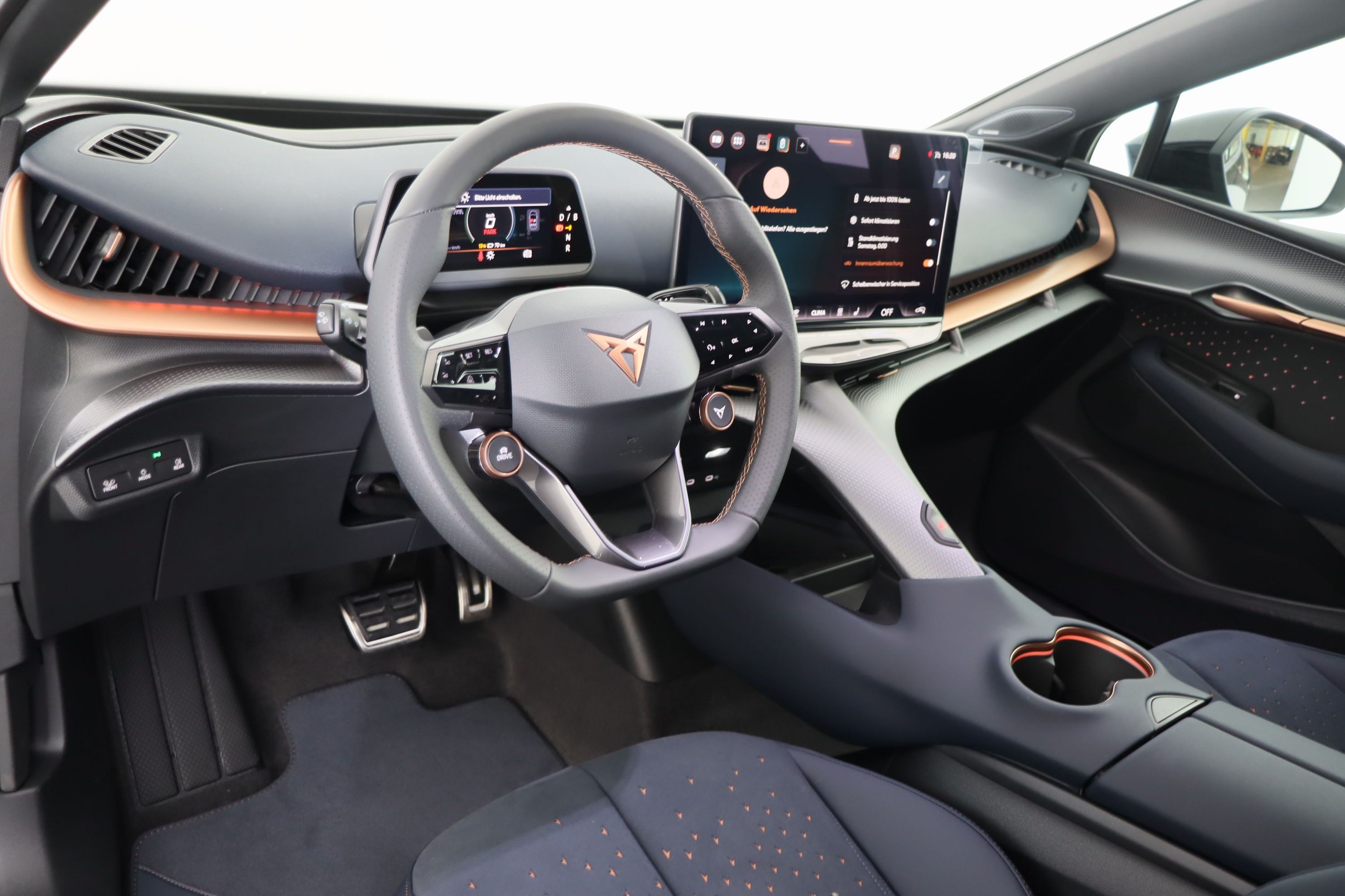 5.3" Full Digital Cockpit Abgedunkelte Scheiben ab B-Säule hinten Airbag: Airbag Beifahrer deaktivierbar Airbag: Airbag Fahrer und Beifahrer Airbag: Seitenairbags für Fahrer und Beifahrer Alarmanlage mit Innenraumüberwachung Assist: Aufmerksamkeits- und Müdigkeitserkennung (ADA) Assist: Ausweichunterstützung / Abbiegeassistent Assist: Exit Assist (Ausparkassistent) Assist: Exit Warning (Ausstiegswarner) Assist: Intelligenter Geschwindigkeitsassistent Assist: Parklenkassistent RPA (Remote Park Assist) Assist: PreCrash Sicherheitssystem Assist: Prädiktive automatische Distanzregelung ACC Assist: Regen-/Lichtsensor Assist: Side Assist (Spurwechselassistent) Assist: Top View Camera (Rundumblick) Assist: Traction Control (TCS) Assist: Traffic sign recognition (Verkehrszeichenerkennung) Assist: eCall Notruffunktion Augmented Reality Head-up-Display Aussenspiegel elektrisch einstell-, beheiz- und einklappbar mit Beifahrerabsenkfunktion- Automatisch abblendender Innenrückspiegel Dreipunkt-Automatiksicherheitsgurte auf allen Plätzen Einstiegsleisten beleuchtet Elektrische Fensterheber vorne und hinten mit Komfortschaltung und Einklemmschutz Elektronisches Stabilitäts-Programm (ESP) Fahrwerk: Adaptive Fahrwerksregelung DCC Garantie: Cupra 12 Jahre Gewährleistung gegen Karosserie-Durchrostung Garantie: Cupra 3 Jahre Lack-Gewährleistung Garantie: Cupra Garantie 2 Jahre ohne Kilometerbegrenzung Garantie: Cupra Hersteller-Garantieverlängerung für das 3., 4. und 5. Jahr / max.100’000 km Getriebe: 1-Gang Automatik Heckklappe elektrisch öffnend und schliessend "Virtual Pedal" Klima: 3-Zonen Climatronic mit Fondraumbedienung LED Ambientebeleuchtung "IMMERSIVE" Lackierung: Uni-Lackierung Lenkrad: Supersportlenkrad mit Drive Profile-Knopfsystem,beheizbar Licht: Drittes Bremslicht Licht: LED Heckleuchten mit beleuchtetem 3D CUPRA Logo Licht: Matrix LED Fernlicht Licht: Matrix LED Scheinwerfer Licht: Nebelschlussleuchte Media: 15" Infotainment (MIB3) Media: 2 USB C Anschlüsse hinten und vorne Media: Bluetooth-Freisprecheinrichtung Media: CUPRA Connect Online Infotainment Media: CUPRA Connect Remote & Access Media: CUPRA Connect Safety & Services Media: CUPRA Navigationssystem Media: DAB+ (Digital Audio Broadcasting) Media: SENNHEISER Sound System mit 12 High-End-Lautsprecher inkl. 300 Watt Subwoofer Media: Wireless Charger zur induktiven Smartphone Ladung Polster: Sitzbezüge in Dinamica "Dark Night" Räder: Alufelgen 9J x 21", "Katla" Machined Sport in Black/Copper Räder: Reifendruckkontrollsystem Schlüsselloses Schliess- und Startsystem (KESSY Advance) Servolenkung geschwindigkeitsabhängig Sitze: Elektrische Sitzverstellung mit Memory-Funktion für Fahrer- und Beifahrerseite Sitze: Geteilt abklappbare Rücksitzlehne mit Mittelarmlehne und Durchlademöglichkeit Sitze: Kindersitzbefestigungssystem ISOFIX Sitze: Kopfstützen hinten höhenverstellbar Sitze: Kopfstützen vorne (integrierte) Sitze: Lendenwirbelstütze Fahrer- und Beifahrerseite elektrisch einstellbar Sitze: Sitzheizung für Vorder- und Rücksitze, getrennt regelbar Sitze: Vordersitze höhenverstellbar Vorbereitung für Anhängevorrichtung Wegfahrsperre elektronisch Zentralverriegelung mit Fernbedienung
