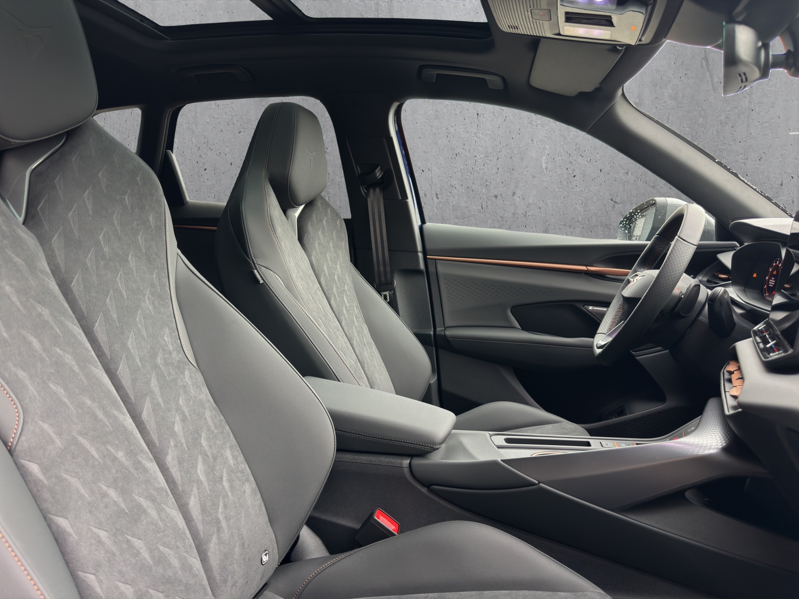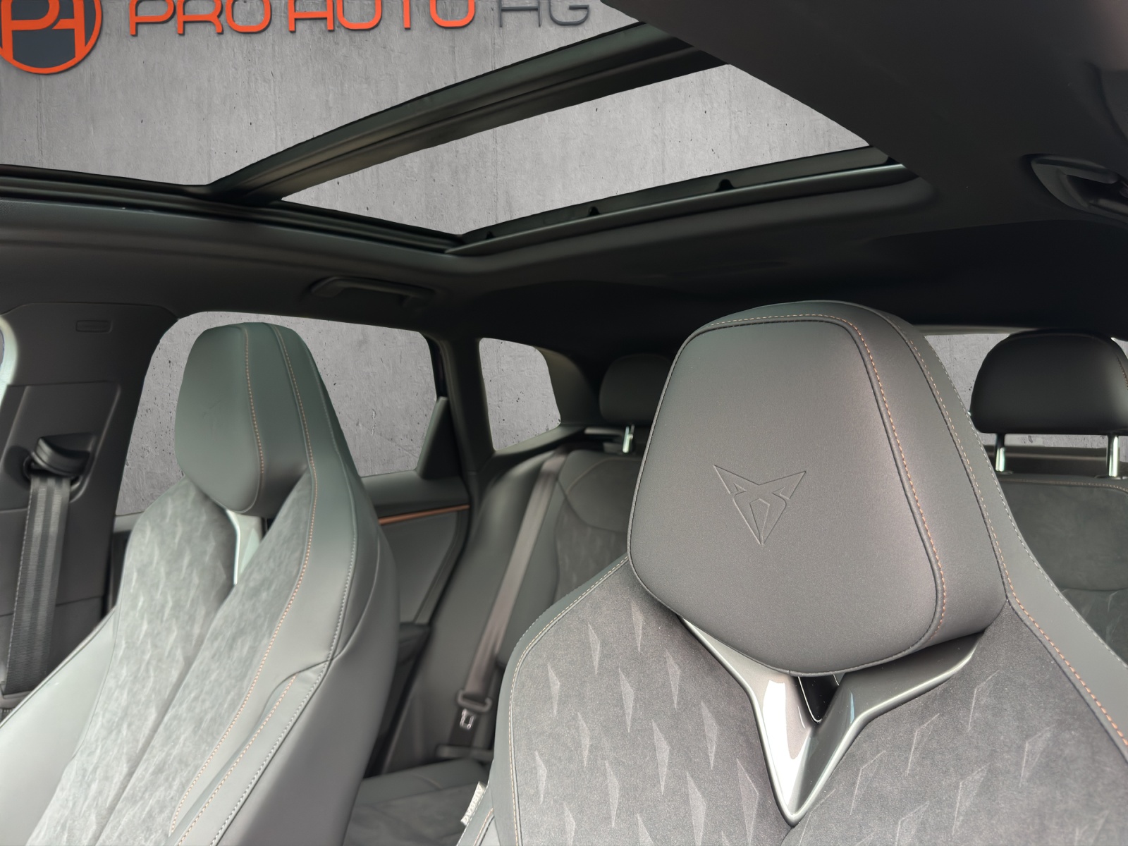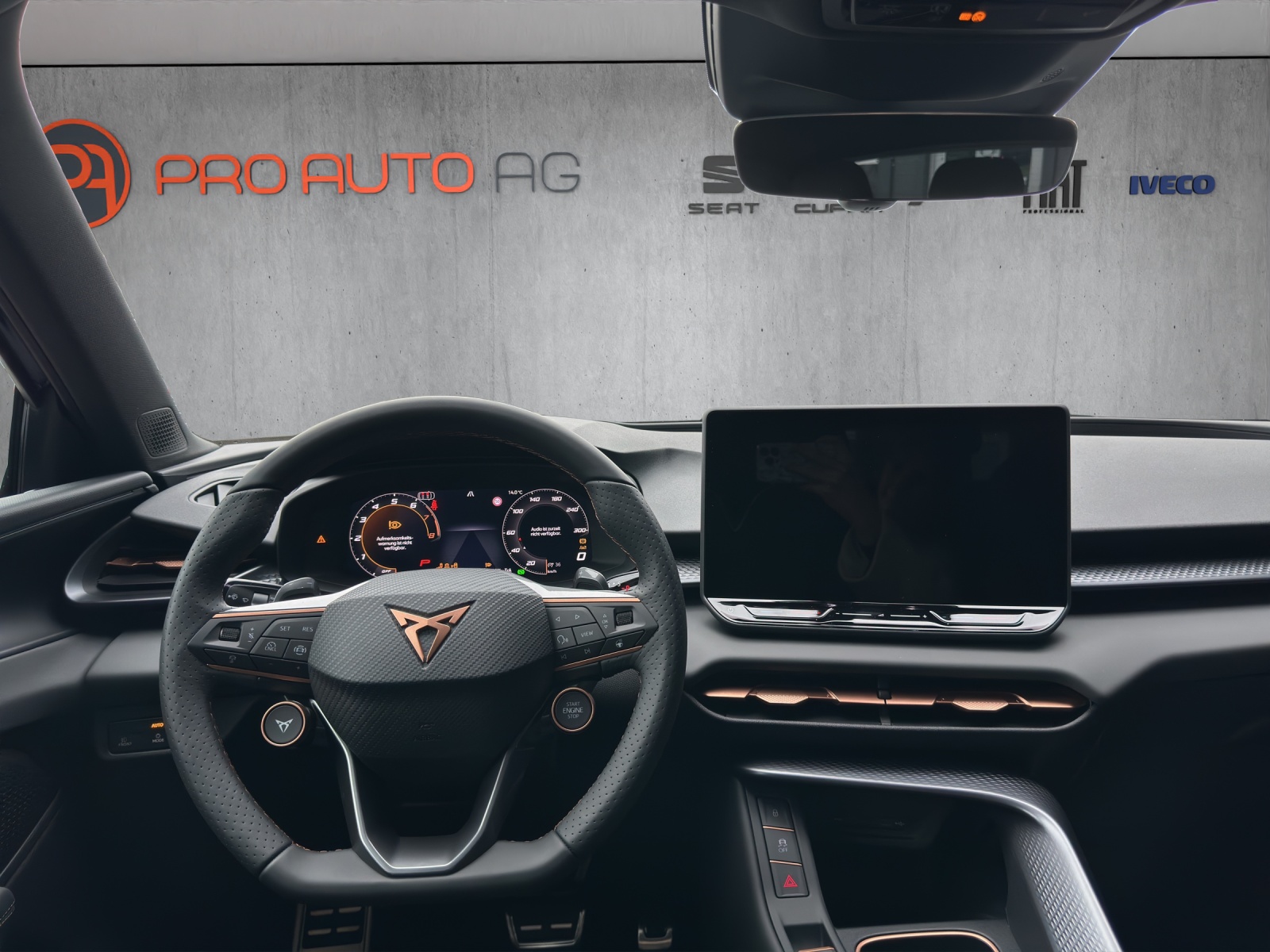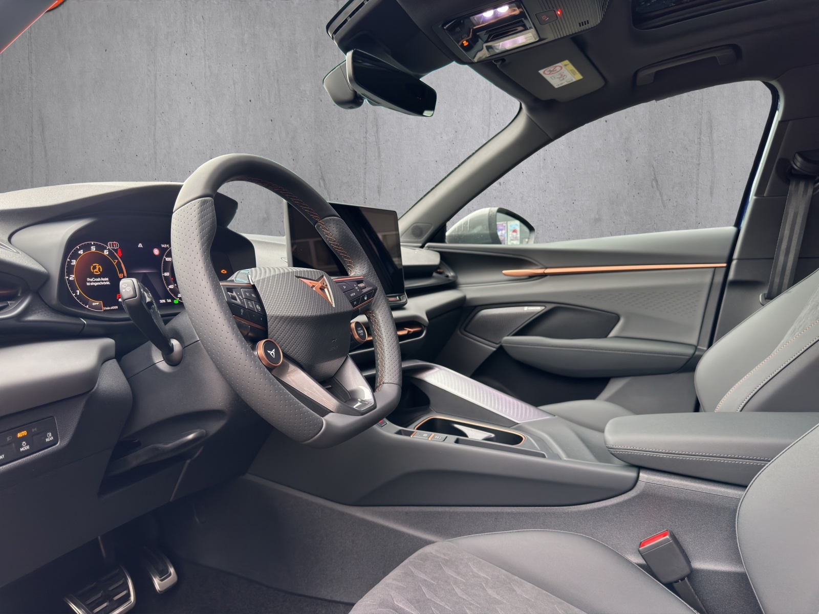 3-Punkt-Sicherheitsgurte auf allen Plätzen ABS, EBV elektronische Bremskraft-verteilung Abgedunkelte Scheiben ab B-Säule hinten Airbag: Airbag Beifahrer deaktivierbar Airbag: Airbag Fahrer und Beifahrer Airbag: Kopfairbags vorne und hinten Airbag: Seitenairbags für Fahrer und Beifahrer Alarmanlage mit Innenraumüberwachung Assist: Aufmerksamkeits- und Müdigkeitserkennung (ADA) Assist: Ausweichunterstützung / Abbiegeassistent Assist: Automatische Distanzregelung ACC Assist: City Notbremsfunktion Assist: Einparkhilfe vorne und hinten mit Rückfahrkamera Assist: Elektronische Parkbremse mit Auto Hold Funktion Assist: Lane assist (Spurhalteassistent) Assist: Multifunktionskamera Assist: Multikollisionsbremse Assist: Prädiktive Speedlimiter Assist: Traffic sign recognition (Verkehrszeichenerkennung) Assist: Umfeldüberwachungssystem "Front-Assist" Aussenspiegel elektrisch einstell-, beheiz- und einklappbar Aussenspiegel mit LED-Umfeldbeleuchtung Beleuchtete Sonnenblende links mit abdeckbarem Spiegel und Lasche, rechts mit abdeckbarem Spiegel ESC mit EBA, DSR, XDS und Reifendruckkontrolle Einstiegsleisten beleuchtet Elektrische Fensterheber vorne und hinten mit Komfortschaltung und Einklemmschutz Fahrwerk: Adaptive Fahrwerksregelung DCC pro Fahrwerk: CUPRA Sportfahrwerk Fahrwerk: Progressivlenkung Fussmatten vorne und hinten Garantie: Cupra 12 Jahre Gewährleistung gegen Karosserie-Durchrostung Garantie: Cupra 3 Jahre Lack-Gewährleistung Garantie: Cupra Hersteller-Garantieverlängerung für das 3., 4. und 5. Jahr / max.100000 km Heckklappe elektrisch öffnend und schliessend "Virtual Pedal" Heckscheiben-Wisch-/Waschanlage mit Intervall Innenspiegel automatisch abblendbar Klima: 3-Zonen Climatronic mit Fondraumbedienung LED-Ambientebeleuchtung Smart Wraparound, inkl. Funktionsanzeige Lackierung: Uni-Lackierung Lenkrad: Leder Multifunktionslenkrad mit Schaltwippen, beheizbar Licht: Drittes Bremslicht Licht: Durchgehende Full LED-Heckleuchten Licht: LED Heckleuchten mit beleuchtetem 3D CUPRA Logo Licht: LED-Heckleuchten mit dynamischem Blinklicht Licht: LED-Nebelscheinwerfer mit Cornering-Funktion Licht: LED-Scheinwerfer für Abblend- und Fernlicht Licht: Leuchtweitenregulierung dynamisch Licht: Nebelschlussleuchte Media: 12,9" Infotainment (MIB3) Media: 2 USB C Anschlüsse hinten und vorne Media: CUPRA Connect Remote & Access / CUPRA Connect Safety & Services Media: CUPRA Connectivity Box Media: DAB+ (Digital Audio Broadcasting) Media: Mobiltelefon Freisprechanlage Bluetooth Mittelarmlehne vorne und hinten Pyrotechnische Gurtstraffer und Gurtkraftbegrenzer Räder: Alufelgen 8.5J x 19", "COSMIC" Machined in Sport Black Matt & Silver Räder: Performance Reifen Räder: Reifendruckkontrollsystem Schlüsselloses Schliess- und Startsystem (KESSY Advance) Servolenkung mit geschwindigkeitsabhängiger Lenkkraftunterstützung Sitze: 3 verstellbare Kopfstützen hinten Sitze: CUPRA Sport Schalensitze in Textil, "DEEP OCEAN" "SEAQUAL" Sitze: Geteilt abklappbare Rücksitzlehne 1/3 - 2/3 Sitze: Geteilt abklappbare Rücksitzlehne mit Mittelarmlehne Sitze: Kindersitzverankerung ISOFIX hinten Sitze: Vordersitze höhenverstellbar mit Lendenwirbelstütze Stopp - Start- und Rekuperationssystem Wegfahrsperre elektronisch Zentralverriegelung mit Funkfernbedienung, 2 Funkschlüssel