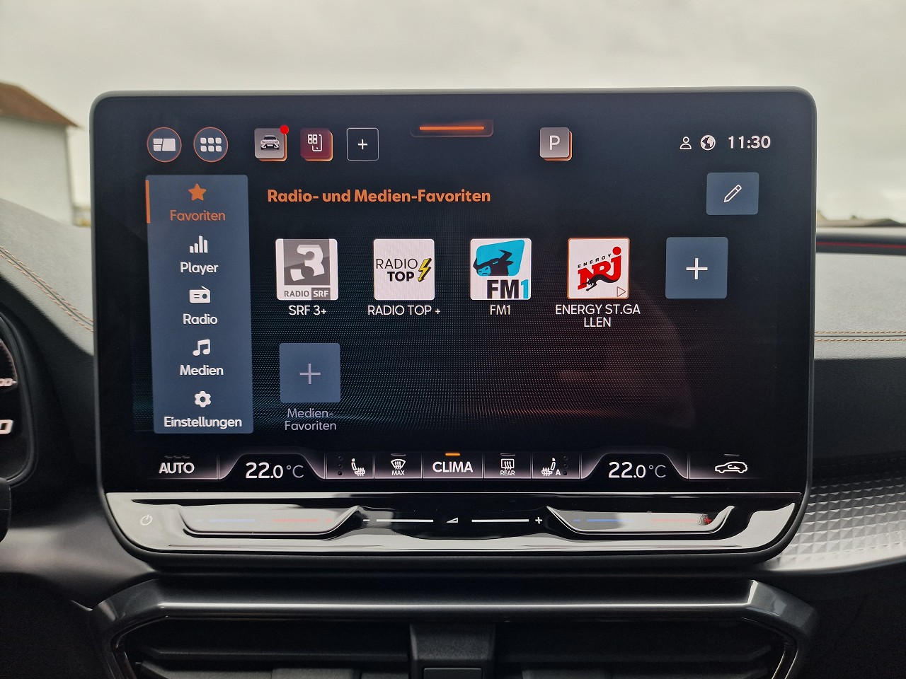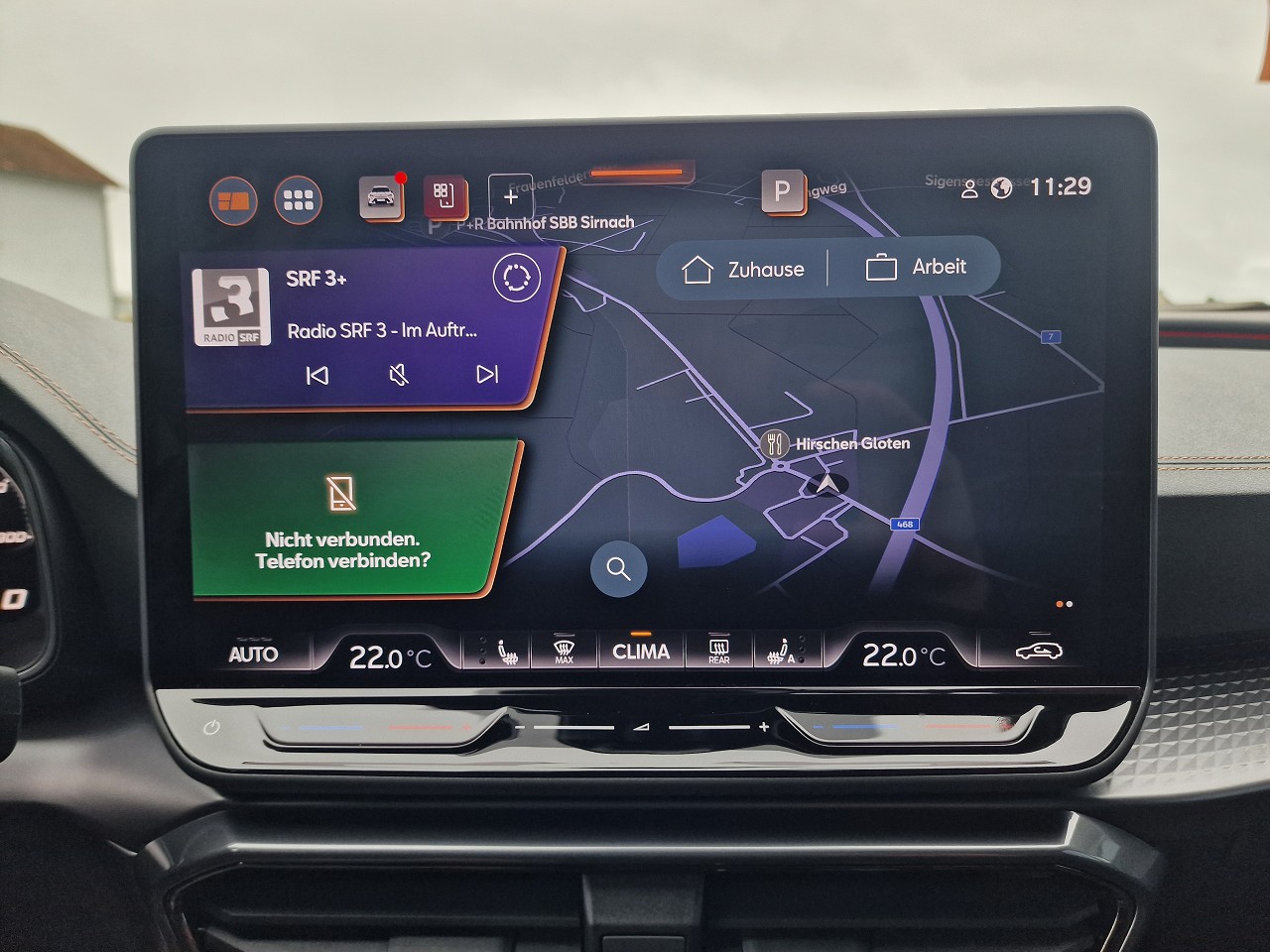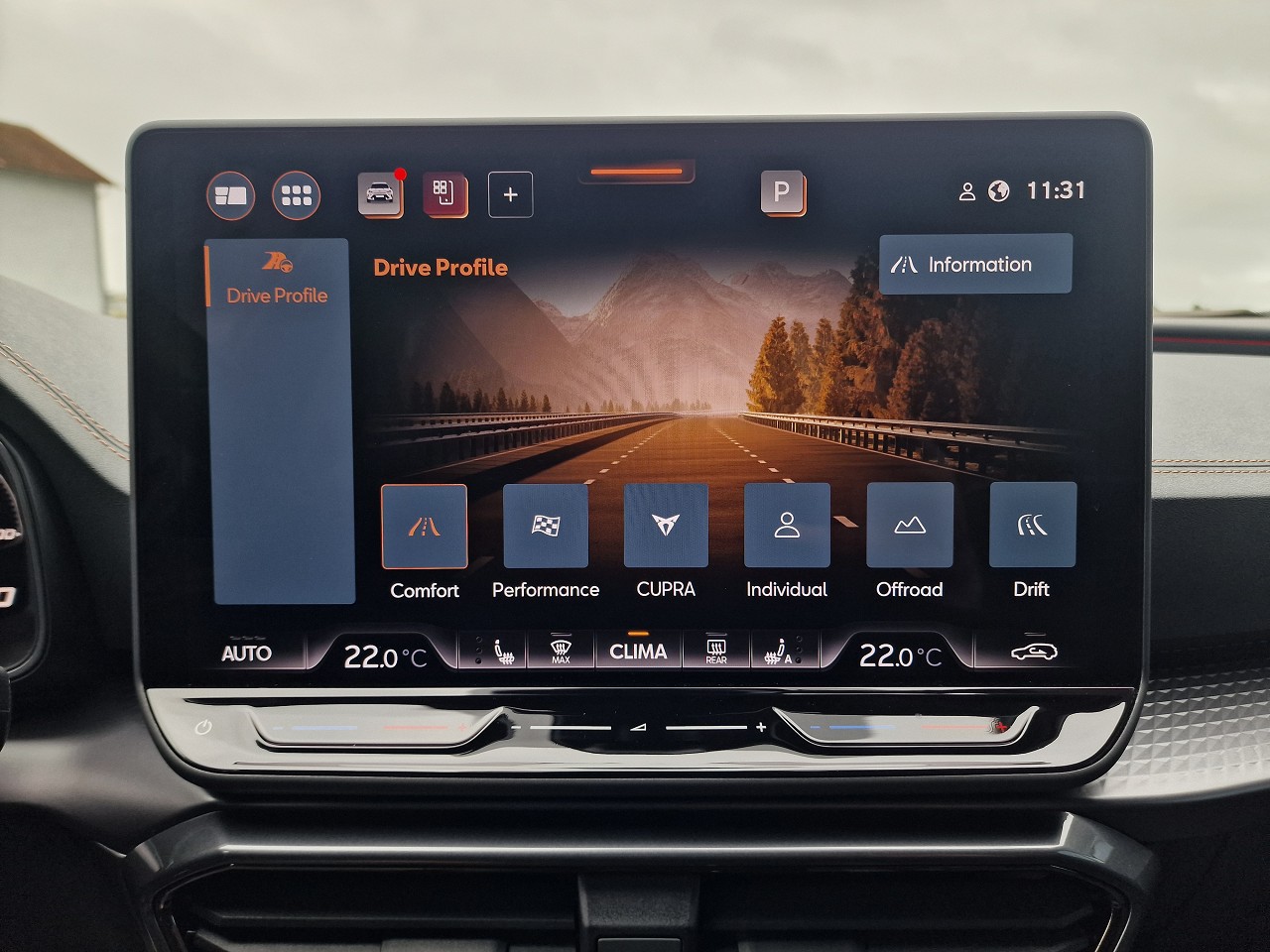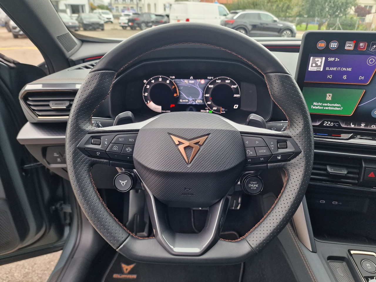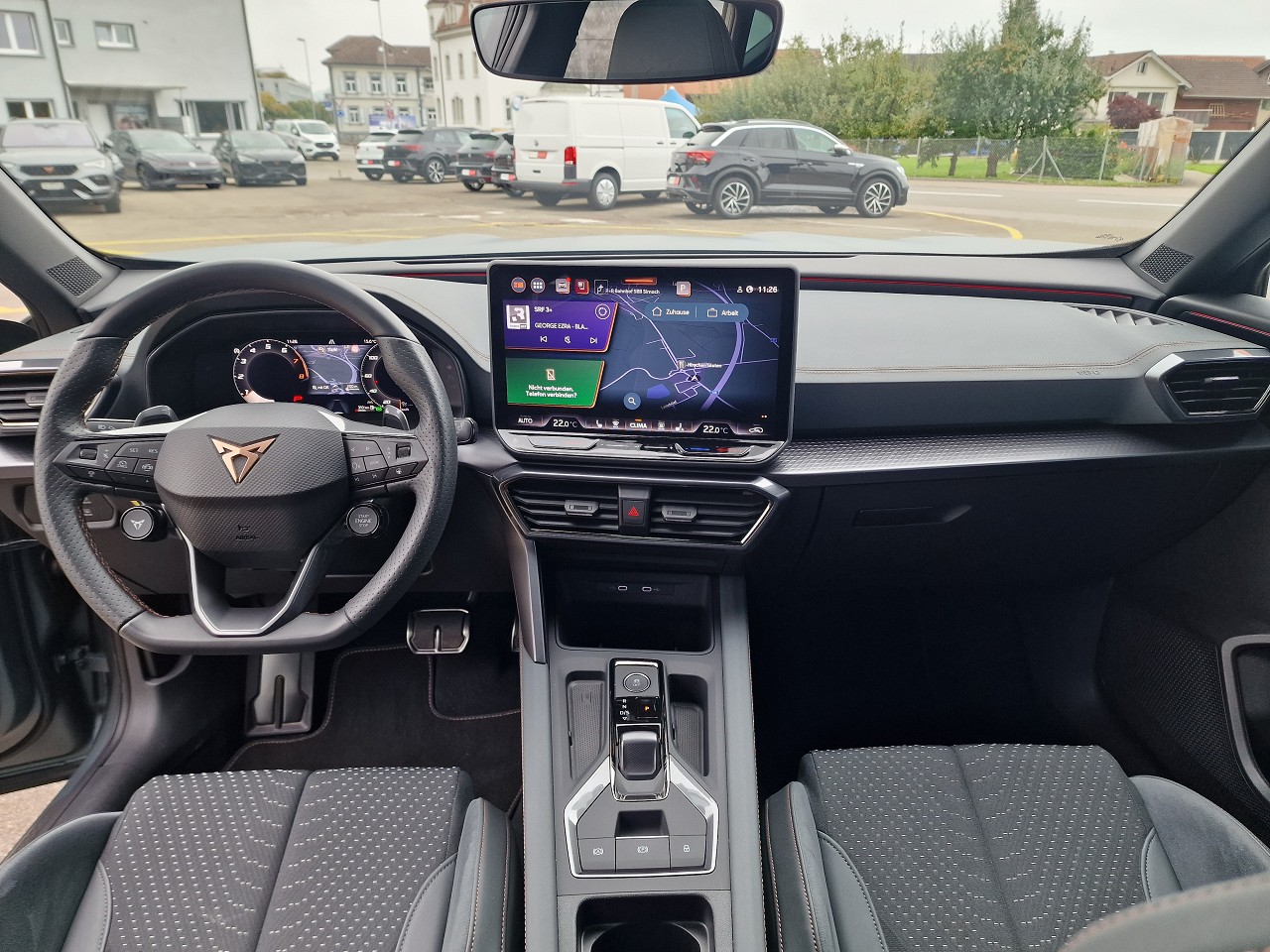 Serienausstattung 3-Punkt-Sicherheitsgurte auf allen Plätzen ABS, EBV elektronische Bremskraft-verteilung Abgedunkelte Scheiben ab B-Säule hinten Airbag: Airbag Beifahrer deaktivierbar Airbag: Airbag Fahrer und Beifahrer Airbag: Kopfairbags vorne und hinten Airbag: Seitenairbags für Fahrer und Beifahrer Assist: Aufmerksamkeits- und Müdigkeitserkennung (ADA) Assist: Ausweichunterstützung / Abbiegeassistent Assist: Automatische Distanzregelung ACC Assist: City Notbremsfunktion Assist: Einparkhilfe vorne und hinten mit Rückfahrkamera Assist: Elektronische Parkbremse mit Auto Hold Funktion Assist: Lane assist (Spurhalteassistent) Assist: Multifunktionskamera Assist: Multikollisionsbremse Assist: Prädiktive Speedlimiter Assist: Regen-/Lichtsensor Assist: Traction Control (TCS) Assist: Traffic sign recognition (Verkehrszeichenerkennung) Assist: Umfeldbeobachtung Front-Assist Aussenspiegel mit Beifahrerspiegelabsenkung Aussenspiegel mit LED-Umfeldbeleuchtung Automatisch abblendender Innenrückspiegel Beleuchtete Sonnenblende links mit abdeckbarem Spiegel und Lasche, rechts mit abdeckbarem Spiegel ESC mit EBA, DSR, XDS und Reifendruckkontrolle Elektrische Fensterheber vorne und hinten mit Komfortschaltung und Einklemmschutz Fahrwerk: Adaptive Fahrwerksregelung DCC Fahrwerk: Progressivlenkung Fussmatten vorne und hinten Garantie: Cupra 12 Jahre Gewährleistung gegen Karosserie-Durchrostung Garantie: Cupra 3 Jahre Lack-Gewährleistung Garantie: Cupra Garantie 2 Jahre ohne Kilometerbegrenzung Heckscheiben-Wisch-/Waschanlage mit Intervall Kindersitzverankerung ISOFIX (äussere Plätze hinten) Klima: 3-Zonen Climatronic mit Fondraumbedienung Lackierung: Uni-Lackierung Lenkrad: Supersportlenkrad mit Start-/ Drive Profile-Knopfsystem und Schaltwippen, beheizbar Licht: Coming-home-Funktion Licht: Drittes Bremslicht Licht: Durchgehende Full LED-Heckleuchten Licht: Fernlicht-Assistent Licht: LED Heckleuchten mit beleuchtetem 3D CUPRA Logo Licht: LED-Heckleuchten mit dynamischem Blinklicht Licht: LED-Nebelscheinwerfer mit Cornering-Funktion Licht: LED-Scheinwerfer für Abblend- und Fernlicht Licht: Leuchtweitenregulierung dynamisch Licht: Nebelschlussleuchte Media: 12,9" Infotainment (MIB3) Media: 2 USB C Anschlüsse hinten und vorne Media: CUPRA Connect Remote & Access Media: CUPRA Connect Safety & Services Media: CUPRA Connectivity Box Media: DAB+ (Digital Audio Broadcasting) Media: Mobiltelefon Freisprechanlage Bluetooth Pyrotechnische Gurtstraffer und Gurtkraftbegrenzer Räder: Alufelgen 8J x 19", "SANDSTORM" Machined in Silver Räder: Reifendruckkontrollsystem Räder: Reifenreparatur-Set (Tire Fit) Servolenkung mit geschwindigkeitsabhängiger Lenkkraftunterstützung Sitze: 3 verstellbare Kopfstützen hinten Sitze: Geteilt abklappbare Rücksitzlehne 1/3 - 2/3 Sitze: Kopfstützen vorne (integrierte) Sitze: Mittelarmlehne hinten Sitze: Mittelarmlehne vorne Sitze: Schublade unter dem rechten Vordersitz Sitze: Sitzheizung für Vordersitze, getrennt regelbar Sitze: Vordersitze höhenverstellbar mit Lendenwirbelstütze Stopp - Start- und Rekuperationssystem Wegfahrsperre elektronisch Zentralverriegelung mit Funkfernbedienung, 2 Funkschlüssel