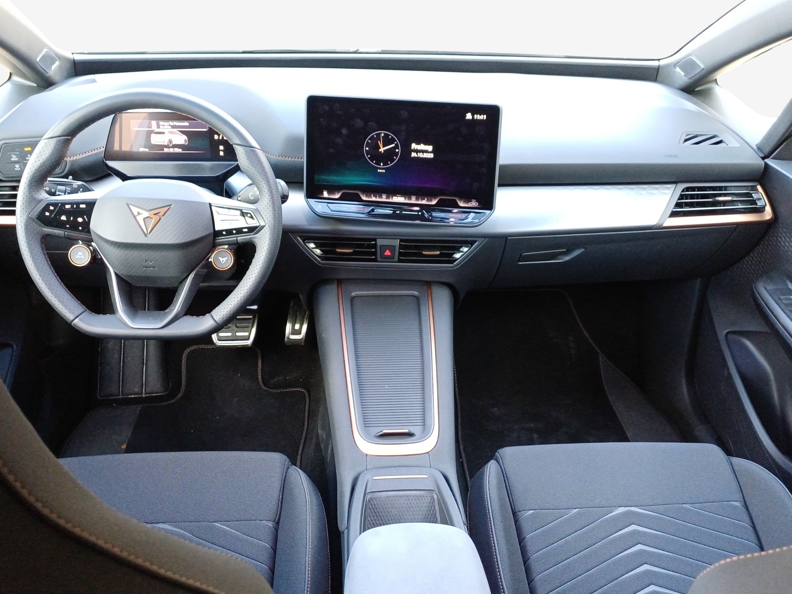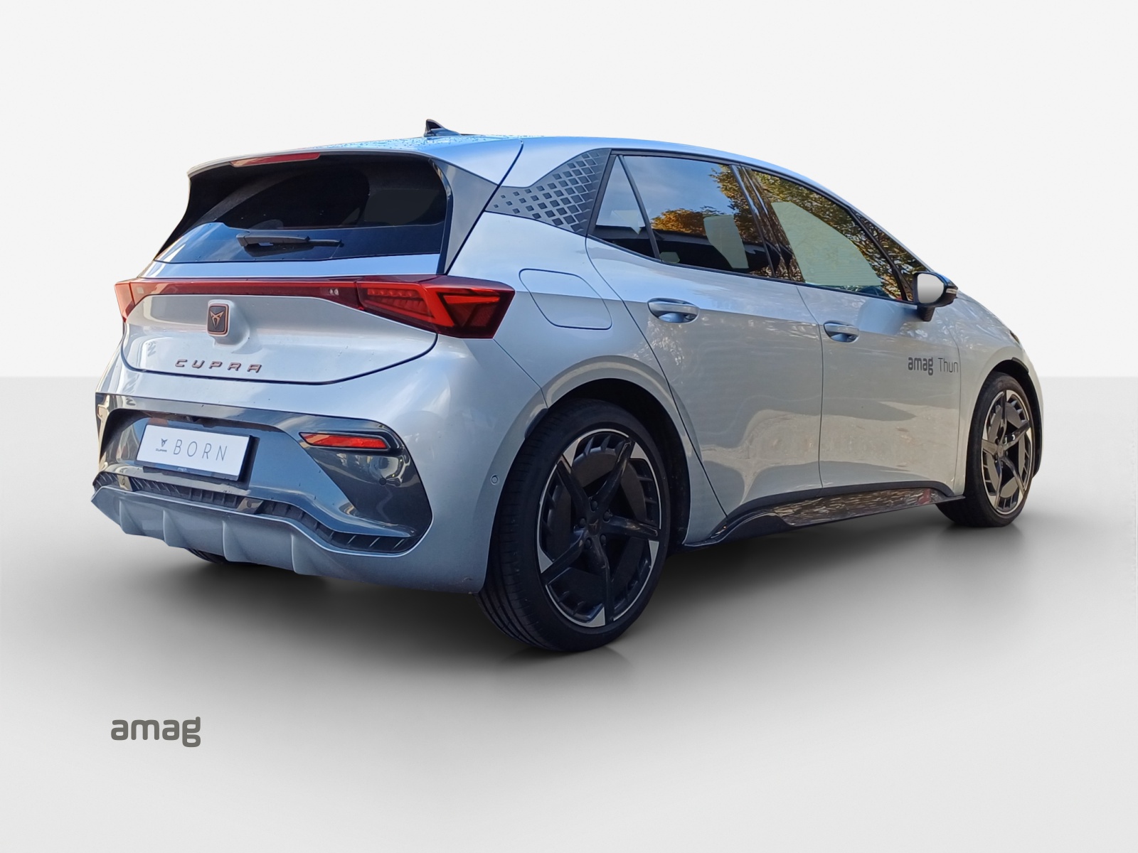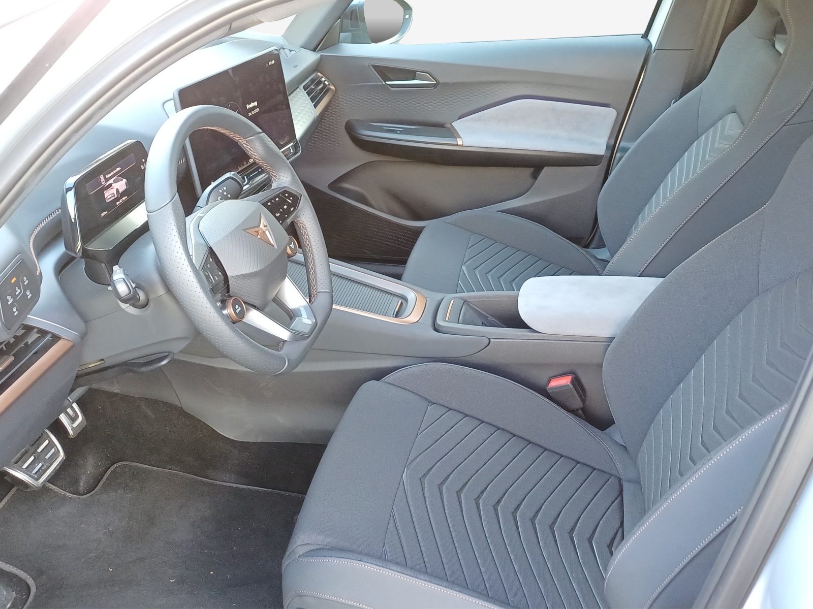 Serienausstattung 5.3" Full Digital Cockpit ABS, EBV elektronische Bremskraft-verteilung Airbag: Airbag Beifahrer deaktivierbar Airbag: Airbag Fahrer und Beifahrer Airbag: Kopfairbags vorne und hinten Airbag: Seitenairbags für Fahrer und Beifahrer Ambiente Innenraumbeleuchtung "Multicolor" mit 6 Farben Assist: Aufmerksamkeits- und Müdigkeitserkennung (ADA) Assist: Ausweichunterstützung / Abbiegeassistent Assist: Einparkhilfe vorne und hinten mit optischer Anzeige Assist: Lane assist (Spurhalteassistent) Assist: Regen-/Lichtsensor Assist: Traction Control (TCS) Assist: Verkehrszeichenerkennung Aussenspiegel elektrisch einstell-, beheiz- und einklappbar mit Beifahrerabsenkfunktion Aussenspiegel in Cosmo Grey, Türgriffe in Wagenfarbe CUPRA Drive Profile mit "driving experience button" Range, Comfort, Performance, CUPRA, Individual Dreipunkt-Automatiksicherheitsgurte auf allen Plätzen Elektrische Fensterheber vorne und hinten mit Komfortschaltung und Einklemmschutz Elektronisches Stabilitäts-Programm Garantie: Cupra 12 Jahre Gewährleistung gegen Karosserie-Durchrostung Garantie: Cupra 3 Jahre Lack-Gewährleistung Garantie: Cupra Garantie Batterie- Gewährleistung 8 Jahre oder 160000 KM auf 70% Batterieleistung. Garantie: Cupra Hersteller-Garantieverlängerung für das 3., 4. und 5. Jahr / max.100000 km Getriebe: 1-Gang Automatik Heckscheiben-Wisch-/Waschanlage mit Intervall Innenspiegel automatisch abblendbar Klima: 2-Zonen Climatronic Klima: Elektrische Luftzusatzheizung Lackierung: Uni-Lackierung Lenkrad: Beheizbares Ledermultifunktionslenkrad Licht: Drittes Bremslicht Licht: Durchgehende Full LED-Heckleuchten Licht: Full LED-Scheinwerfer für Abblend-und Fernlicht und Coming Home Funktion Licht: LED-Nebelscheinwerfer Media: 12,9" Infotainment (MIB3) Media: 2 USB C Anschlüsse hinten und vorne Media: Bluetooth-Freisprecheinrichtung Media: CUPRA Connect Online Infotainment für Navigationssystem Media: CUPRA Connect Safety & Services für Navigationssystem Media: DAB+ (Digital Audio Broadcasting) Pollenfilter (Staubfilter) Räder: Alufelgen 7.5J x 20", "HURRICANE" 31/3 in Sport Black "e-racer" Räder: Reifendruckkontrollsystem Servolenkung geschwindigkeitsabhängig Sitze: CUPRA Sport Schalensitze in Textil, schwarz "SEAQUAL" Sitze: Fahrersitz höhenverstellbar Sitze: Geteilt abklappbare Rücksitzlehne 1/3 - 2/3 Sitze: Kindersitzbefestigungssystem ISOFIX Sitze: Mittelarmlehne vorne Sonnenblende Fahrer und Beifahrerseite Wegfahrsperre elektronisch Zentralverriegelung "Keyless-Go"
