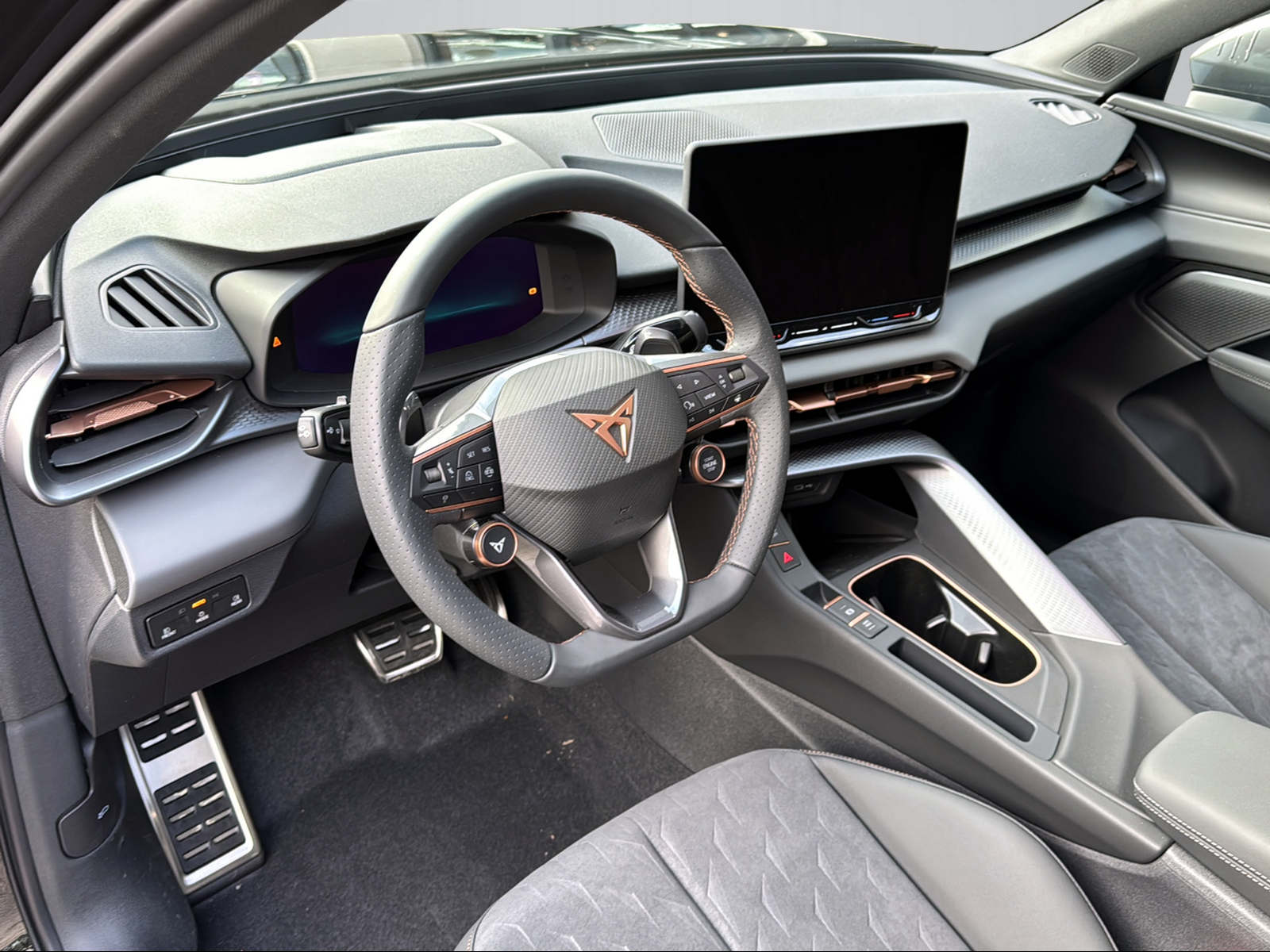 Équipement standard 3-Punkt-Sicherheitsgurte auf allen Plätzen ABS, EBV elektronische Bremskraft-verteilung Airbag: Airbag Beifahrer deaktivierbar Airbag: Airbag Fahrer und Beifahrer Airbag: Kopfairbags vorne und hinten Airbag: Seitenairbags für Fahrer und Beifahrer Assist: Aufmerksamkeits- und Müdigkeitserkennung (ADA) Assist: Ausweichunterstützung / Abbiegeassistent Assist: Automatische Distanzregelung ACC Assist: City Notbremsfunktion Assist: Einparkhilfe vorne und hinten Assist: Elektronische Parkbremse mit Auto Hold Funktion Assist: Lane assist (Spurhalteassistent) Assist: Multifunktionskamera Assist: Multikollisionsbremse Assist: Prädiktive Speedlimiter Assist: Traffic sign recognition (Verkehrszeichenerkennung) Assist: Umfeldüberwachungssystem "Front-Assist" Aussenspiegel mit LED-Umfeldbeleuchtung Beleuchtete Sonnenblende links mit abdeckbarem Spiegel und Lasche, rechts mit abdeckbarem Spiegel ESC mit EBA, DSR, XDS und Reifendruckkontrolle Elektrische Fensterheber vorne und hinten mit Komfortschaltung und Einklemmschutz Fahrwerk: CUPRA Sportfahrwerk Fahrwerk: Progressivlenkung Full Digital Cockpit 10.25" Fussmatten vorne und hinten Garantie: CUPRA Prolongation de garantie constructeur pour les 3ème, 4ème et 5ème années / Garantie: Cupra 12 ans de garantie contre perforation de la carrosserie Garantie: Cupra 3 ans de garantie pour la peinture Heckscheiben-Wisch-/Waschanlage mit Intervall Innenspiegel automatisch abblendbar Lackierung: Uni-Lackierung Licht: Drittes Bremslicht Licht: Durchgehende Full LED-Heckleuchten Licht: LED Heckleuchten mit beleuchtetem 3D CUPRA Logo Licht: LED-Heckleuchten mit dynamischem Blinklicht Licht: LED-Nebelscheinwerfer mit Cornering-Funktion Licht: LED-Scheinwerfer für Abblend- und Fernlicht Licht: Leuchtweitenregulierung dynamisch Licht: Nebelschlussleuchte Media: 12,9" Infotainment (MIB3) Media: 2 USB C Anschlüsse hinten und vorne Media: DAB+ (Digital Audio Broadcasting) Media: Mobiltelefon Freisprechanlage Bluetooth Mittelarmlehne vorne und hinten Mèdias: CUPRA Connect Remote & Access / CUPRA Connect Safety & Services Mèdias: CUPRA Connectivity Box Poignées couleur carrosserie Pyrotechnische Gurtstraffer und Gurtkraftbegrenzer Roues: Alufelgen 8J x 18", "ATOMIC" usiné en Dark Shadow Räder: Reifendruckkontrollsystem Rétroviseurs extérieurs réglables et chauffants électriquement Servolenkung mit geschwindigkeitsabhängiger Lenkkraftunterstützung Sitze: 3 verstellbare Kopfstützen hinten Sitze: CUPRA Sport Schalensitze in Textil, "DEEP OCEAN" "SEAQUAL" Sitze: Geteilt abklappbare Rücksitzlehne 1/3 - 2/3 Sitze: Kindersitzverankerung ISOFIX hinten Sitze: Vordersitze höhenverstellbar mit Lendenwirbelstütze Stopp - Start- und Rekuperationssystem Verrouillage centralisé "Keyless-Go" Volant: Volant multifonction en cuir avec palettes de changement de vitesse Wegfahrsperre elektronisch Zentralverriegelung mit Funkfernbedienung, 2 Funkschlüssel