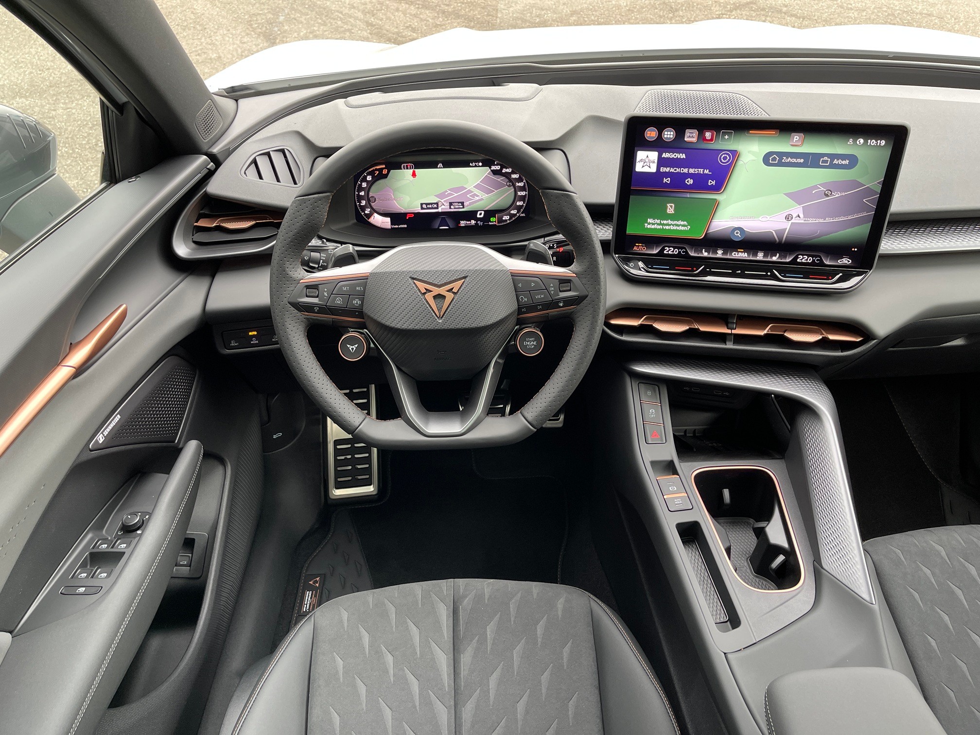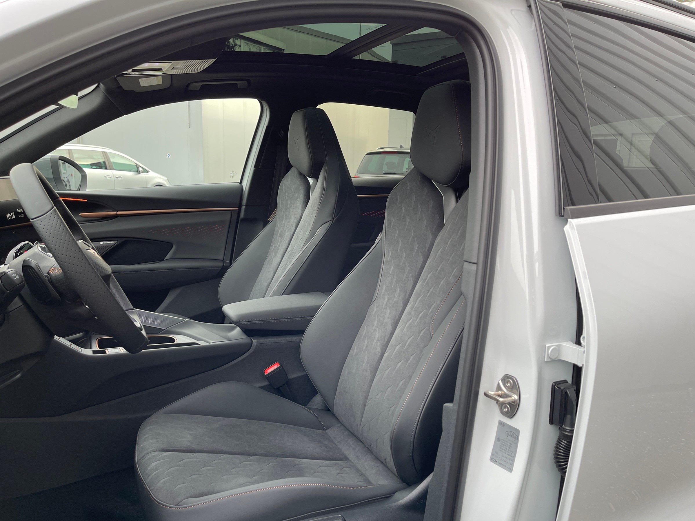 3-Punkt-Sicherheitsgurte auf allen Plätzen ABS, EBV elektronische Bremskraft-verteilung Airbag: Airbag Beifahrer deaktivierbar Airbag: Airbag Fahrer und Beifahrer Airbag: Kopfairbags vorne und hinten Airbag: Seitenairbags für Fahrer und Beifahrer Assist: Aufmerksamkeits- und Müdigkeitserkennung (ADA) Assist: Ausweichunterstützung / Abbiegeassistent Assist: Automatische Distanzregelung ACC Assist: City Notbremsfunktion Assist: Einparkhilfe vorne und hinten Assist: Elektronische Parkbremse mit Auto Hold Funktion Assist: Lane assist (Spurhalteassistent) Assist: Multifunktionskamera Assist: Multikollisionsbremse Assist: Prädiktive Speedlimiter Assist: Traffic sign recognition (Verkehrszeichenerkennung) Assist: Umfeldüberwachungssystem "Front-Assist" Aussenspiegel elektrisch einstell-, beheizbar Aussenspiegel mit LED-Umfeldbeleuchtung Beleuchtete Sonnenblende links mit abdeckbarem Spiegel und Lasche, rechts mit abdeckbarem Spiegel ESC mit EBA, DSR, XDS und Reifendruckkontrolle Elektrische Fensterheber vorne und hinten mit Komfortschaltung und Einklemmschutz Fahrwerk: CUPRA Sportfahrwerk Fahrwerk: Progressivlenkung Full Digital Cockpit 10.25" Fussmatten vorne und hinten Garantie: Cupra 12 Jahre Gewährleistung gegen Karosserie-Durchrostung Garantie: Cupra 3 Jahre Lack-Gewährleistung Garantie: Cupra Hersteller-Garantieverlängerung für das 3., 4. und 5. Jahr / max.100000 km Heckscheiben-Wisch-/Waschanlage mit Intervall Innenspiegel automatisch abblendbar Lackierung: Uni-Lackierung Lenkrad: Leder Multifunktionslenkrad mit Schaltwippen Licht: Drittes Bremslicht Licht: Durchgehende Full LED-Heckleuchten Licht: LED Heckleuchten mit beleuchtetem 3D CUPRA Logo Licht: LED-Heckleuchten mit dynamischem Blinklicht Licht: LED-Nebelscheinwerfer mit Cornering-Funktion Licht: LED-Scheinwerfer für Abblend- und Fernlicht Licht: Leuchtweitenregulierung dynamisch Licht: Nebelschlussleuchte Media: 12,9" Infotainment (MIB3) Media: 2 USB C Anschlüsse hinten und vorne Media: CUPRA Connect Remote & Access / CUPRA Connect Safety & Services Media: CUPRA Connectivity Box Media: DAB+ (Digital Audio Broadcasting) Media: Mobiltelefon Freisprechanlage Bluetooth Mittelarmlehne vorne und hinten Pyrotechnische Gurtstraffer und Gurtkraftbegrenzer Räder: Alufelgen 8J x 18", "ATOMIC DARK" Machined in Dark Shadow Räder: Reifendruckkontrollsystem Servolenkung mit geschwindigkeitsabhängiger Lenkkraftunterstützung Sitze: 3 verstellbare Kopfstützen hinten Sitze: CUPRA Sport Schalensitze in Textil, "DEEP OCEAN" "SEAQUAL" Sitze: Geteilt abklappbare Rücksitzlehne 1/3 - 2/3 Sitze: Kindersitzverankerung ISOFIX hinten Sitze: Vordersitze höhenverstellbar mit Lendenwirbelstütze Stopp - Start- und Rekuperationssystem Wegfahrsperre elektronisch Zentralverriegelung "Keyless-Go" Zentralverriegelung mit Funkfernbedienung, 2 Funkschlüssel