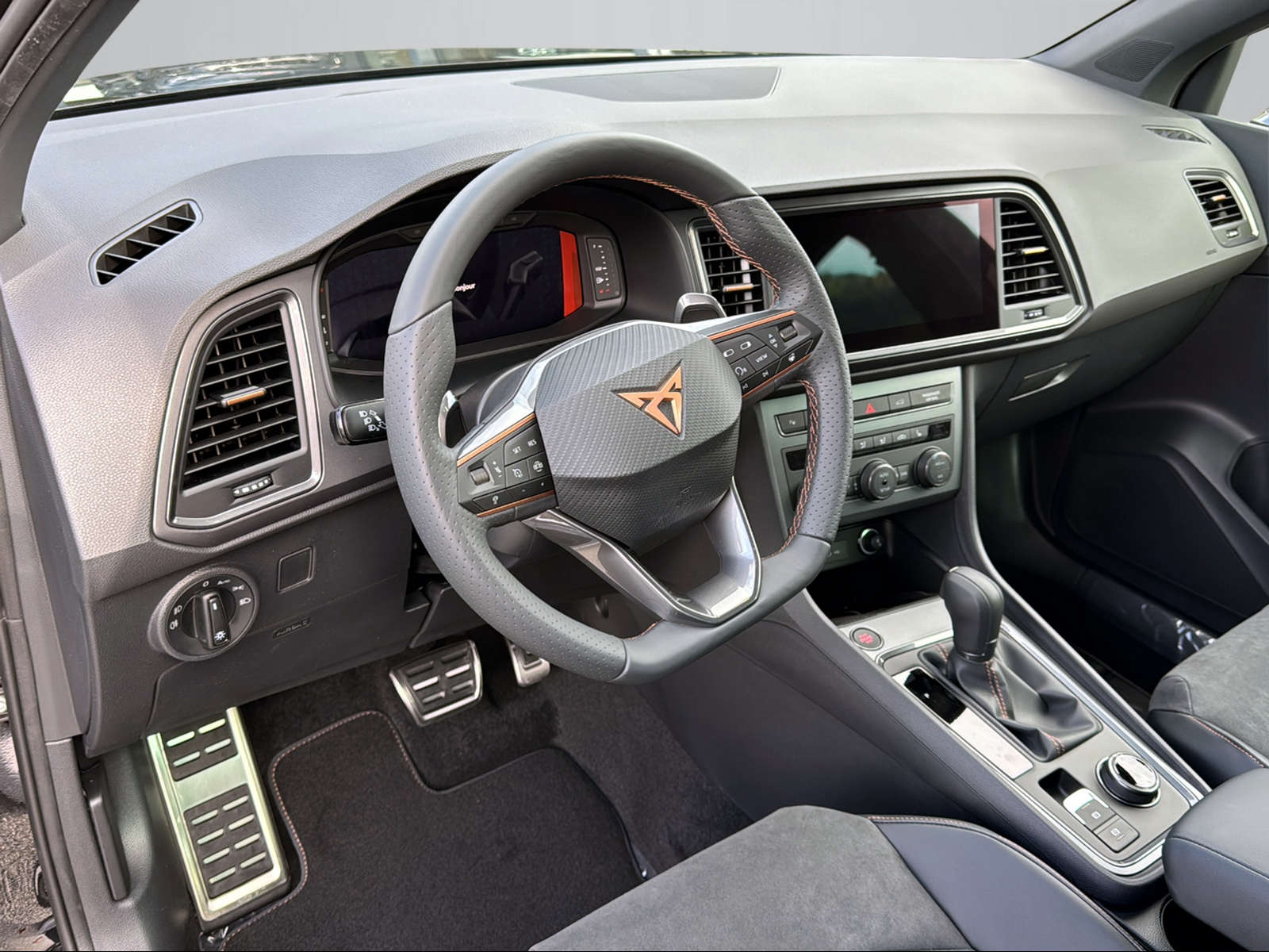 Équipement standard ABS, EBV elektronische Bremskraft-verteilung Abgedunkelte Scheiben ab B-Säule hinten Airbag: Airbag Beifahrer deaktivierbar Airbag: Airbag Fahrer und Beifahrer Airbag: Knieairbag auf der Fahrerseite Airbag: Kopfairbags vorne und hinten Airbag: Seitenairbags für Fahrer und Beifahrer Assist: Aufmerksamkeits- und Müdigkeitserkennung (ADA) Assist: Einparkhilfe vorne und hinten mit optischer Anzeige Assist: Elektronische Parkbremse mit Auto Hold Funktion Assist: Lane assist (Spurhalteassistent) Assist: Multifunktionskamera Assist: Multikollisionsbremse Assist: Parklenkassistent Assist: Regen-/Lichtsensor Assist: Traffic sign recognition (Verkehrszeichenerkennung) Aussenspiegel elektrisch einstell-, beheiz- und einklappbar Aussenspiegel mit Beifahrerspiegelabsenkung Aussenspiegel mit LED-Umfeldbeleuchtung Aussenspiegel und Türgriffe in Wagenfarbe Automatisch abblendender Innenrückspiegel Beleuchtete Sonnenblende links mit abdeckbarem Spiegel und Lasche, rechts mit abdeckbarem Spiegel CUPRA Drive Profile mit "driving experience button" Comfort, Sport, CUPRA, Individual, Snow, Offroad Clima: Climatronic 3 zones Dekor: Dekorblenden in Grau glänzend Dreipunkt-Automatiksicherheitsgurte auf allen Plätzen Décor: Contre-portes avec Ambient light ESC mit EBA, DSR, XDS und Reifendruckkontrolle Einstiegsleisten in Aluminium Elektrische Fensterheber vorne und hinten mit Komfortschaltung und Einklemmschutz Fahrwerk: Progressivlenkung Fussmatten vorne und hinten Garantie: CUPRA Prolongation de garantie constructeur pour les 3ème, 4ème et 5ème années / Garantie: Cupra 12 ans de garantie contre perforation de la carrosserie Garantie: Cupra 3 ans de garantie pour la peinture Heckscheiben-Wisch-/Waschanlage mit Intervall Lackierung: Uni-Lackierung Licht: Coming-home-Funktion Licht: Drittes Bremslicht Licht: LED-Heckleuchten mit dynamischem Blinklicht Licht: LED-Nebelscheinwerfer mit Cornering-Funktion Licht: LED-Scheinwerfer für Abblend- und Fernlicht Licht: Nebelschlussleuchte Media: 2 USB C Anschlüsse hinten und vorne Media: 9.2" 3D Infotainment (MIB3) Media: CUPRA Connect Online Infotainment für Navigationssystem Media: CUPRA Connect Remote & Access für Navigationssystem Media: CUPRA Connect Safety & Services für Navigationssystem Media: CUPRA FullLink für Navigationssystem Media: CUPRA Navigationssystem Media: DAB+ (Digital Audio Broadcasting) Media: Kartenmaterial ''Europa'' Media: Mobiltelefon Freisprechanlage Bluetooth Pack: Pack d'assistance a la conduite M Pyrotechnische Gurtstraffer und Gurtkraftbegrenzer Radlaufblenden in Wagenfarbe Roues: Jantes en alu 8J x 19", Machined Sport Black/Silver Räder: Reifenreparatur-Set (Tire Fit) Schlüsselloses Schliess- und Startsystem (KESSY) Servolenkung mit geschwindigkeitsabhängiger Lenkkraftunterstützung Sitze: 2 verstellbare Kopfstützen vorne und 3 hinten Sitze: CUPRA Sportschalensitze in Dinamica "Black" Sitze: Easy Backseat Release (Rücksitzentriegelung im Kofferraum) Sitze: Geteilt abklappbare Rücksitzlehne 1/3 - 2/3 Sitze: Kindersitzverankerung ISOFIX hinten Sitze: Mittelarmlehne hinten Sitze: Mittelarmlehne vorne Sportabgasanlage mit 2-fach Endrohr Stopp - Start- und Rekuperationssystem Volant: Volant multifonction chauffant en cuir avec Tiptronic Wegfahrsperre elektronisch Zentralverriegelung mit Funkfernbedienung, 2 Funkschlüssel