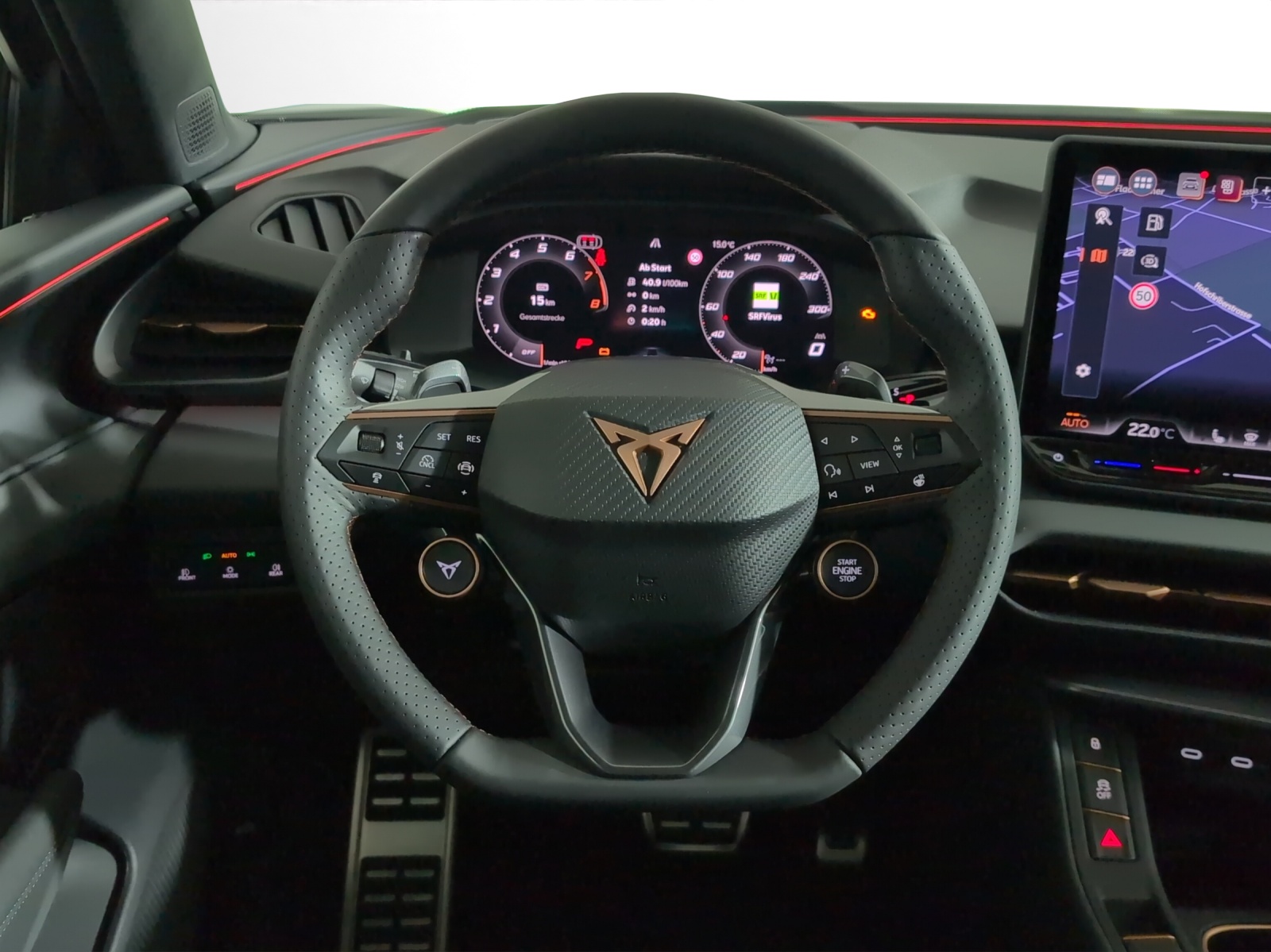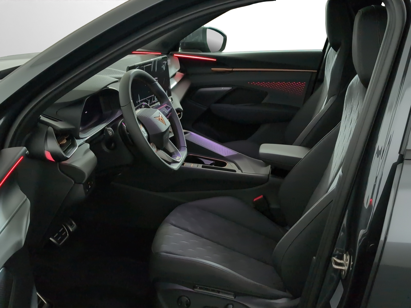 3-Punkt-Sicherheitsgurte auf allen Plätzen ABS, EBV elektronische Bremskraft-verteilung Abgedunkelte Scheiben ab B-Säule hinten Airbag: Airbag Beifahrer deaktivierbar Airbag: Airbag Fahrer und Beifahrer Airbag: Kopfairbags vorne und hinten Airbag: Seitenairbags für Fahrer und Beifahrer Alarmanlage mit Innenraumüberwachung Assist: Aufmerksamkeits- und Müdigkeitserkennung (ADA) Assist: Ausweichunterstützung / Abbiegeassistent Assist: Automatische Distanzregelung ACC Assist: City Notbremsfunktion Assist: Einparkhilfe vorne und hinten mit Rückfahrkamera Assist: Elektronische Parkbremse mit Auto Hold Funktion Assist: Lane assist (Spurhalteassistent) Assist: Multifunktionskamera Assist: Multikollisionsbremse Assist: Prädiktive Speedlimiter Assist: Traffic sign recognition (Verkehrszeichenerkennung) Assist: Umfeldüberwachungssystem "Front-Assist" Aussenspiegel elektrisch einstell-, beheiz- und einklappbar Aussenspiegel mit LED-Umfeldbeleuchtung Beleuchtete Sonnenblende links mit abdeckbarem Spiegel und Lasche, rechts mit abdeckbarem Spiegel ESC mit EBA, DSR, XDS und Reifendruckkontrolle Einstiegsleisten beleuchtet Elektrische Fensterheber vorne und hinten mit Komfortschaltung und Einklemmschutz Fahrwerk: Adaptive Fahrwerksregelung DCC Fahrwerk: CUPRA Sportfahrwerk Fahrwerk: Progressivlenkung Full Digital Cockpit 10.25" Fussmatten vorne und hinten Garantie: Cupra 12 Jahre Gewährleistung gegen Karosserie-Durchrostung Garantie: Cupra 3 Jahre Lack-Gewährleistung Garantie: Cupra Hersteller-Garantieverlängerung für das 3., 4. und 5. Jahr / max.100000 km Heckklappe elektrisch öffnend und schliessend "Virtual Pedal" Heckscheiben-Wisch-/Waschanlage mit Intervall Innenspiegel automatisch abblendbar Klima: 3-Zonen Climatronic mit Fondraumbedienung LED-Ambientebeleuchtung Smart Wraparound, inkl. Funktionsanzeige Lackierung: Uni-Lackierung Lenkrad: Leder Multifunktionslenkrad mit Schaltwippen, beheizbar Licht: Drittes Bremslicht Licht: Durchgehende Full LED-Heckleuchten Licht: LED Heckleuchten mit beleuchtetem 3D CUPRA Logo Licht: LED-Heckleuchten mit dynamischem Blinklicht Licht: LED-Nebelscheinwerfer mit Cornering-Funktion Licht: LED-Scheinwerfer für Abblend- und Fernlicht Licht: Leuchtweitenregulierung dynamisch Licht: Nebelschlussleuchte Media: 12,9" Infotainment (MIB3) Media: 2 USB C Anschlüsse hinten und vorne Media: CUPRA Connect Remote & Access / CUPRA Connect Safety & Services Media: CUPRA Connectivity Box Media: DAB+ (Digital Audio Broadcasting) Media: Mobiltelefon Freisprechanlage Bluetooth Mittelarmlehne vorne und hinten Pyrotechnische Gurtstraffer und Gurtkraftbegrenzer Räder: Alufelgen 8.5J x 19", "COSMIC" Machined in Sport Black Matt & Silver Räder: Performance Reifen Räder: Reifendruckkontrollsystem Schlüsselloses Schliess- und Startsystem (KESSY Advance) Servolenkung mit geschwindigkeitsabhängiger Lenkkraftunterstützung Sitze: 3 verstellbare Kopfstützen hinten Sitze: CUPRA Sport Schalensitze in Textil, "DEEP OCEAN" "SEAQUAL" Sitze: Geteilt abklappbare Rücksitzlehne 1/3 - 2/3 Sitze: Geteilt abklappbare Rücksitzlehne mit Mittelarmlehne Sitze: Kindersitzverankerung ISOFIX hinten Sitze: Vordersitze höhenverstellbar mit Lendenwirbelstütze Stopp - Start- und Rekuperationssystem Wegfahrsperre elektronisch Zentralverriegelung mit Funkfernbedienung, 2 Funkschlüssel
