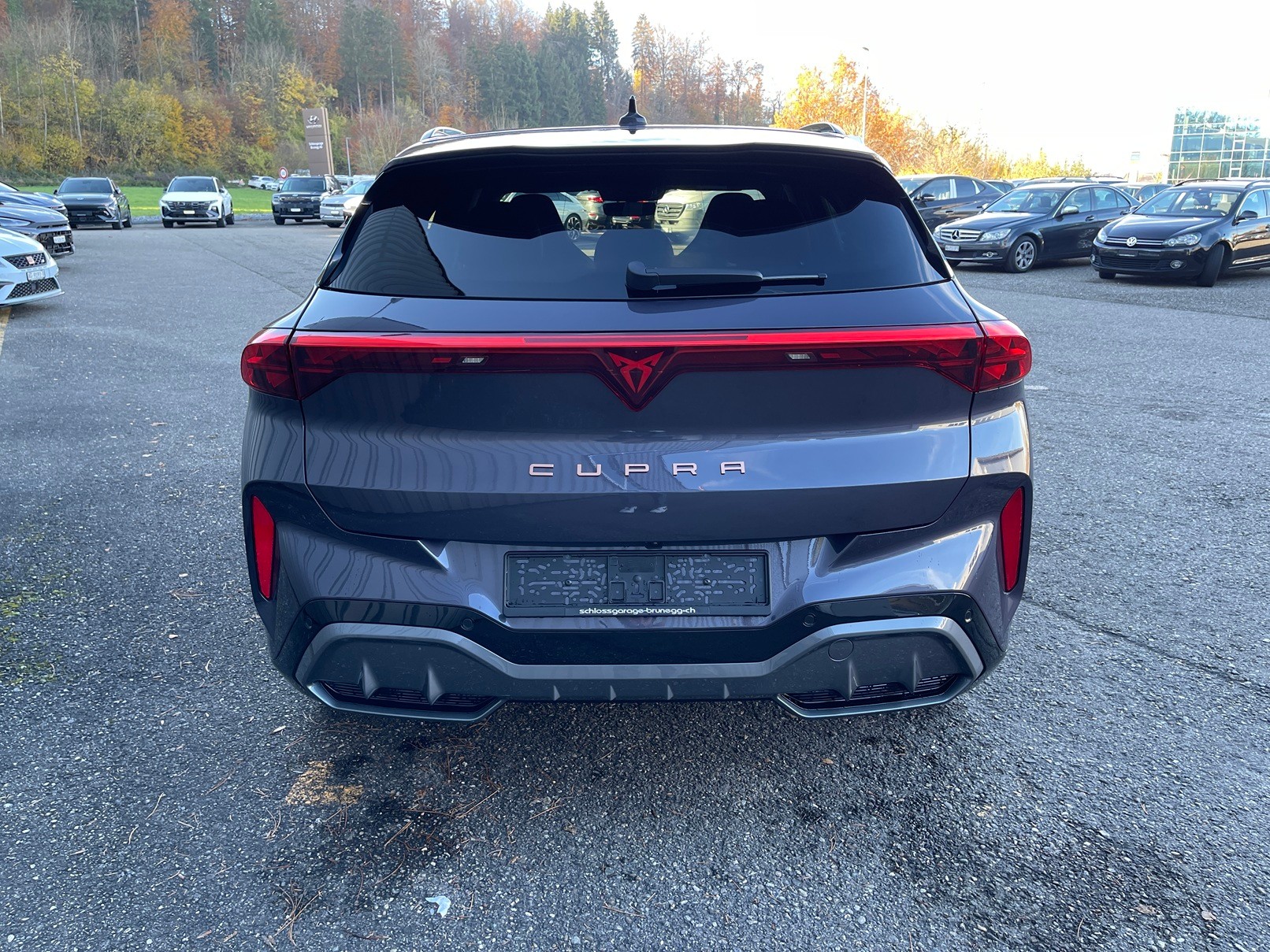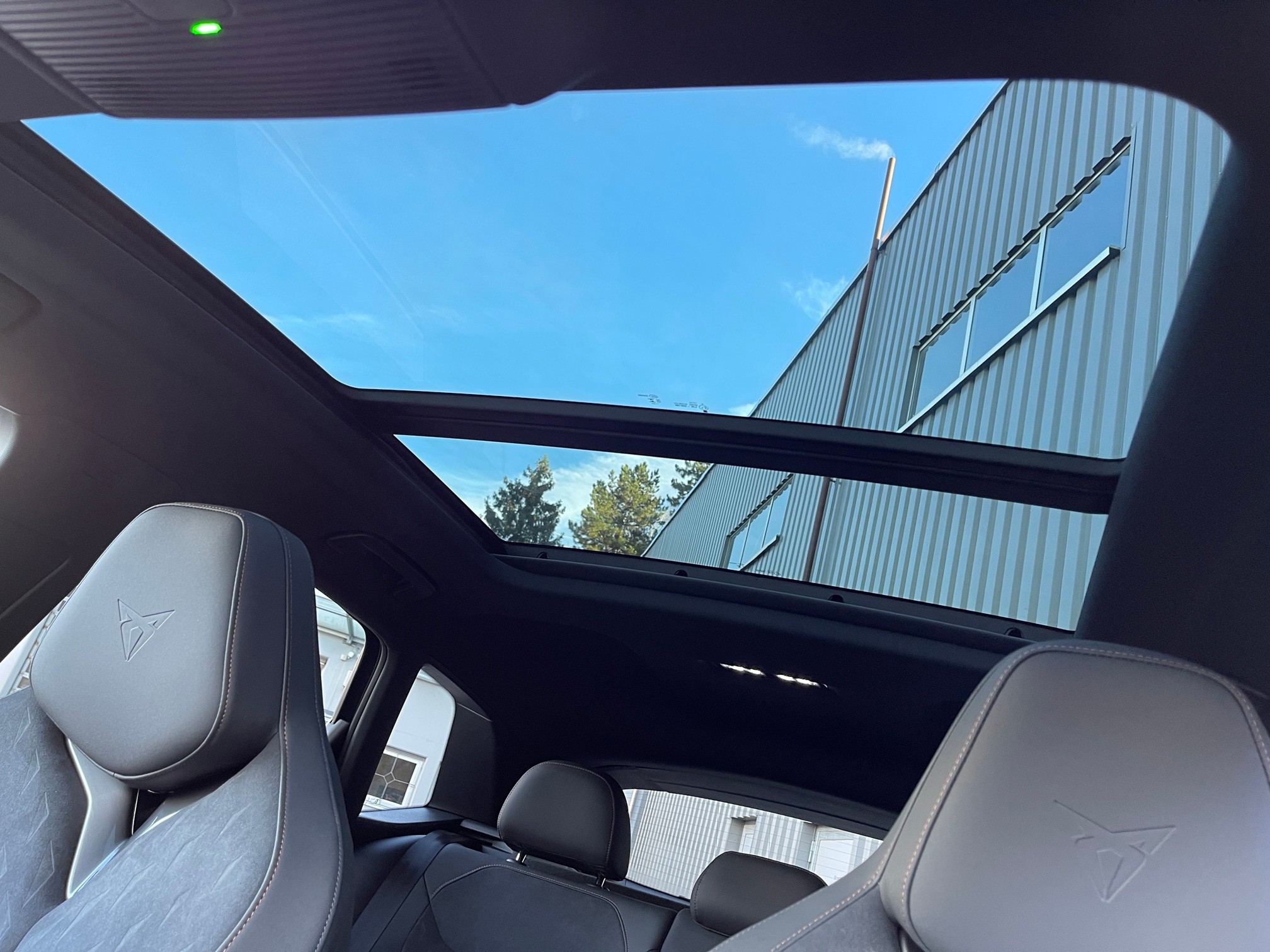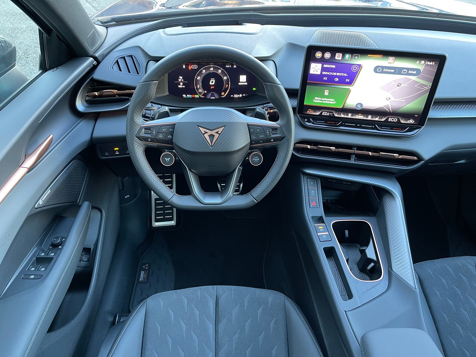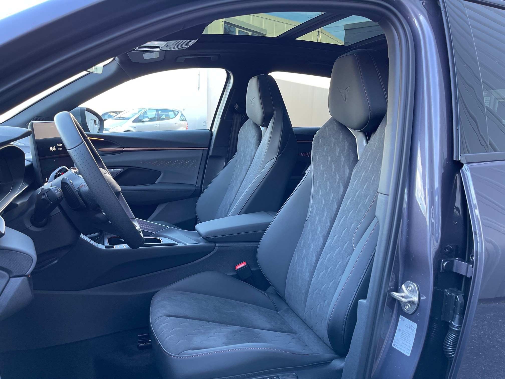 3-Punkt-Sicherheitsgurte auf allen Plätzen ABS, EBV elektronische Bremskraft-verteilung Abgedunkelte Scheiben ab B-Säule hinten Airbag: Airbag Beifahrer deaktivierbar Airbag: Airbag Fahrer und Beifahrer Airbag: Kopfairbags vorne und hinten Airbag: Seitenairbags für Fahrer und Beifahrer Alarmanlage mit Innenraumüberwachung Assist: Aufmerksamkeits- und Müdigkeitserkennung (ADA) Assist: Ausweichunterstützung / Abbiegeassistent Assist: Automatische Distanzregelung ACC Assist: City Notbremsfunktion Assist: Einparkhilfe vorne und hinten mit Rückfahrkamera Assist: Elektronische Parkbremse mit Auto Hold Funktion Assist: Lane assist (Spurhalteassistent) Assist: Multifunktionskamera Assist: Multikollisionsbremse Assist: Prädiktive Speedlimiter Assist: Traffic sign recognition (Verkehrszeichenerkennung) Assist: Umfeldüberwachungssystem "Front-Assist" Aussenspiegel elektrisch einstell-, beheiz- und einklappbar Aussenspiegel mit LED-Umfeldbeleuchtung Beleuchtete Sonnenblende links mit abdeckbarem Spiegel und Lasche, rechts mit abdeckbarem Spiegel ESC mit EBA, DSR, XDS und Reifendruckkontrolle Einstiegsleisten beleuchtet Elektrische Fensterheber vorne und hinten mit Komfortschaltung und Einklemmschutz Fahrwerk: Adaptive Fahrwerksregelung DCC Fahrwerk: CUPRA Sportfahrwerk Fahrwerk: Progressivlenkung Full Digital Cockpit 10.25" Fussmatten vorne und hinten Garantie: Cupra 12 Jahre Gewährleistung gegen Karosserie-Durchrostung Garantie: Cupra 3 Jahre Lack-Gewährleistung Garantie: Cupra Garantie Batterie- Gewährleistung 8 Jahre oder 160000 KM auf 70% Batterieleistung. Garantie: Cupra Hersteller-Garantieverlängerung für das 3., 4. und 5. Jahr / max.100000 km Heckklappe elektrisch öffnend und schliessend "Virtual Pedal" Heckscheiben-Wisch-/Waschanlage mit Intervall Innenspiegel automatisch abblendbar Klima: 3-Zonen Climatronic mit Fondraumbedienung LED-Ambientebeleuchtung Smart Wraparound, inkl. Funktionsanzeige Lackierung: Uni-Lackierung Ladekabel für Haushaltssteckdose (Mode 2) Lenkrad: Leder Multifunktionslenkrad mit Schaltwippen, beheizbar Licht: Drittes Bremslicht Licht: Durchgehende Full LED-Heckleuchten Licht: LED Heckleuchten mit beleuchtetem 3D CUPRA Logo Licht: LED-Heckleuchten mit dynamischem Blinklicht Licht: LED-Nebelscheinwerfer mit Cornering-Funktion Licht: LED-Scheinwerfer für Abblend- und Fernlicht Licht: Leuchtweitenregulierung dynamisch Licht: Nebelschlussleuchte Media: 12,9" Infotainment (MIB3) Media: 2 USB C Anschlüsse hinten und vorne Media: CUPRA Connect Remote & Access / CUPRA Connect Safety & Services Media: CUPRA Connectivity Box Media: DAB+ (Digital Audio Broadcasting) Media: Mobiltelefon Freisprechanlage Bluetooth Mittelarmlehne vorne und hinten Pyrotechnische Gurtstraffer und Gurtkraftbegrenzer Räder: Alufelgen 8.5J x 19", "COSMIC" Machined in Sport Black Matt & Silver Räder: Reifendruckkontrollsystem Schlüsselloses Schliess- und Startsystem (KESSY Advance) Servolenkung mit geschwindigkeitsabhängiger Lenkkraftunterstützung Sitze: 3 verstellbare Kopfstützen hinten Sitze: CUPRA Sport Schalensitze in Textil, "DEEP OCEAN" "SEAQUAL" Sitze: Geteilt abklappbare Rücksitzlehne 1/3 - 2/3 Sitze: Geteilt abklappbare Rücksitzlehne mit Mittelarmlehne Sitze: Kindersitzverankerung ISOFIX hinten Sitze: Vordersitze höhenverstellbar mit Lendenwirbelstütze Stopp - Start- und Rekuperationssystem Wegfahrsperre elektronisch Zentralverriegelung mit Funkfernbedienung, 2 Funkschlüssel