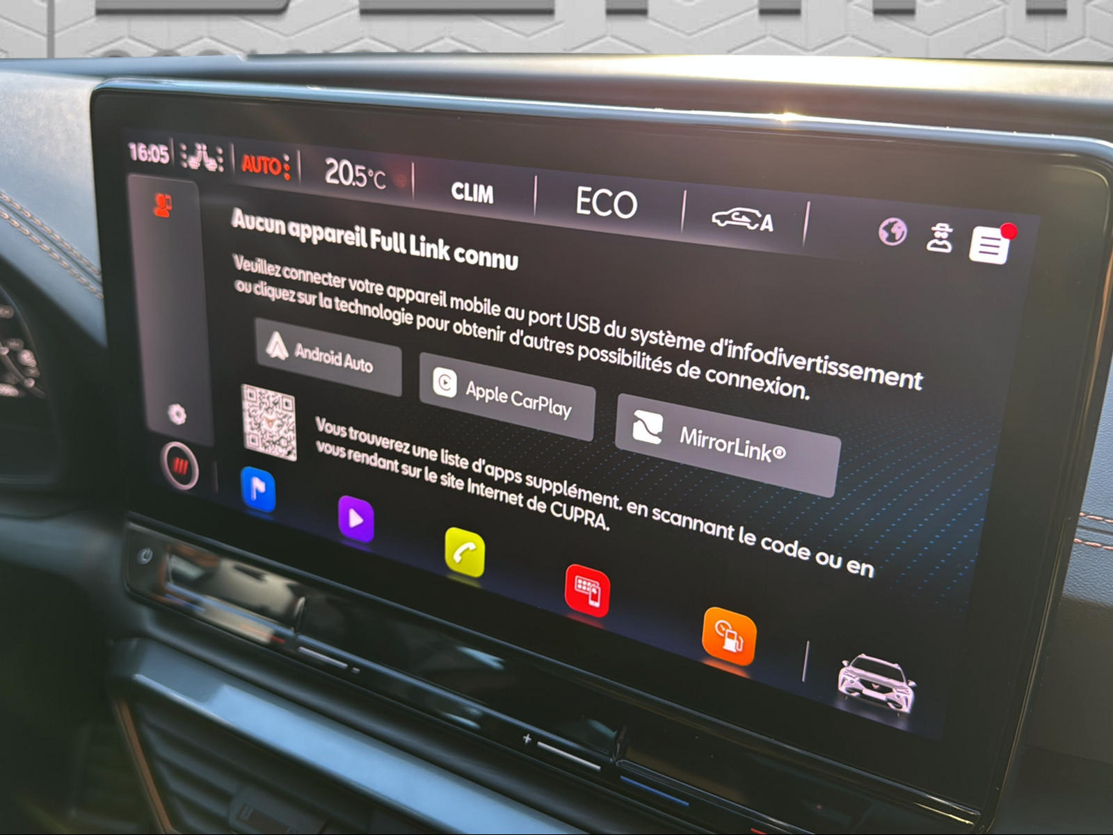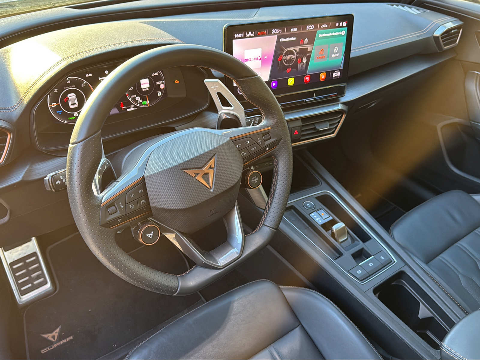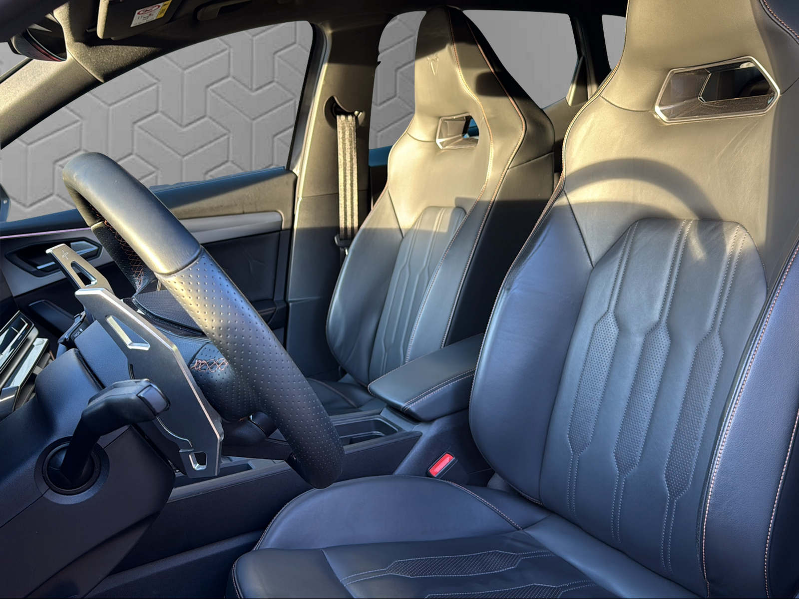 ABS, EBV elektronische Bremskraft-verteilung Abgedunkelte Scheiben ab B-Säule hinten Airbag: Airbag Beifahrer deaktivierbar Airbag: Airbag Fahrer und Beifahrer Airbag: Kopfairbags vorne und hinten Airbag: Seitenairbags für Fahrer und Beifahrer Ancrage de siège enfant ISOFIX (sièges arrières ext.) Assist: City Notbremsfunktion Assist: Contrôle de distance de parcage AV et AR avec contrôle optique Assist: Détecteur de pluie et de lumière Assist: Elektronische Parkbremse mit Auto Hold Funktion Assist: Multifunktionskamera Assist: Multikollisionsbremse Assist: PreCrash Sicherheitssystem Assist: Système de surveillance de l'environneme Front Assist Assist: Tiredness detection (détecteur de fatigue) Assit: Aide au stationnement Aussenspiegel elektrisch einstell-, beheiz- und einklappbar Aussenspiegel mit LED-Umfeldbeleuchtung Beleuchtete Sonnenblende links mit abdeckbarem Spiegel und Lasche, rechts mit abdeckbarem Spiegel CUPRA Drive Profile avec driving experience button Comfort, Sport, CUPRA, Individual, Snow, Offroad Ceintures de sécurité automatiques à trois points sur tous les sièges Cockpit numérique complet Câble de charge pour prise domestique (mode 2) Câble de chargement (Mode 3) Deux orifices de gaz d'échappement en cuivre ESC mit EBA, DSR, XDS und Reifendruckkontrolle Elektrische Fensterheber vorne und hinten mit Komfortschaltung und Einklemmschutz Fahrwerk: Adaptive Fahrwerksregelung DCC Fahrwerk: Progressivlenkung Garantie: Cupra 12 ans de garantie contre perforation de la carrosserie Garantie: Cupra 2 ans de garantie, kilométrage illimité Garantie: Cupra 3 ans de garantie pour la peinture Gasoline Particule Filter Heckscheiben-Wisch-/Waschanlage mit Intervall Klima: 3-Zonen Climatronic mit Fondraumbedienung Lackierung: Uni-Lackierung Licht: Durchgehende Full LED-Heckleuchten Licht: LED-Heckleuchten mit dynamischem Blinklicht Licht: LED-Nebelscheinwerfer mit Cornering-Funktion Licht: LED-Scheinwerfer für Abblend- und Fernlicht Licht: Leuchtweitenregulierung dynamisch Lumière: Fonction Coming-home Media: 2 USB C Anschlüsse hinten und vorne Media: CUPRA Navigationssystem Media: DAB+ (Digital Audio Broadcasting) Media: Mobiltelefon Freisprechanlage Bluetooth Mittelarmlehne vorne und hinten Mèdias: 12" 3D Infotainment (MIB3) Mèdias: CUPRA Connect Online Infotainment pour navigation Mèdias: CUPRA Connect Remote & Access pour navigation Mèdias: Cartographie "Europe" Pack: Paquet systèmes d'assitance au conducteur XL pour navigation Poignées couleur carrosserie Prise de 230 Volt dans la coffre et 12 Volt dans la console central Pyrotechnische Gurtstraffer und Gurtkraftbegrenzer Roues: jantes en alliage 8J x 19 "," EXCLUSIVE "38/3 usinées noir mat / argent Räder: Reifendruck-Kontrollanzeige Räder: Reifenreparatur-Set (Tire Fit) Rétroviseur intérieur à position jour/nuit automatique Rétroviseurs extérieurs avec rétroviseur du passager avant abaissable Servolenkung mit geschwindigkeitsabhängiger Lenkkraftunterstützung Sitze: Geteilt abklappbare Rücksitzlehne 1/3 - 2/3 Sitze: Vordersitze höhenverstellbar mit Lendenwirbelstütze Sièges: 2 appuie-têtes réglables à lavant et 3 à larrière Sièges: Dossier de banquette rabattable séparément 1/3 - 2/3 Sièges: Sièges baquets CUPRA Sport en "Sharp textile black" Stopp - Start- und Rekuperationssystem Système de commencement et de fermeture KESSY Tapis de sol avant et arrière Volant: Volant multifonction chauffant en cuir avec palettes de changement de vitesse Wegfahrsperre elektronisch Zentralverriegelung mit Funkfernbedienung, 2 Funkschlüssel Éclairage de l'habitacle LED avec Eclairage d'ambiance Wraparound