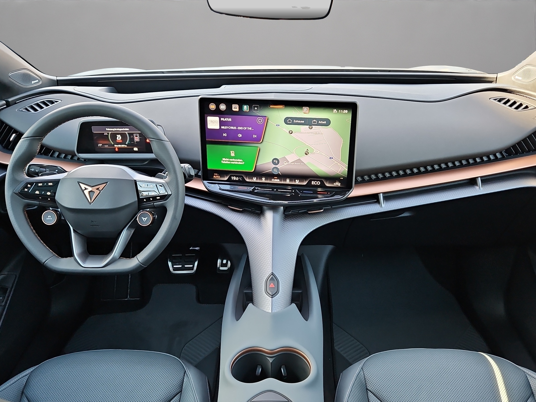5.3" Full Digital Cockpit Abgedunkelte Scheiben ab B-Säule hinten Airbag: Airbag Beifahrer deaktivierbar Airbag: Airbag Fahrer und Beifahrer Airbag: Seitenairbags für Fahrer und Beifahrer Alarmanlage mit Innenraumüberwachung Assist: Aufmerksamkeits- und Müdigkeitserkennung (ADA) Assist: Ausweichunterstützung / Abbiegeassistent Assist: Exit Assist (Ausparkassistent) Assist: Exit Warning (Ausstiegswarner) Assist: Intelligenter Geschwindigkeitsassistent Assist: Parklenkassistent RPA (Remote Park Assist) Assist: PreCrash Sicherheitssystem Assist: Prädiktive automatische Distanzregelung ACC Assist: Regen-/Lichtsensor Assist: Side Assist (Spurwechselassistent) Assist: Top View Camera (Rundumblick) Assist: Traction Control (TCS) Assist: Traffic sign recognition (Verkehrszeichenerkennung) Assist: eCall Notruffunktion Augmented Reality Head-up-Display Aussenspiegel elektrisch einstell-, beheiz- und einklappbar mit Beifahrerabsenkfunktion- Automatisch abblendender Innenrückspiegel Dreipunkt-Automatiksicherheitsgurte auf allen Plätzen Einstiegsleisten beleuchtet Elektrische Fensterheber vorne und hinten mit Komfortschaltung und Einklemmschutz Elektronisches Stabilitäts-Programm (ESP) Fahrwerk: Adaptive Fahrwerksregelung DCC Garantie: Cupra 12 Jahre Gewährleistung gegen Karosserie-Durchrostung Garantie: Cupra 3 Jahre Lack-Gewährleistung Garantie: Cupra Garantie 2 Jahre ohne Kilometerbegrenzung Garantie: Cupra Hersteller-Garantieverlängerung für das 3., 4. und 5. Jahr / max.100000 km Getriebe: 1-Gang Automatik Heckklappe elektrisch öffnend und schliessend "Virtual Pedal" Klima: 3-Zonen Climatronic mit Fondraumbedienung LED Ambientebeleuchtung "IMMERSIVE" Lackierung: Uni-Lackierung Lenkrad: Supersportlenkrad mit Drive Profile-Knopfsystem,beheizbar Licht: Drittes Bremslicht Licht: LED Heckleuchten mit beleuchtetem 3D CUPRA Logo Licht: Matrix LED Fernlicht Licht: Matrix LED Scheinwerfer Licht: Nebelschlussleuchte Media: 15" Infotainment (MIB3) Media: 2 USB C Anschlüsse hinten und vorne Media: Bluetooth-Freisprecheinrichtung Media: CUPRA Connect Online Infotainment Media: CUPRA Connect Remote & Access Media: CUPRA Connect Safety & Services Media: CUPRA Navigationssystem Media: DAB+ (Digital Audio Broadcasting) Media: SENNHEISER Sound System mit 12 High-End-Lautsprecher inkl. 300 Watt Subwoofer Media: Wireless Charger zur induktiven Smartphone Ladung Räder: Alufelgen 9J x 21", "Etna" Machined Sport in Black/Copper Räder: Alufelgen 9J x 21", "Katla" Machined Sport in Black/Copper Räder: Reifendruckkontrollsystem Schlüsselloses Schliess- und Startsystem (KESSY Advance) Servolenkung geschwindigkeitsabhängig Sitze: CUPRA CUPBucket Sportschalensitze in Leder "Enceladus Grey" Sitze: Elektrische Sitzverstellung mit Memory-Funktion für Fahrer- und Beifahrerseite Sitze: Geteilt abklappbare Rücksitzlehne mit Mittelarmlehne und Durchlademöglichkeit Sitze: Kindersitzbefestigungssystem ISOFIX Sitze: Kopfstützen hinten höhenverstellbar Sitze: Kopfstützen vorne (integrierte) Sitze: Lendenwirbelstütze Fahrer- und Beifahrerseite elektrisch einstellbar Sitze: Sitzbelüftung für Vordersitze Sitze: Sitzheizung für Vorder- und Rücksitze, getrennt regelbar Sitze: Vordersitze höhenverstellbar Vorbereitung für Anhängevorrichtung Wegfahrsperre elektronisch Zentralverriegelung mit Fernbedienung
