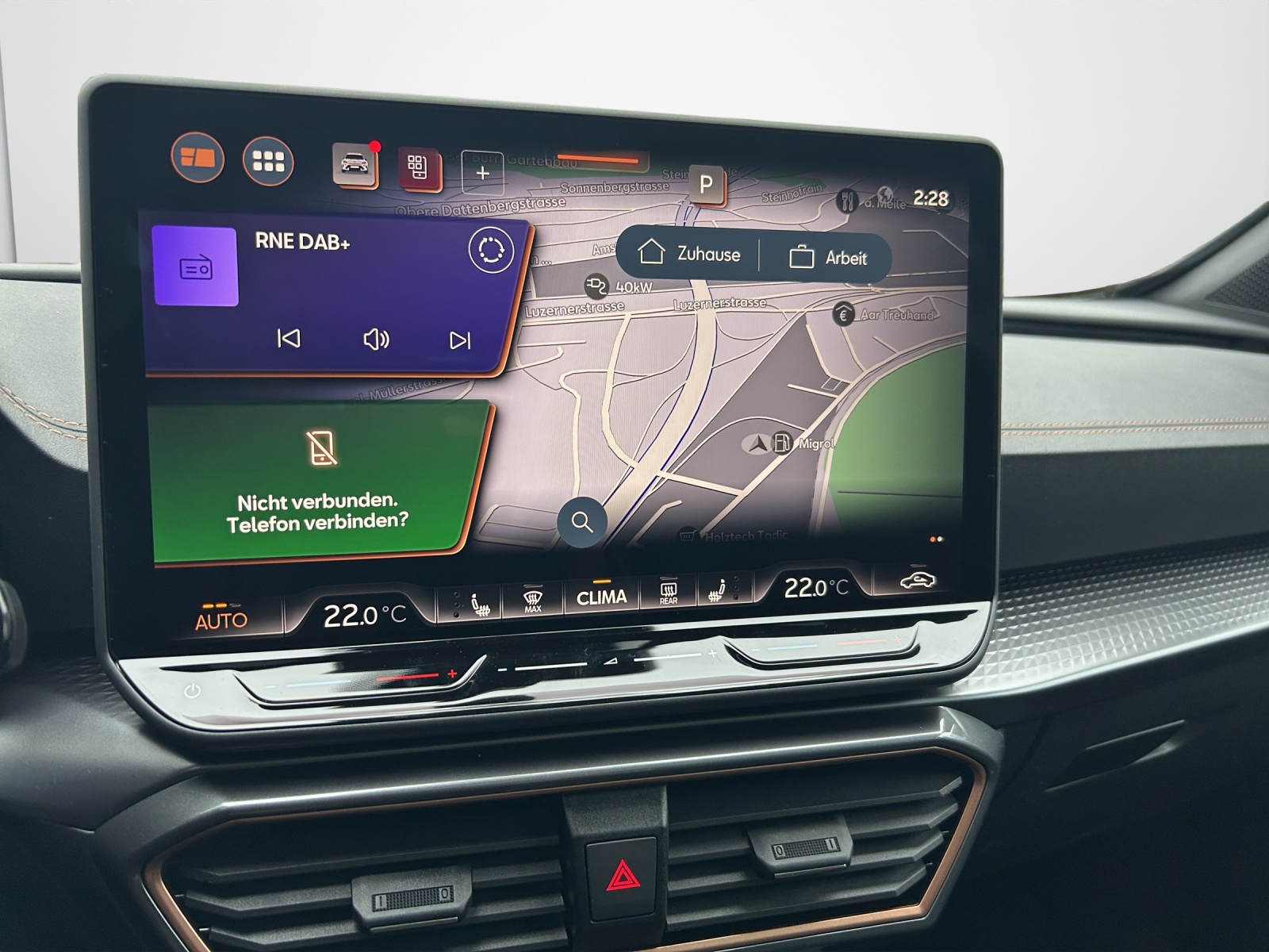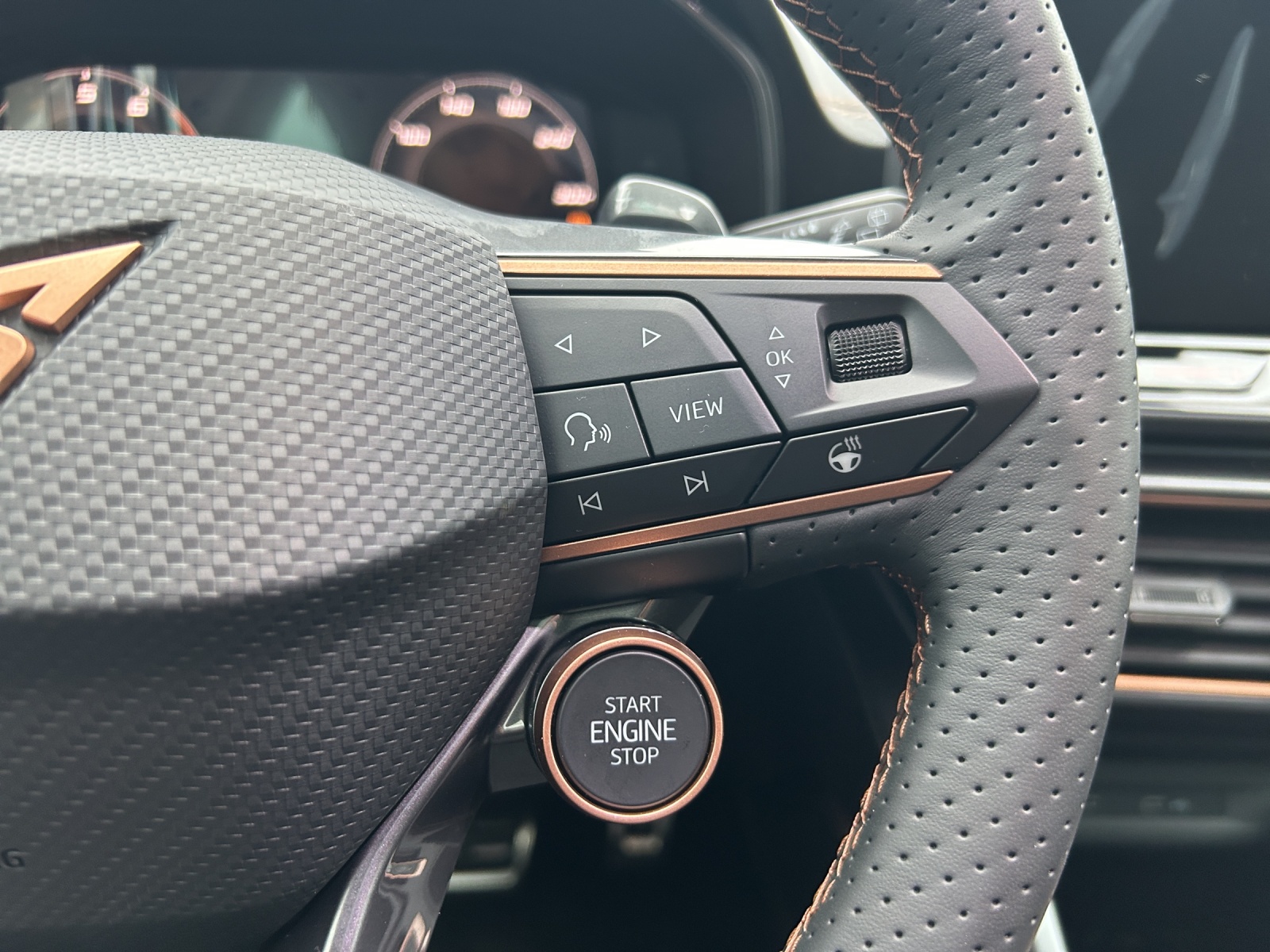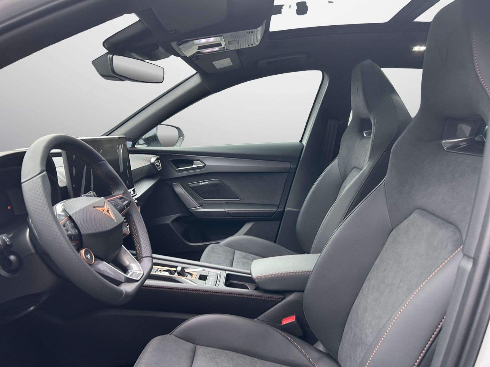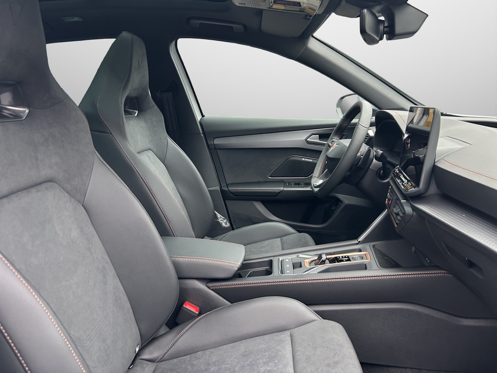 3-Punkt-Sicherheitsgurte auf allen Plätzen ABS, EBV elektronische Bremskraft-verteilung Abgedunkelte Scheiben ab B-Säule hinten Airbag: Airbag Beifahrer deaktivierbar Airbag: Airbag Fahrer und Beifahrer Airbag: Kopfairbags vorne und hinten Airbag: Seitenairbags für Fahrer und Beifahrer Alarmanlage mit Innenraumüberwachung Assist: Aufmerksamkeits- und Müdigkeitserkennung (ADA) Assist: Ausweichunterstützung / Abbiegeassistent Assist: Automatische Distanzregelung ACC Assist: City Notbremsfunktion Assist: Einparkhilfe vorne und hinten Assist: Elektronische Parkbremse mit Auto Hold Funktion Assist: Lane assist (Spurhalteassistent) Assist: Multifunktionskamera Assist: Multikollisionsbremse Assist: Prädiktive Speedlimiter Assist: Regen-/Lichtsensor Assist: Traction Control (TCS) Assist: Traffic sign recognition (Verkehrszeichenerkennung) Assist: Umfeldbeobachtung Front-Assist Aussenspiegel elektrisch einstell-, beheiz- und einklappbar Aussenspiegel mit Beifahrerspiegelabsenkung Aussenspiegel mit LED-Umfeldbeleuchtung Automatisch abblendender Innenrückspiegel Beleuchtete Sonnenblende links mit abdeckbarem Spiegel und Lasche, rechts mit abdeckbarem Spiegel ESC mit EBA, DSR, XDS und Reifendruckkontrolle Elektrische Fensterheber vorne und hinten mit Komfortschaltung und Einklemmschutz Fahrwerk: Progressivlenkung Fussmatten vorne und hinten Garantie: Cupra 12 Jahre Gewährleistung gegen Karosserie-Durchrostung Garantie: Cupra 3 Jahre Lack-Gewährleistung Garantie: Cupra Hersteller-Garantieverlängerung für das 3., 4. und 5. Jahr / max.100000 km Heckscheiben-Wisch-/Waschanlage mit Intervall Kindersitzverankerung ISOFIX (äussere Plätze hinten) Klima: 3-Zonen Climatronic mit Fondraumbedienung LED-Innenraumbeleuchtung mit Ambientebeleuchtung"Monochrom" Lackierung: Uni-Lackierung Lenkrad: Supersportlenkrad mit Start-/ Drive Profile-Knopfsystem und Schaltwippen, beheizbar Licht: Coming-home-Funktion Licht: Drittes Bremslicht Licht: Durchgehende Full LED-Heckleuchten Licht: Fernlicht-Assistent Licht: LED Heckleuchten mit beleuchtetem 3D CUPRA Logo Licht: LED-Heckleuchten mit dynamischem Blinklicht Licht: LED-Nebelscheinwerfer mit Cornering-Funktion Licht: LED-Scheinwerfer für Abblend- und Fernlicht Licht: Leuchtweitenregulierung dynamisch Licht: Nebelschlussleuchte Media: 12,9" Infotainment (MIB3) Media: 2 USB C Anschlüsse hinten und vorne Media: CUPRA Connect Remote & Access Media: CUPRA Connect Safety & Services Media: CUPRA Connectivity Box Media: DAB+ (Digital Audio Broadcasting) Media: Mobiltelefon Freisprechanlage Bluetooth Pyrotechnische Gurtstraffer und Gurtkraftbegrenzer Räder: Alufelgen 8J x 18", "TEMPEST" Machined in Silver Räder: Reifendruckkontrollsystem Räder: Reifenreparatur-Set (Tire Fit) Servolenkung mit geschwindigkeitsabhängiger Lenkkraftunterstützung Sitze: 3 verstellbare Kopfstützen hinten Sitze: CUPRA Sportsitze in "Sharp Textil schwarz" Sitze: Geteilt abklappbare Rücksitzlehne 1/3 - 2/3 Sitze: Kopfstützen vorne (integrierte) Sitze: Mittelarmlehne hinten Sitze: Mittelarmlehne vorne Sitze: Sitzheizung für Vordersitze, getrennt regelbar Sitze: Vordersitze höhenverstellbar mit Lendenwirbelstütze Stopp - Start- und Rekuperationssystem Wegfahrsperre elektronisch Zentralverriegelung "Keyless-Go" Zentralverriegelung mit Funkfernbedienung, 2 Funkschlüssel