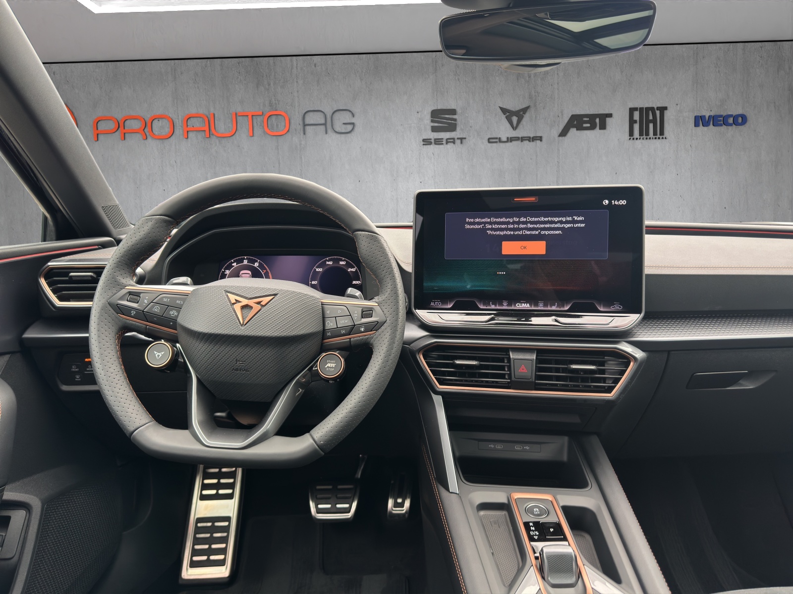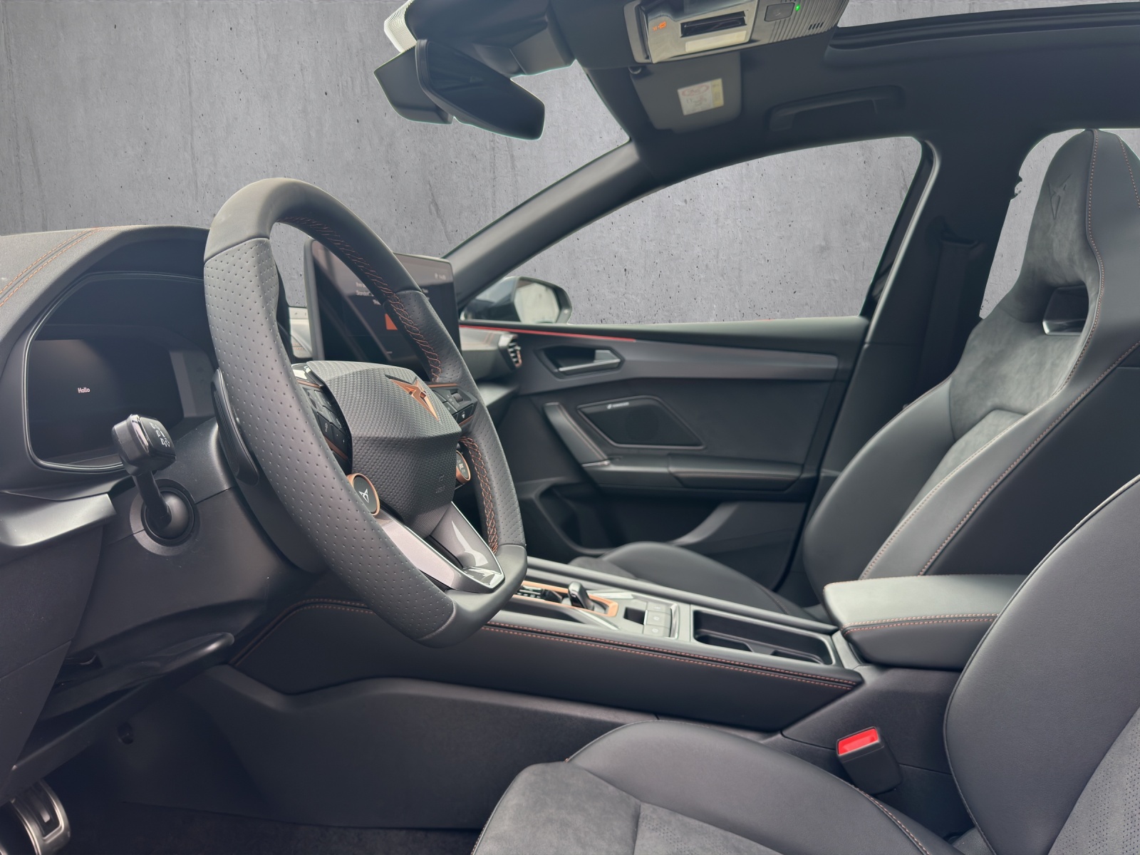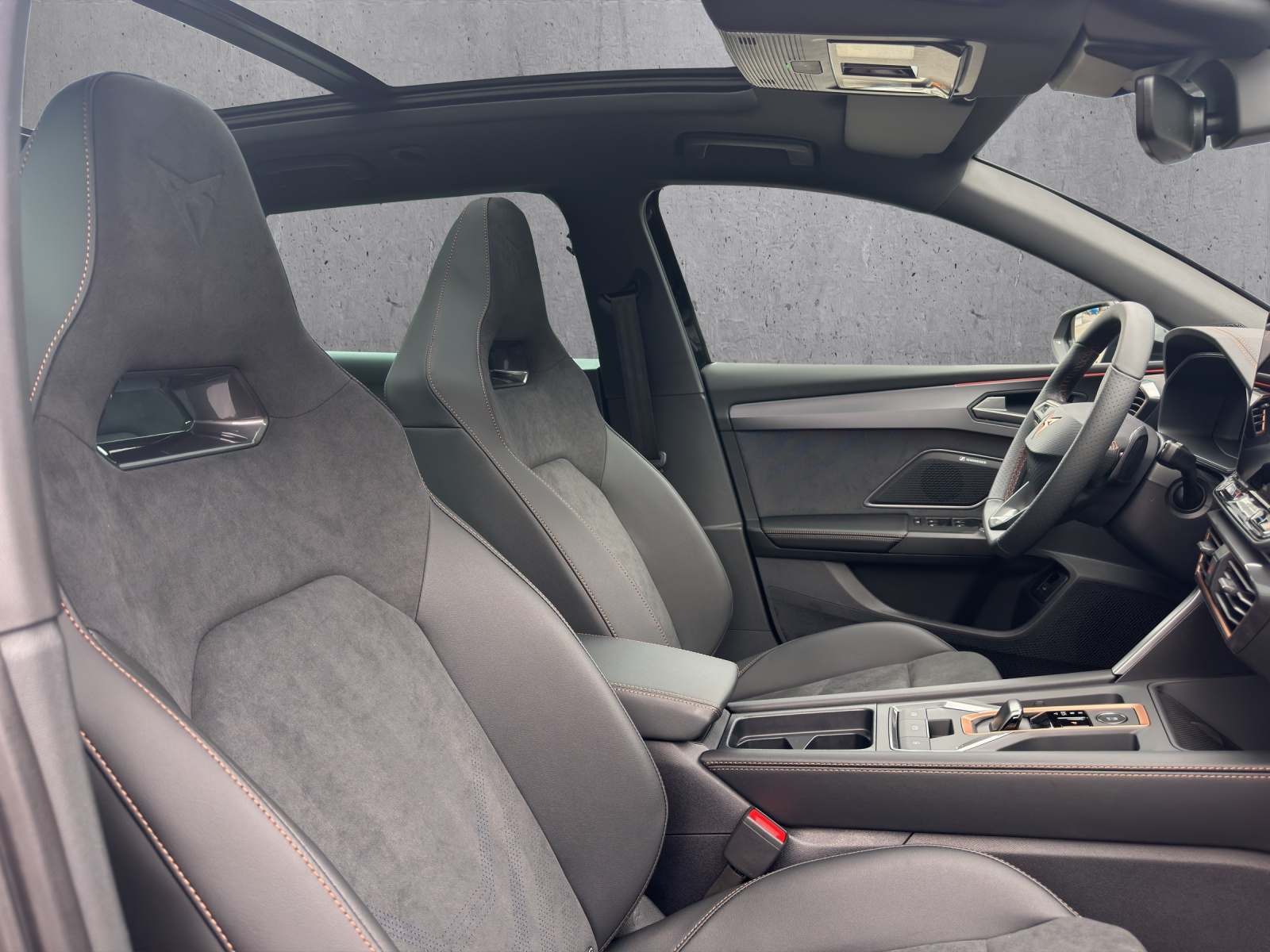 Serienausstattung ABS, EBV elektronische Bremskraft-verteilung Abgedunkelte Scheiben ab B-Säule hinten Aerodynamischer Heckspoiler Black Edition in Schwarz Airbag: Airbag Beifahrer deaktivierbar Airbag: Airbag Fahrer und Beifahrer Airbag: Seitenairbags vorne mit Kopfairbag und Interaktionsairbag vorne Alarmanlage mit Innenraumüberwachung Assist: Aufmerksamkeits- und Müdigkeitserkennung (ADA) Assist: Ausweichunterstützung / Abbiegeassistent Assist: Automatische Distanzregelung ACC Assist: Einparkhilfe vorne und hinten Assist: Elektronische Parkbremse mit Auto Hold Funktion Assist: Multifunktionskamera Assist: Multikollisionsbremse Assist: Prädiktive Speedlimiter Assist: Regen-/Lichtsensor Assist: Traction Control (TCS) Assist: Traffic sign recognition (Verkehrszeichenerkennung) CUPRA Drive Profile mit "driving experience button" Comfort, Performance, Drift, Individual CUPRA Seitenschweller in "Obsidian Black" Dekor-Elemente Interieur: Fussmattensatz, Start-/Stopp-Schalterkappe Dekor: Dekorblenden in Copper Dreipunkt-Automatiksicherheitsgurte auf allen Plätzen ESC mit EBA, DSR und Reifendruckkontrolle Elektrische Fensterheber vorne und hinten mit Komfortschaltung und Einklemmschutz Fahrwerk: Adaptive Fahrwerksregelung DCC Fussmatten vorne und hinten Garantie: Cupra 12 Jahre Gewährleistung gegen Karosserie-Durchrostung Garantie: Cupra 3 Jahre Lack-Gewährleistung Garantie: Cupra Hersteller-Garantieverlängerung für das 3., 4. und 5. Jahr / max.100000 km Heckklappe elektrisch öffnend "Virtual Pedal" Heckscheiben-Wisch-/Waschanlage mit Intervall Innenspiegel automatisch abblendbar Klima: 3-Zonen Climatronic mit Fondraumbedienung LED-Innenraumbeleuchtung mit Ambientebeleuchtung Smart Wraparound "Multicolor" Lackierung: Metallic-Lackierung Leistungssteigerung by ABT Lenkrad: Supersportlenkrad mit Start-/ Drive Profile-Knopfsystem und Schaltwippen, beheizbar Licht: Coming Leaving Home Funktion Licht: Drittes Bremslicht Licht: Durchgehende Full LED-Heckleuchten Licht: Dynamische LED-Blinker Licht: Fernlicht-Assistent Licht: LED Heckleuchten mit beleuchtetem 3D CUPRA Logo Licht: LED-Nebelscheinwerfer mit Cornering-Funktion Licht: Leuchtweitenregulierung Licht: Nebelschlussleuchte Media: 2 USB C Anschlüsse hinten und vorne Media: CUPRA Connect Remote & Access Media: CUPRA Connect Safety & Services Media: CUPRA Connectivity Box Media: CUPRA Navigationssystem 12.9" Infotainment Media: DAB+ (Digital Audio Broadcasting) Media: IMMERSIVE by SENNHEISER Media: Mobiltelefon Freisprechanlage Bluetooth Pyrotechnische Gurtstraffer und Gurtkraftbegrenzer vorne Räder: Alufelgen 8.5J x 20", ABT PRIME In Glossy Black mit Sommerbereifung Räder: Reifenreparatur-Set (Tire Fit) Schlüsselloses Schliess- und Startsystem (KESSY Advance) Servolenkung mit geschwindigkeitsabhängiger Lenkkraftunterstützung Sicherheitsgurtkontrolle für alle Sitze Sitze: 2 verstellbare Kopfstützen vorne und 3 hinten Sitze: Fahrer- und Beifahrersitz mit Lendenwirbelstütze Sitze: Geteilt abklappbare Rücksitzlehne 1/3 - 2/3 Sitze: Kindersitzverankerung ISOFIX hinten Sitze: Kopfstützen vorne (integrierte) Sitze: Lendenwirbelstütze in den Vordersitzlehnen Sitze: Mittelarmlehne hinten Sitze: Mittelarmlehne vorne Sitze: Sitzheizung für Vordersitze, getrennt regelbar Sonnenblende Fahrer und Beifahrerseite Stopp - Start- und Rekuperationssystem Wegfahrsperre elektronisch Zentralverriegelung mit Funkfernbedienung, 2 Funkschlüssel