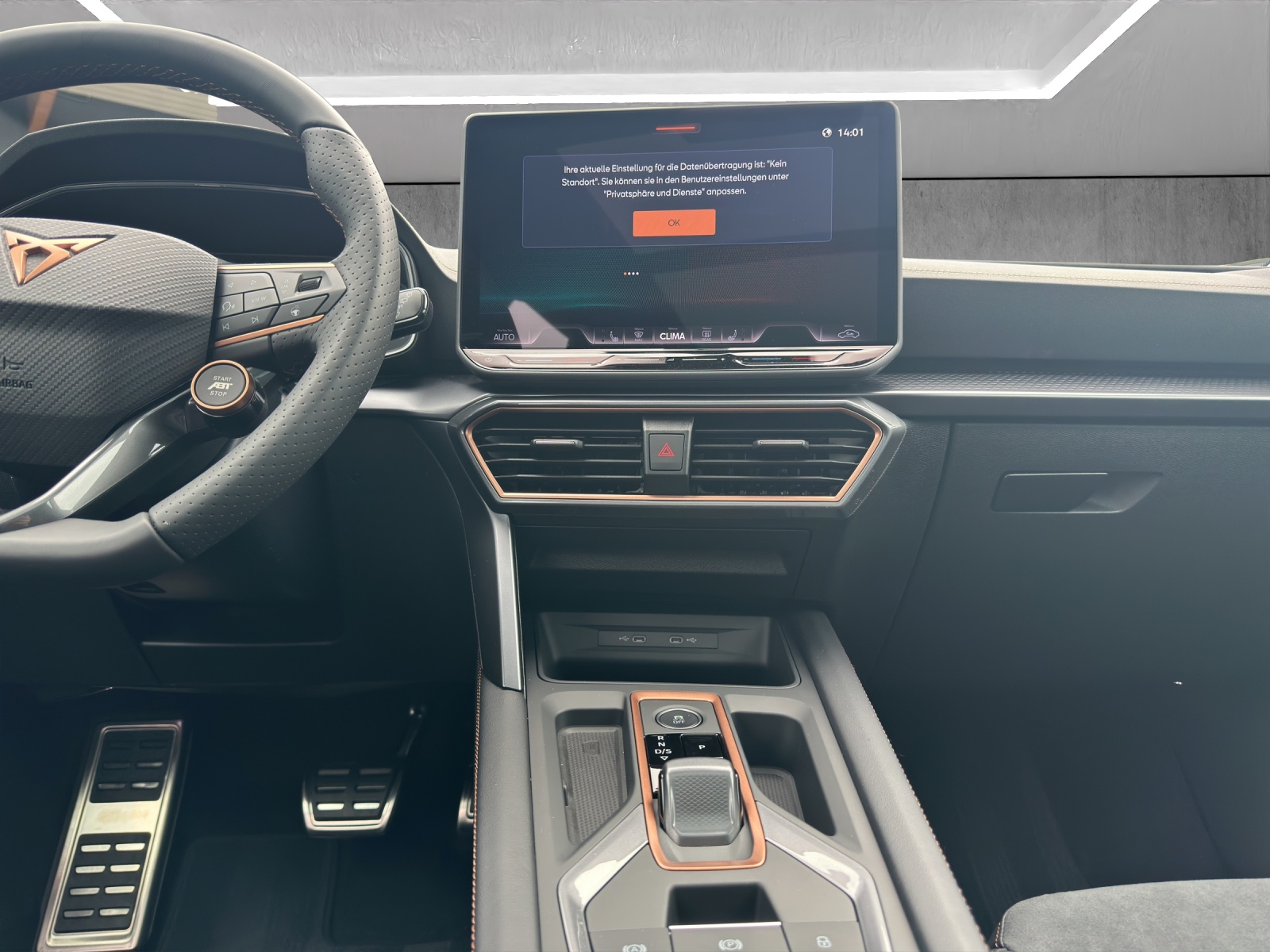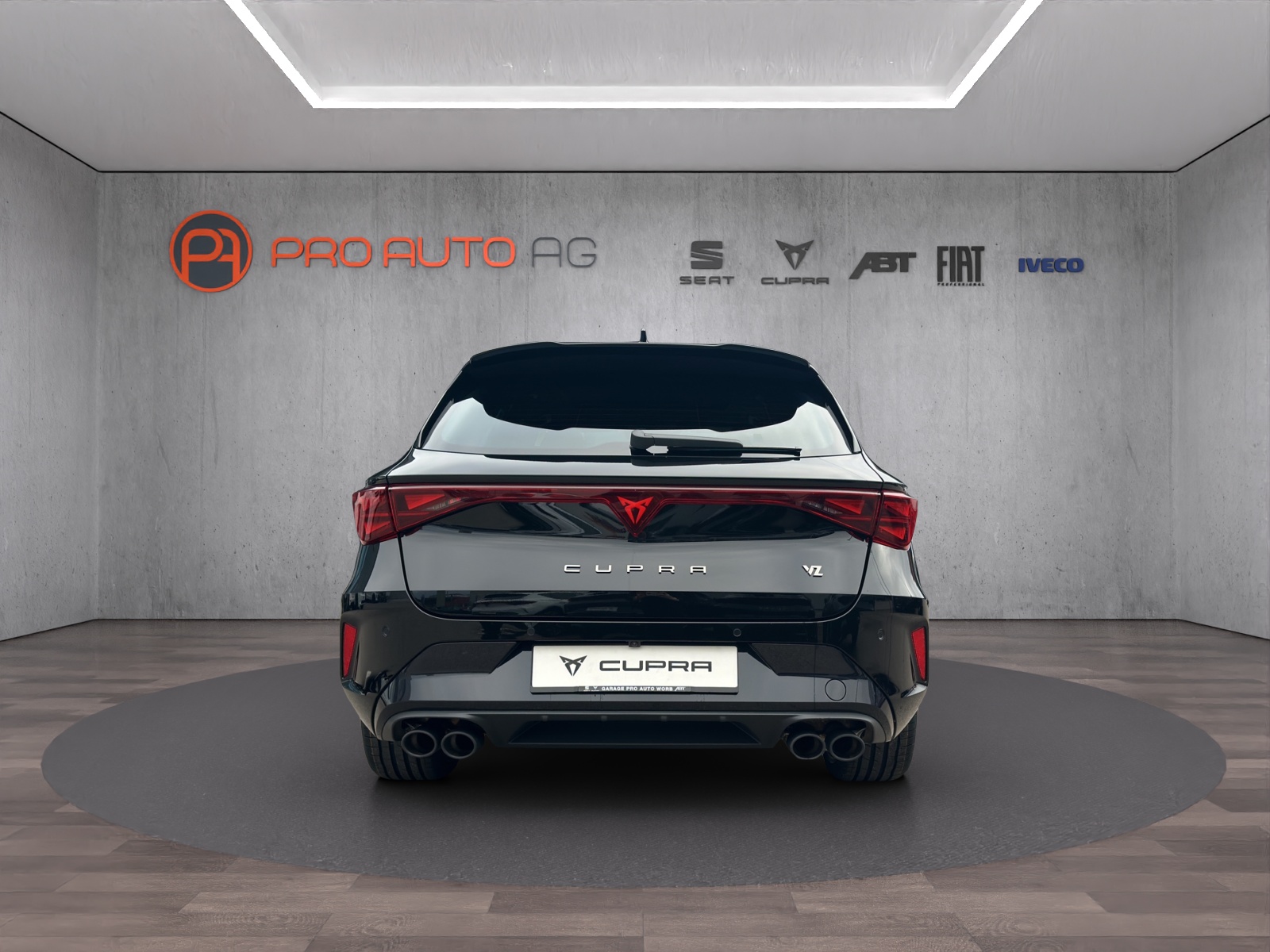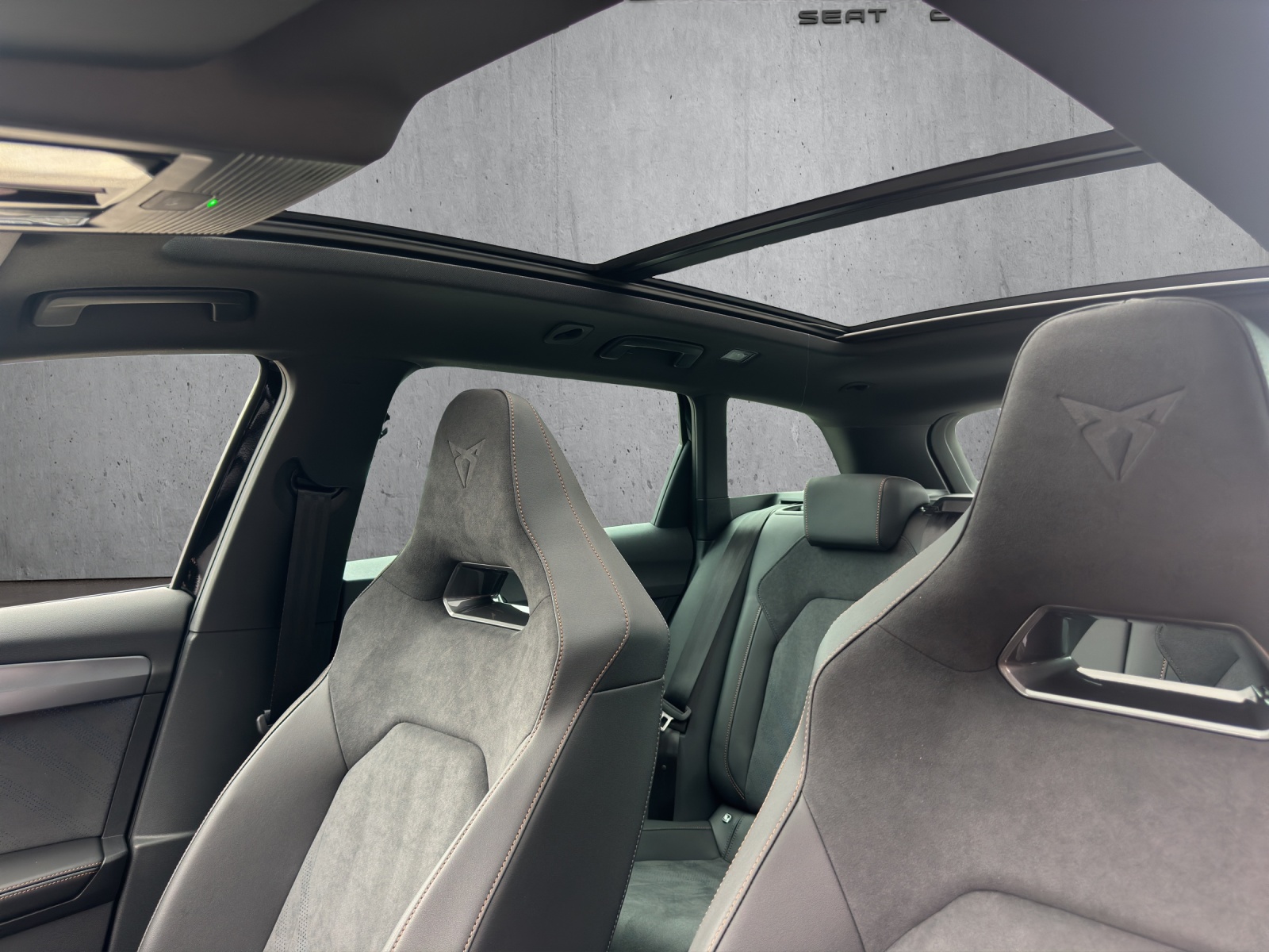 Serienausstattung ABS, EBV elektronische Bremskraft-verteilung Abgedunkelte Scheiben ab B-Säule hinten Aerodynamischer Heckspoiler Black Edition in Schwarz Airbag: Airbag Beifahrer deaktivierbar Airbag: Airbag Fahrer und Beifahrer Airbag: Seitenairbags vorne mit Kopfairbag und Interaktionsairbag vorne Alarmanlage mit Innenraumüberwachung Assist: Aufmerksamkeits- und Müdigkeitserkennung (ADA) Assist: Ausweichunterstützung / Abbiegeassistent Assist: Automatische Distanzregelung ACC Assist: Einparkhilfe vorne und hinten Assist: Elektronische Parkbremse mit Auto Hold Funktion Assist: Multifunktionskamera Assist: Multikollisionsbremse Assist: Prädiktive Speedlimiter Assist: Regen-/Lichtsensor Assist: Traction Control (TCS) Assist: Traffic sign recognition (Verkehrszeichenerkennung) CUPRA Drive Profile mit "driving experience button" Comfort, Performance, Drift, Individual CUPRA Seitenschweller in "Obsidian Black" Dekor-Elemente Interieur: Fussmattensatz, Start-/Stopp-Schalterkappe Dekor: Dekorblenden in Copper Dreipunkt-Automatiksicherheitsgurte auf allen Plätzen ESC mit EBA, DSR und Reifendruckkontrolle Elektrische Fensterheber vorne und hinten mit Komfortschaltung und Einklemmschutz Fahrwerk: Adaptive Fahrwerksregelung DCC Fussmatten vorne und hinten Garantie: Cupra 12 Jahre Gewährleistung gegen Karosserie-Durchrostung Garantie: Cupra 3 Jahre Lack-Gewährleistung Garantie: Cupra Hersteller-Garantieverlängerung für das 3., 4. und 5. Jahr / max.100000 km Heckklappe elektrisch öffnend "Virtual Pedal" Heckscheiben-Wisch-/Waschanlage mit Intervall Innenspiegel automatisch abblendbar Klima: 3-Zonen Climatronic mit Fondraumbedienung LED-Innenraumbeleuchtung mit Ambientebeleuchtung Smart Wraparound "Multicolor" Lackierung: Metallic-Lackierung Leistungssteigerung by ABT Lenkrad: Supersportlenkrad mit Start-/ Drive Profile-Knopfsystem und Schaltwippen, beheizbar Licht: Coming Leaving Home Funktion Licht: Drittes Bremslicht Licht: Durchgehende Full LED-Heckleuchten Licht: Dynamische LED-Blinker Licht: Fernlicht-Assistent Licht: LED Heckleuchten mit beleuchtetem 3D CUPRA Logo Licht: LED-Nebelscheinwerfer mit Cornering-Funktion Licht: Leuchtweitenregulierung Licht: Nebelschlussleuchte Media: 2 USB C Anschlüsse hinten und vorne Media: CUPRA Connect Remote & Access Media: CUPRA Connect Safety & Services Media: CUPRA Connectivity Box Media: CUPRA Navigationssystem 12.9" Infotainment Media: DAB+ (Digital Audio Broadcasting) Media: IMMERSIVE by SENNHEISER Media: Mobiltelefon Freisprechanlage Bluetooth Pyrotechnische Gurtstraffer und Gurtkraftbegrenzer vorne Räder: Alufelgen 8.5J x 20", ABT PRIME In Glossy Black mit Sommerbereifung Räder: Reifenreparatur-Set (Tire Fit) Schlüsselloses Schliess- und Startsystem (KESSY Advance) Servolenkung mit geschwindigkeitsabhängiger Lenkkraftunterstützung Sicherheitsgurtkontrolle für alle Sitze Sitze: 2 verstellbare Kopfstützen vorne und 3 hinten Sitze: Fahrer- und Beifahrersitz mit Lendenwirbelstütze Sitze: Geteilt abklappbare Rücksitzlehne 1/3 - 2/3 Sitze: Kindersitzverankerung ISOFIX hinten Sitze: Kopfstützen vorne (integrierte) Sitze: Lendenwirbelstütze in den Vordersitzlehnen Sitze: Mittelarmlehne hinten Sitze: Mittelarmlehne vorne Sitze: Sitzheizung für Vordersitze, getrennt regelbar Sonnenblende Fahrer und Beifahrerseite Stopp - Start- und Rekuperationssystem Wegfahrsperre elektronisch Zentralverriegelung mit Funkfernbedienung, 2 Funkschlüssel
