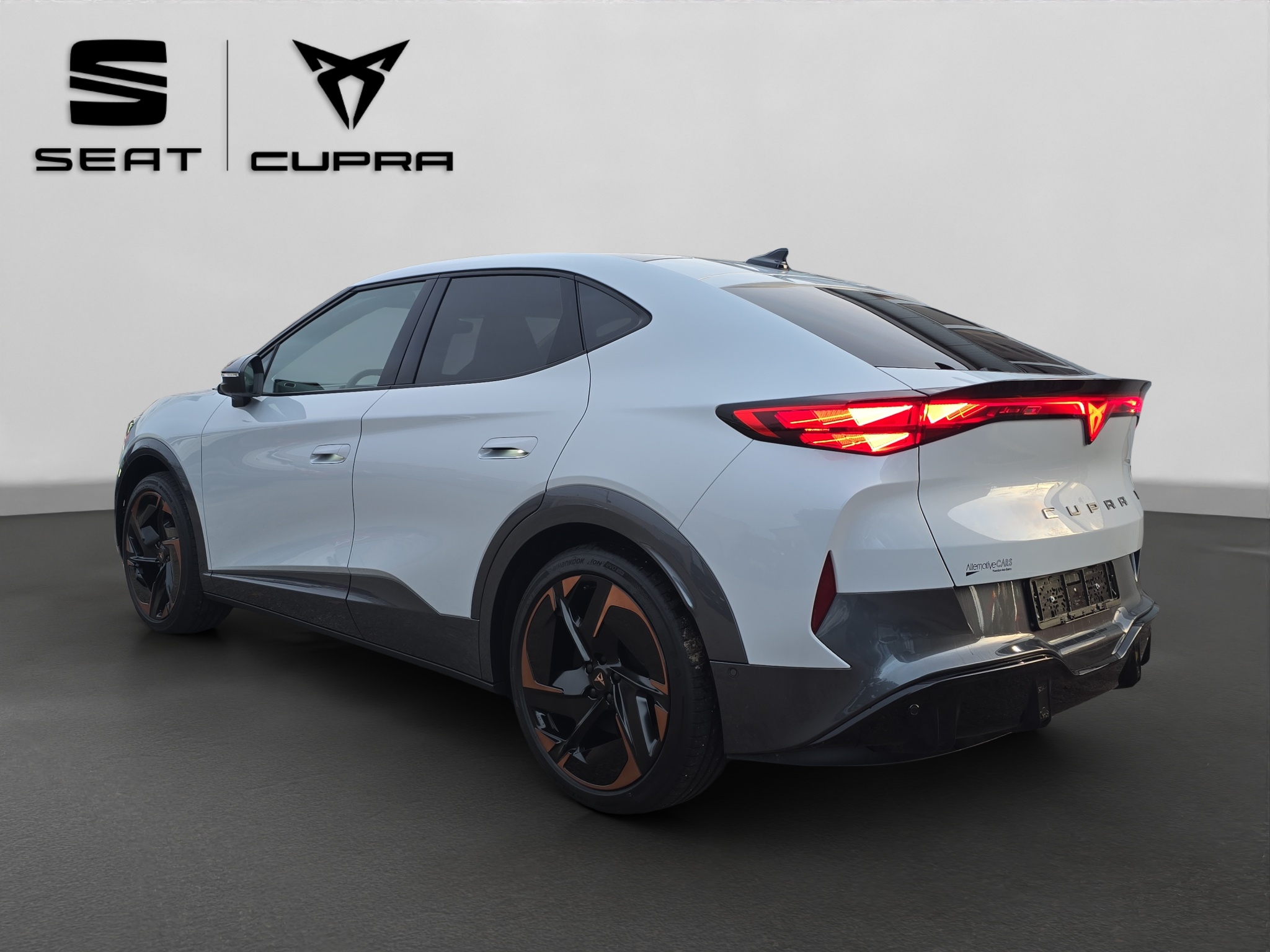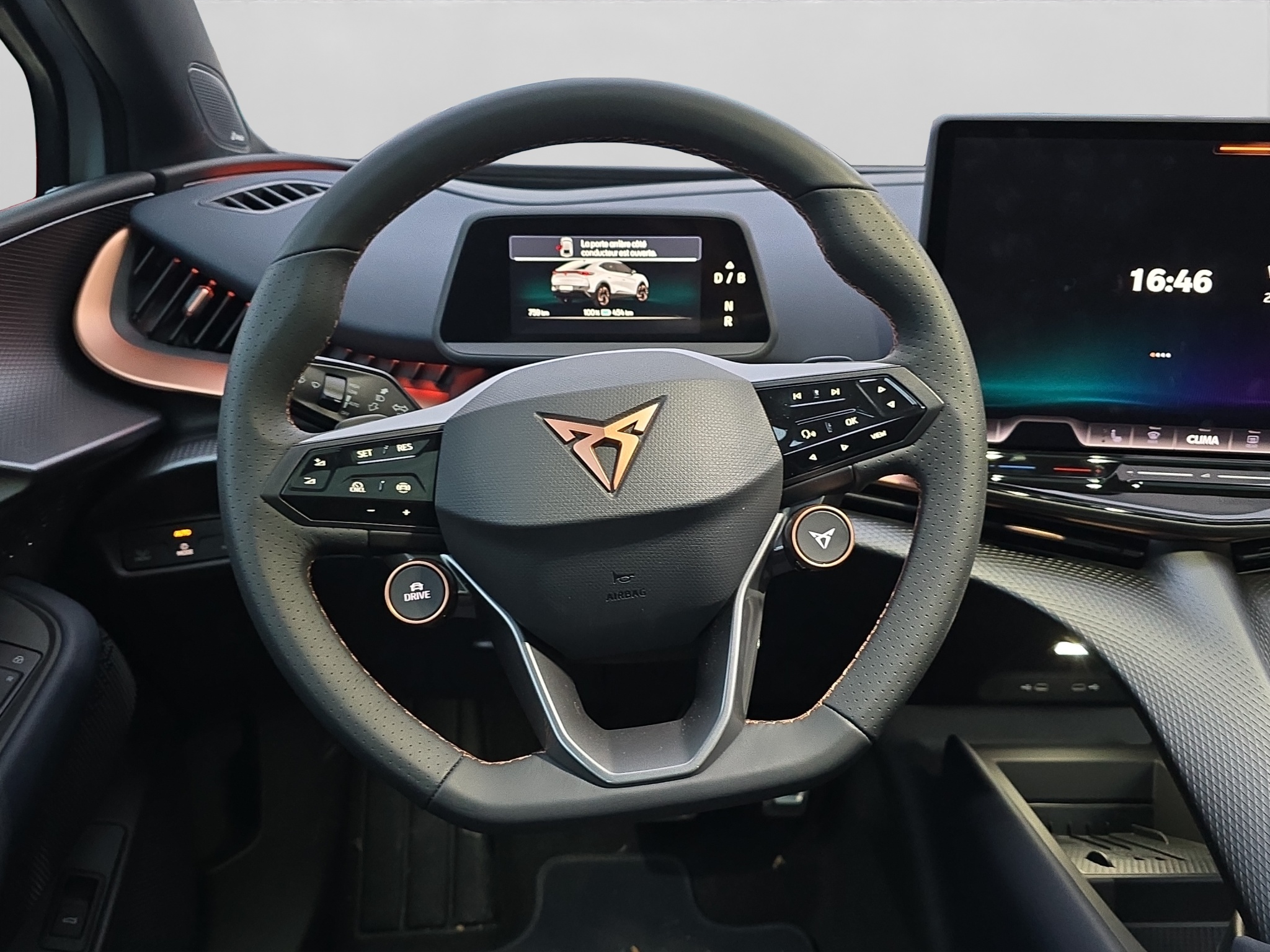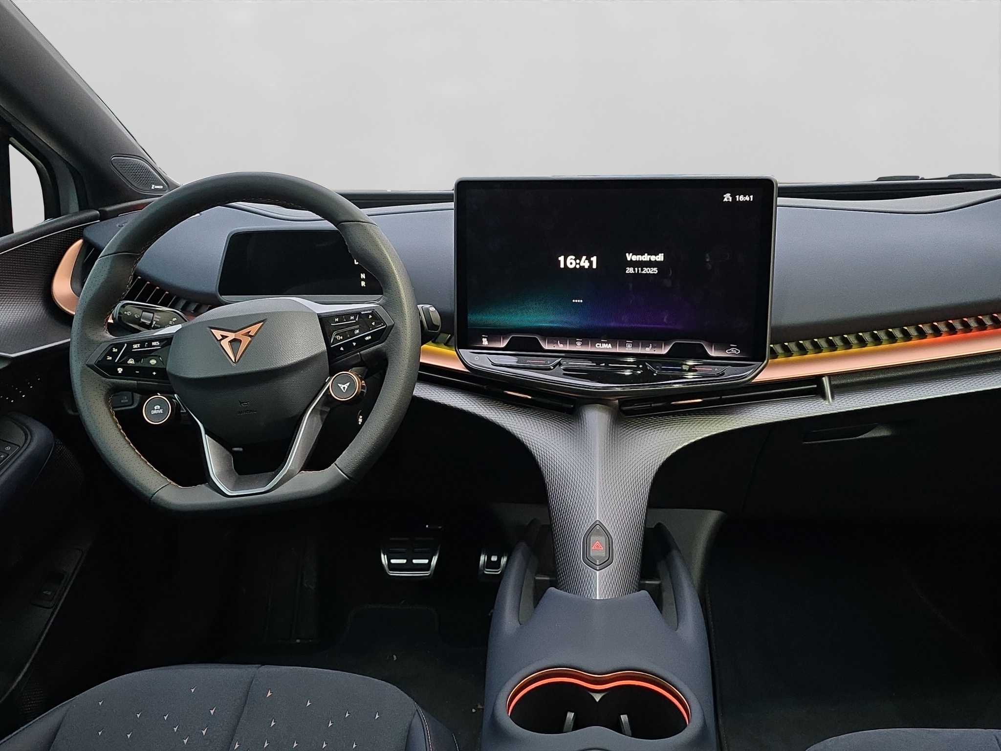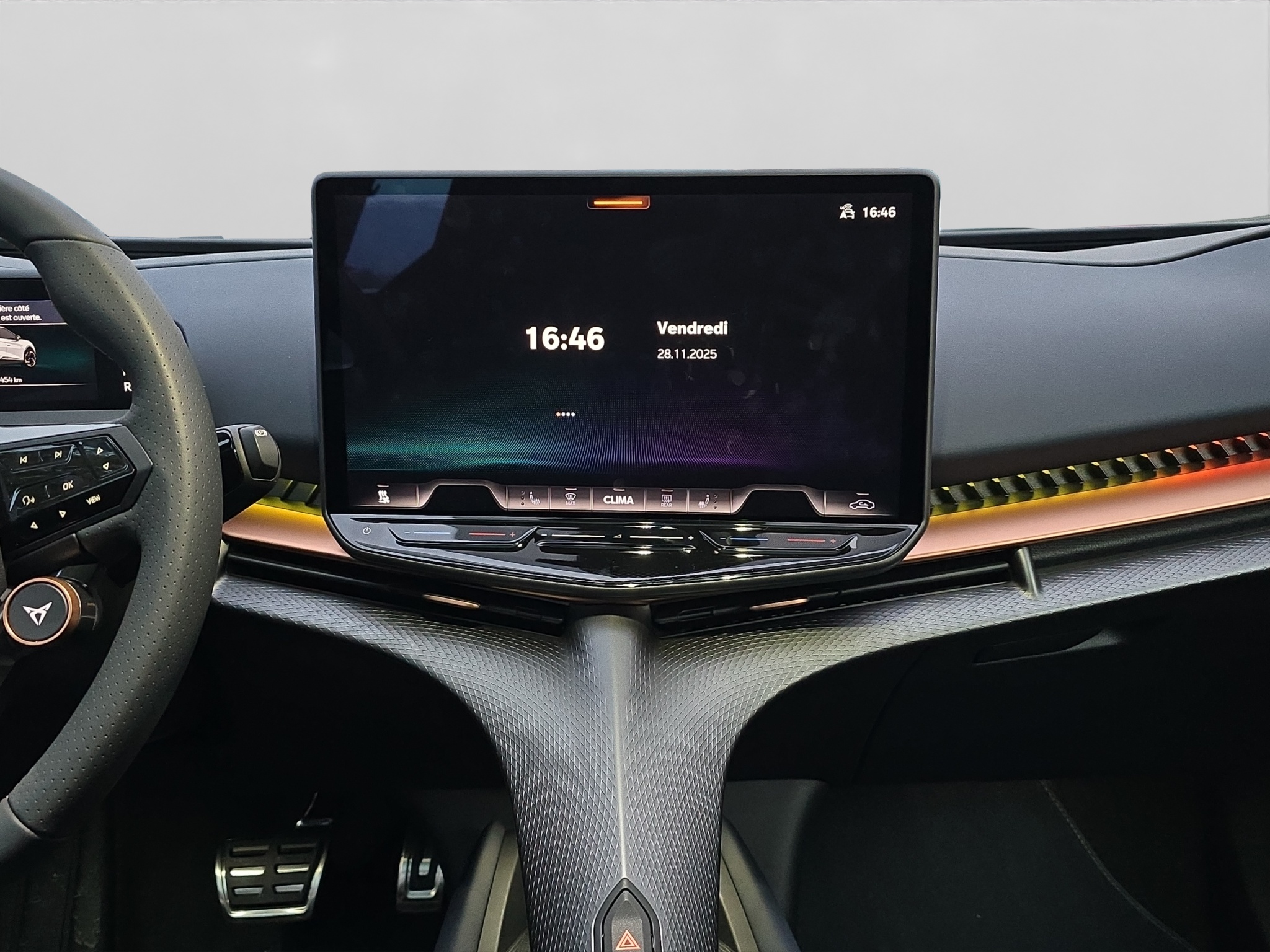5.3" Full Digital Cockpit Abgedunkelte Scheiben ab B-Säule hinten Airbag: Airbag Beifahrer deaktivierbar Airbag: Airbag Fahrer und Beifahrer Airbag: Seitenairbags für Fahrer und Beifahrer Alarme avec surveillance intérieure Assist: Assistant de direction au stationnement RPA (Remote Park Assist) Assist: Assistant de vitesse intelligent Assist: Aufmerksamkeits- und Müdigkeitserkennung (ADA) Assist: Ausweichunterstützung / Abbiegeassistent Assist: Exit Assist (Ausparkassistent) Assist: Exit Warning (Ausstiegswarner) Assist: PreCrash Sicherheitssystem Assist: Regen-/Lichtsensor Assist: Régulation automatique de la distance prédictive ACC Assist: Side Assist (Spurwechselassistent) Assist: Top View Camera (Rundumblick) Assist: Traction Control (TCS) Assist: Traffic sign recognition (Verkehrszeichenerkennung) Assist: eCall Notruffunktion Automatisch abblendender Innenrückspiegel Direction assistée asservie à la vitesse Dreipunkt-Automatiksicherheitsgurte auf allen Plätzen Elektrische Fensterheber vorne und hinten mit Komfortschaltung und Einklemmschutz Elektronisches Stabilitäts-Programm (ESP) Enjoliveurs de seuil éclairés Fahrwerk: Adaptive Fahrwerksregelung DCC Garantie: CUPRA Prolongation de garantie constructeur pour les 3ème, 4ème et 5ème années / Garantie: Cupra 12 ans de garantie contre perforation de la carrosserie Garantie: Cupra 3 ans de garantie pour la peinture Getriebe: 1-Gang Automatik Heckklappe elektrisch öffnend und schliessend "Virtual Pedal" Klima: 3-Zonen Climatronic mit Fondraumbedienung Lackierung: Uni-Lackierung Licht: Drittes Bremslicht Licht: LED Heckleuchten mit beleuchtetem 3D CUPRA Logo Licht: Matrix LED Scheinwerfer Licht: Nebelschlussleuchte Lumière: Feu de route matriciel a LED Media: 15" Infotainment (MIB3) Media: 2 USB C Anschlüsse hinten und vorne Media: Bluetooth-Freisprecheinrichtung Media: CUPRA Connect Online Infotainment Media: CUPRA Connect Remote & Access Media: CUPRA Navigationssystem Media: DAB+ (Digital Audio Broadcasting) Media: Systeme audio SENNHEISER avec 12 haut-parleurs haut de gamme dont un caisson de basses de300w Media: Wireless Charger zur induktiven Smartphone Ladung Mèdias: CUPRA Connect Safety & Services Préparation de dispositif d'attelage Roues: Jantes en aluminium 9J x 21", "Katla" Machined Sport en noir/cuivre Räder: Reifendruckkontrollsystem Rétroviseurs extérieurs rétractables électriquement, chauffée avec fonction d'abaissement passager- Schlüsselloses Schliess- und Startsystem (KESSY Advance) Sitze: Kindersitzbefestigungssystem ISOFIX Sitze: Kopfstützen hinten höhenverstellbar Sitze: Kopfstützen vorne (integrierte) Sitze: Vordersitze höhenverstellbar Sièges: Chauffage des sieges avant et arriere, réglable séparément Sièges: Dossier de banquette arriere rabattable en deux parties avec accoudoir central et option de Sièges: Réglage électrique du siege avec fonction mémoire pour les côtés conducteur et passager Sièges: Support lombaire côté conducteur et passager réglable électriquement Tissu: Housses de siege en Dinamica "Dark Night" Verrouillage centralisé à télécommande Volant: Volant Supersport avec systeme de boutons Drive Profile, chauffant Wegfahrsperre elektronisch Éclairage dambiance LED "IMMERSIVE" Écran head-up à réalité augmentée