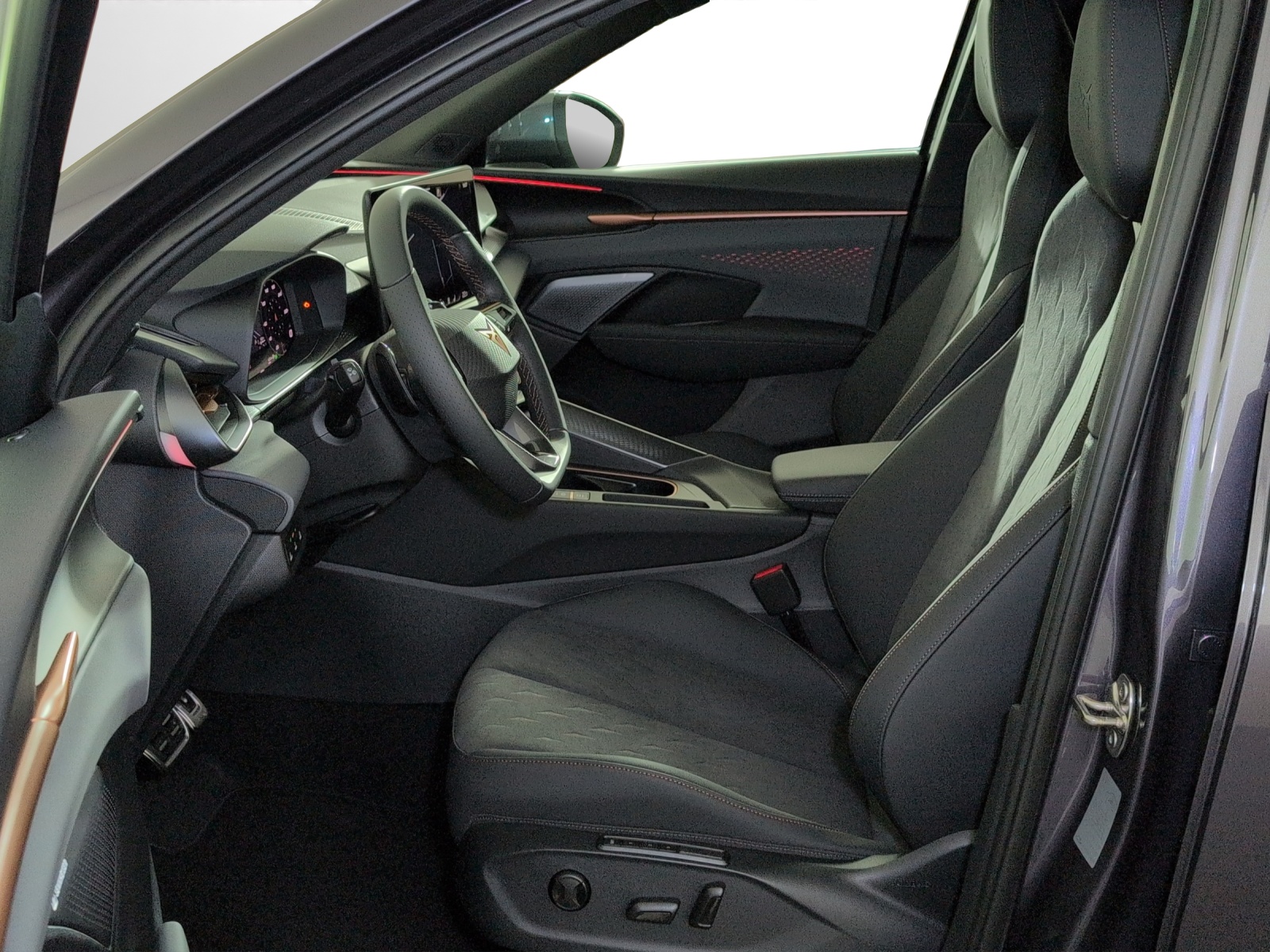 3-Punkt-Sicherheitsgurte auf allen Plätzen ABS, EBV elektronische Bremskraft-verteilung Abgedunkelte Scheiben ab B-Säule hinten Airbag: Airbag Beifahrer deaktivierbar Airbag: Airbag Fahrer und Beifahrer Airbag: Kopfairbags vorne und hinten Airbag: Seitenairbags für Fahrer und Beifahrer Alarmanlage mit Innenraumüberwachung Assist: Aufmerksamkeits- und Müdigkeitserkennung (ADA) Assist: Ausweichunterstützung / Abbiegeassistent Assist: Automatische Distanzregelung ACC Assist: City Notbremsfunktion Assist: Einparkhilfe vorne und hinten mit Rückfahrkamera Assist: Elektronische Parkbremse mit Auto Hold Funktion Assist: Lane assist (Spurhalteassistent) Assist: Multifunktionskamera Assist: Multikollisionsbremse Assist: Prädiktive Speedlimiter Assist: Traffic sign recognition (Verkehrszeichenerkennung) Assist: Umfeldüberwachungssystem "Front-Assist" Aussenspiegel elektrisch einstell-, beheiz- und einklappbar Aussenspiegel mit LED-Umfeldbeleuchtung Beleuchtete Sonnenblende links mit abdeckbarem Spiegel und Lasche, rechts mit abdeckbarem Spiegel ESC mit EBA, DSR, XDS und Reifendruckkontrolle Einstiegsleisten beleuchtet Elektrische Fensterheber vorne und hinten mit Komfortschaltung und Einklemmschutz Fahrwerk: Adaptive Fahrwerksregelung DCC Fahrwerk: CUPRA Sportfahrwerk Fahrwerk: Progressivlenkung Full Digital Cockpit 10.25" Fussmatten vorne und hinten Garantie: Cupra 12 Jahre Gewährleistung gegen Karosserie-Durchrostung Garantie: Cupra 3 Jahre Lack-Gewährleistung Garantie: Cupra Hersteller-Garantieverlängerung für das 3., 4. und 5. Jahr / max.100000 km Heckklappe elektrisch öffnend und schliessend "Virtual Pedal" Heckscheiben-Wisch-/Waschanlage mit Intervall Innenspiegel automatisch abblendbar Klima: 3-Zonen Climatronic mit Fondraumbedienung LED-Ambientebeleuchtung Smart Wraparound, inkl. Funktionsanzeige Lackierung: Uni-Lackierung Lenkrad: Leder Multifunktionslenkrad mit Schaltwippen, beheizbar Licht: Drittes Bremslicht Licht: Durchgehende Full LED-Heckleuchten Licht: LED Heckleuchten mit beleuchtetem 3D CUPRA Logo Licht: LED-Heckleuchten mit dynamischem Blinklicht Licht: LED-Nebelscheinwerfer mit Cornering-Funktion Licht: LED-Scheinwerfer für Abblend- und Fernlicht Licht: Leuchtweitenregulierung dynamisch Licht: Nebelschlussleuchte Media: 12,9" Infotainment (MIB3) Media: 2 USB C Anschlüsse hinten und vorne Media: CUPRA Connect Remote & Access / CUPRA Connect Safety & Services Media: CUPRA Connectivity Box Media: DAB+ (Digital Audio Broadcasting) Media: Mobiltelefon Freisprechanlage Bluetooth Mittelarmlehne vorne und hinten Pyrotechnische Gurtstraffer und Gurtkraftbegrenzer Räder: Alufelgen 8.5J x 19", "COSMIC" Machined in Sport Black Matt & Silver Räder: Performance Reifen Räder: Reifendruckkontrollsystem Schlüsselloses Schliess- und Startsystem (KESSY Advance) Servolenkung mit geschwindigkeitsabhängiger Lenkkraftunterstützung Sitze: 3 verstellbare Kopfstützen hinten Sitze: CUPRA Sport Schalensitze in Textil, "DEEP OCEAN" "SEAQUAL" Sitze: Geteilt abklappbare Rücksitzlehne 1/3 - 2/3 Sitze: Geteilt abklappbare Rücksitzlehne mit Mittelarmlehne Sitze: Kindersitzverankerung ISOFIX hinten Sitze: Vordersitze höhenverstellbar mit Lendenwirbelstütze Stopp - Start- und Rekuperationssystem Wegfahrsperre elektronisch Zentralverriegelung mit Funkfernbedienung, 2 Funkschlüssel