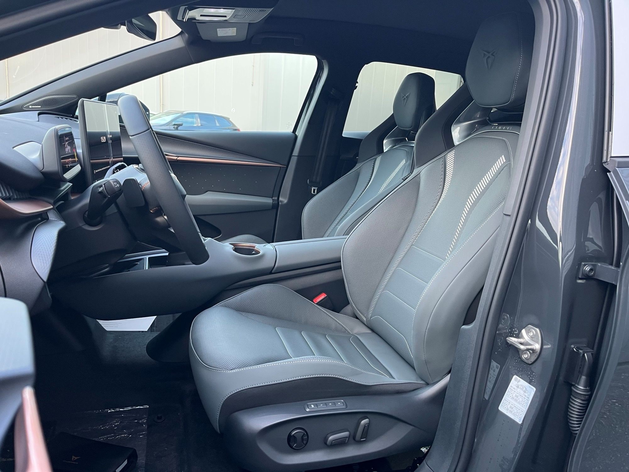 5.3" Full Digital Cockpit Abgedunkelte Scheiben ab B-Säule hinten Airbag: Airbag Beifahrer deaktivierbar Airbag: Airbag Fahrer und Beifahrer Airbag: Seitenairbags für Fahrer und Beifahrer Alarmanlage mit Innenraumüberwachung Assist: Aufmerksamkeits- und Müdigkeitserkennung (ADA) Assist: Ausweichunterstützung / Abbiegeassistent Assist: Exit Assist (Ausparkassistent) Assist: Exit Warning (Ausstiegswarner) Assist: Intelligenter Geschwindigkeitsassistent Assist: Parklenkassistent RPA (Remote Park Assist) Assist: PreCrash Sicherheitssystem Assist: Prädiktive automatische Distanzregelung ACC Assist: Regen-/Lichtsensor Assist: Side Assist (Spurwechselassistent) Assist: Top View Camera (Rundumblick) Assist: Traction Control (TCS) Assist: Traffic sign recognition (Verkehrszeichenerkennung) Assist: eCall Notruffunktion Augmented Reality Head-up-Display Aussenspiegel elektrisch einstell-, beheiz- und einklappbar mit Beifahrerabsenkfunktion- Automatisch abblendender Innenrückspiegel Dreipunkt-Automatiksicherheitsgurte auf allen Plätzen Einstiegsleisten beleuchtet Elektrische Fensterheber vorne und hinten mit Komfortschaltung und Einklemmschutz Elektronisches Stabilitäts-Programm (ESP) Fahrwerk: Adaptive Fahrwerksregelung DCC Garantie: Cupra 12 Jahre Gewährleistung gegen Karosserie-Durchrostung Garantie: Cupra 3 Jahre Lack-Gewährleistung Garantie: Cupra Hersteller-Garantieverlängerung für das 3., 4. und 5. Jahr / max.100000 km Getriebe: 1-Gang Automatik Heckklappe elektrisch öffnend und schliessend "Virtual Pedal" Klima: 3-Zonen Climatronic mit Fondraumbedienung LED Ambientebeleuchtung "IMMERSIVE" Lackierung: Uni-Lackierung Lenkrad: Supersportlenkrad mit Drive Profile-Knopfsystem,beheizbar Licht: Drittes Bremslicht Licht: LED Heckleuchten mit beleuchtetem 3D CUPRA Logo Licht: Matrix LED Fernlicht Licht: Matrix LED Scheinwerfer Licht: Nebelschlussleuchte Media: 15" Infotainment (MIB3) Media: 2 USB C Anschlüsse hinten und vorne Media: Bluetooth-Freisprecheinrichtung Media: CUPRA Connect Online Infotainment Media: CUPRA Connect Remote & Access Media: CUPRA Connect Safety & Services Media: CUPRA Navigationssystem Media: DAB+ (Digital Audio Broadcasting) Media: SENNHEISER Sound System mit 12 High-End-Lautsprecher inkl. 300 Watt Subwoofer Media: Wireless Charger zur induktiven Smartphone Ladung Räder: Alufelgen 9J x 21", "Etna" Machined Sport in Black/Copper Räder: Reifendruckkontrollsystem Schlüsselloses Schliess- und Startsystem (KESSY Advance) Servolenkung geschwindigkeitsabhängig Sitze: CUPRA CUPBucket Sportschalensitze in Leder "Enceladus Grey" Sitze: Elektrische Sitzverstellung mit Memory-Funktion für Fahrer- und Beifahrerseite Sitze: Geteilt abklappbare Rücksitzlehne mit Mittelarmlehne und Durchlademöglichkeit Sitze: Kindersitzbefestigungssystem ISOFIX Sitze: Kopfstützen hinten höhenverstellbar Sitze: Kopfstützen vorne (integrierte) Sitze: Lendenwirbelstütze Fahrer- und Beifahrerseite elektrisch einstellbar Sitze: Sitzbelüftung für Vordersitze Sitze: Sitzheizung für Vorder- und Rücksitze, getrennt regelbar Sitze: Vordersitze höhenverstellbar Vorbereitung für Anhängevorrichtung Wegfahrsperre elektronisch Zentralverriegelung mit Fernbedienung