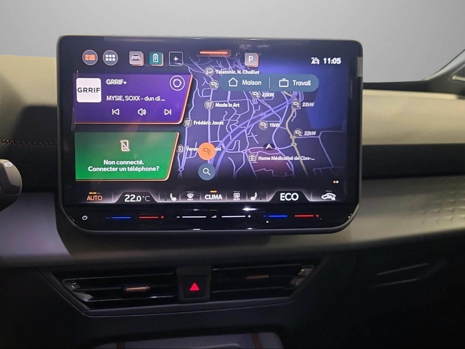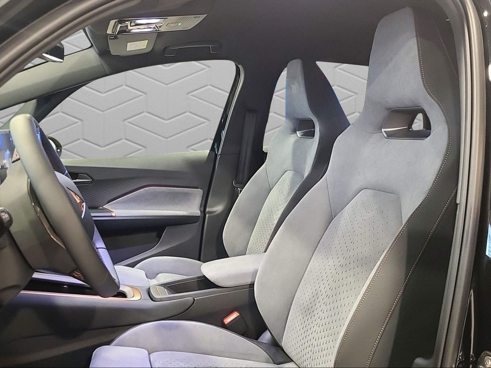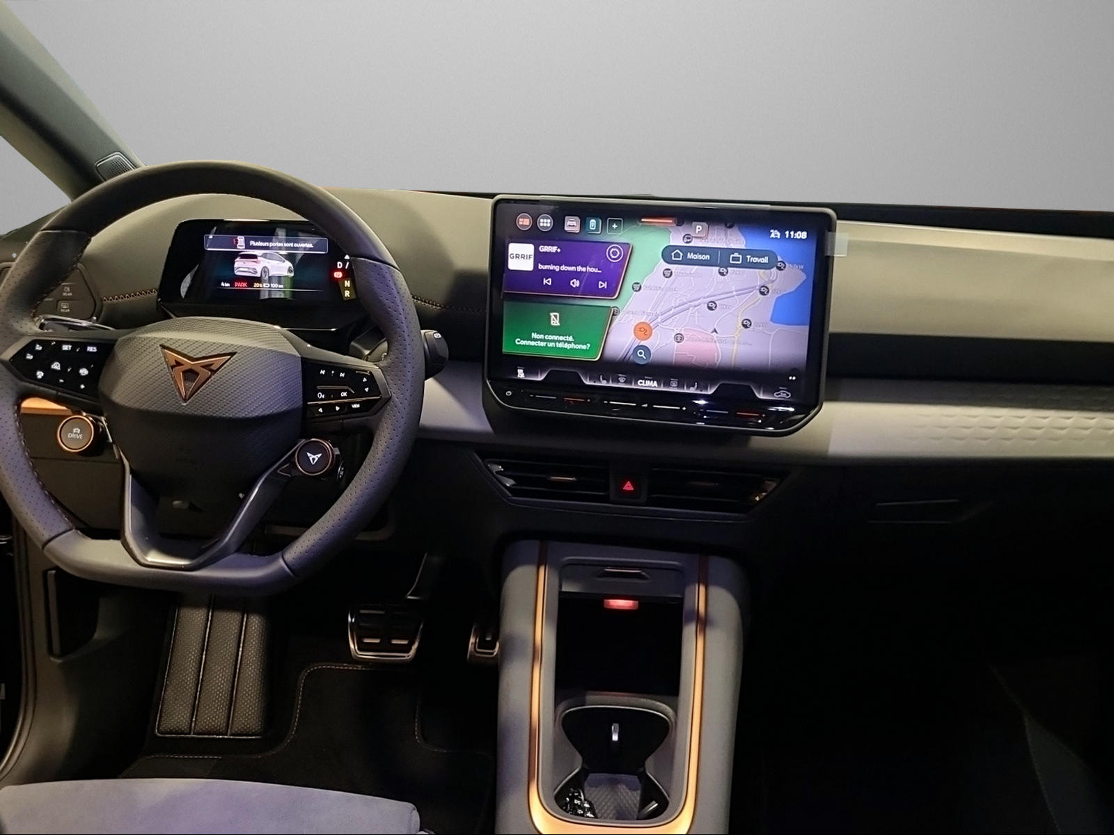 5.3" Full Digital Cockpit ABS, EBV répartiteur électronique de la force de freinage Airbag conducteur et passager Airbag: Airbag passager désactivable Airbag: Airbags latéraux pour conducteur et passeggero Airbag: Airbags rideaux pour la tête AV et AR Alarmanlage mit Innenraumüberwachung Assist: Aide a l'évasion/assistant de virage Assist: Contrôle de distance de parcage AV et AR avec contrôle optique Assist: Détecteur de pluie et de lumière Assist: Détection de l'attention et de la somnolence (ADA) Assist: Lane assist (assistant au maintien de la trajectoire) Assist: Traction Control (TCS) Assist: Verkehrszeichenerkennung CUPRA Drive Profile avec "driving experience button" Range, Comfort, Performance, CUPRA, Individual Ceintures de sécurité automatiques à trois points sur tous les sièges Clima: Chauffage supplémentaire électrique à air Clima: Climatronic bizone Direction assistée dépendante de la Eclairage d'ambiance intérieur "Multicolore" avec 6 couleurs Essuie-glace AR intermittent avec lave-glace Filtre à pollen (filtre à poussière) Garantie: CUPRA Prolongation de garantie constructeur pour les 3ème, 4ème et 5ème années / Garantie: Cupra 12 ans de garantie contre perforation de la carrosserie Garantie: Cupra 3 ans de garantie pour la peinture Garantie: Garantie Cupra Garantie de la batterie 8 ans ou 160 000 KM sur Lumière: 3ème feu de stop Lumière: Combinaison complète de feux arrière à LED dans tout le pays Lumière: Feux de brouillard à LED Lumière: Feux latéraux à LED Lumière: Phares entierement a LED pour feux de croisement et feux de route et fonction de retour Lève-vitres électriques à l'avant et à l'arrière, à commande confort et sécurité antipincements Media: Système de navigation CUPRA 12.9" Infotainment Mèdias: 2 ports USB C arrière et front Mèdias: CUPRA Connect Online Infotainment pour navigation Mèdias: CUPRA Connect Safety & Services pour le systeme de navigation Mèdias: DAB+ (Digital Audio Broadcasting) Mèdias: Kit mains libres Bluetooth pour voiture Pack: Siège-baquet CUPRA en Dinamica "Granite Grey" Programme électronique de la stabilité Roues: Affichage du contrôle de la pression Roues: Jantes en Alu 7.5J x 19", "TYPHOON" 31/2 en Glossy Black / Copper Roues: Jantes en Alu 7.5J x 20", "HURRICANE" 31/3 en Sport Black "e-racer" Rétroviseur intérieur réglable jour/nuit Rétroviseurs extérieurs en Cosmo Grey, poignées de porte dans la couleur de la carrosserie Rétroviseurs extérieurs rétractables électriquement, chauffée avec fonction d'abaissement passager Sièges: Accoudoir central AV Sièges: Dossier de banquette rabattable séparément 1/3 - 2/3 Sièges: Systeme de fixation pour siege enfant ISOFIX Volant: Volant cuir multifonction, chauffant masquer soleil conducteur et passager Écran head-up à réalité augmentée