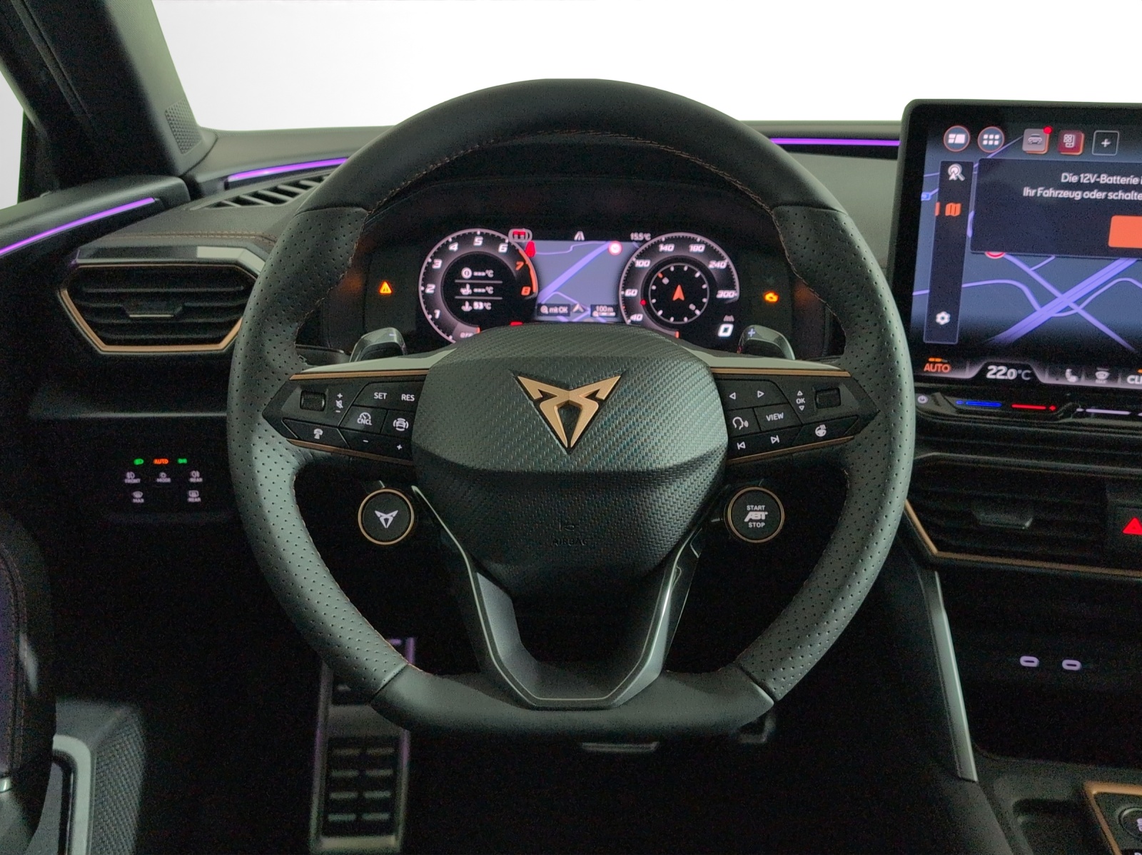 ABS, EBV elektronische Bremskraft-verteilung Abgedunkelte Scheiben ab B-Säule hinten Aerodynamischer Heckspoiler Black Edition in Schwarz Airbag: Airbag Beifahrer deaktivierbar Airbag: Airbag Fahrer und Beifahrer Airbag: Seitenairbags vorne mit Kopfairbag und Interaktionsairbag vorne Alarmanlage mit Innenraumüberwachung Assist: Aufmerksamkeits- und Müdigkeitserkennung (ADA) Assist: Ausweichunterstützung / Abbiegeassistent Assist: Automatische Distanzregelung ACC Assist: Einparkhilfe vorne und hinten Assist: Elektronische Parkbremse mit Auto Hold Funktion Assist: Multifunktionskamera Assist: Multikollisionsbremse Assist: Prädiktive Speedlimiter Assist: Regen-/Lichtsensor Assist: Traction Control (TCS) Assist: Traffic sign recognition (Verkehrszeichenerkennung) CUPRA Drive Profile mit "driving experience button" Comfort, Performance, Drift, Individual CUPRA Seitenschweller in "Obsidian Black" Dekor-Elemente Interieur: Fussmattensatz, Start-/Stopp-Schalterkappe Dekor: Dekorblenden in Copper Dreipunkt-Automatiksicherheitsgurte auf allen Plätzen ESC mit EBA, DSR und Reifendruckkontrolle Elektrische Fensterheber vorne und hinten mit Komfortschaltung und Einklemmschutz Fahrwerk: Adaptive Fahrwerksregelung DCC Fussmatten vorne und hinten Garantie: Cupra 12 Jahre Gewährleistung gegen Karosserie-Durchrostung Garantie: Cupra 3 Jahre Lack-Gewährleistung Garantie: Cupra Hersteller-Garantieverlängerung für das 3., 4. und 5. Jahr / max.100000 km Heckscheiben-Wisch-/Waschanlage mit Intervall Innenspiegel automatisch abblendbar Klima: 3-Zonen Climatronic mit Fondraumbedienung LED-Innenraumbeleuchtung mit Ambientebeleuchtung Smart Wraparound "Multicolor" Lackierung: Metallic-Lackierung Leistungssteigerung by ABT Lenkrad: Supersportlenkrad mit Start-/ Drive Profile-Knopfsystem und Schaltwippen, beheizbar Licht: Coming Leaving Home Funktion Licht: Drittes Bremslicht Licht: Durchgehende Full LED-Heckleuchten Licht: Dynamische LED-Blinker Licht: Fernlicht-Assistent Licht: LED Heckleuchten mit beleuchtetem 3D CUPRA Logo Licht: LED-Nebelscheinwerfer mit Cornering-Funktion Licht: Leuchtweitenregulierung Licht: Nebelschlussleuchte Media: 2 USB C Anschlüsse hinten und vorne Media: CUPRA Connect Remote & Access Media: CUPRA Connect Safety & Services Media: CUPRA Connectivity Box Media: CUPRA Navigationssystem 12.9" Infotainment Media: DAB+ (Digital Audio Broadcasting) Media: IMMERSIVE by SENNHEISER Media: Mobiltelefon Freisprechanlage Bluetooth Pyrotechnische Gurtstraffer und Gurtkraftbegrenzer vorne Räder: Alufelgen 8.5J x 20", ABT PRIME In Glossy Black mit Sommerbereifung Räder: Reifenreparatur-Set (Tire Fit) Schlüsselloses Schliess- und Startsystem (KESSY Advance) Servolenkung mit geschwindigkeitsabhängiger Lenkkraftunterstützung Sicherheitsgurtkontrolle für alle Sitze Sitze: 2 verstellbare Kopfstützen vorne und 3 hinten Sitze: Fahrer- und Beifahrersitz mit Lendenwirbelstütze Sitze: Geteilt abklappbare Rücksitzlehne 1/3 - 2/3 Sitze: Kindersitzverankerung ISOFIX hinten Sitze: Kopfstützen vorne (integrierte) Sitze: Lendenwirbelstütze in den Vordersitzlehnen Sitze: Mittelarmlehne hinten Sitze: Mittelarmlehne vorne Sitze: Sitzheizung für Vordersitze, getrennt regelbar Sonnenblende Fahrer und Beifahrerseite Stopp - Start- und Rekuperationssystem Wegfahrsperre elektronisch Zentralverriegelung mit Funkfernbedienung, 2 Funkschlüssel