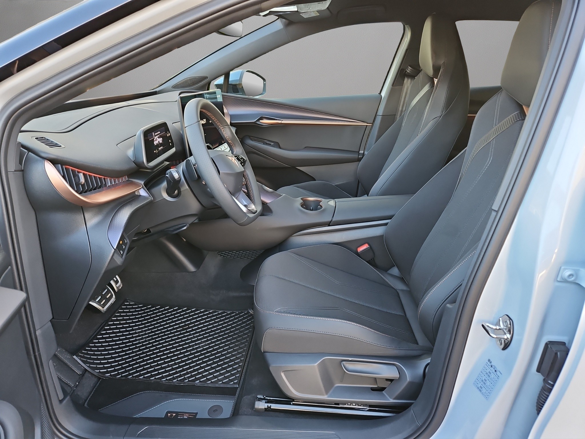 5.3" Full Digital Cockpit Abgedunkelte Scheiben ab B-Säule hinten Airbag: Airbag Beifahrer deaktivierbar Airbag: Airbag Fahrer und Beifahrer Airbag: Seitenairbags für Fahrer und Beifahrer Alarmanlage mit Innenraumüberwachung Assist: Aufmerksamkeits- und Müdigkeitserkennung (ADA) Assist: Ausweichunterstützung / Abbiegeassistent Assist: Automatische Distanzregelung ACC Assist: Exit Assist (Ausparkassistent) Assist: Exit Warning (Ausstiegswarner) Assist: Intelligenter Geschwindigkeitsassistent Assist: Parklenkassistent RPA (Remote Park Assist) Assist: PreCrash Sicherheitssystem Assist: Regen-/Lichtsensor Assist: Side Assist (Spurwechselassistent) Assist: Traffic sign recognition (Verkehrszeichenerkennung) Assist: eCall Notruffunktion Aussenspiegel elektrisch einstell-, beheiz- und einklappbar Automatisch abblendender Innenrückspiegel Dreipunkt-Automatiksicherheitsgurte auf allen Plätzen Elektronisches Stabilitäts-Programm (ESP) Garantie: Cupra 12 Jahre Gewährleistung gegen Karosserie-Durchrostung Garantie: Cupra 3 Jahre Lack-Gewährleistung Garantie: Cupra Garantie 2 Jahre ohne Kilometerbegrenzung Getriebe: 1-Gang Automatik Heckklappe elektrisch öffnend und schliessend "Virtual Pedal" Klima: 3-Zonen Climatronic mit Fondraumbedienung LED Ambientebeleuchtung "PURE" Lackierung: Uni-Lackierung Lenkrad: Supersportlenkrad mit Drive Profile-Knopfsystem,beheizbar Licht: Drittes Bremslicht Licht: LED Heckleuchten mit beleuchtetem 3D CUPRA Logo Licht: Matrix LED Fernlicht Licht: Matrix LED Scheinwerfer Licht: Nebelschlussleuchte Media: 15" Infotainment (MIB3) Media: 2 USB C Anschlüsse hinten und vorne Media: Bluetooth-Freisprecheinrichtung Media: CUPRA Connect Online Infotainment Media: CUPRA Connect Remote & Access Media: CUPRA Connect Safety & Services Media: CUPRA Navigationssystem Media: DAB+ (Digital Audio Broadcasting) Media: Wireless Charger zur induktiven Smartphone Ladung Polster: Sitzbezüge in Stoff "Soul Black" Räder: Alufelgen 8J x 19", "Vulcano" Machined Sport in Black/Silver Räder: Reifendruckkontrollsystem Schlüsselloses Schliess- und Startsystem (KESSY Advance) Servolenkung geschwindigkeitsabhängig Sitze: Geteilt abklappbare Rücksitzlehne 1/3 - 2/3 Sitze: Kindersitzbefestigungssystem ISOFIX Sitze: Kopfstützen hinten höhenverstellbar Sitze: Kopfstützen vorne (integrierte) Sitze: Sitzheizung für Vordersitze, getrennt regelbar Sitze: Vordersitze höhenverstellbar Vorbereitung für Anhängevorrichtung Wegfahrsperre elektronisch