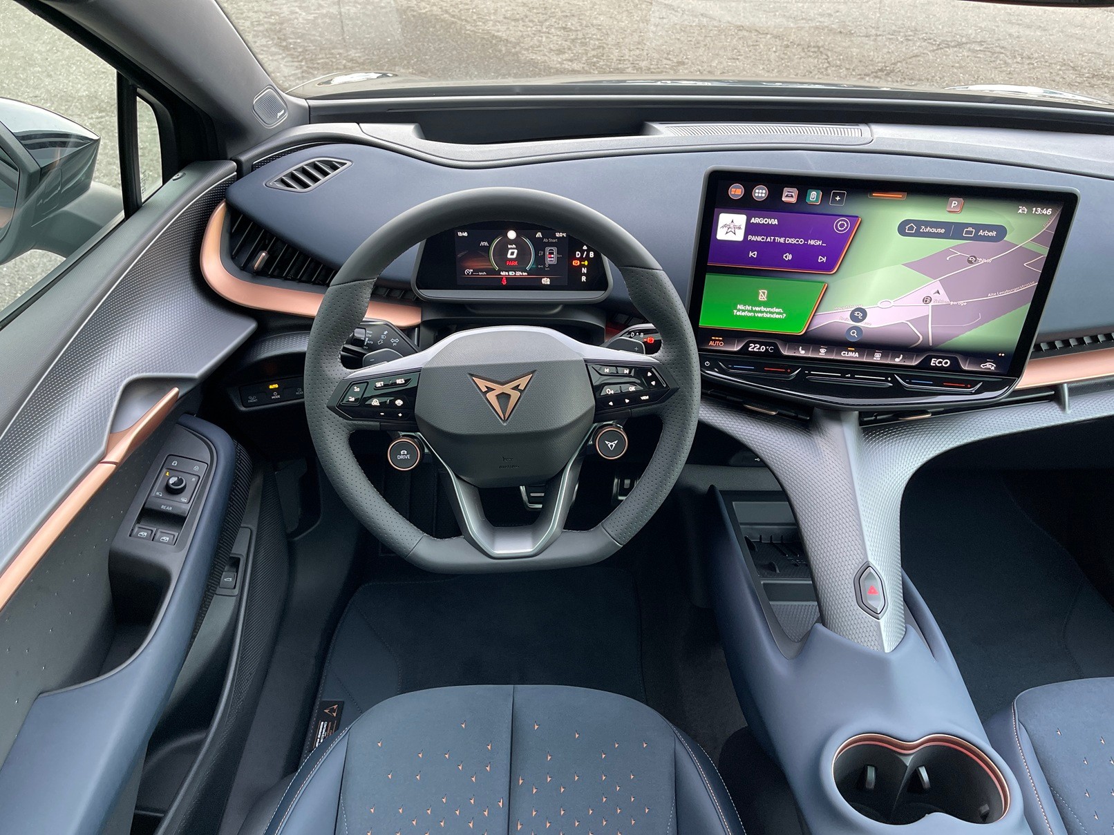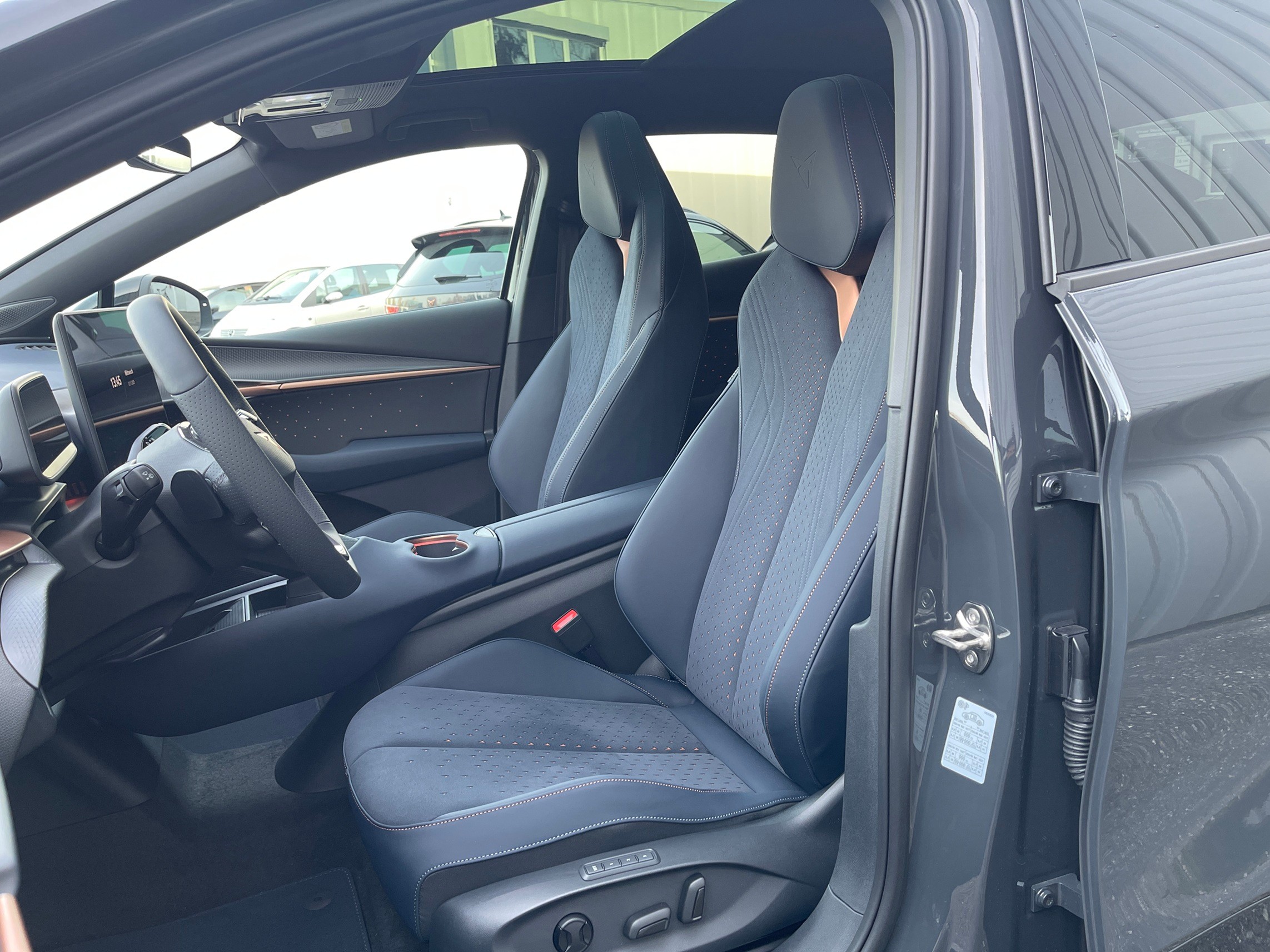 5.3" Full Digital Cockpit Abgedunkelte Scheiben ab B-Säule hinten Airbag: Airbag Beifahrer deaktivierbar Airbag: Airbag Fahrer und Beifahrer Airbag: Seitenairbags für Fahrer und Beifahrer Alarmanlage mit Innenraumüberwachung Assist: Aufmerksamkeits- und Müdigkeitserkennung (ADA) Assist: Ausweichunterstützung / Abbiegeassistent Assist: Exit Assist (Ausparkassistent) Assist: Exit Warning (Ausstiegswarner) Assist: Intelligenter Geschwindigkeitsassistent Assist: Parklenkassistent RPA (Remote Park Assist) Assist: PreCrash Sicherheitssystem Assist: Prädiktive automatische Distanzregelung ACC Assist: Regen-/Lichtsensor Assist: Side Assist (Spurwechselassistent) Assist: Top View Camera (Rundumblick) Assist: Traction Control (TCS) Assist: Traffic sign recognition (Verkehrszeichenerkennung) Assist: eCall Notruffunktion Augmented Reality Head-up-Display Aussenspiegel elektrisch einstell-, beheiz- und einklappbar mit Beifahrerabsenkfunktion- Automatisch abblendender Innenrückspiegel Dreipunkt-Automatiksicherheitsgurte auf allen Plätzen Einstiegsleisten beleuchtet Elektrische Fensterheber vorne und hinten mit Komfortschaltung und Einklemmschutz Elektronisches Stabilitäts-Programm (ESP) Fahrwerk: Adaptive Fahrwerksregelung DCC Garantie: Cupra 12 Jahre Gewährleistung gegen Karosserie-Durchrostung Garantie: Cupra 3 Jahre Lack-Gewährleistung Garantie: Cupra Hersteller-Garantieverlängerung für das 3., 4. und 5. Jahr / max.100000 km Getriebe: 1-Gang Automatik Heckklappe elektrisch öffnend und schliessend "Virtual Pedal" Klima: 3-Zonen Climatronic mit Fondraumbedienung LED Ambientebeleuchtung "IMMERSIVE" Lackierung: Uni-Lackierung Lenkrad: Supersportlenkrad mit Drive Profile-Knopfsystem,beheizbar Licht: Drittes Bremslicht Licht: LED Heckleuchten mit beleuchtetem 3D CUPRA Logo Licht: Matrix LED Fernlicht Licht: Matrix LED Scheinwerfer Licht: Nebelschlussleuchte Media: 15" Infotainment (MIB3) Media: 2 USB C Anschlüsse hinten und vorne Media: Bluetooth-Freisprecheinrichtung Media: CUPRA Connect Online Infotainment Media: CUPRA Connect Remote & Access Media: CUPRA Connect Safety & Services Media: CUPRA Navigationssystem Media: DAB+ (Digital Audio Broadcasting) Media: SENNHEISER Sound System mit 12 High-End-Lautsprecher inkl. 300 Watt Subwoofer Media: Wireless Charger zur induktiven Smartphone Ladung Polster: Sitzbezüge in Dinamica "Dark Night" Räder: Alufelgen 9J x 21", "Katla" Machined Sport in Black/Copper Räder: Reifendruckkontrollsystem Schlüsselloses Schliess- und Startsystem (KESSY Advance) Servolenkung geschwindigkeitsabhängig Sitze: Elektrische Sitzverstellung mit Memory-Funktion für Fahrer- und Beifahrerseite Sitze: Geteilt abklappbare Rücksitzlehne mit Mittelarmlehne und Durchlademöglichkeit Sitze: Kindersitzbefestigungssystem ISOFIX Sitze: Kopfstützen hinten höhenverstellbar Sitze: Kopfstützen vorne (integrierte) Sitze: Lendenwirbelstütze Fahrer- und Beifahrerseite elektrisch einstellbar Sitze: Sitzheizung für Vorder- und Rücksitze, getrennt regelbar Sitze: Vordersitze höhenverstellbar Vorbereitung für Anhängevorrichtung Wegfahrsperre elektronisch Zentralverriegelung mit Fernbedienung