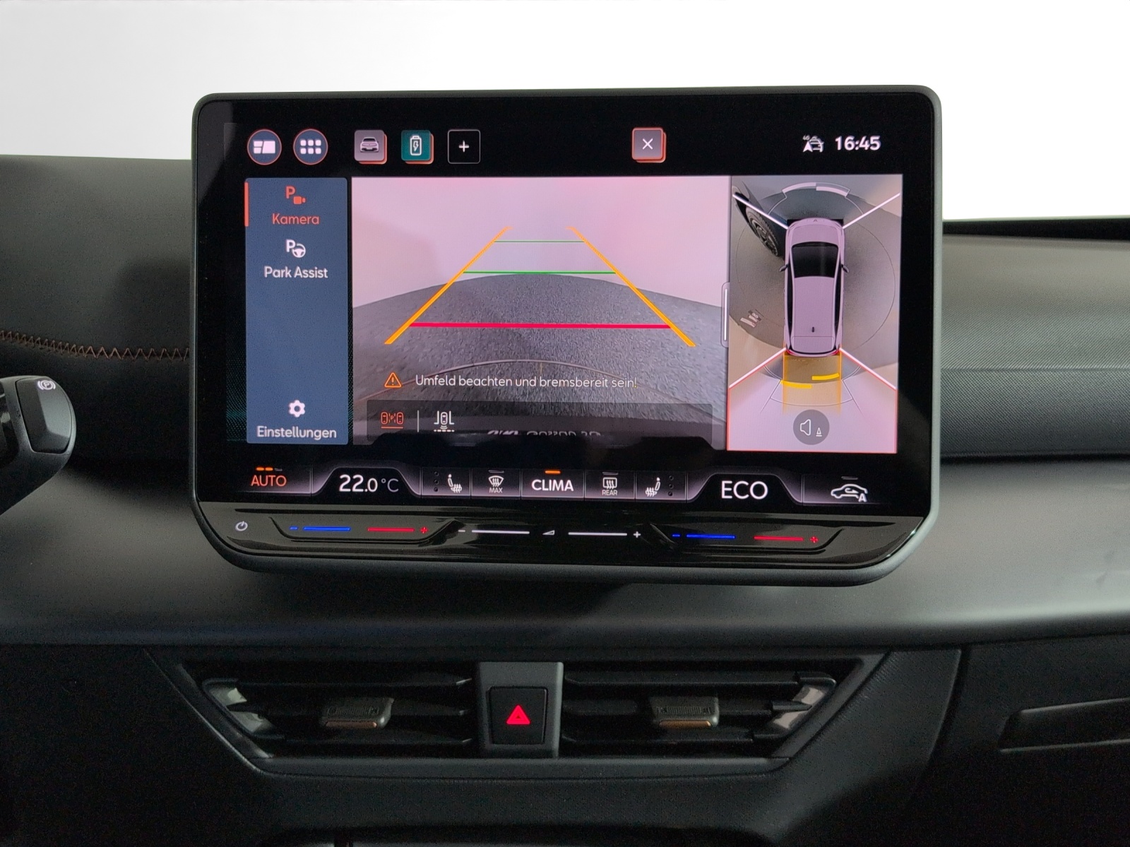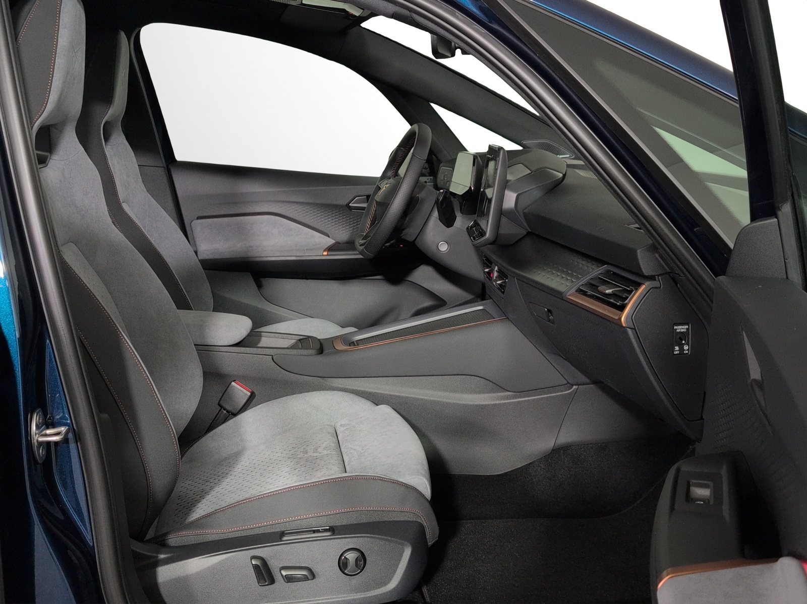 5.3" Full Digital Cockpit ABS, EBV elektronische Bremskraft-verteilung Airbag: Airbag Beifahrer deaktivierbar Airbag: Airbag Fahrer und Beifahrer Airbag: Kopfairbags vorne und hinten Airbag: Seitenairbags für Fahrer und Beifahrer Alarmanlage mit Innenraumüberwachung Ambiente Innenraumbeleuchtung "Multicolor" mit 6 Farben Assist: Aufmerksamkeits- und Müdigkeitserkennung (ADA) Assist: Ausweichunterstützung / Abbiegeassistent Assist: Einparkhilfe vorne und hinten mit optischer Anzeige Assist: Lane assist (Spurhalteassistent) Assist: Regen-/Lichtsensor Assist: Traction Control (TCS) Assist: Verkehrszeichenerkennung Augmented Reality Head-up-Display Aussenspiegel elektrisch einstell-, beheiz- und einklappbar mit Beifahrerabsenkfunktion Aussenspiegel in Cosmo Grey, Türgriffe in Wagenfarbe CUPRA Drive Profile mit "driving experience button" Range, Comfort, Performance, CUPRA, Individual Dreipunkt-Automatiksicherheitsgurte auf allen Plätzen Elektrische Fensterheber vorne und hinten mit Komfortschaltung und Einklemmschutz Elektronisches Stabilitäts-Programm Garantie: Cupra 12 Jahre Gewährleistung gegen Karosserie-Durchrostung Garantie: Cupra 3 Jahre Lack-Gewährleistung Garantie: Cupra Garantie Batterie- Gewährleistung 8 Jahre oder 160000 KM auf 70% Batterieleistung. Garantie: Cupra Hersteller-Garantieverlängerung für das 3., 4. und 5. Jahr / max.100000 km Getriebe: 1-Gang Automatik Heckscheiben-Wisch-/Waschanlage mit Intervall Innenspiegel automatisch abblendbar Klima: 2-Zonen Climatronic Klima: Elektrische Luftzusatzheizung Lackierung: Uni-Lackierung Lenkrad: Beheizbares Ledermultifunktionslenkrad Licht: Drittes Bremslicht Licht: Durchgehende Full LED-Heckleuchten Licht: Full LED-Scheinwerfer für Abblend-und Fernlicht und Coming Home Funktion Licht: LED-Nebelscheinwerfer Media: 2 USB C Anschlüsse hinten und vorne Media: Bluetooth-Freisprecheinrichtung Media: CUPRA Connect Online Infotainment für Navigationssystem Media: CUPRA Connect Safety & Services für Navigationssystem Media: CUPRA Navigationssystem 12.9" Infotainment Media: DAB+ (Digital Audio Broadcasting) Paket: CUPRA Sportschalensitze in Dinamica "Granite Grey" Pollenfilter (Staubfilter) Räder: Alufelgen 7.5J x 20", "HURRICANE" 31/3 in Sport Black "e-racer" Räder: Reifendruckkontrollsystem Servolenkung geschwindigkeitsabhängig Sitze: Geteilt abklappbare Rücksitzlehne 1/3 - 2/3 Sitze: Kindersitzbefestigungssystem ISOFIX Sitze: Mittelarmlehne vorne Sonnenblende Fahrer und Beifahrerseite Wegfahrsperre elektronisch