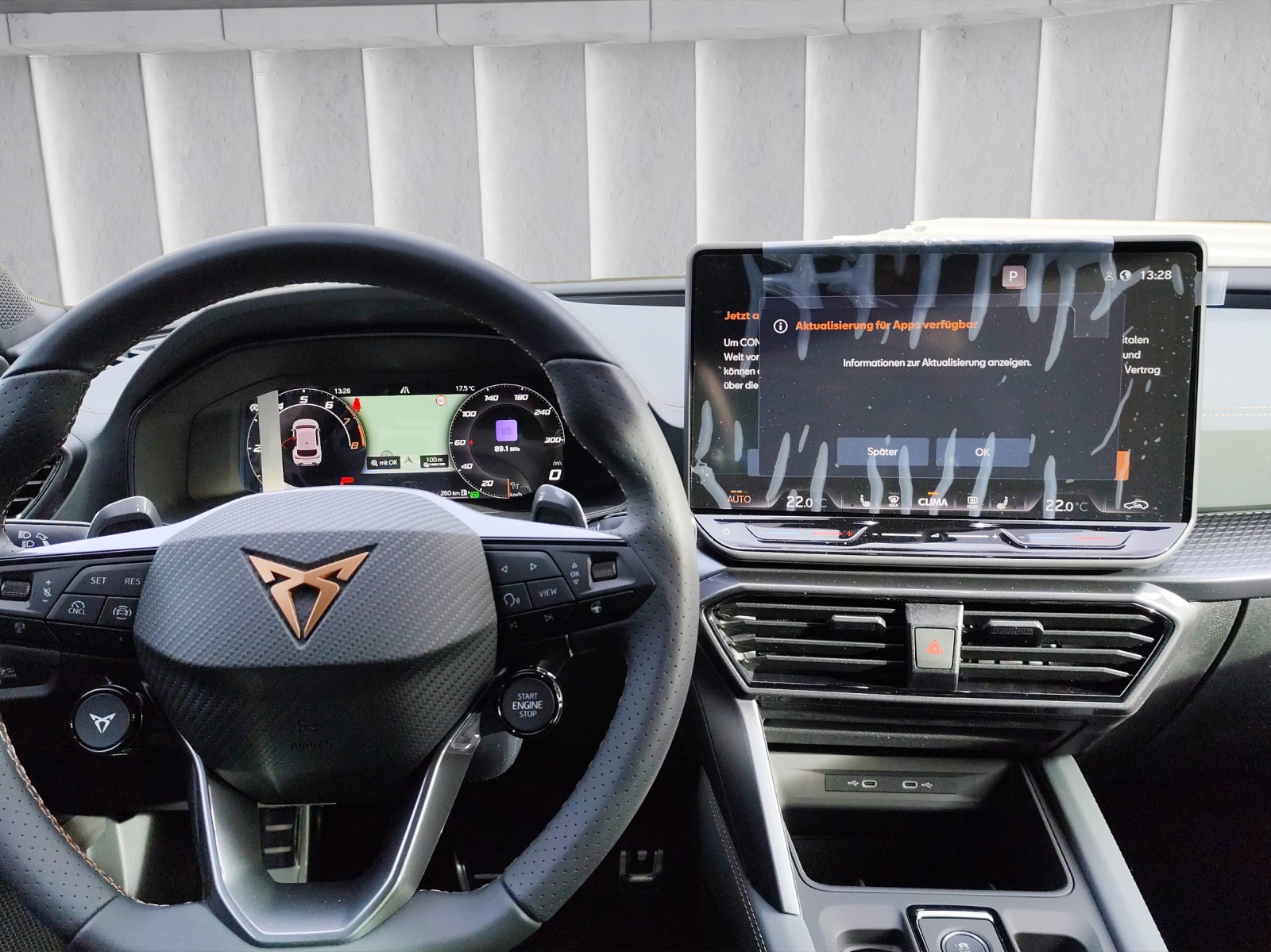 ABS, EBV elektronische Bremskraft-verteilung Abgedunkelte Scheiben ab B-Säule hinten Airbag: Airbag Beifahrer deaktivierbar Airbag: Airbag Fahrer und Beifahrer Airbag: Seitenairbags vorne mit Kopfairbag und Interaktionsairbag vorne Assist: Aufmerksamkeits- und Müdigkeitserkennung (ADA) Assist: Ausweichunterstützung / Abbiegeassistent Assist: Automatische Distanzregelung ACC Assist: Einparkhilfe vorne und hinten Assist: Elektronische Parkbremse mit Auto Hold Funktion Assist: Lane assist (Spurhalteassistent) Assist: Multifunktionskamera Assist: Multikollisionsbremse Assist: Prädiktive Speedlimiter Assist: Regen-/Lichtsensor Assist: Traction Control (TCS) Assist: Traffic sign recognition (Verkehrszeichenerkennung) CUPRA Drive Profile mit "driving experience button" Comfort, Performance, Drift, Individual Dekor: Dekorblenden in Copper Dreipunkt-Automatiksicherheitsgurte auf allen Plätzen ESC mit EBA, DSR und Reifendruckkontrolle Elektrische Fensterheber vorne und hinten mit Komfortschaltung und Einklemmschutz Fahrwerk: Adaptive Fahrwerksregelung DCC Fussmatten vorne und hinten Garantie: Cupra 12 Jahre Gewährleistung gegen Karosserie-Durchrostung Garantie: Cupra 3 Jahre Lack-Gewährleistung Garantie: Cupra Garantie 2 Jahre ohne Kilometerbegrenzung Garantie: Cupra Hersteller-Garantieverlängerung für das 3., 4. und 5. Jahr / max.100000 km Heckscheiben-Wisch-/Waschanlage mit Intervall Innenspiegel automatisch abblendbar Klima: 3-Zonen Climatronic mit Fondraumbedienung Lackierung: Uni-Lackierung Lenkrad: Supersportlenkrad mit Start-/ Drive Profile-Knopfsystem und Schaltwippen, beheizbar Licht: Coming Leaving Home Funktion Licht: Drittes Bremslicht Licht: Durchgehende Full LED-Heckleuchten Licht: Dynamische LED-Blinker Licht: Fernlicht-Assistent Licht: LED Heckleuchten mit beleuchtetem 3D CUPRA Logo Licht: LED-Nebelscheinwerfer mit Cornering-Funktion Licht: LED-Scheinwerfer für Abblend- und Fernlicht Licht: Leuchtweitenregulierung Licht: Nebelschlussleuchte Media: 12,9" Infotainment (MIB3) Media: 2 USB C Anschlüsse hinten und vorne Media: CUPRA Connect Remote & Access Media: CUPRA Connect Safety & Services Media: CUPRA Connectivity Box Media: DAB+ (Digital Audio Broadcasting) Media: Mobiltelefon Freisprechanlage Bluetooth Pyrotechnische Gurtstraffer und Gurtkraftbegrenzer vorne Räder: Alufelgen 8J x 19", "POLAR" Machined in Sport Black Silver Räder: Reifenreparatur-Set (Tire Fit) Servolenkung mit geschwindigkeitsabhängiger Lenkkraftunterstützung Sicherheitsgurtkontrolle für alle Sitze Sitze: 2 verstellbare Kopfstützen vorne und 3 hinten Sitze: Geteilt abklappbare Rücksitzlehne 1/3 - 2/3 Sitze: Kindersitzverankerung ISOFIX hinten Sitze: Kopfstützen vorne (integrierte) Sitze: Lendenwirbelstütze in den Vordersitzlehnen Sitze: Mittelarmlehne hinten Sitze: Mittelarmlehne vorne Sitze: Sitzheizung für Vordersitze, getrennt regelbar Sonnenblende Fahrer und Beifahrerseite Stopp - Start- und Rekuperationssystem Wegfahrsperre elektronisch Zentralverriegelung mit Funkfernbedienung, 2 Funkschlüssel