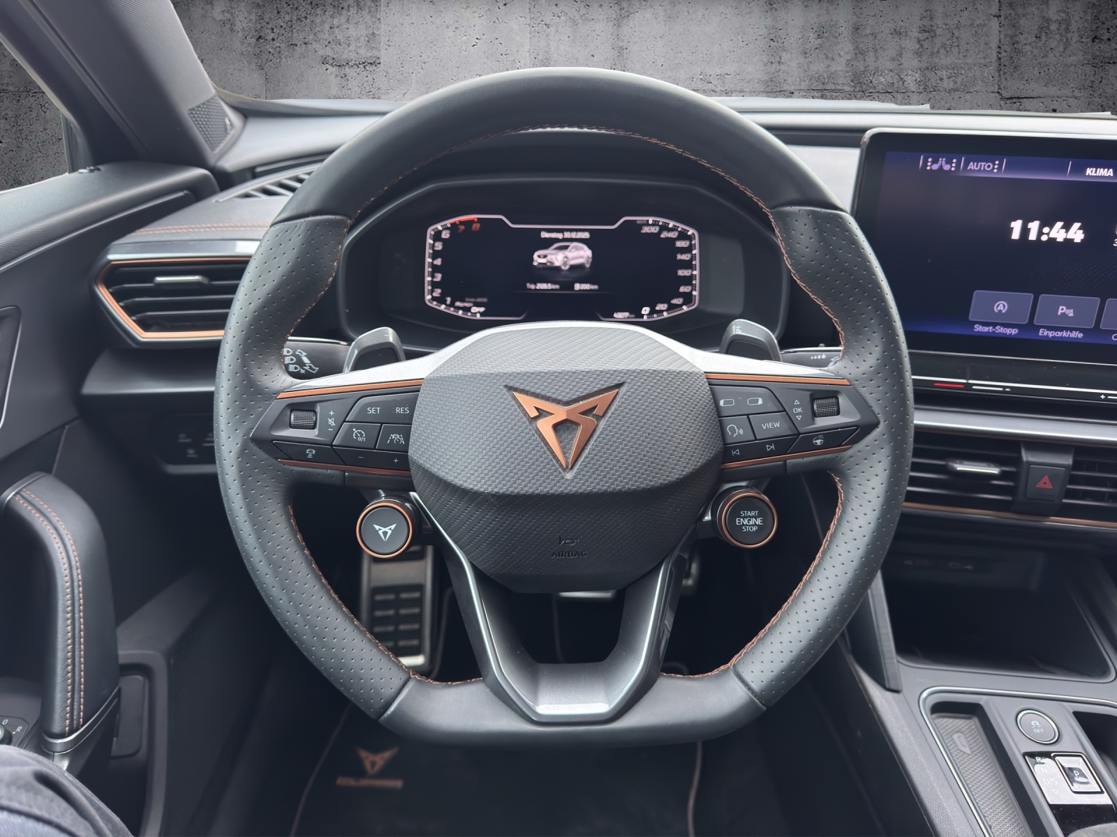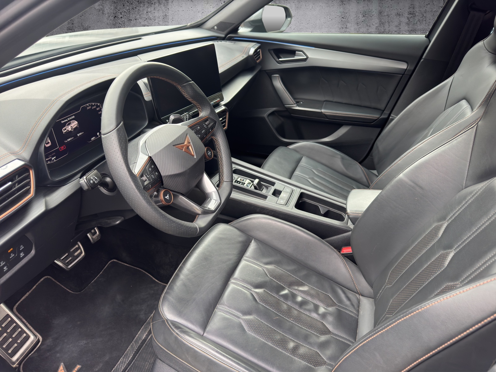 ABS, EBV elektronische Bremskraft-verteilung Abgedunkelte Scheiben ab B-Säule hinten Airbag: Airbag conducteur et passager Airbag: Airbag passager désactivable Airbag: Airbags rideaux pour la tête AV et AR Airbag: Seitenairbags für Fahrer und Beifahrer Ancrage de siège enfant ISOFIX (sièges arrières ext.) Assist: Caméra multifonction Assist: City Notbremsfunktion Assist: Einparkhilfe vorne und hinten mit Rückfahrkamera Assist: Elektronische Parkbremse mit Auto Hold Funktion Assist: Multikollisionsbremse Assist: PreCrash Sicherheitssystem Assist: Regen-/Lichtsensor Assist: Système de surveillance de l'environneme Front Assist Assist: Tiredness detection (Müdigkeitserkennung) Aussenspiegel elektrisch einstell-, beheiz- und einklappbar Aussenspiegel mit LED-Umfeldbeleuchtung Automatisch abblendender Innenrückspiegel Beleuchtete Sonnenblende links mit abdeckbarem Spiegel und Lasche, rechts mit abdeckbarem Spiegel CUPRA Drive Profile avec driving experience button Comfort, Sport, CUPRA, Individual, Snow, Offroad Dreipunkt-Automatiksicherheitsgurte auf allen Plätzen ESC mit EBA, DSR, XDS und Reifendruckkontrolle Elektrische Fensterheber vorne und hinten mit Komfortschaltung und Einklemmschutz Fahrwerk: Adaptive Fahrwerksregelung DCC Garantie: Cupra 12 ans de garantie contre perforation de la carrosserie Garantie: Cupra 2 ans de garantie, kilométrage illimité Garantie: Cupra 3 ans de garantie pour la peinture Gasoline Particule Filter Heckscheiben-Wisch-/Waschanlage mit Intervall Klima: 3-Zonen Climatronic mit Fondraumbedienung Licht: Coming-home-Funktion Licht: Durchgehende Full LED-Heckleuchten Licht: LED-Heckleuchten mit dynamischem Blinklicht Licht: LED-Nebelscheinwerfer mit Cornering-Funktion Licht: LED-Scheinwerfer für Abblend- und Fernlicht Licht: Leuchtweitenregulierung dynamisch Lumière: L'éclairage diurne à LED Media: 2 USB C Anschlüsse hinten und vorne Media: CUPRA Connect Online Infotainment für Navigationssystem Media: CUPRA Navigationssystem Media: Kartenmaterial ''Europa'' Media: Mobiltelefon Freisprechanlage Bluetooth Mittelarmlehne vorne und hinten Mèdias: 12" 3D Infotainment (MIB3) Mèdias: CUPRA Connect Remote & Access pour navigation Mèdias: DAB+ (Digital Audio Broadcasting) Pack: Paquet systèmes d'assitance au conducteur XL pour navigation Prise de 230 Volt dans la coffre et 12 Volt dans la console central Pyrotechnische Gurtstraffer und Gurtkraftbegrenzer Roues: Affichage du contrôle de la pression des pneus Roues: Roue de secours peu encombrante Roues: jantes en alliage 8J x 19 "," EXCLUSIVE "38/3 usinées noir mat / argent Rétroviseurs extérieurs avec rétroviseur du passager avant abaissable Schlüsselloses Schliess- und Startsystem (KESSY) Servolenkung mit geschwindigkeitsabhängiger Lenkkraftunterstützung Sitze: Geteilt abklappbare Rücksitzlehne 1/3 - 2/3 Sitze: Vordersitze höhenverstellbar mit Lendenwirbelstütze Sièges: 2 appuie-têtes réglables à lavant et 3 à larrière Sièges: Dossier de banquette rabattable séparément 1/3 - 2/3 Sièges: Sièges baquets CUPRA Sport en "Sharp textile black" Stopp - Start- und Rekuperationssystem Suspension: Direction progressive Tapis de sol avant et arrière Traction permanente à 4 roues motrices Volant: Volant Supersport avec système de bouton de démarrage-/ Drive Profile et Zentralverriegelung mit Funkfernbedienung, 2 Funkschlüssel Échappement sport avec sortie à quatre tubesr Éclairage de l'habitacle LED avec Eclairage d'ambiance Wraparound
