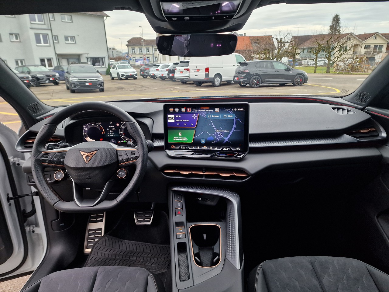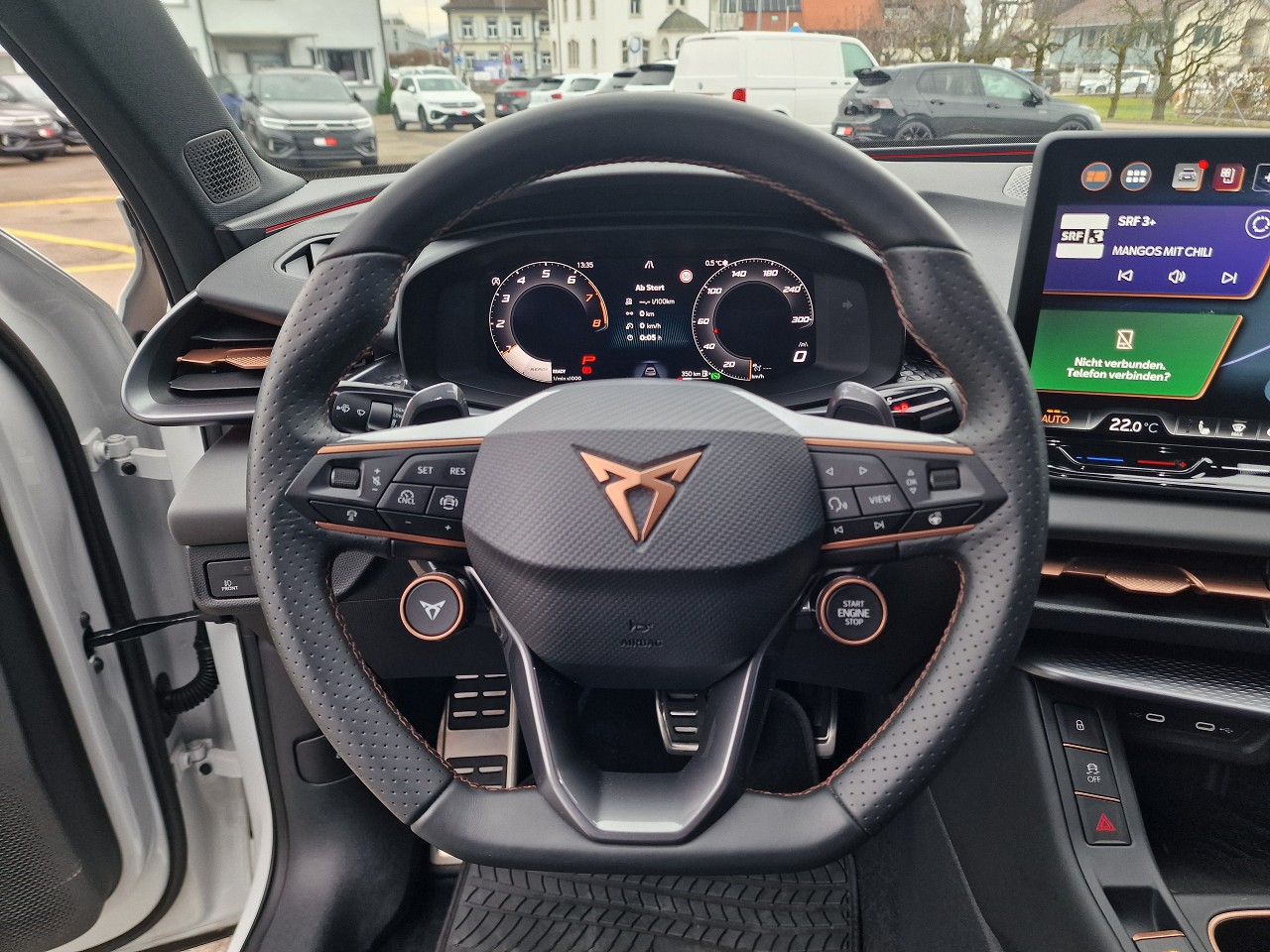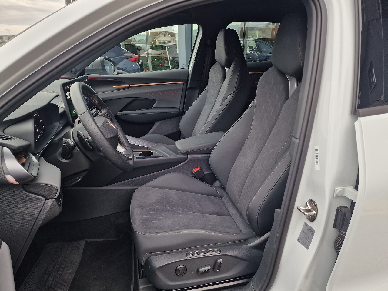 3-Punkt-Sicherheitsgurte auf allen Plätzen ABS, EBV elektronische Bremskraft-verteilung Airbag: Airbag Beifahrer deaktivierbar Airbag: Airbag Fahrer und Beifahrer Airbag: Kopfairbags vorne und hinten Airbag: Seitenairbags für Fahrer und Beifahrer Ambiente Innenraumbeleuchtung mit beleuchteten Türpanelen Assist: Aufmerksamkeits- und Müdigkeitserkennung (ADA) Assist: Ausweichunterstützung / Abbiegeassistent Assist: Automatische Distanzregelung ACC Assist: City Notbremsfunktion Assist: Elektronische Parkbremse mit Auto Hold Funktion Assist: Lane assist (Spurhalteassistent) Assist: Multifunktionskamera Assist: Multikollisionsbremse Assist: Prädiktive Speedlimiter Assist: Traffic sign recognition (Verkehrszeichenerkennung) Assist: Umfeldüberwachungssystem "Front-Assist" Aussenspiegel elektrisch einstell-, beheizbar Aussenspiegel mit LED-Umfeldbeleuchtung Beleuchtete Sonnenblende links mit abdeckbarem Spiegel und Lasche, rechts mit abdeckbarem Spiegel ESC mit EBA, DSR, XDS und Reifendruckkontrolle Elektrische Fensterheber vorne und hinten mit Komfortschaltung und Einklemmschutz Fahrwerk: CUPRA Sportfahrwerk Fahrwerk: Progressivlenkung Fussmatten vorne und hinten Garantie: Cupra 12 Jahre Gewährleistung gegen Karosserie-Durchrostung Garantie: Cupra 3 Jahre Lack-Gewährleistung Garantie: Cupra Garantie 2 Jahre ohne Kilometerbegrenzung Heckscheiben-Wisch-/Waschanlage mit Intervall Innenspiegel automatisch abblendbar Lackierung: Uni-Lackierung Lenkrad: Leder Multifunktionslenkrad mit Schaltwippen Licht: Drittes Bremslicht Licht: Durchgehende Full LED-Heckleuchten Licht: LED Heckleuchten mit beleuchtetem 3D CUPRA Logo Licht: LED-Heckleuchten mit dynamischem Blinklicht Licht: LED-Nebelscheinwerfer mit Cornering-Funktion Licht: LED-Scheinwerfer für Abblend- und Fernlicht Licht: Leuchtweitenregulierung dynamisch Licht: Nebelschlussleuchte Media: 12,9" Infotainment (MIB3) Media: 2 USB C Anschlüsse hinten und vorne Media: CUPRA Connect Remote & Access / CUPRA Connect Safety & Services Media: CUPRA Connectivity Box Media: DAB+ (Digital Audio Broadcasting) Media: Mobiltelefon Freisprechanlage Bluetooth Mittelarmlehne vorne und hinten Pyrotechnische Gurtstraffer und Gurtkraftbegrenzer Räder: Alufelgen 8J x 18", "ATOMIC" Machined in Sport Black Matt Räder: Reifendruckkontrollsystem Servolenkung mit geschwindigkeitsabhängiger Lenkkraftunterstützung Sitze: 3 verstellbare Kopfstützen hinten Sitze: CUPRA Sport Schalensitze in Textil, "DEEP OCEAN" "SEAQUAL" Sitze: Geteilt abklappbare Rücksitzlehne 1/3 - 2/3 Sitze: Kindersitzverankerung ISOFIX hinten Sitze: Vordersitze höhenverstellbar mit Lendenwirbelstütze Stopp - Start- und Rekuperationssystem Wegfahrsperre elektronisch Zentralverriegelung "Keyless-Go" Zentralverriegelung mit Funkfernbedienung, 2 Funkschlüssel