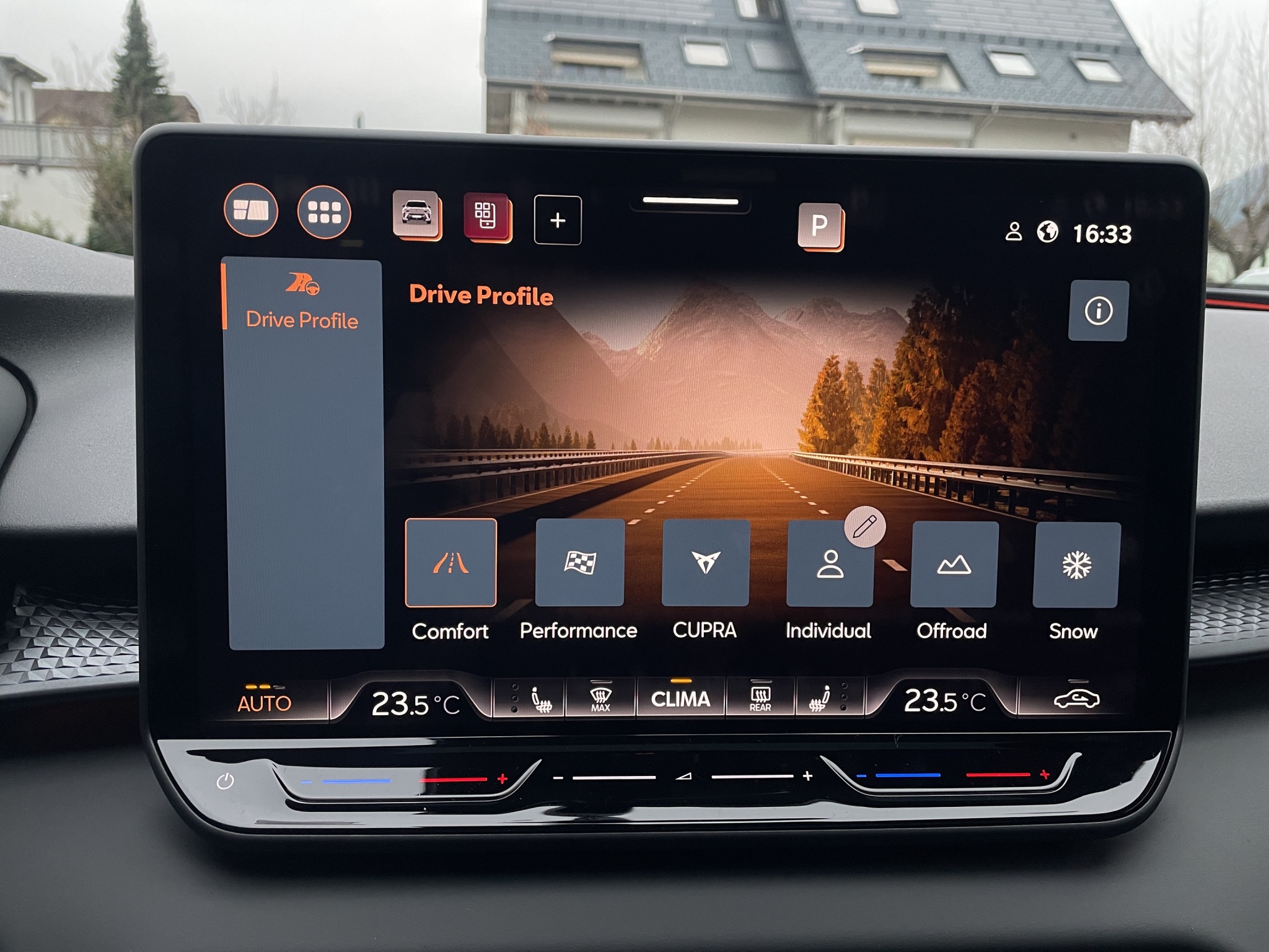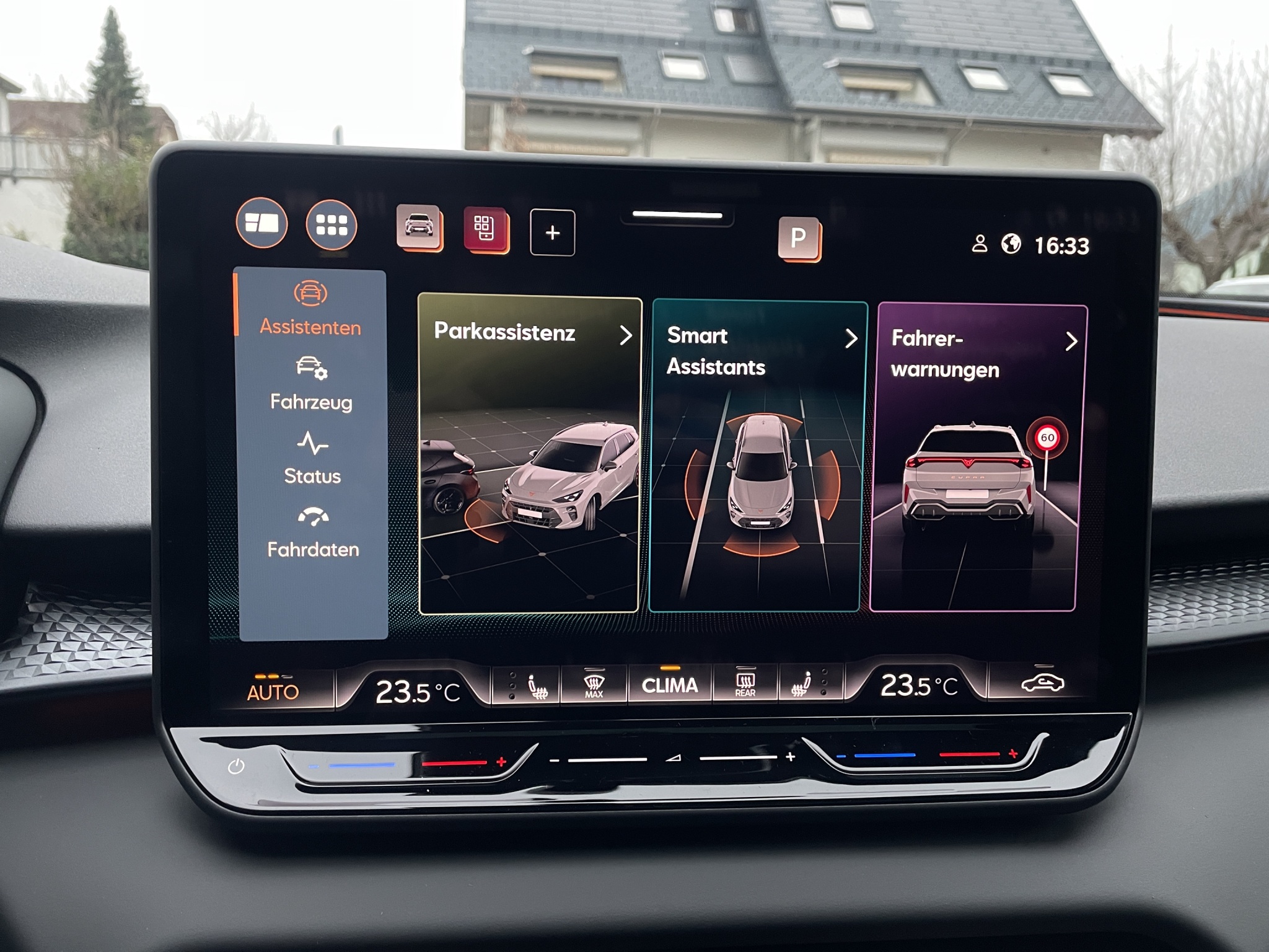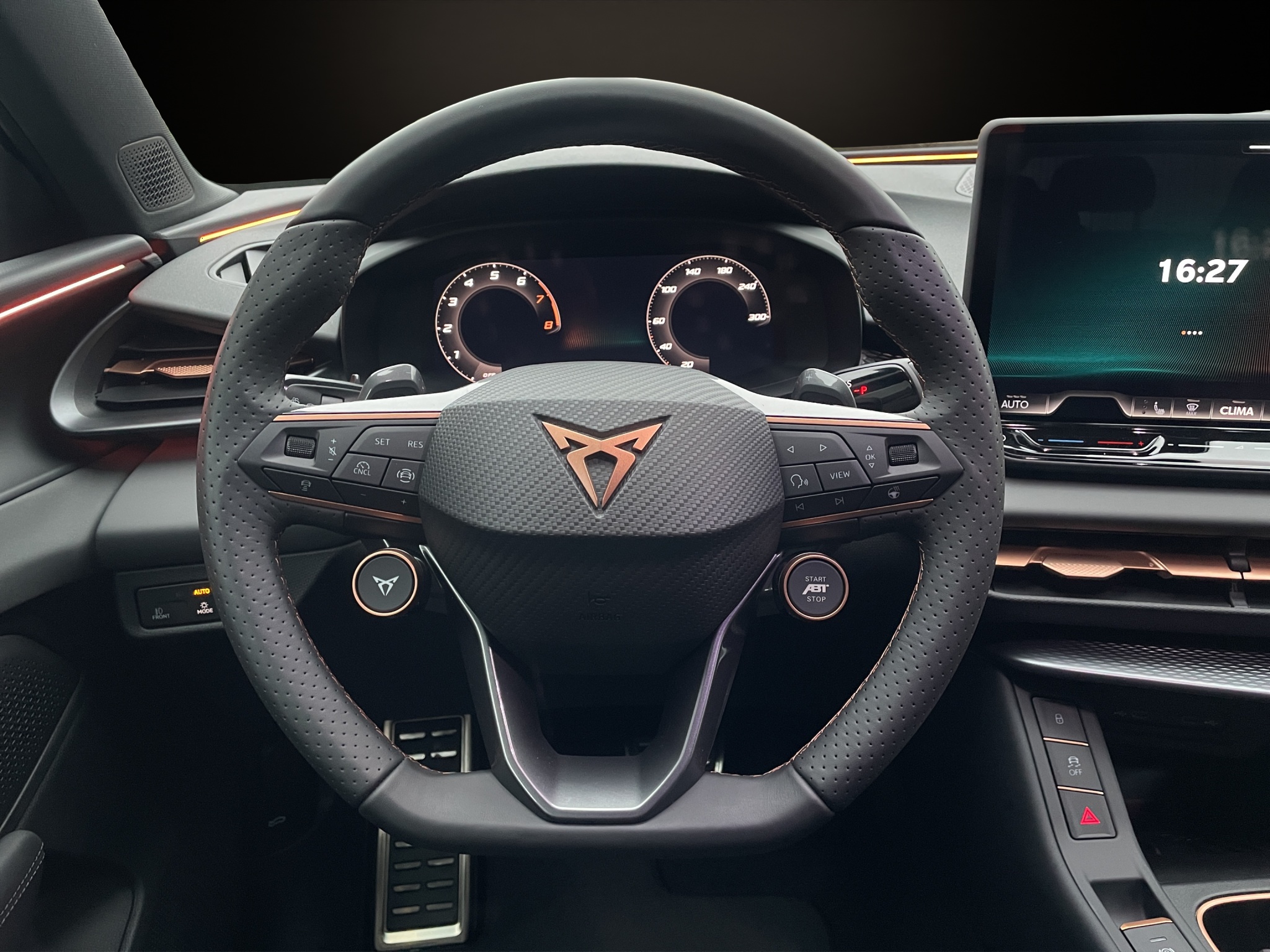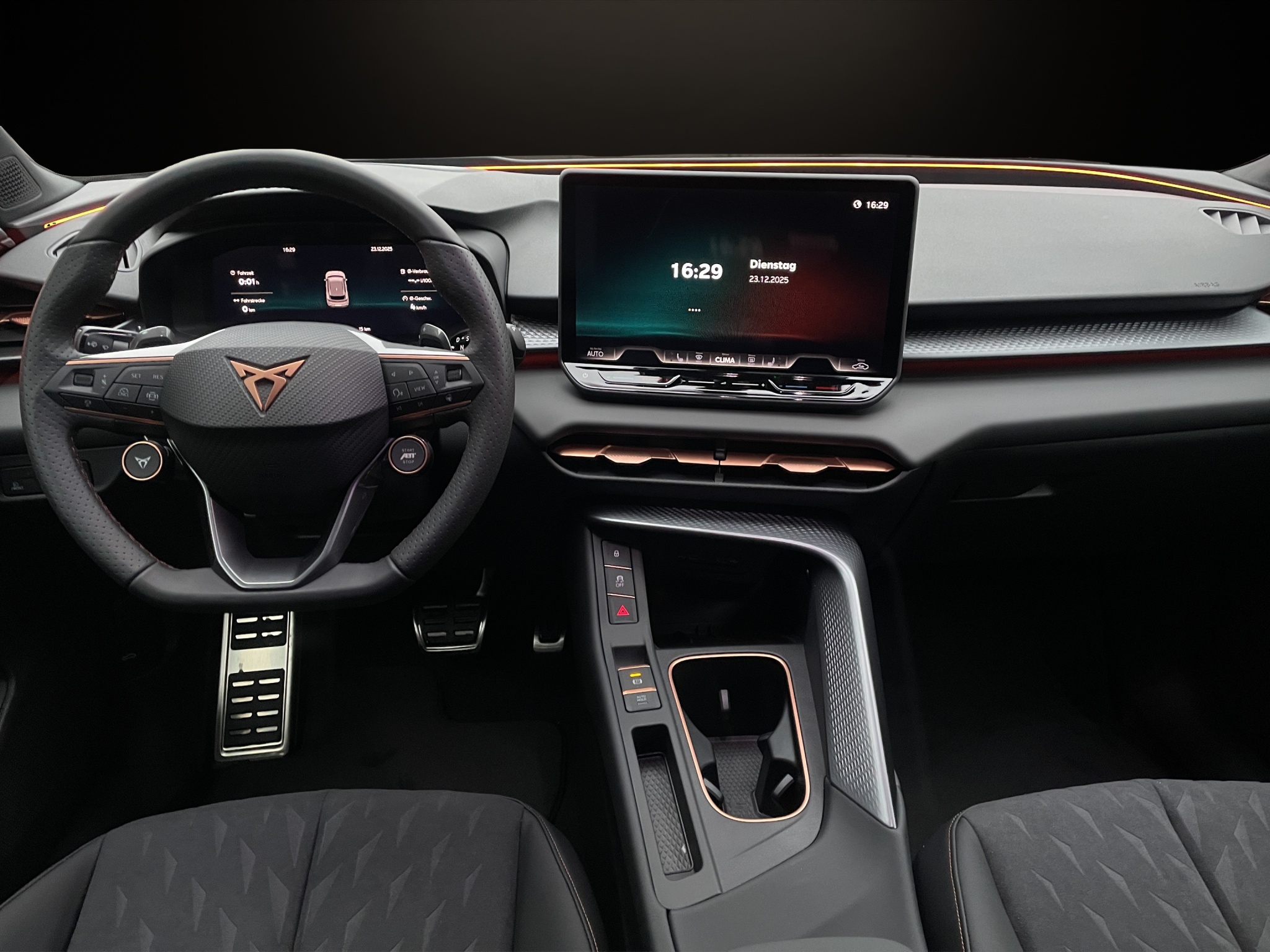 3-Punkt-Sicherheitsgurte auf allen Plätzen ABS, EBV elektronische Bremskraft-verteilung Abgedunkelte Scheiben ab B-Säule hinten Aerodynamischer ABT-Heckspoiler in Schwarz Airbag: Airbag Beifahrer deaktivierbar Airbag: Airbag Fahrer und Beifahrer Airbag: Kopfairbags vorne und hinten Airbag: Seitenairbags für Fahrer und Beifahrer Alarmanlage mit Innenraumüberwachung Assist: Aufmerksamkeits- und Müdigkeitserkennung (ADA) Assist: Ausweichunterstützung / Abbiegeassistent Assist: Automatische Distanzregelung ACC Assist: City Notbremsfunktion Assist: Einparkhilfe vorne und hinten Assist: Elektronische Parkbremse mit Auto Hold Funktion Assist: Lane assist (Spurhalteassistent) Assist: Multifunktionskamera Assist: Multikollisionsbremse Assist: Prädiktive Speedlimiter Assist: Traffic sign recognition (Verkehrszeichenerkennung) Assist: Umfeldüberwachungssystem "Front-Assist" Aussenspiegel mit LED-Umfeldbeleuchtung Beleuchtete Sonnenblende links mit abdeckbarem Spiegel und Lasche, rechts mit abdeckbarem Spiegel Dekor-Elemente Interieur: Fussmattensatz, Start-/Stopp-Schalterkappe ESC mit EBA, DSR, XDS und Reifendruckkontrolle Einstiegsleisten beleuchtet Elektrische Fensterheber vorne und hinten mit Komfortschaltung und Einklemmschutz Fahrwerk: Adaptive Fahrwerksregelung DCC pro Fahrwerk: CUPRA Sportfahrwerk Fahrwerk: Progressivlenkung Fussmatten vorne und hinten Garantie: Cupra 12 Jahre Gewährleistung gegen Karosserie-Durchrostung Garantie: Cupra 3 Jahre Lack-Gewährleistung Garantie: Cupra Hersteller-Garantieverlängerung für das 3., 4. und 5. Jahr / max.100000 km Heckklappe elektrisch öffnend und schliessend "Virtual Pedal" Heckscheiben-Wisch-/Waschanlage mit Intervall Innenspiegel automatisch abblendbar Klima: 3-Zonen Climatronic mit Fondraumbedienung LED-Ambientebeleuchtung Smart Wraparound, inkl. Funktionsanzeige Lackierung: Metallic-Lackierung Leistungssteigerung by ABT Lenkrad: Leder Multifunktionslenkrad mit Schaltwippen, beheizbar Licht: Drittes Bremslicht Licht: Durchgehende Full LED-Heckleuchten Licht: LED Heckleuchten mit beleuchtetem 3D CUPRA Logo Licht: LED-Heckleuchten mit dynamischem Blinklicht Licht: LED-Nebelscheinwerfer mit Cornering-Funktion Licht: Leuchtweitenregulierung dynamisch Licht: Nebelschlussleuchte Media: 12,9" Infotainment (MIB3) Media: 2 USB C Anschlüsse hinten und vorne Media: CUPRA Connect Remote & Access / CUPRA Connect Safety & Services Media: CUPRA Connectivity Box Media: DAB+ (Digital Audio Broadcasting) Media: IMMERSIVE by SENNHEISER Media: Mobiltelefon Freisprechanlage Bluetooth Mittelarmlehne vorne und hinten Pyrotechnische Gurtstraffer und Gurtkraftbegrenzer Räder: Alufelgen 8.5J x 21", ABT PRIME In Glossy Black mit Sommerbereifung Räder: Performance Reifen Räder: Reifendruckkontrollsystem Schlüsselloses Schliess- und Startsystem (KESSY Advance) Servolenkung mit geschwindigkeitsabhängiger Lenkkraftunterstützung Sitze: 3 verstellbare Kopfstützen hinten Sitze: Geteilt abklappbare Rücksitzlehne 1/3 - 2/3 Sitze: Geteilt abklappbare Rücksitzlehne mit Mittelarmlehne Sitze: Kindersitzverankerung ISOFIX hinten Sportliche ABT-Frontspoilerecken und ABT-Frontgrillaufsatz Stopp - Start- und Rekuperationssystem Wegfahrsperre elektronisch Zentralverriegelung mit Funkfernbedienung, 2 Funkschlüssel