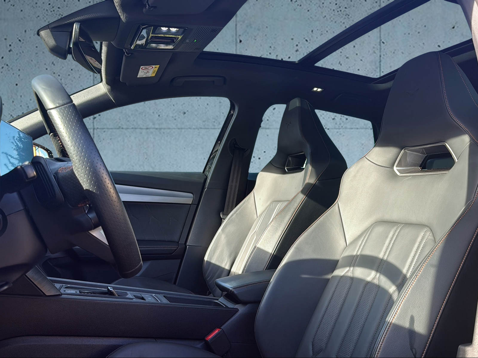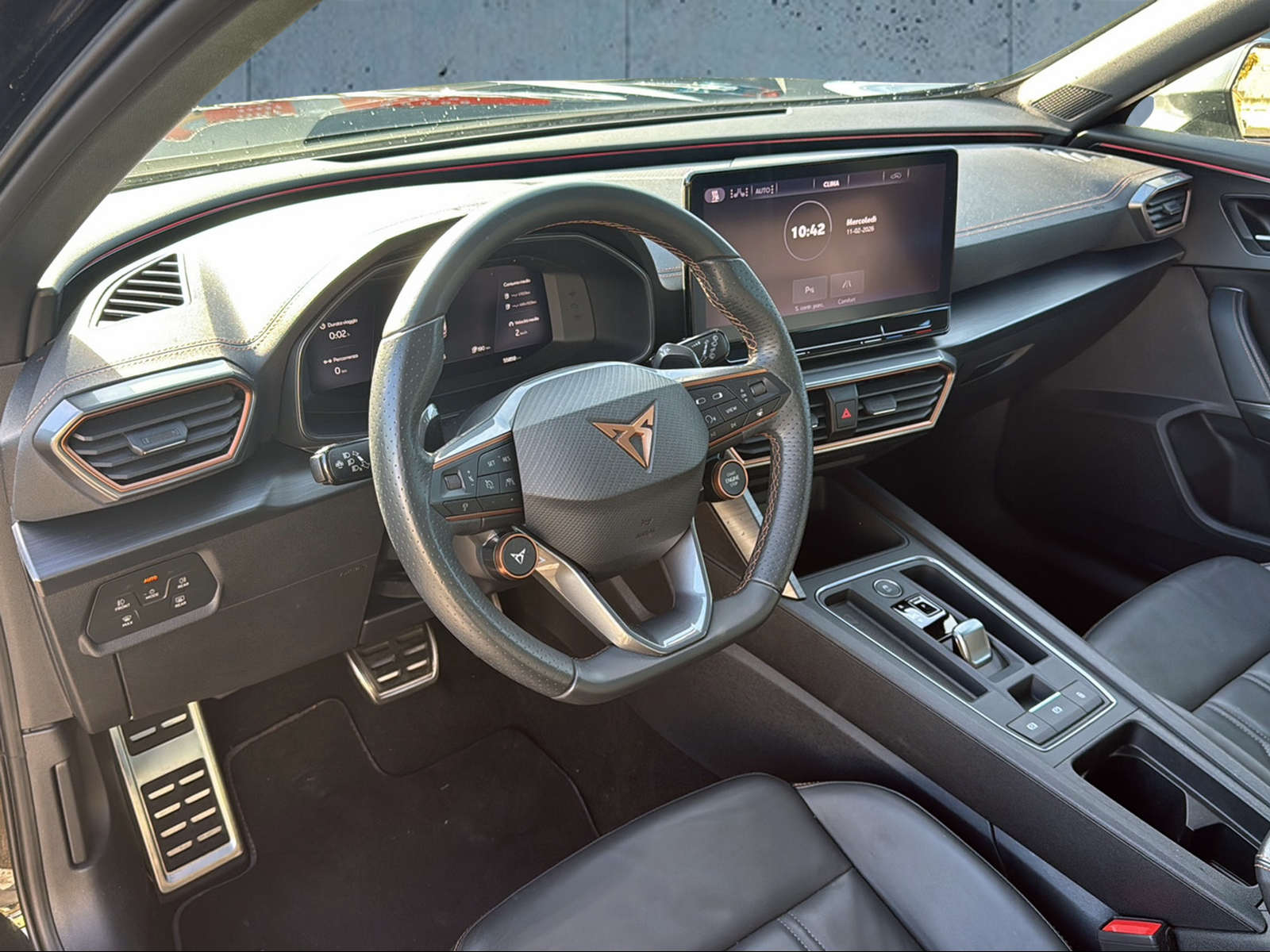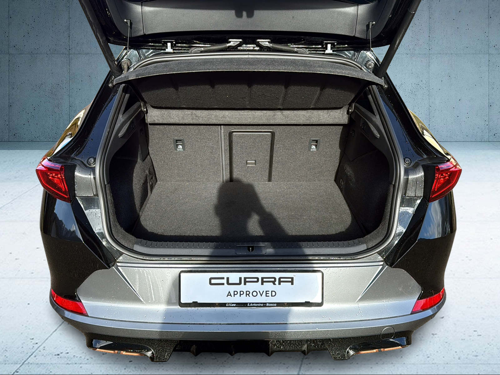 ABS, EBV elektronische Bremskraft-verteilung Abbassamento dello specchietto retrovisore esterno sul lato del passeggero Abgedunkelte Scheiben ab B-Säule hinten Airbag: Airbag Beifahrer deaktivierbar Airbag: Airbag Fahrer und Beifahrer Airbag: Kopfairbags vorne und hinten Airbag: Seitenairbags für Fahrer und Beifahrer Ancoraggio per seggiolino per bambini ISOFIX (sedili posteriori esterni) Assist: City Notbremsfunktion Assist: Elektronische Parkbremse mit Auto Hold Funktion Assist: Multifunktionskamera Assist: Multikollisionsbremse Assist: PreCrash Sicherheitssystem Assist: Regen-/Lichtsensor Assist: Sistema di assistenza alla guida Front Assist Assist: Tiredness detection (Sistema di rilevamento della stanchezza) Aussenspiegel elektrisch einstell-, beheiz- und einklappbar Aussenspiegel mit LED-Umfeldbeleuchtung Automatisch abblendender Innenrückspiegel Beleuchtete Sonnenblende links mit abdeckbarem Spiegel und Lasche, rechts mit abdeckbarem Spiegel CUPRA Drive Profile con pulsante driving experience- Cavo di ricarica (mode 3) Cavo di ricarica per presa domestica (modalità 2) Cerchi: cerchi in lega 8J x 19 "," EXCLUSIVE "38/3 lavorati nero opaco / argento Dreipunkt-Automatiksicherheitsgurte auf allen Plätzen Due orifizi dei gas di scarico in rame ESC mit EBA, DSR, XDS und Reifendruckkontrolle Elektrische Fensterheber vorne und hinten mit Komfortschaltung und Einklemmschutz Fahrwerk: Progressivlenkung Fussmatten vorne und hinten Garanzia: Cupra 12 anni di garanzia contro la corrosione della carrozzeria Garanzia: Cupra 2 anni di garanzia senza limitazione di chilometraggio Garanzia: Cupra 3 anni di garanzia contro i danni alla vernice Gasoline Particule Filter Heckscheiben-Wisch-/Waschanlage mit Intervall Illuminazione interna LED e Luce diffusa Wraparound Klima: 3-Zonen Climatronic mit Fondraumbedienung Lackierung: Uni-Lackierung Licht: Coming-home-Funktion Licht: Durchgehende Full LED-Heckleuchten Licht: LED-Heckleuchten mit dynamischem Blinklicht Licht: LED-Nebelscheinwerfer mit Cornering-Funktion Licht: LED-Scheinwerfer für Abblend- und Fernlicht Licht: Leuchtweitenregulierung dynamisch Media: 12" 3D Infotainment (MIB3) Media: 2 USB C Anschlüsse hinten und vorne Media: CUPRA Connect Online Infotainment per navigazione Media: CUPRA Connect Remote & Access per navigazione Media: CUPRA Navigationssystem Media: DAB+ (Digital Audio Broadcasting) Media: Kartenmaterial ''Europa'' Media: Mobiltelefon Freisprechanlage Bluetooth Mittelarmlehne vorne und hinten Pacchetto: Pacchetto invernale Pacchetto: Pacchetto sistemi d'assistenza per il conduttore XL per navigazione Presa da 230 Volt nel portabagagli e 12 Volt nel concolle centrale Pyrotechnische Gurtstraffer und Gurtkraftbegrenzer Räder: Reifendruck-Kontrollanzeige Räder: Reifenreparatur-Set (Tire Fit) Sedili: 2 appoggiatesta regolabili anteriori e 3 posteriori Sedili: Easy Backseat Release (sblocco sedile posteriore nel bagagliaio) Sedili: Sedili avvolgenti CUPRA Sport in "Sharp textile black" Servolenkung mit geschwindigkeitsabhängiger Lenkkraftunterstützung Sistema d'inizio e di chiusura KESSY Sitze: Geteilt abklappbare Rücksitzlehne 1/3 - 2/3 Sitze: Vordersitze höhenverstellbar mit Lendenwirbelstütze Stopp - Start- und Rekuperationssystem Telaio: controllo adattivo del telaio DCC Volante: Volante multifunzionale in pelle riscaldato con comandi al volante Wegfahrsperre elektronisch Zentralverriegelung mit Funkfernbedienung, 2 Funkschlüssel